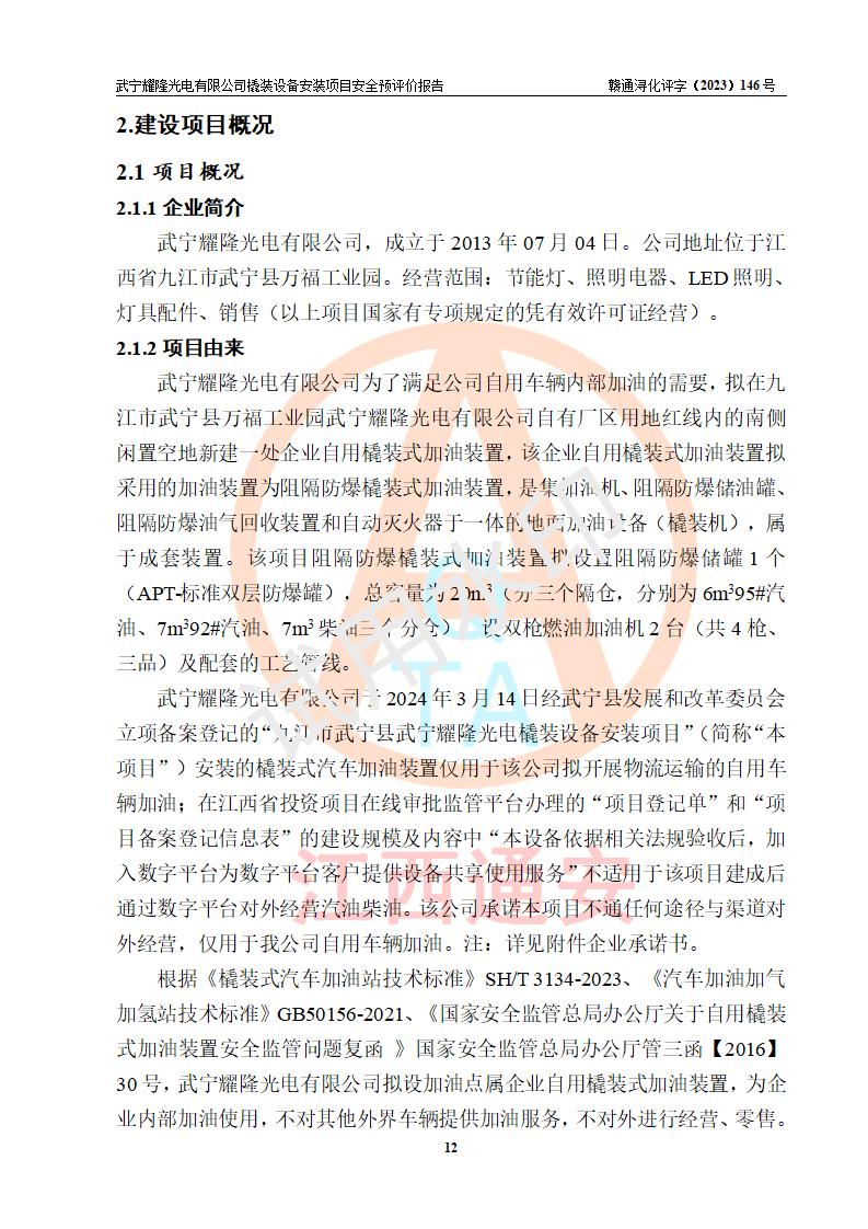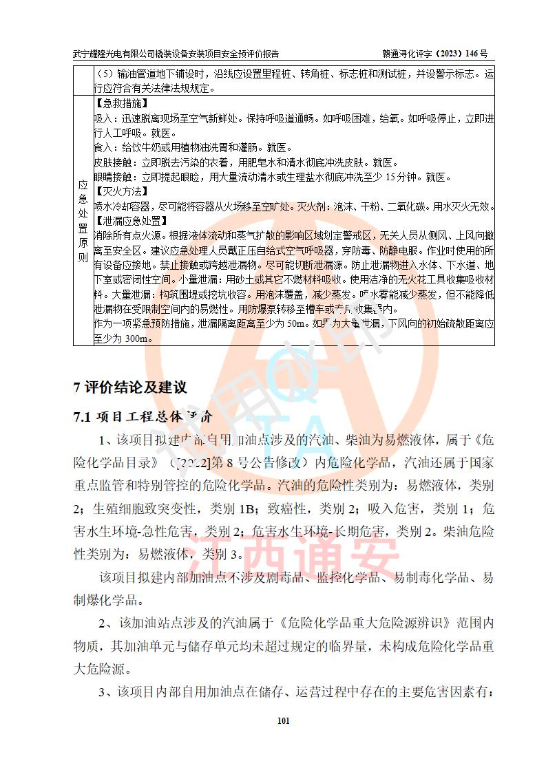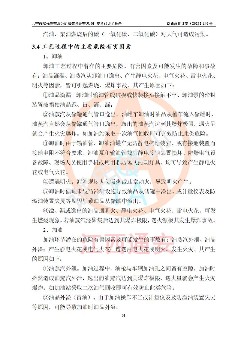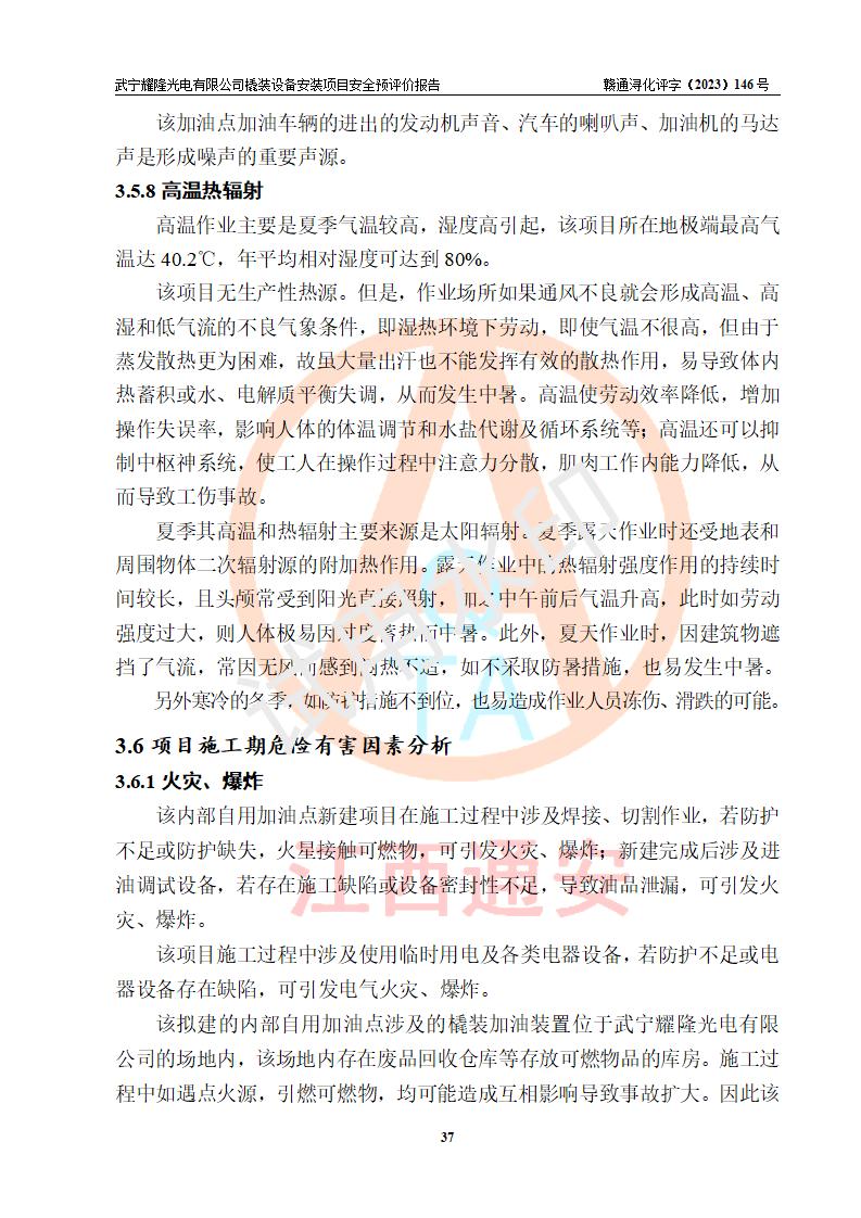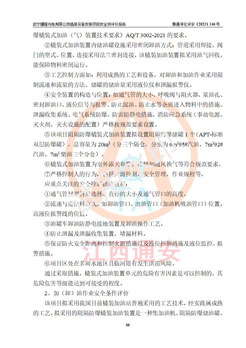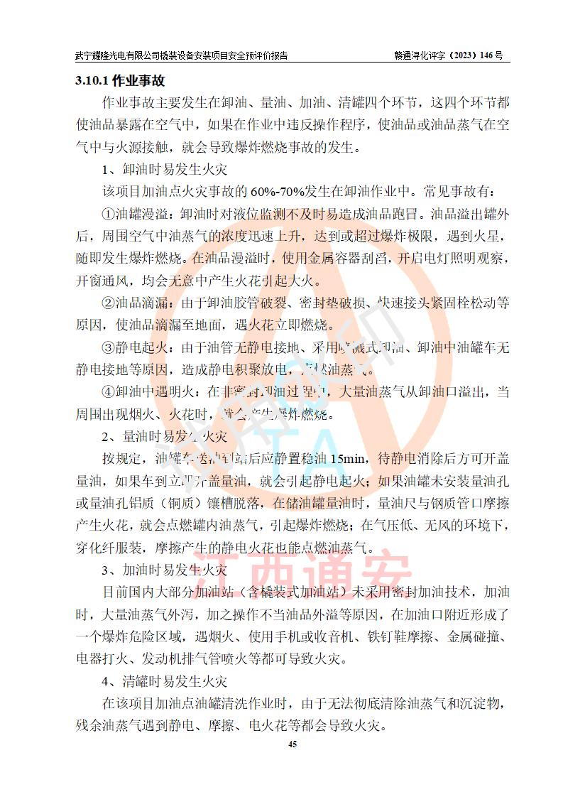 項(xiàng)目簡(jiǎn)介 | 武寧耀隆光電有限公司,成立于2013年07月04日。公司地址位于江西省九江市武寧縣萬(wàn)福工業(yè)園。經(jīng)營(yíng)范圍:節(jié)能燈、照明電器、LED照明、燈具配件、銷售(以上項(xiàng)目**有專項(xiàng)規(guī)定的憑**許可證經(jīng)營(yíng))。 武寧耀隆光電有限公司為了滿足公司自用**內(nèi)部加油的需要,擬在九江市武寧縣萬(wàn)福工業(yè)園武寧耀隆光電有限公司自有廠區(qū)用地紅線內(nèi)的南側(cè)閑置空地新建一處企業(yè)自用橇裝式加油裝置,該企業(yè)自用橇裝式加油裝置擬采用的加油裝置為阻隔防爆橇裝式加油裝置,是集加油機(jī)、阻隔防爆儲(chǔ)油罐、阻隔防爆油氣回收裝置和自動(dòng)滅火器于一體的地面加油設(shè)備(橇裝機(jī)),屬于成套裝置。該項(xiàng)目阻隔防爆橇裝式加油裝置擬設(shè)置阻隔防爆儲(chǔ)罐1個(gè)(APT-標(biāo)準(zhǔn)雙層防爆罐),總?cè)萘繛?/span>20m3 該項(xiàng)目擬建內(nèi)部自用加油點(diǎn)涉及的汽油、柴油為易燃液體,屬于《危險(xiǎn)化學(xué)品目錄》([2022]第8號(hào)公告修改)內(nèi)危險(xiǎn)化學(xué)品,汽油還屬于**重點(diǎn)監(jiān)管和特別管控的危險(xiǎn)化學(xué)品。 該項(xiàng)目擬建內(nèi)部加油點(diǎn)不涉及劇毒品、監(jiān)控化學(xué)品、易制毒化學(xué)品、易制爆化學(xué)品。 該加油站點(diǎn)涉及的汽油屬于《危險(xiǎn)化學(xué)品重大危險(xiǎn)源辨識(shí)》范圍內(nèi)物質(zhì),其加油單元與儲(chǔ)存單元均未*過(guò)規(guī)定的臨界量,未構(gòu)成危險(xiǎn)化學(xué)品重大危險(xiǎn)源。 | |||