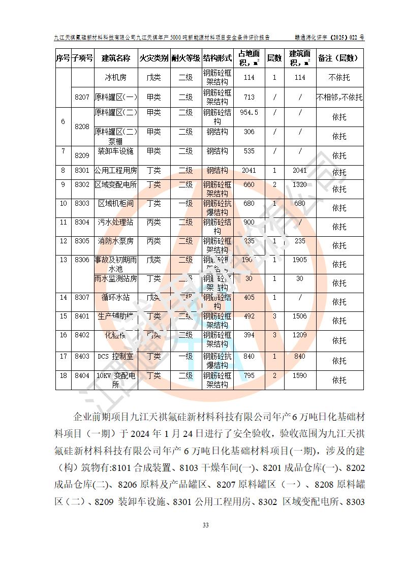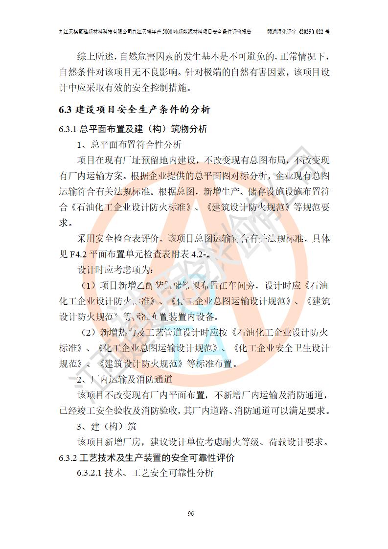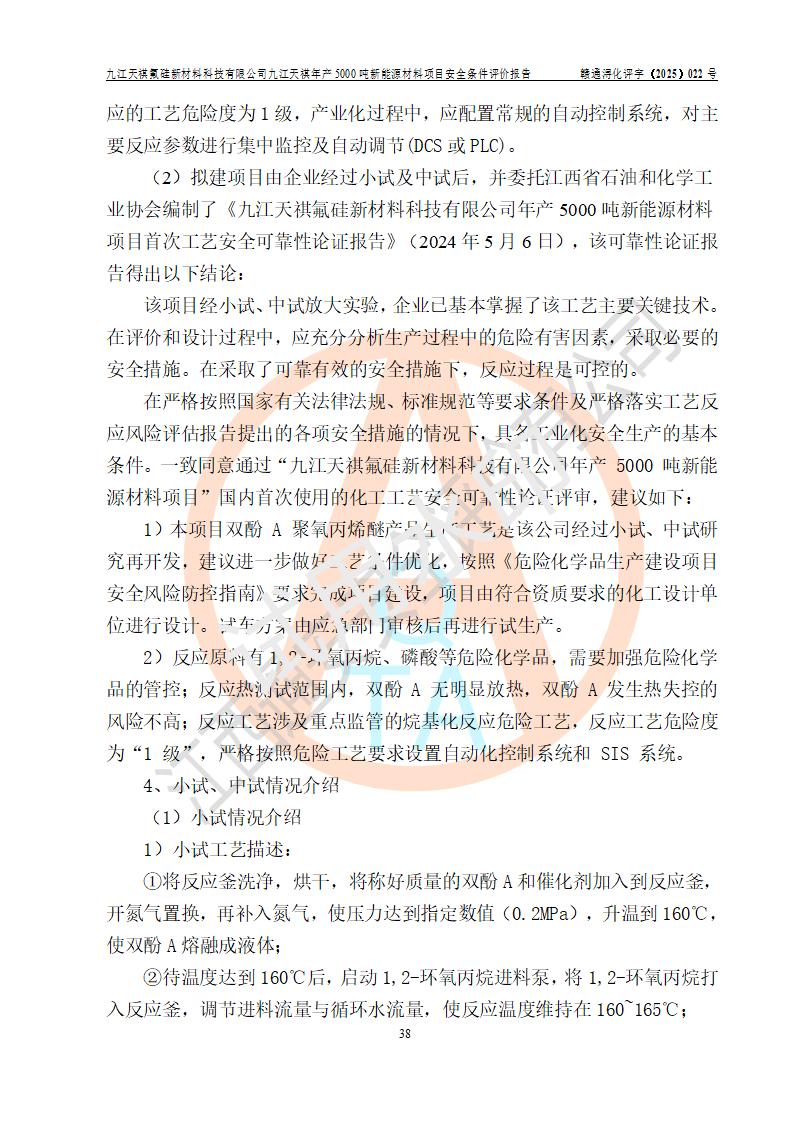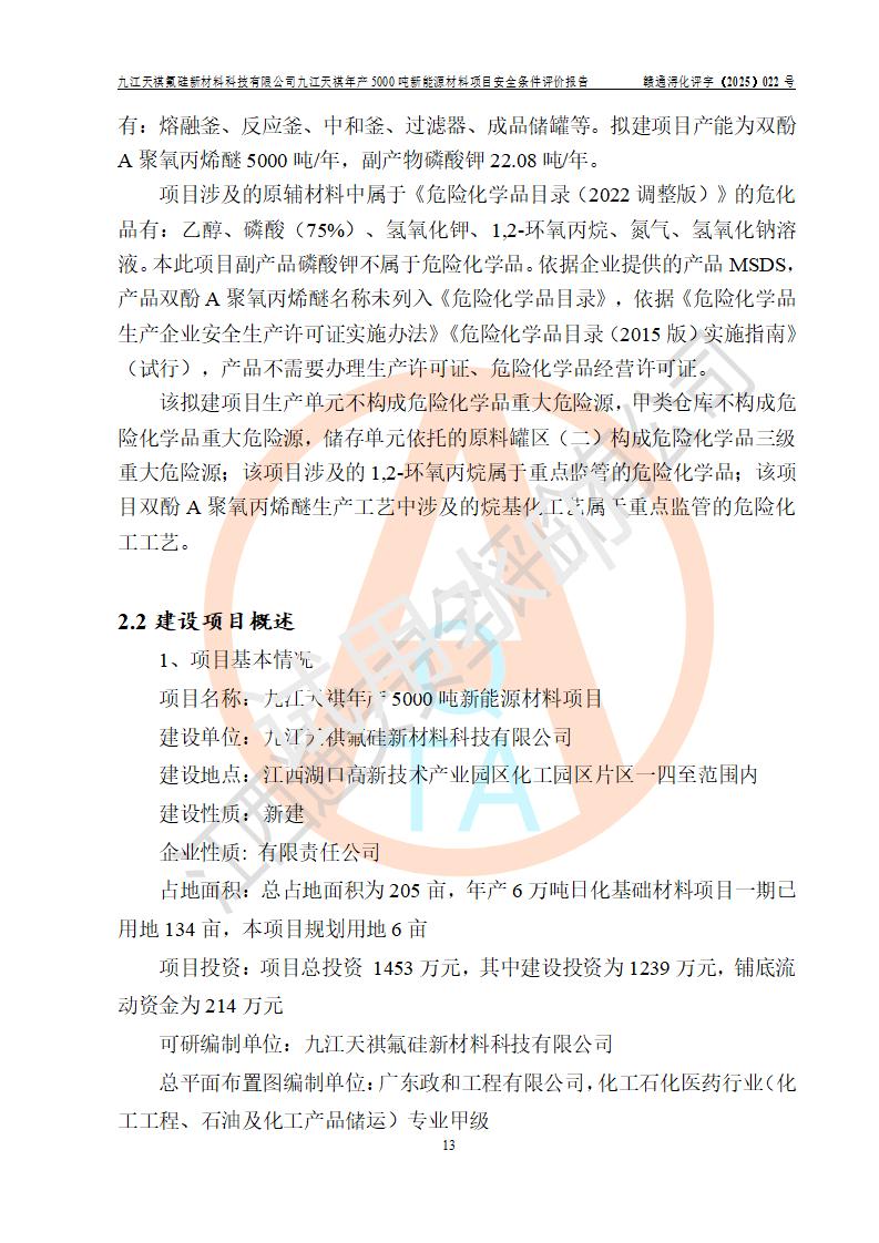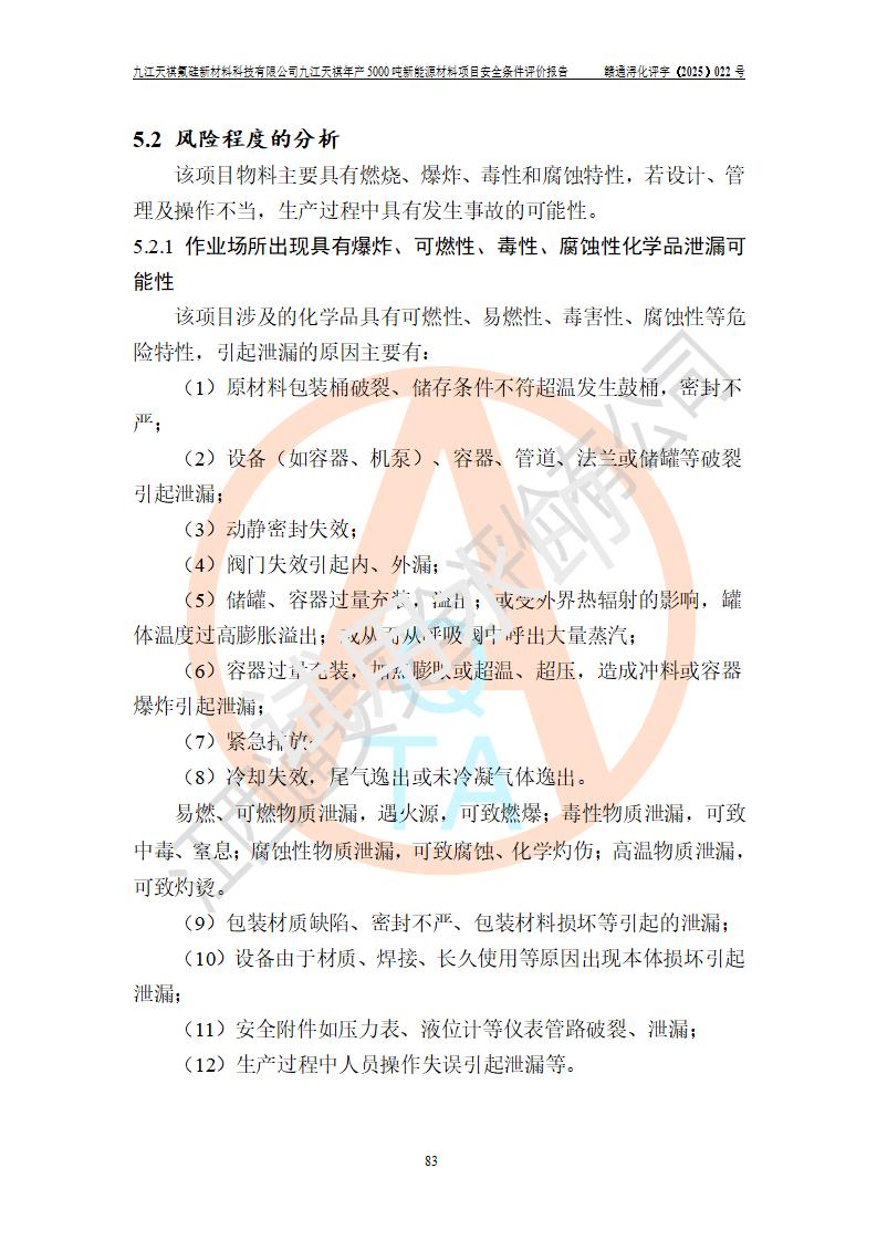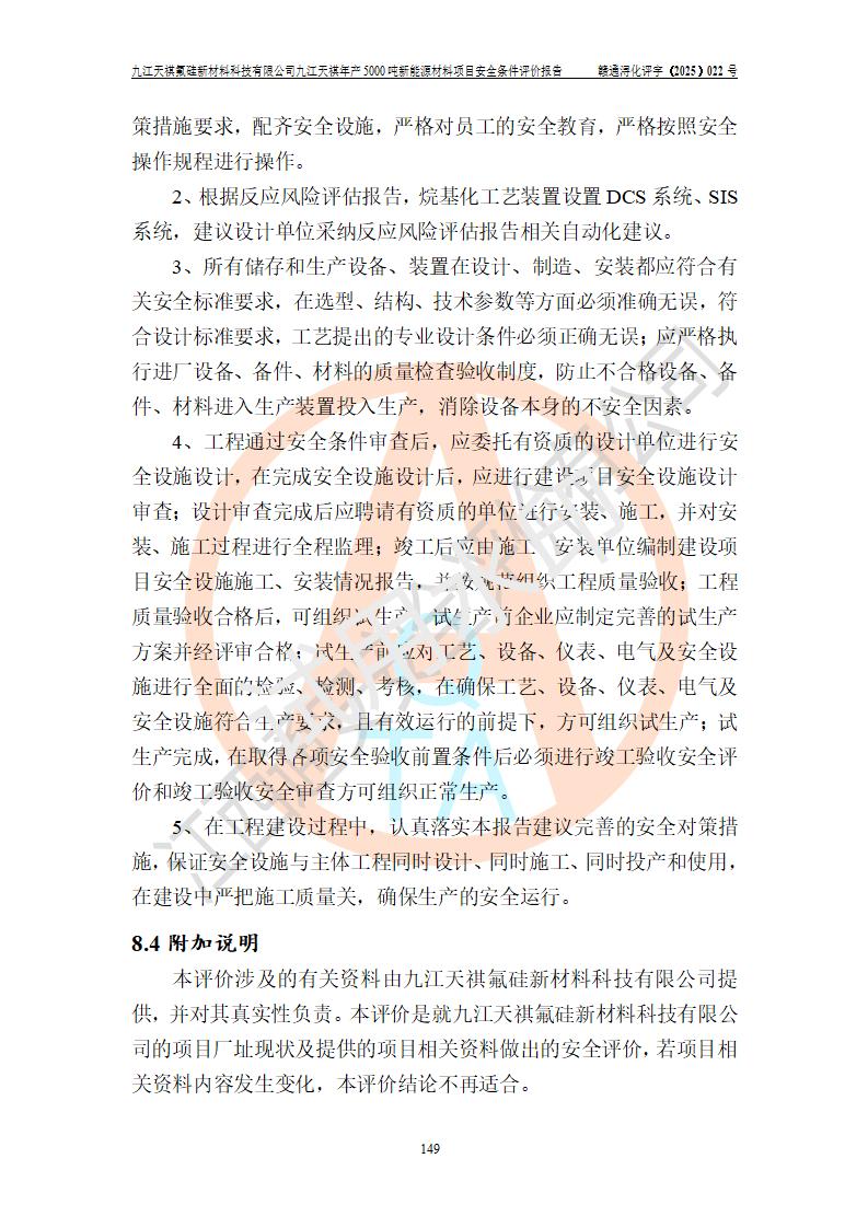 九江天祺氟硅新材料科技有限公司九江天祺年產(chǎn)5000 噸新能源材料項目安全條件評價報告