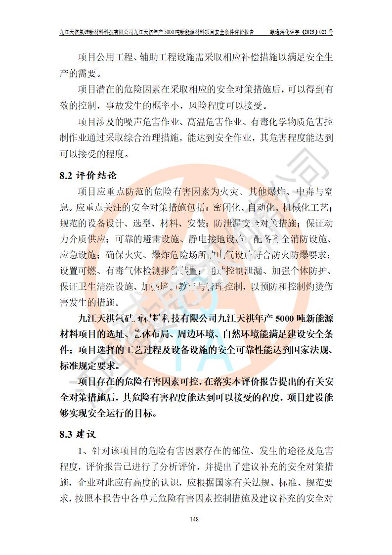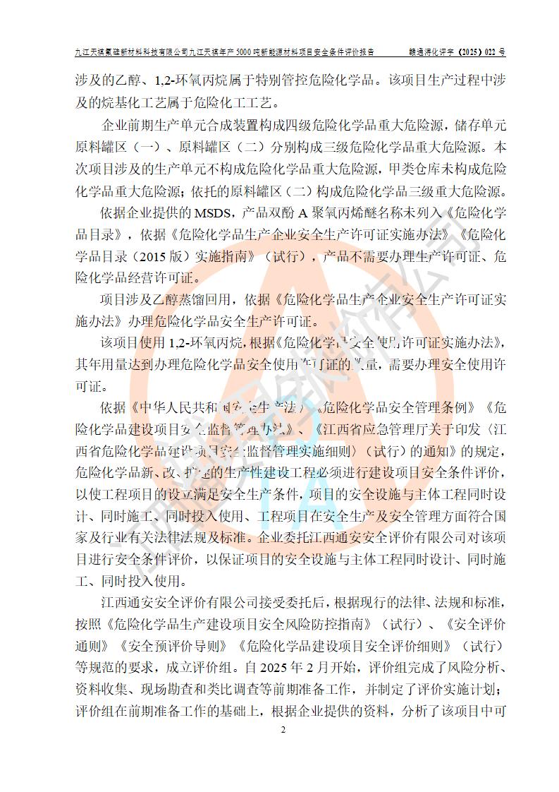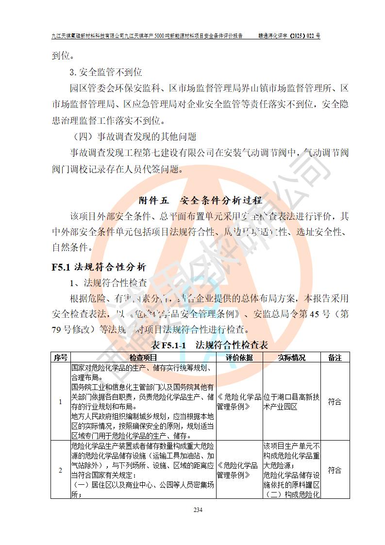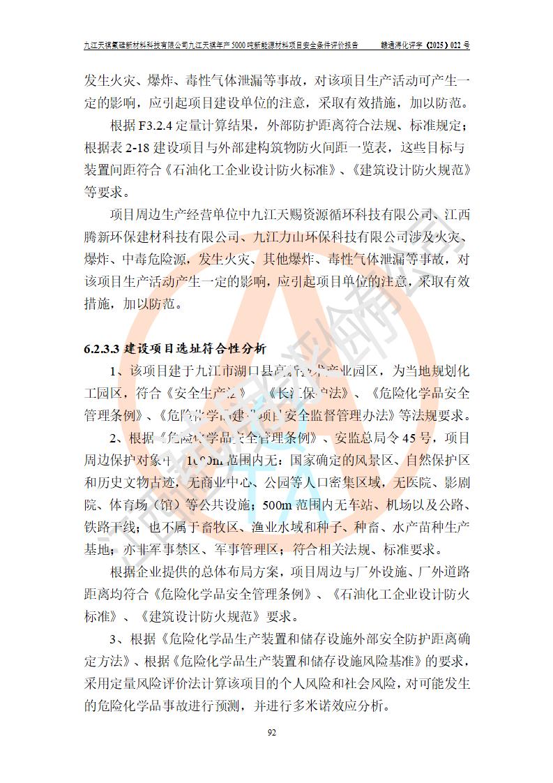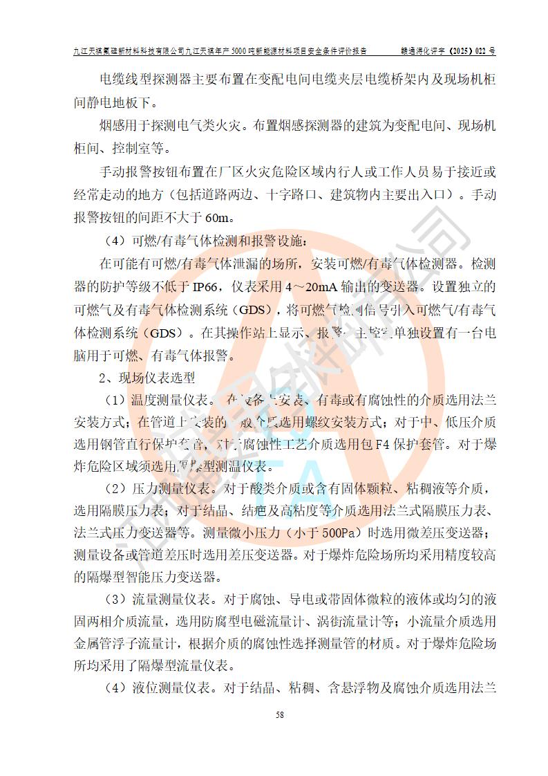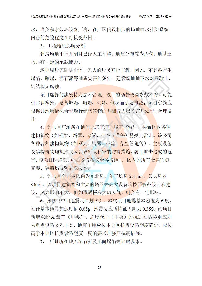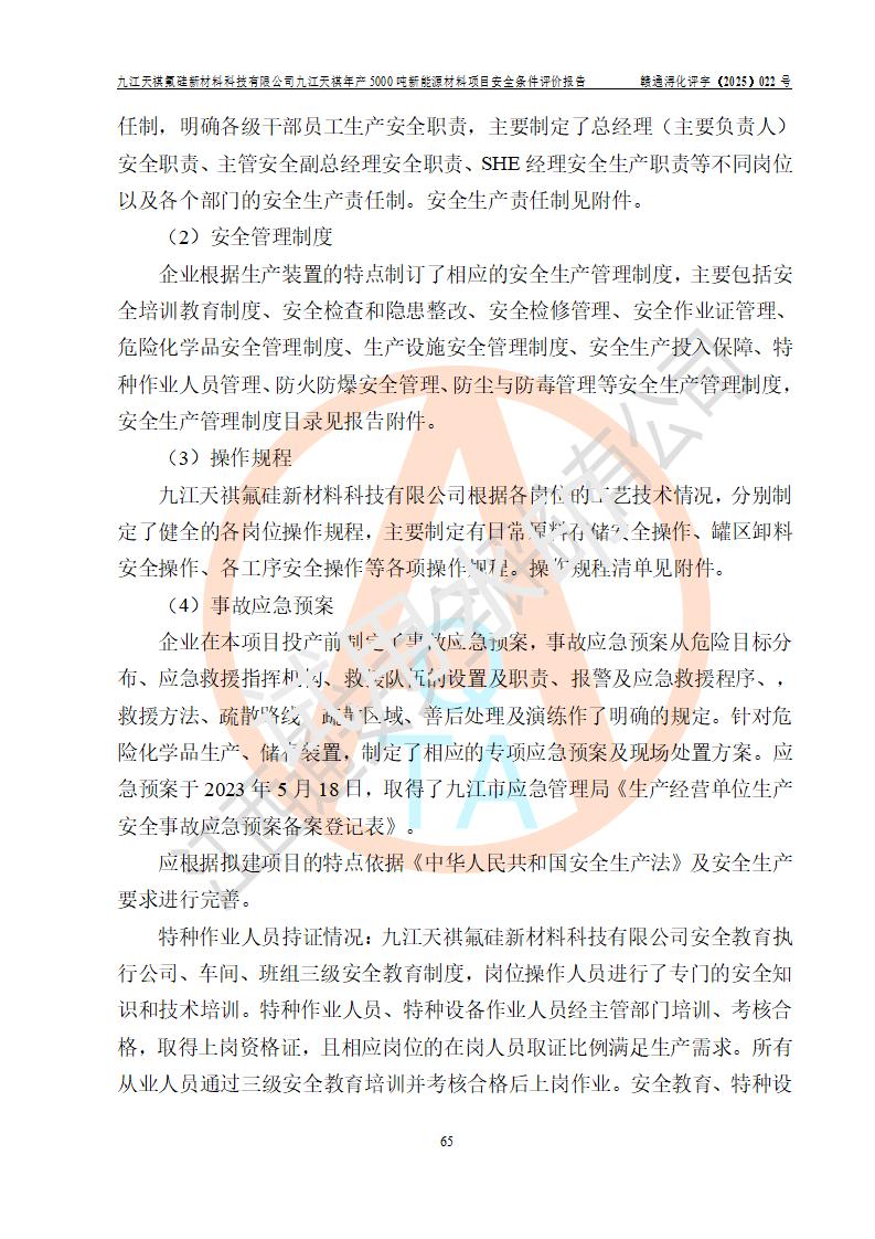 九江天祺氟硅新材料科技有限公司九江天祺年產(chǎn)5000 噸新能源材料項目安全條件評價報告