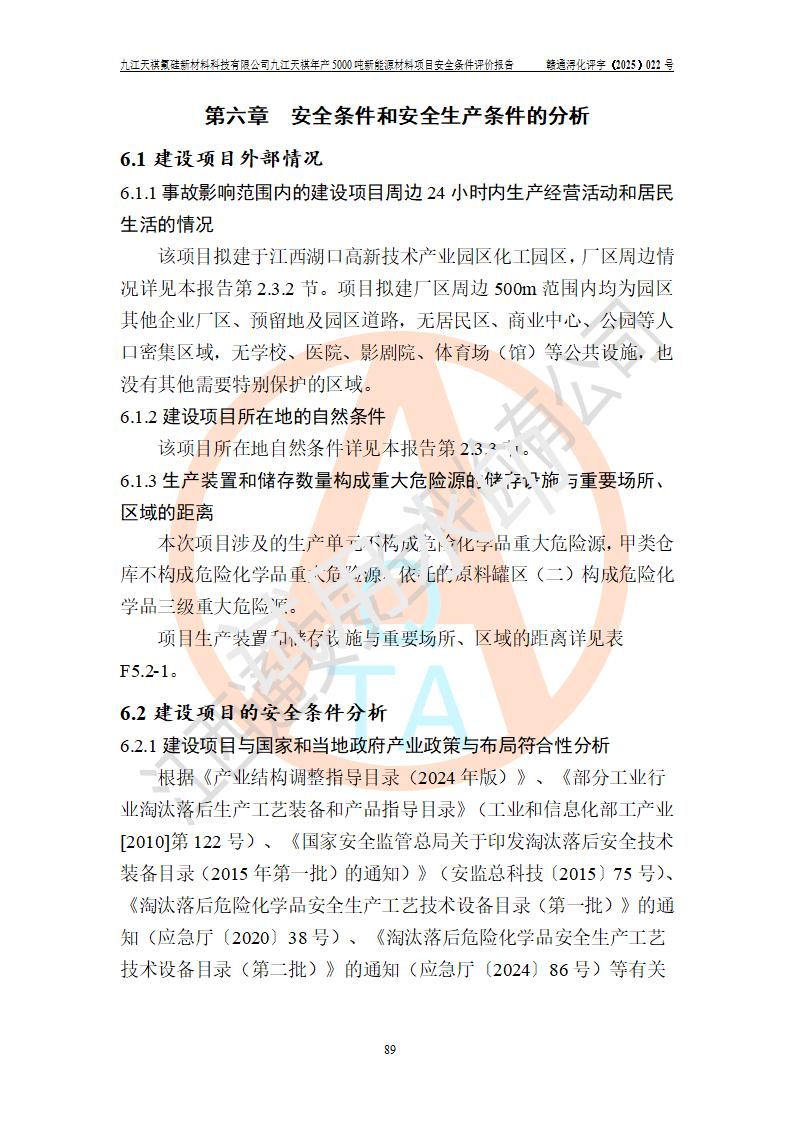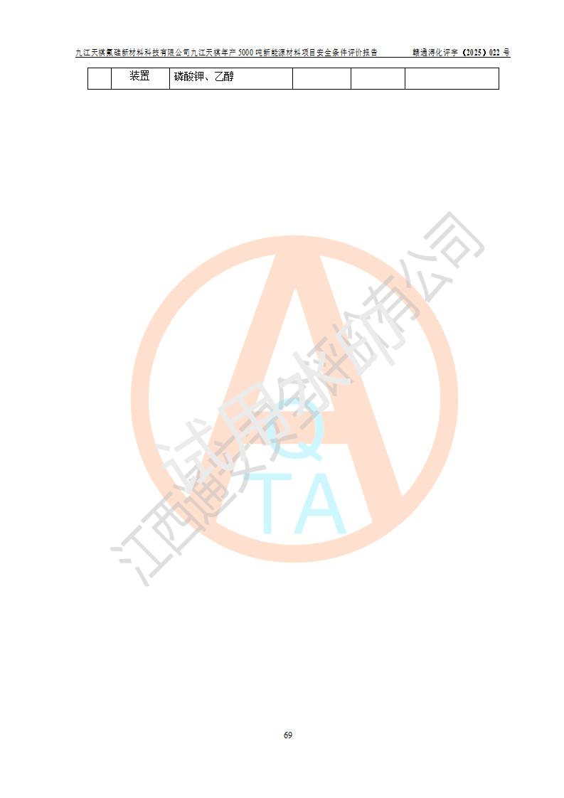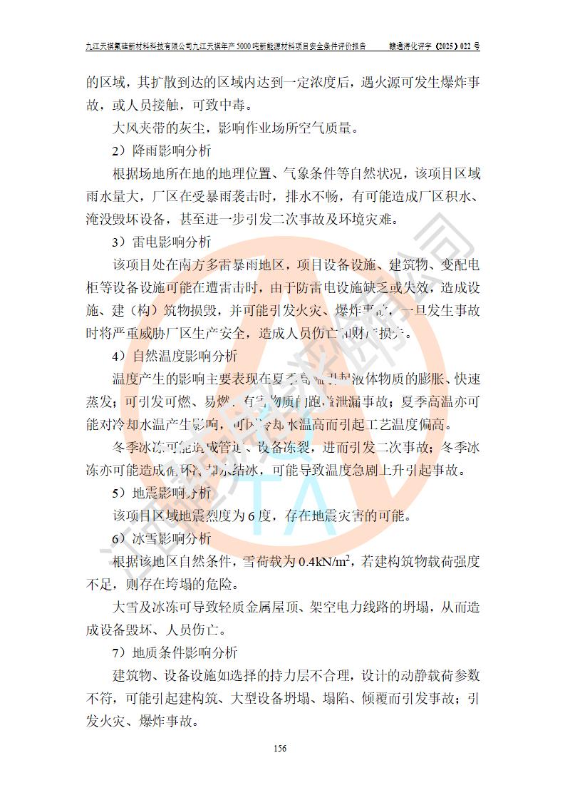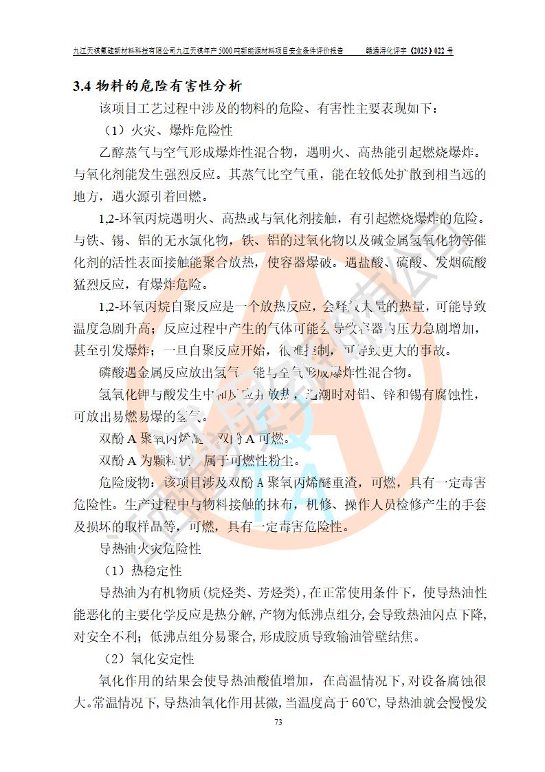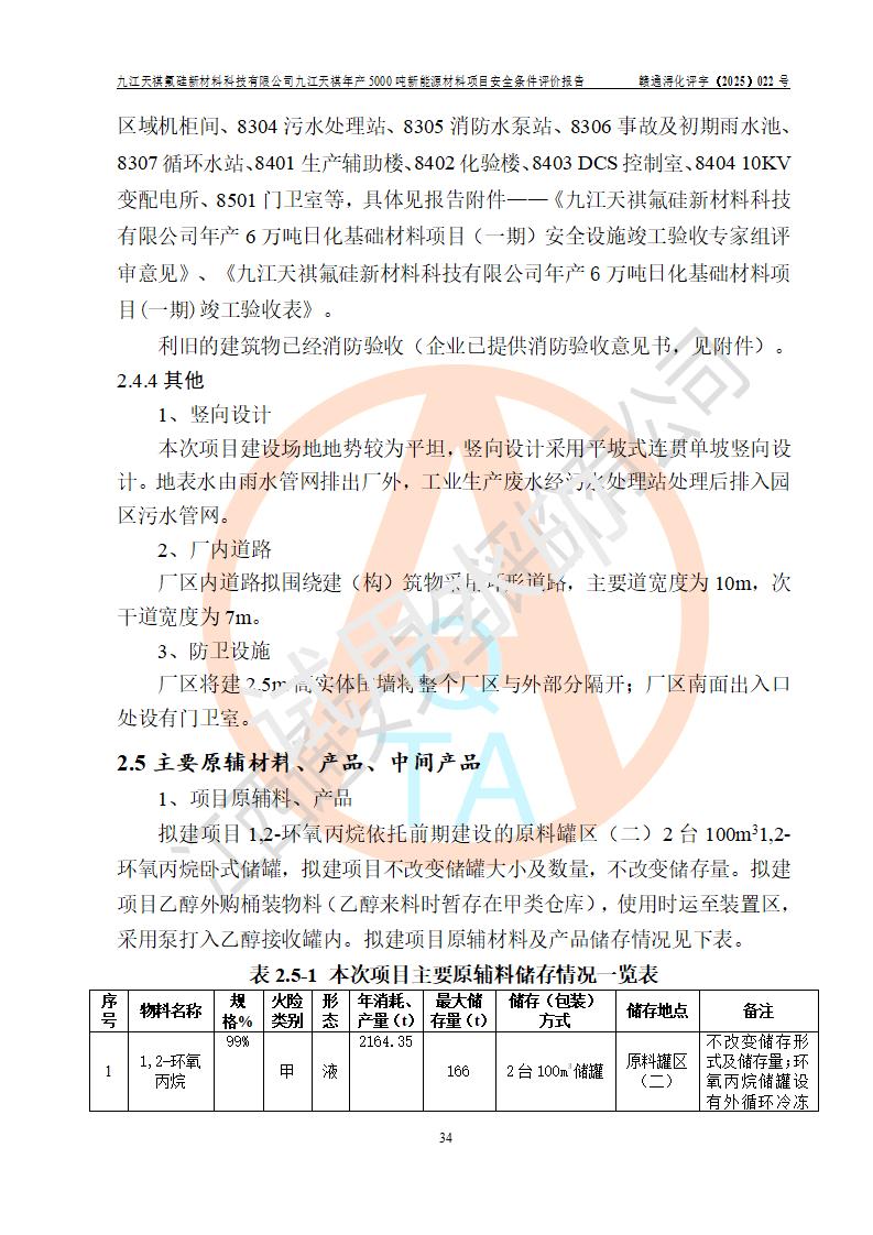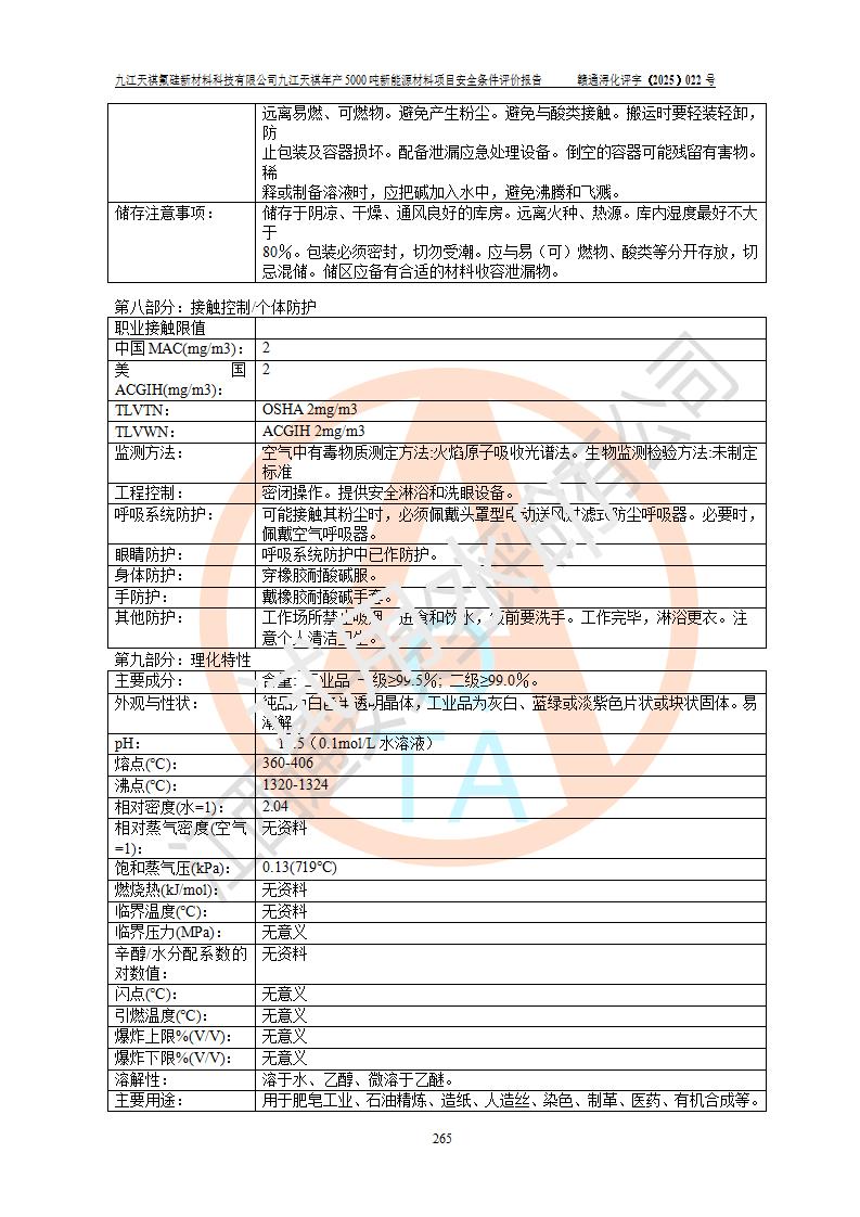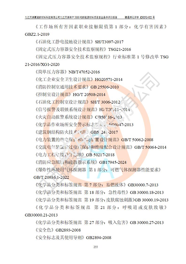 九江天祺氟硅新材料科技有限公司九江天祺年產(chǎn)5000 噸新能源材料項目安全條件評價報告