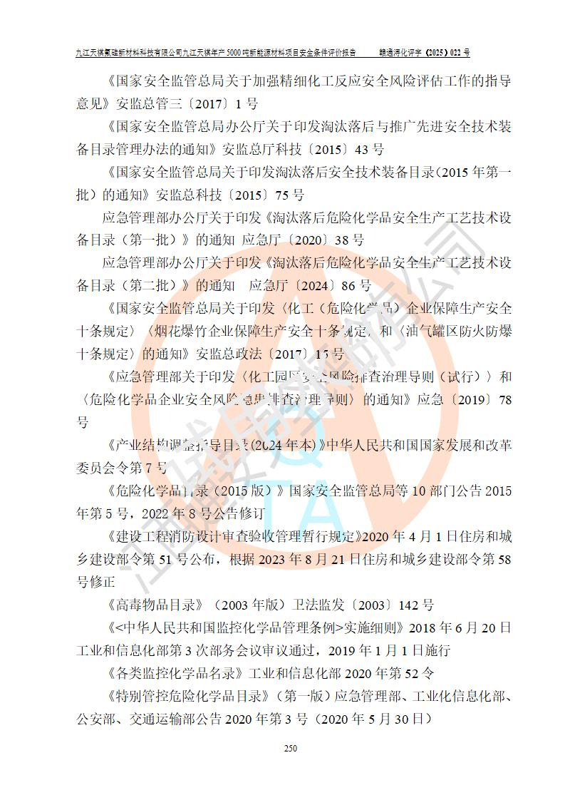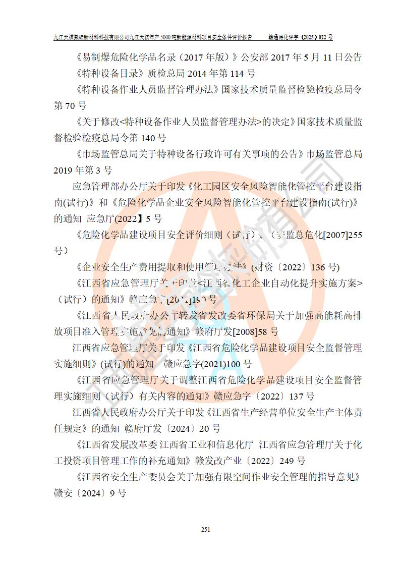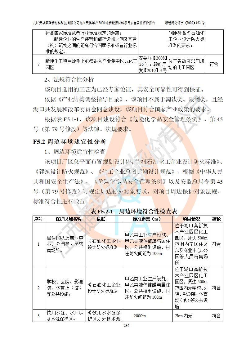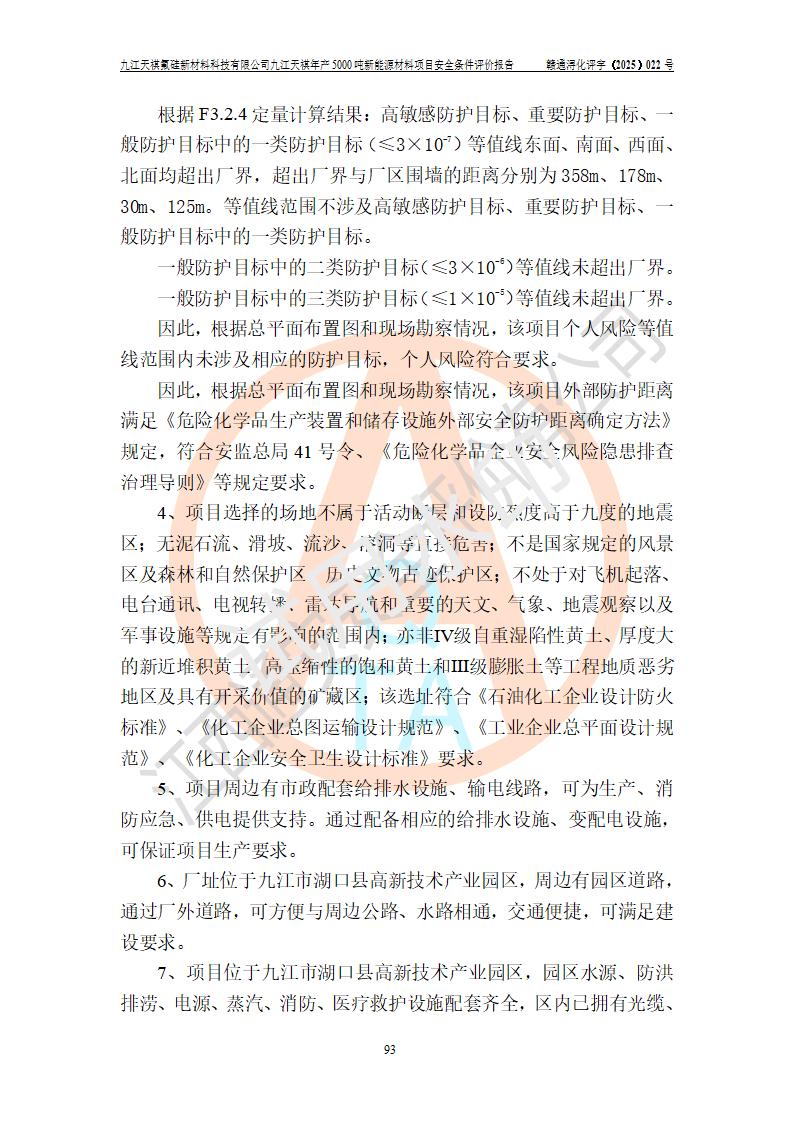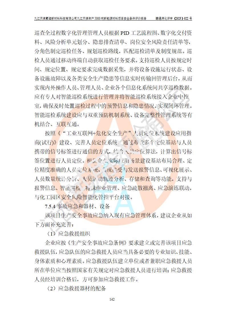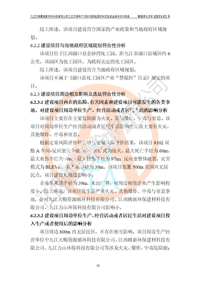 九江天祺氟硅新材料科技有限公司九江天祺年產(chǎn)5000 噸新能源材料項目安全條件評價報告