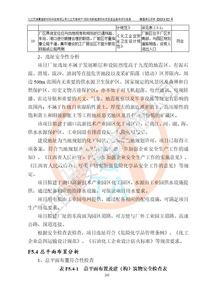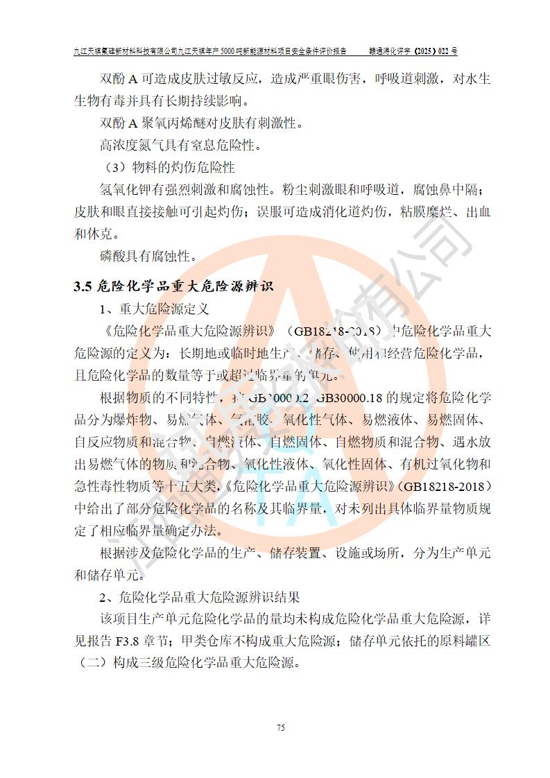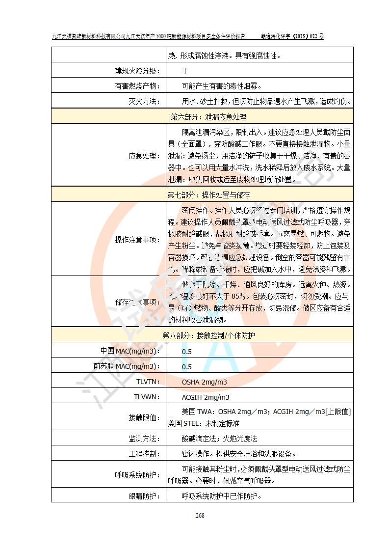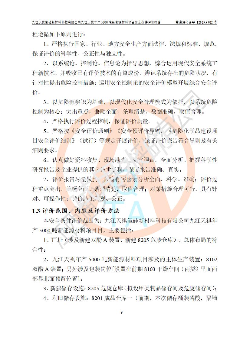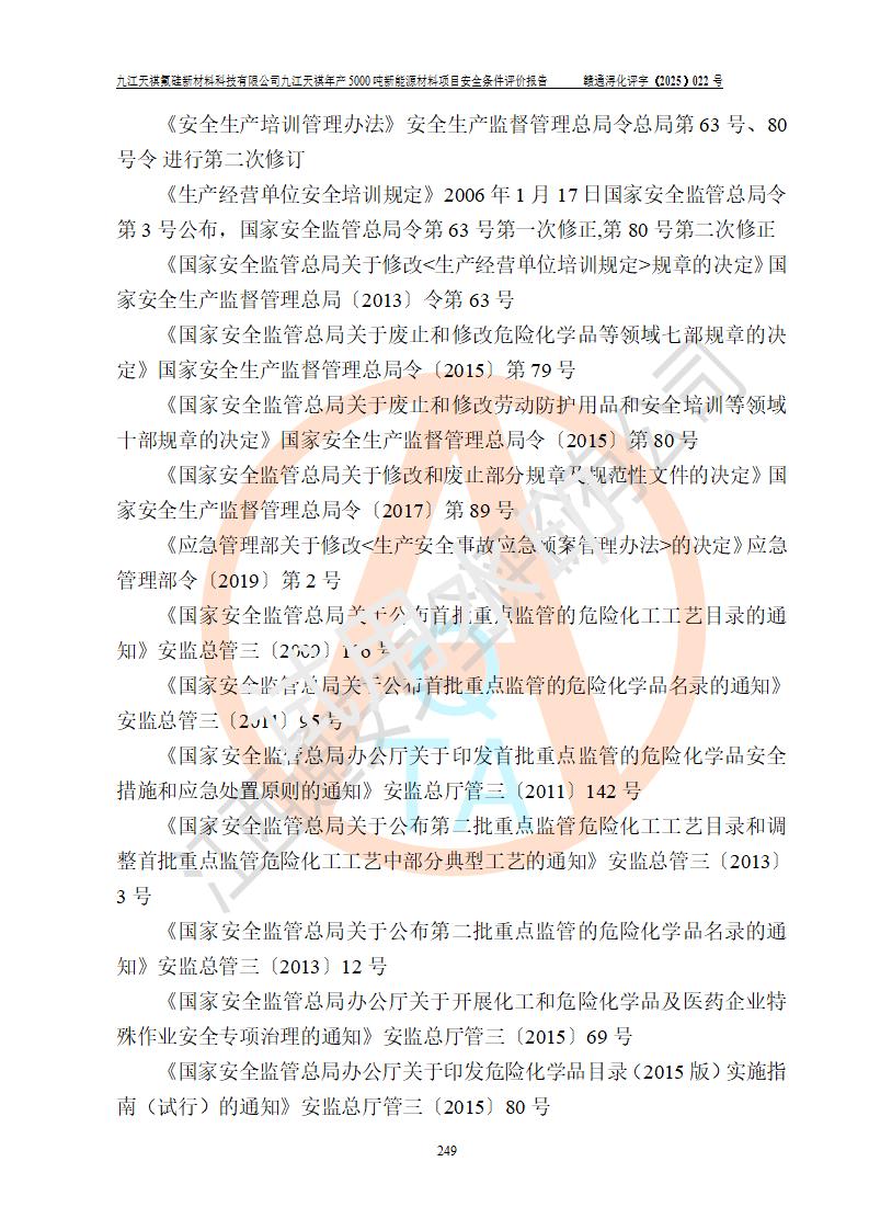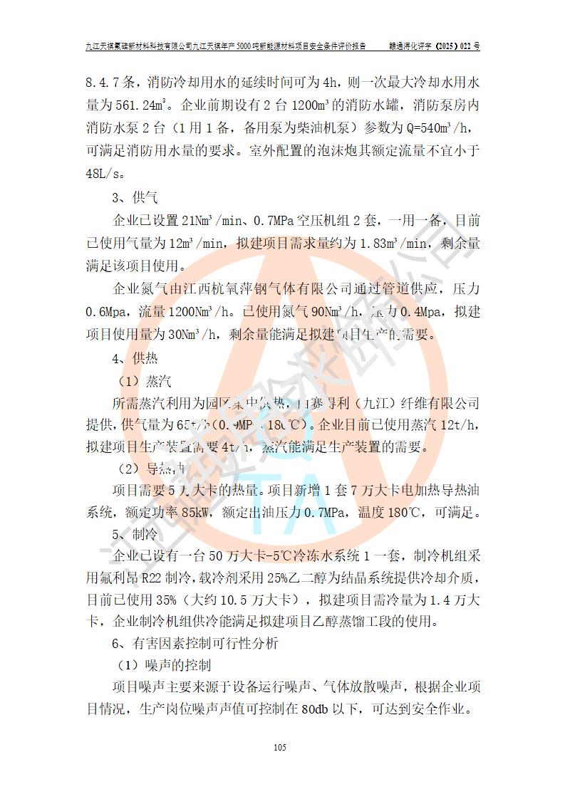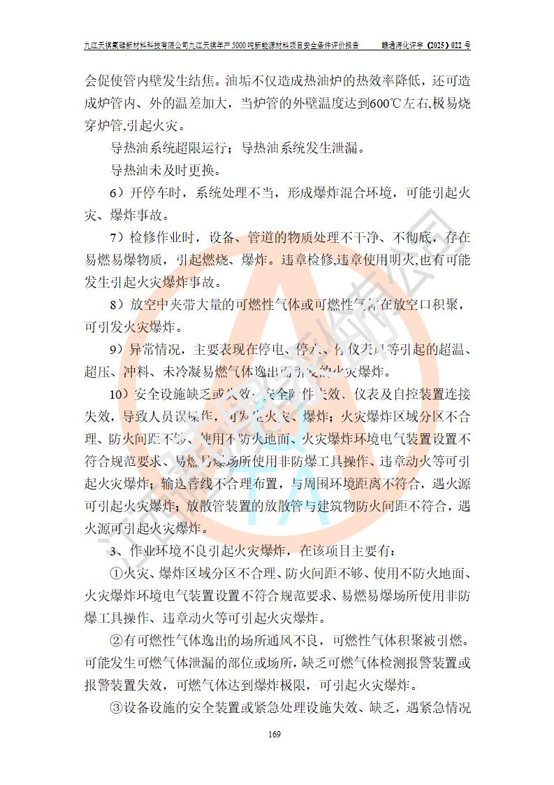 九江天祺氟硅新材料科技有限公司九江天祺年產(chǎn)5000 噸新能源材料項目安全條件評價報告