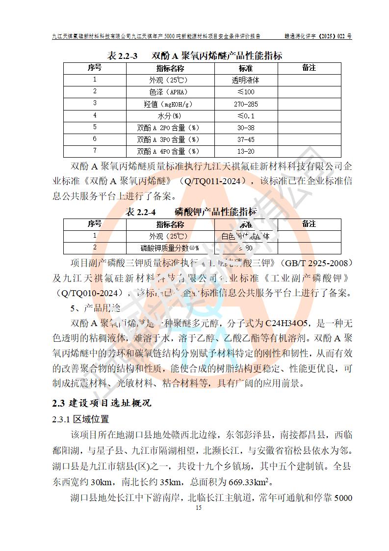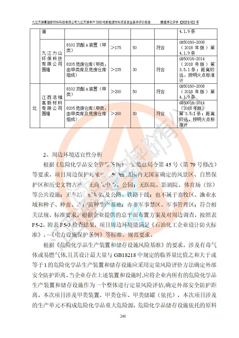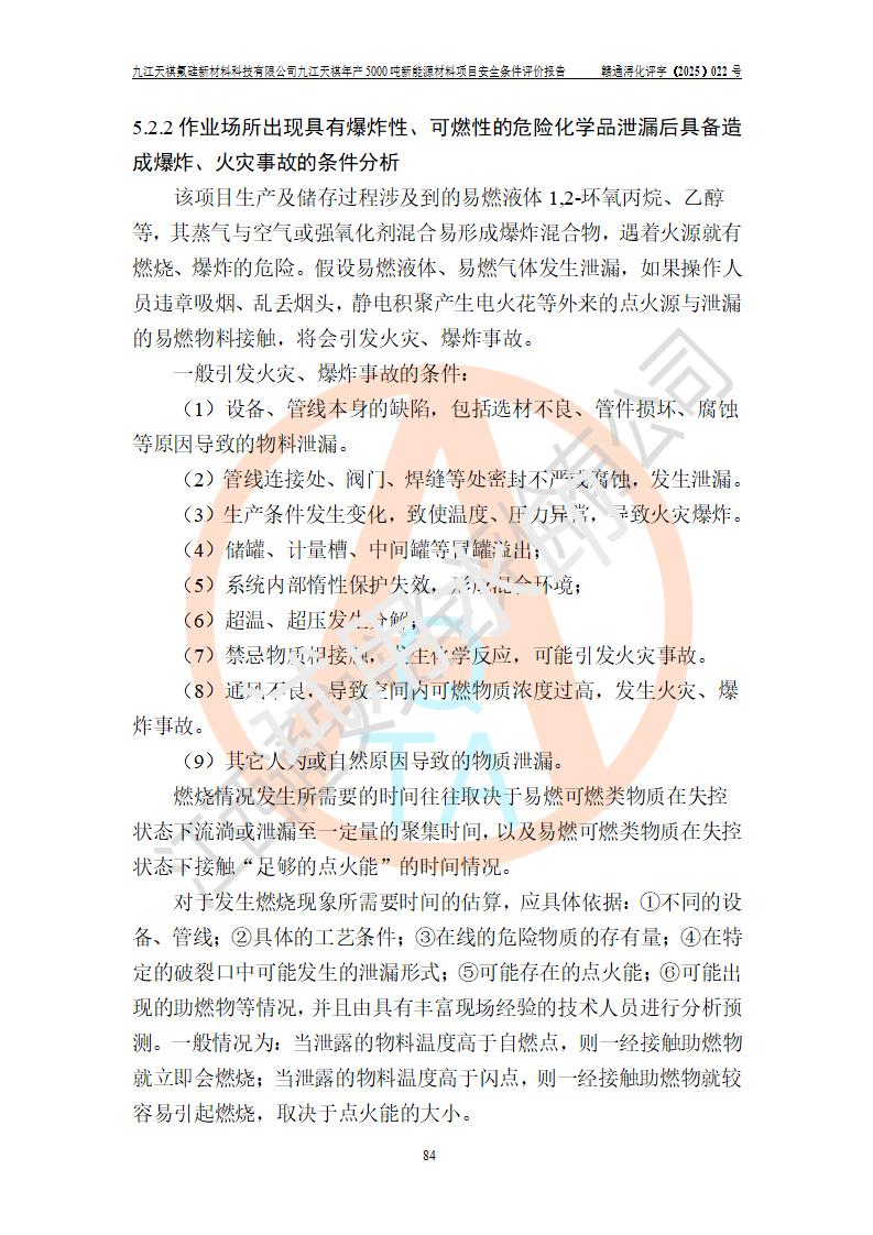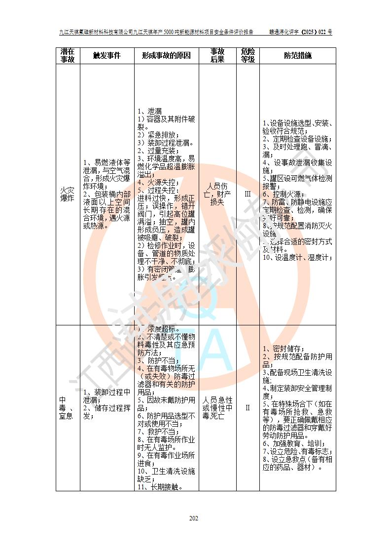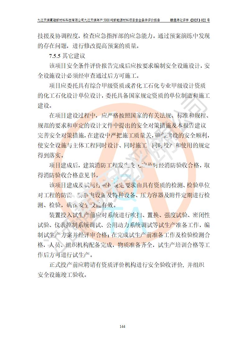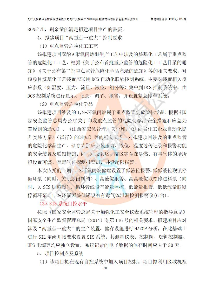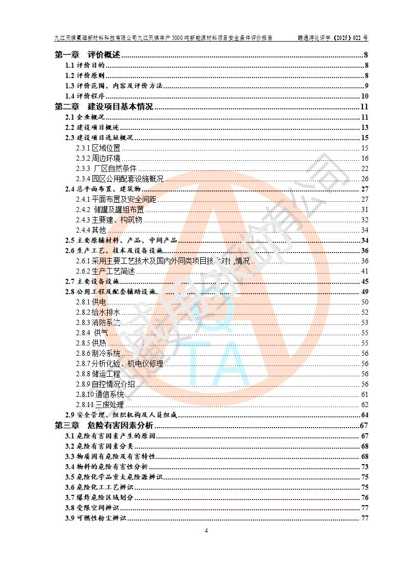 九江天祺氟硅新材料科技有限公司九江天祺年產(chǎn)5000 噸新能源材料項目安全條件評價報告