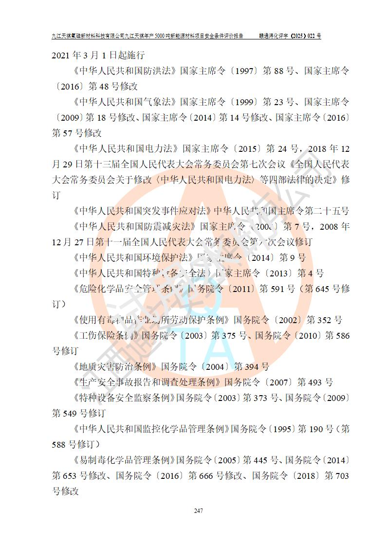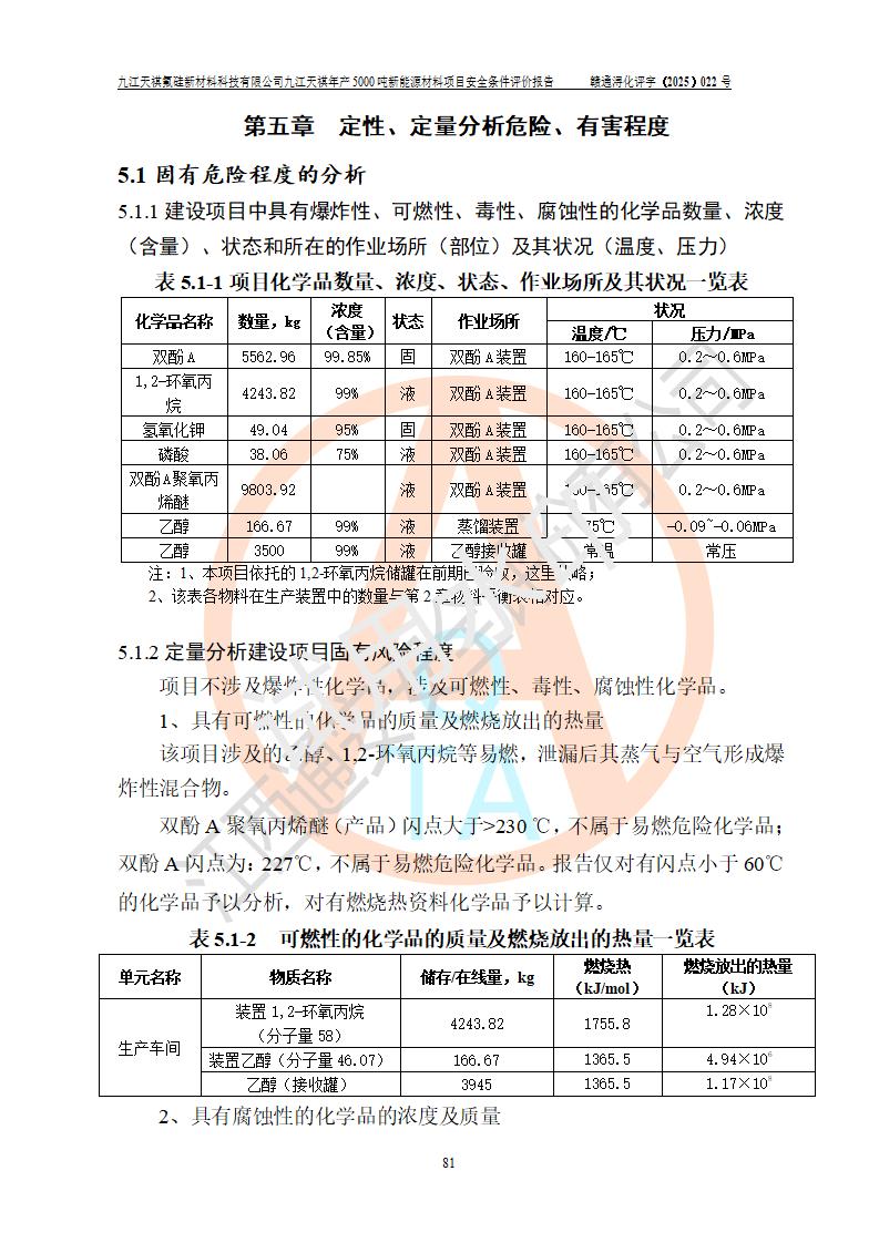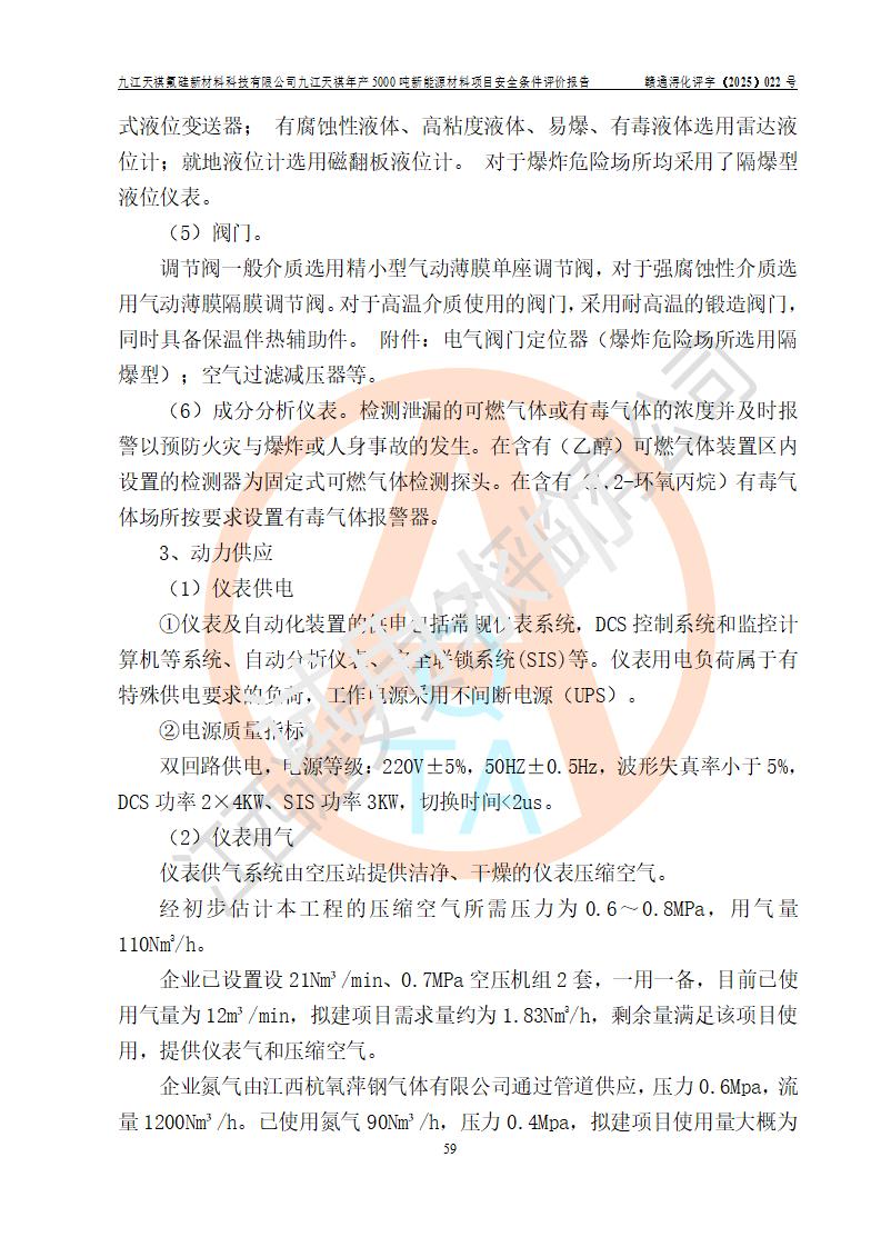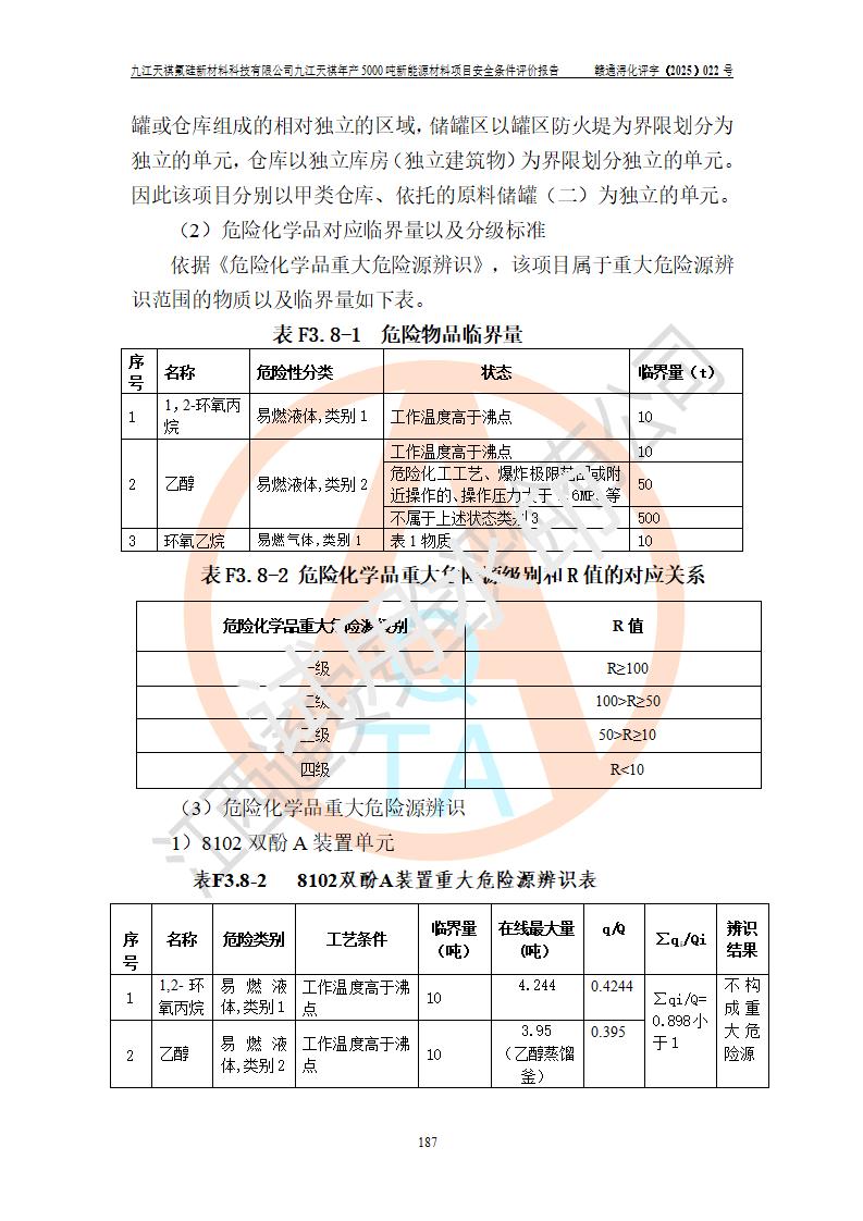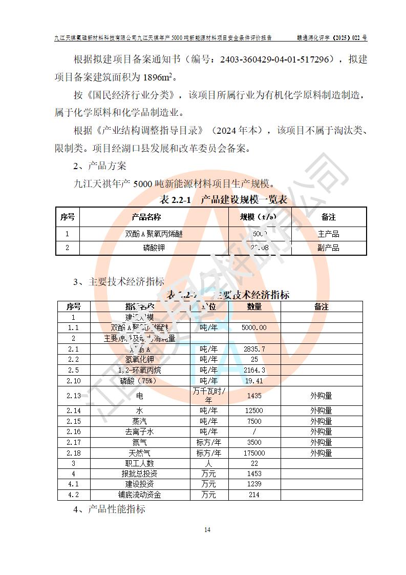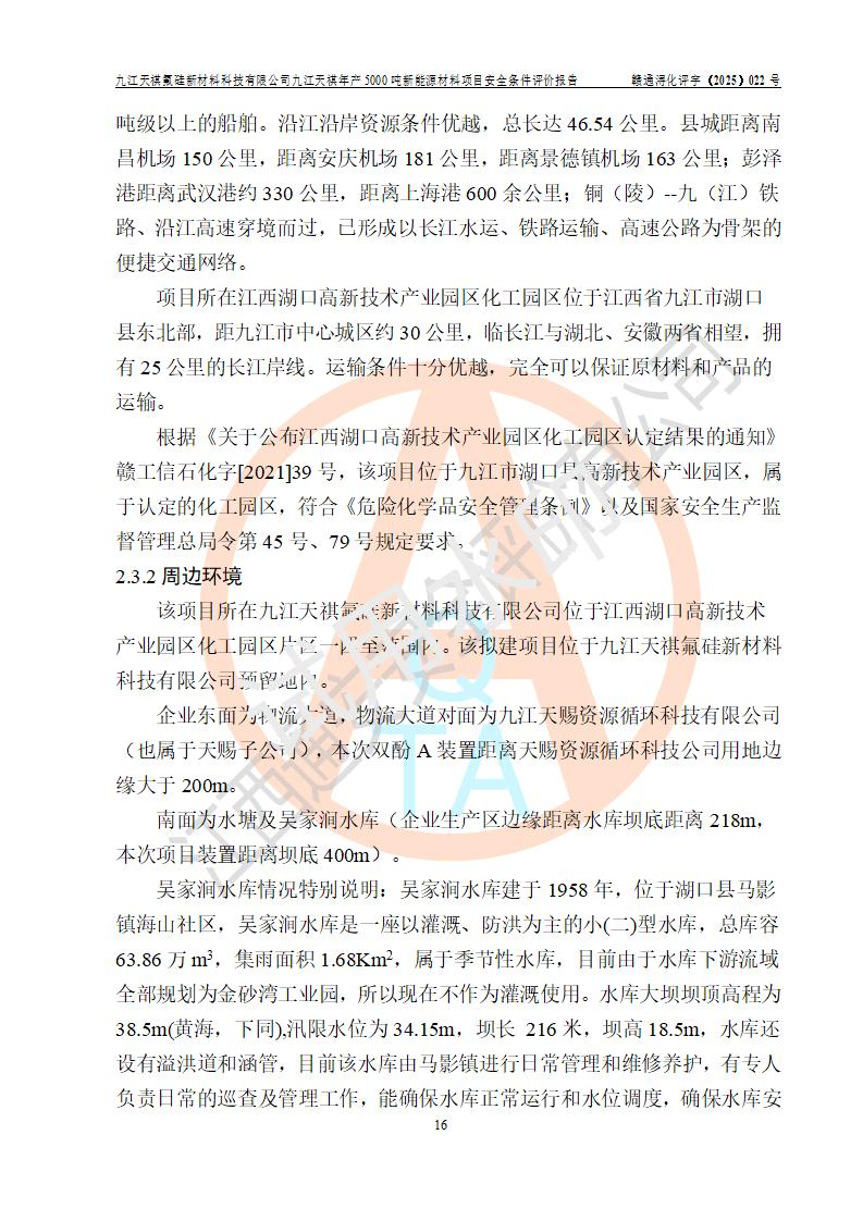 九江天祺氟硅新材料科技有限公司九江天祺年產(chǎn)5000 噸新能源材料項目安全條件評價報告