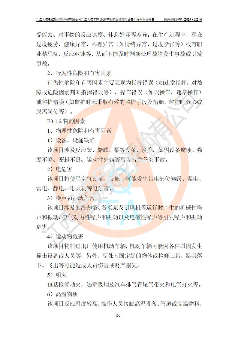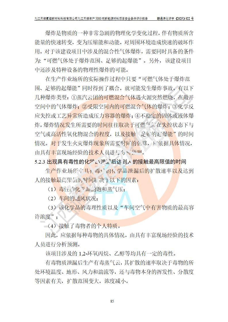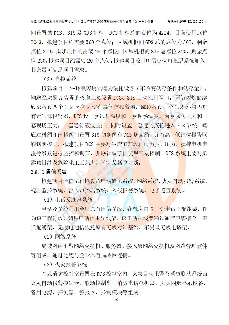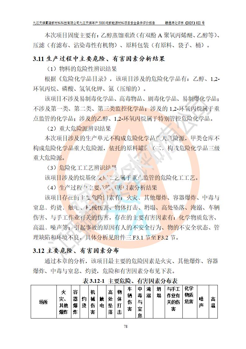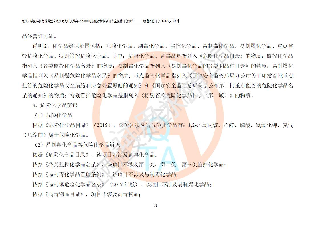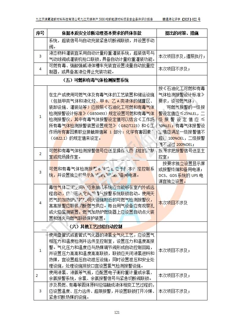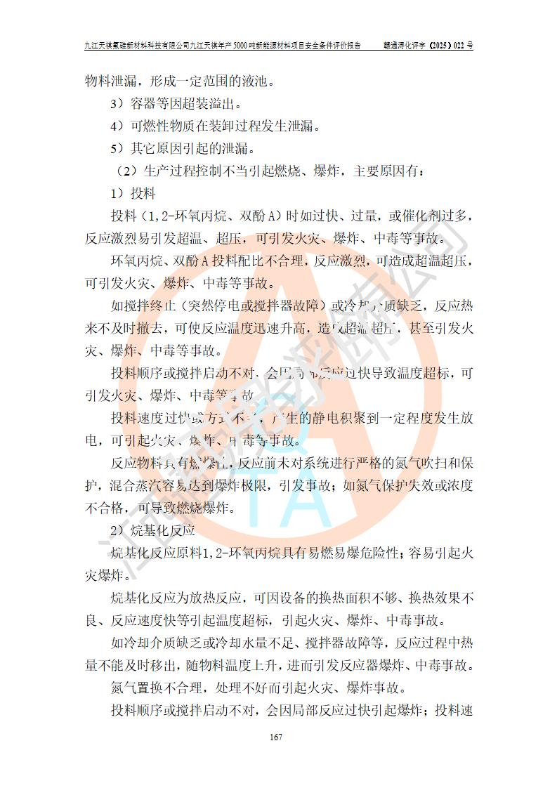 九江天祺氟硅新材料科技有限公司九江天祺年產(chǎn)5000 噸新能源材料項目安全條件評價報告