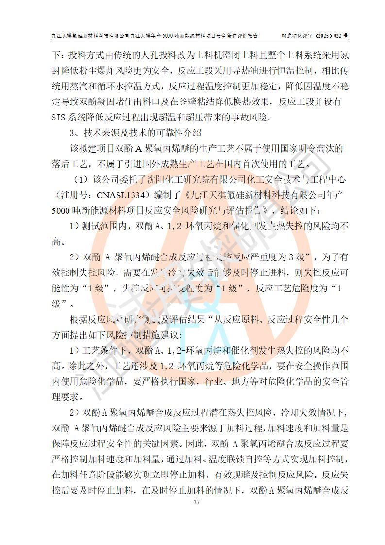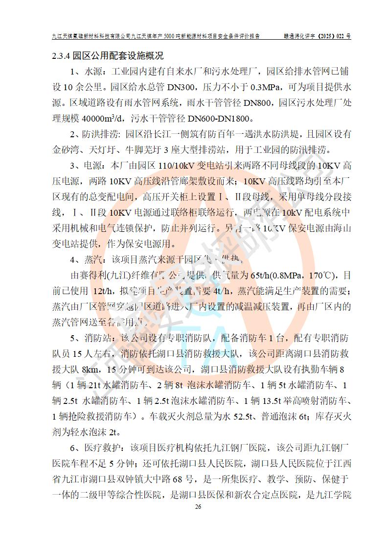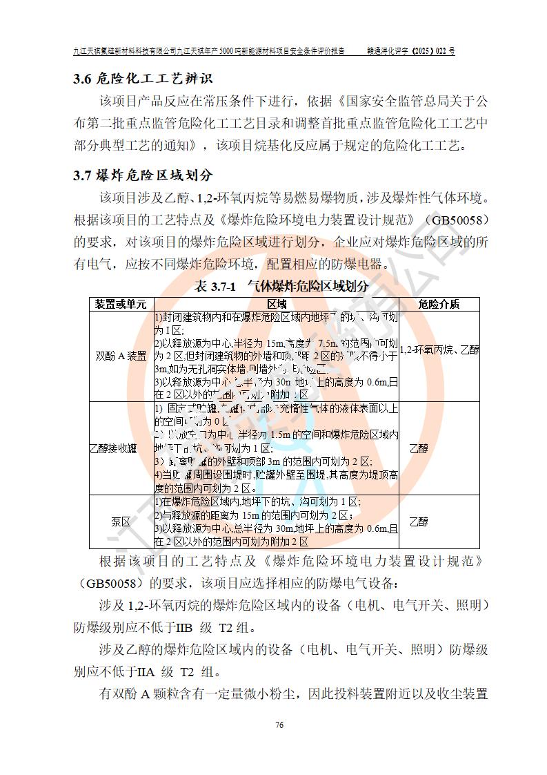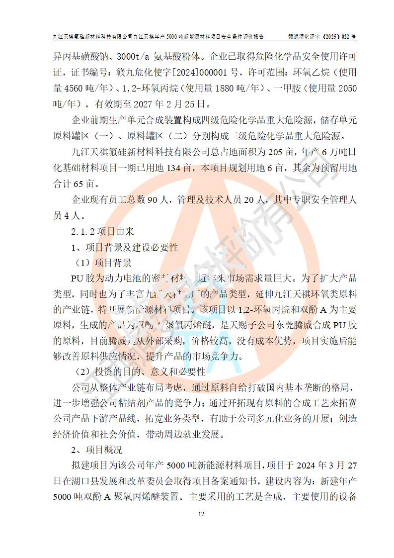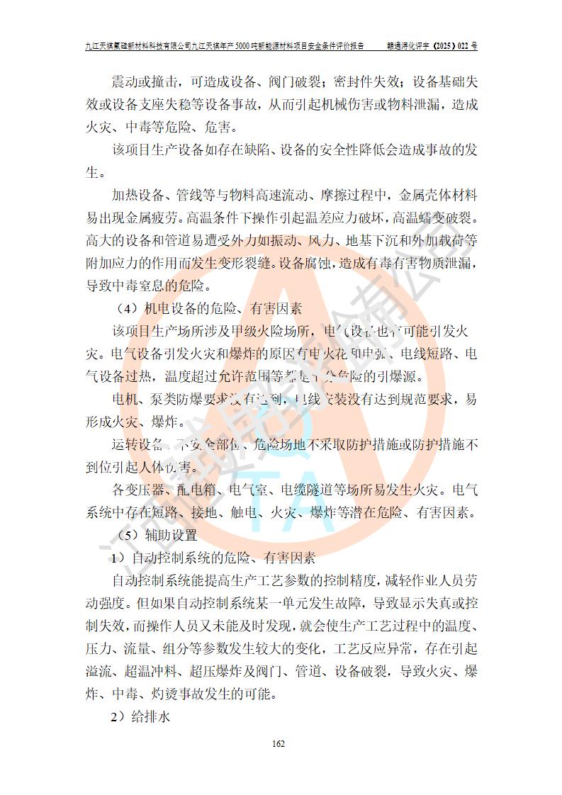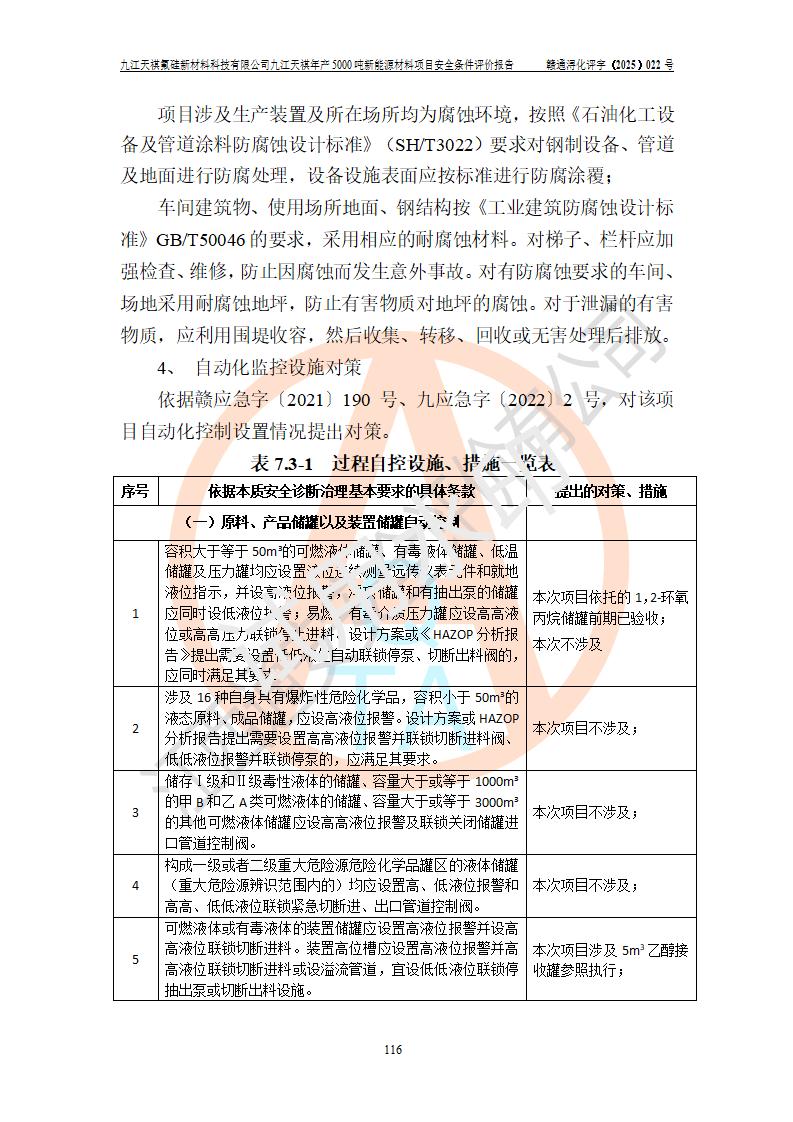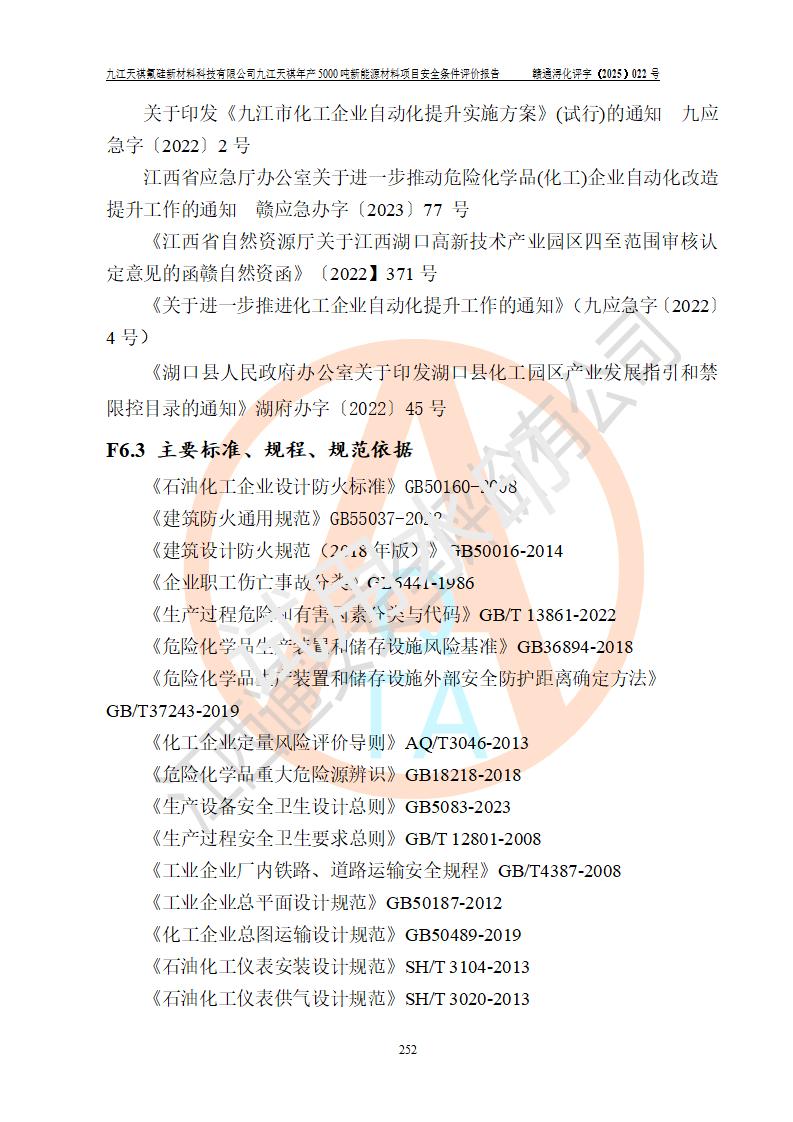 九江天祺氟硅新材料科技有限公司九江天祺年產(chǎn)5000 噸新能源材料項目安全條件評價報告