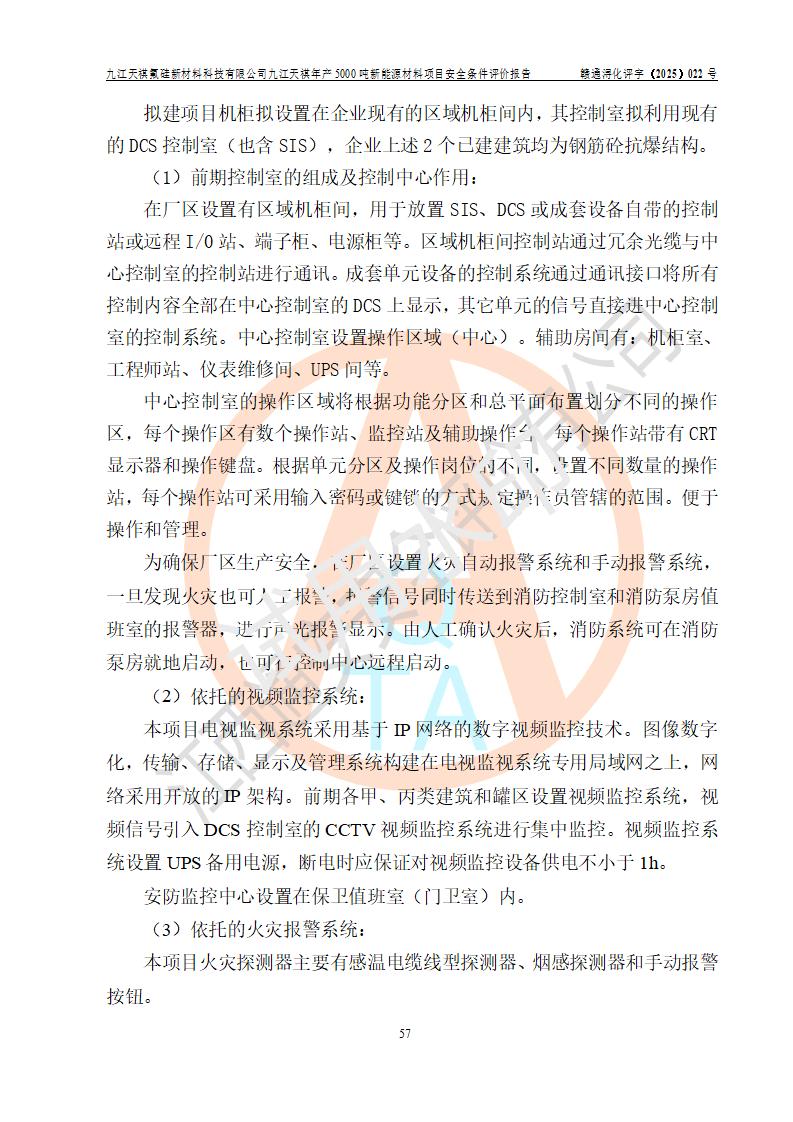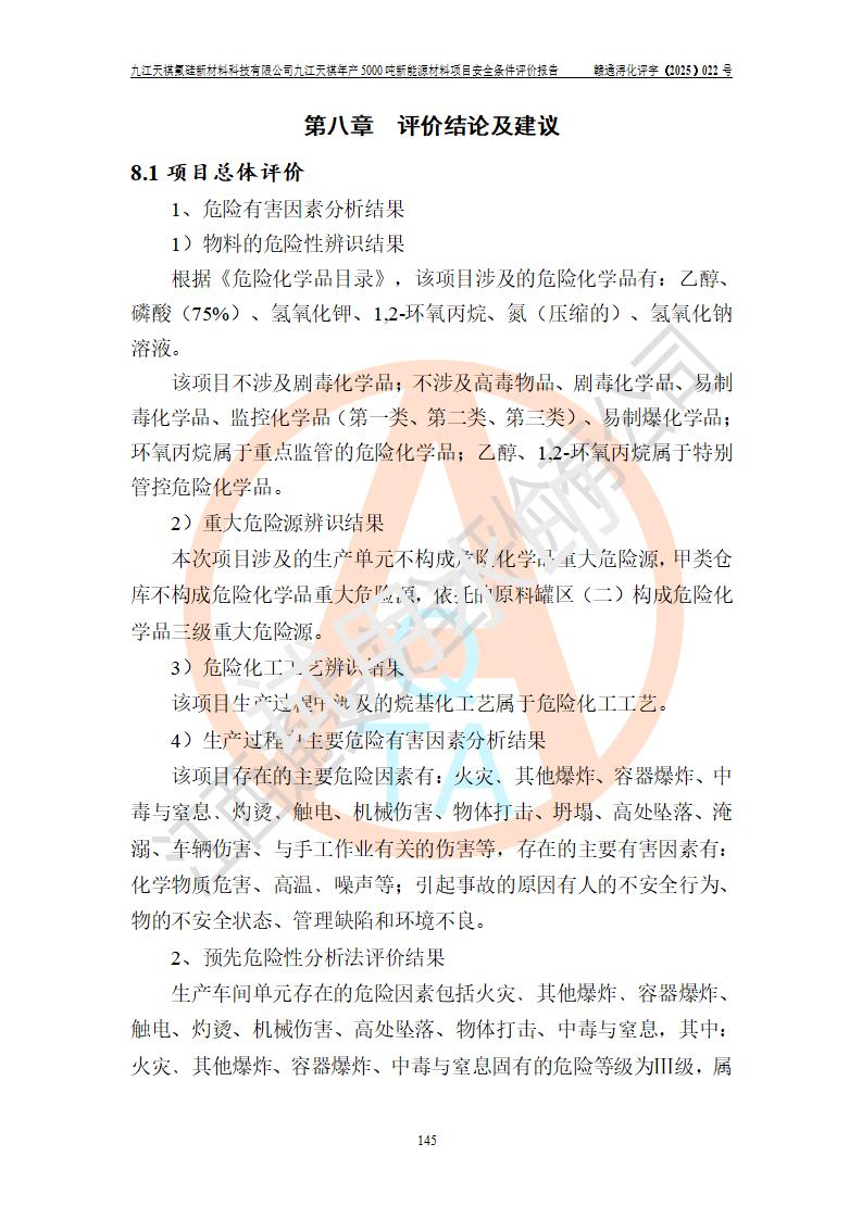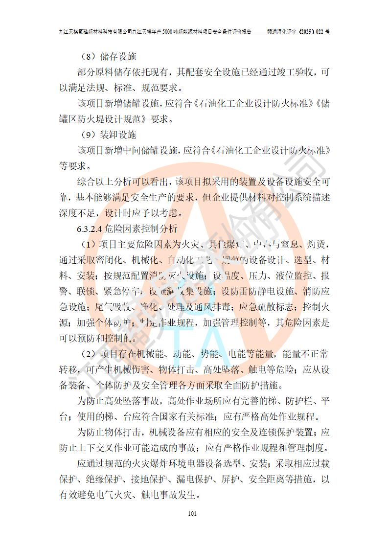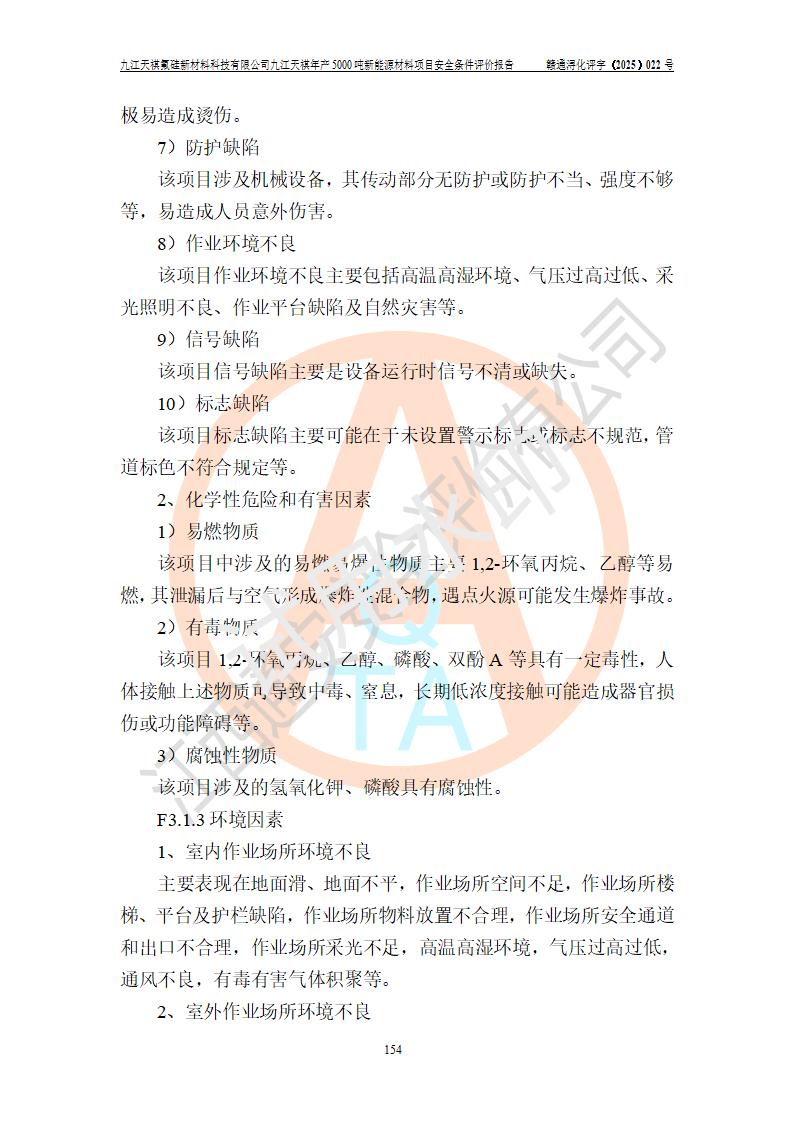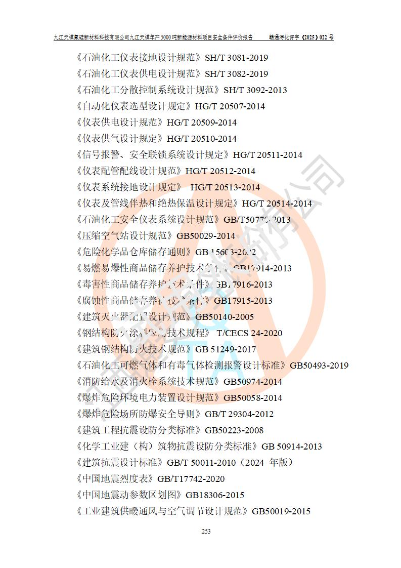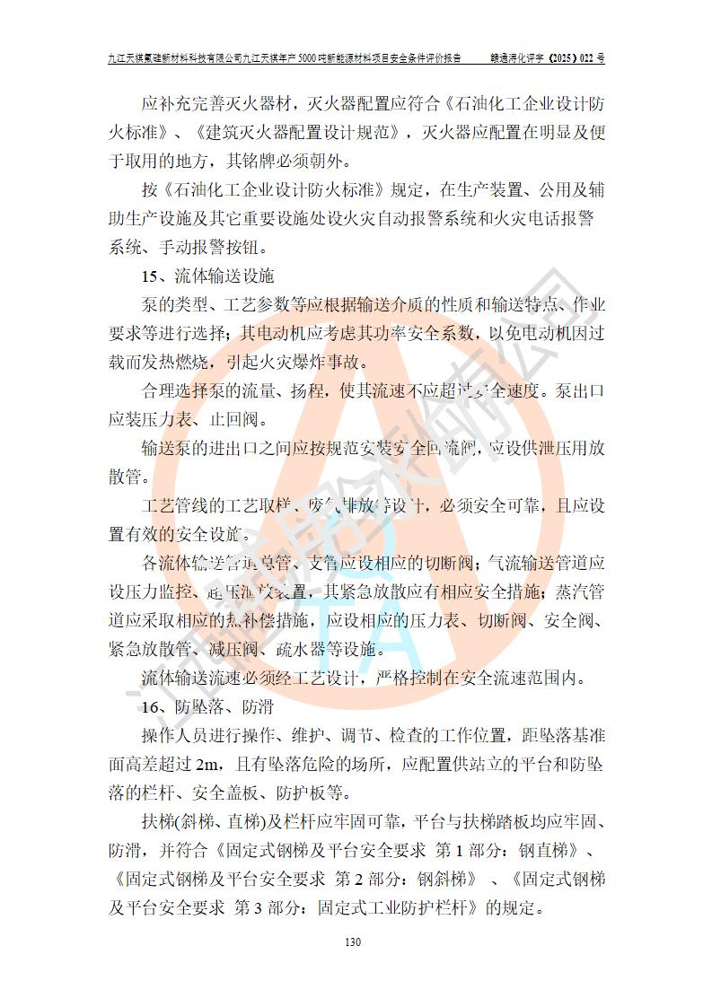 九江天祺氟硅新材料科技有限公司九江天祺年產(chǎn)5000 噸新能源材料項目安全條件評價報告