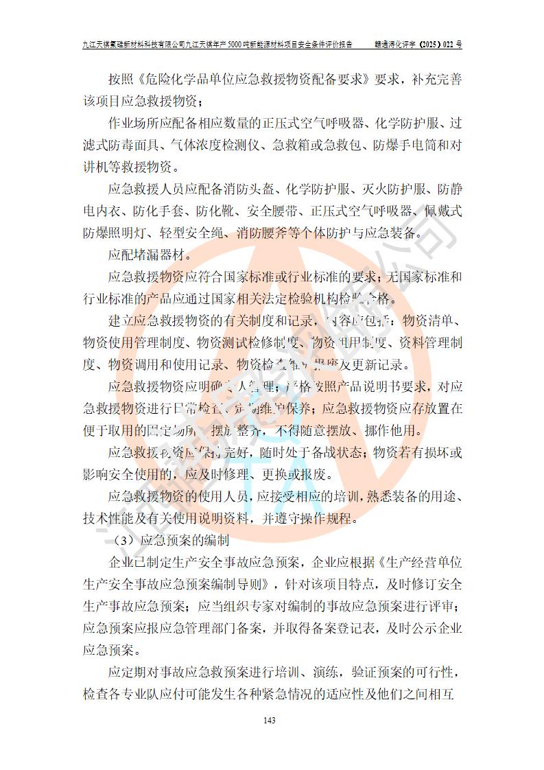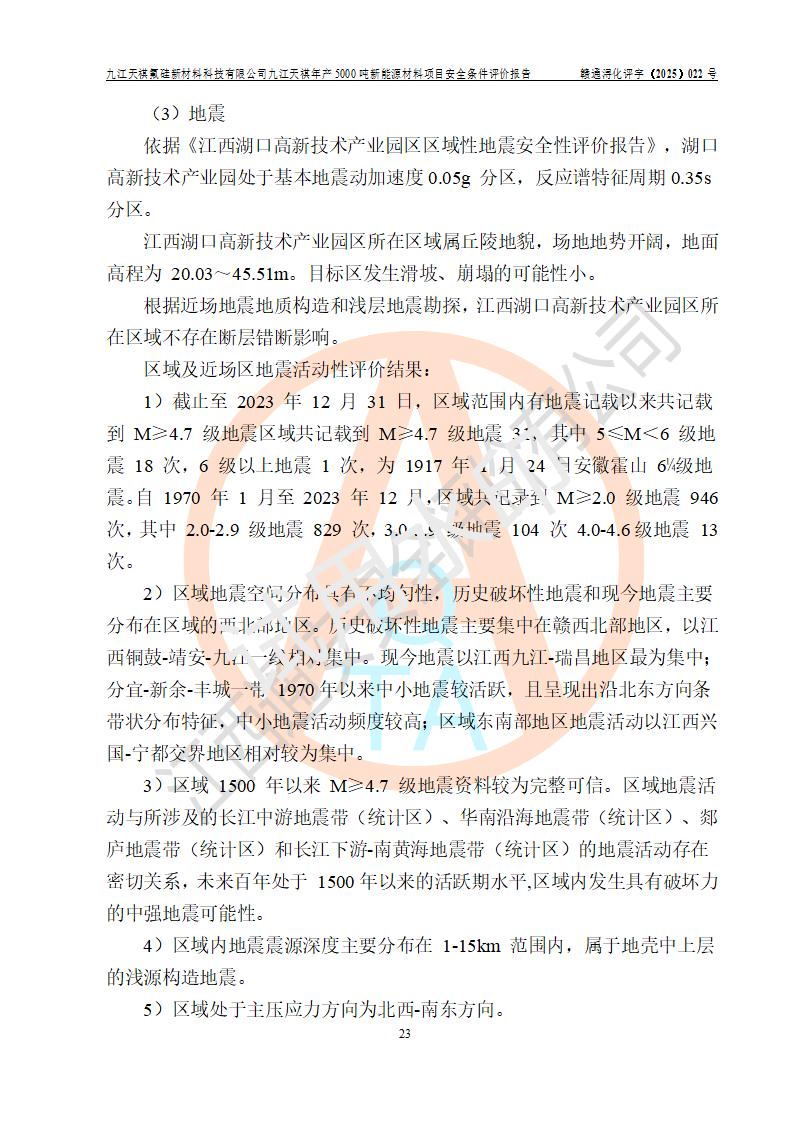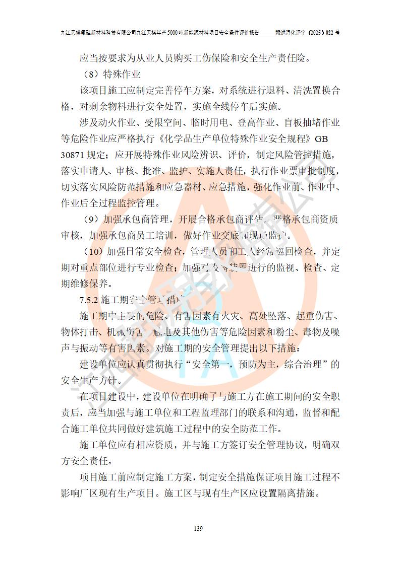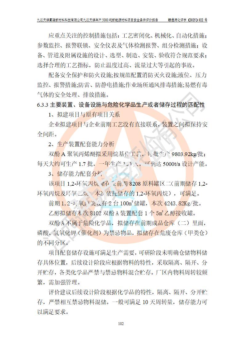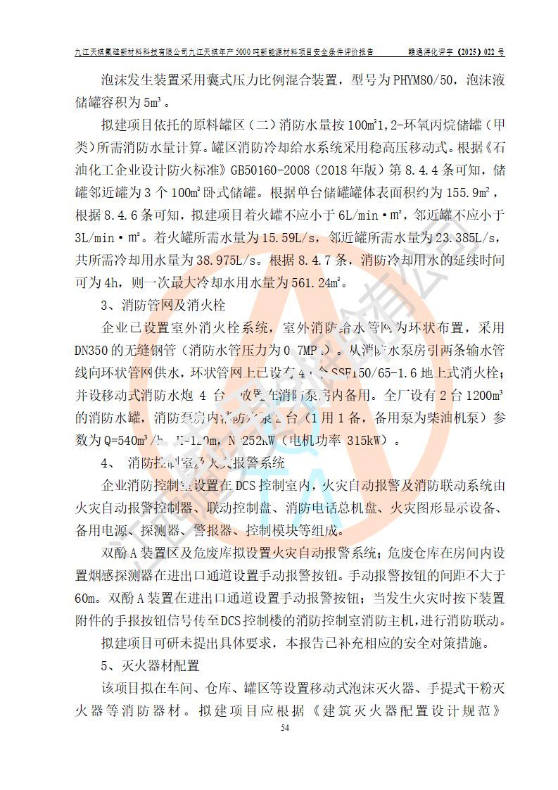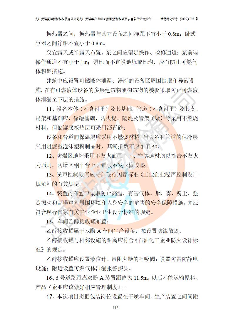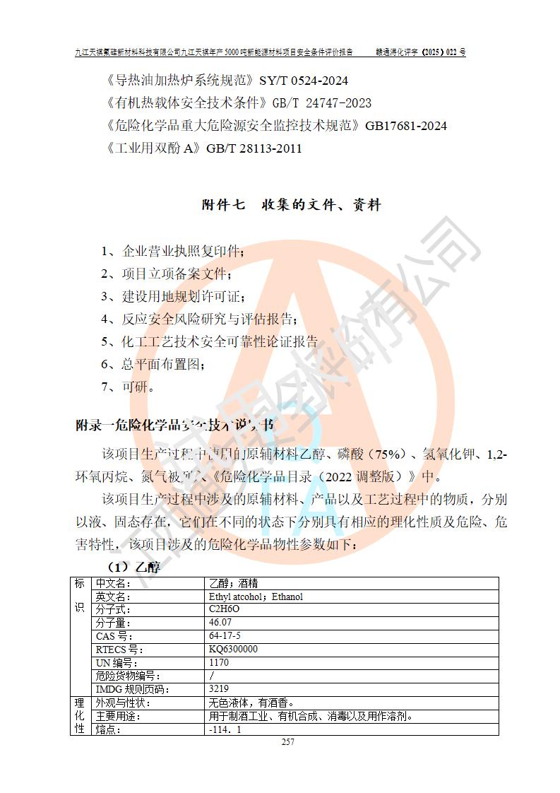 九江天祺氟硅新材料科技有限公司九江天祺年產(chǎn)5000 噸新能源材料項目安全條件評價報告