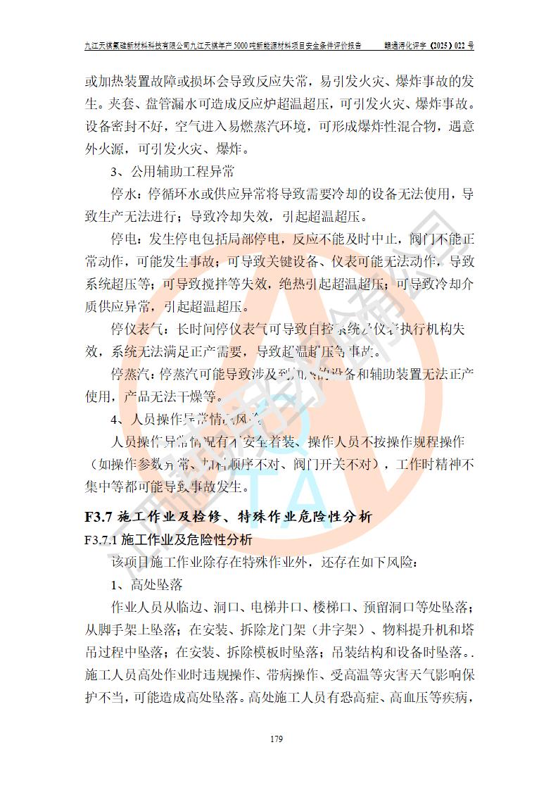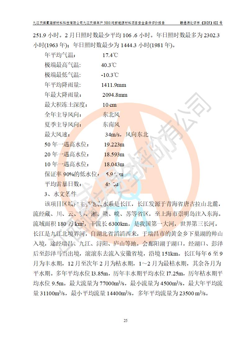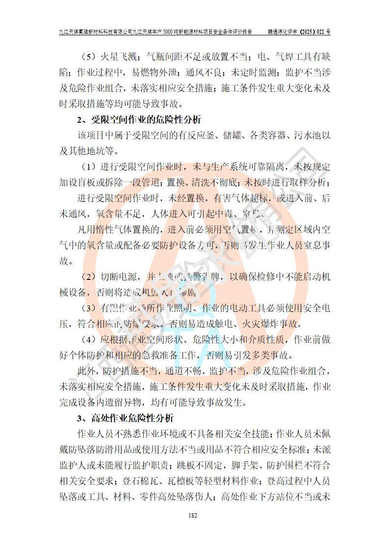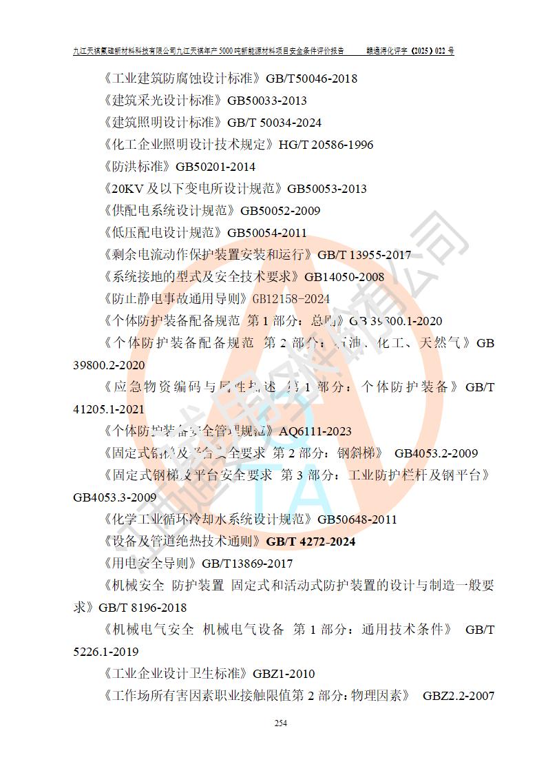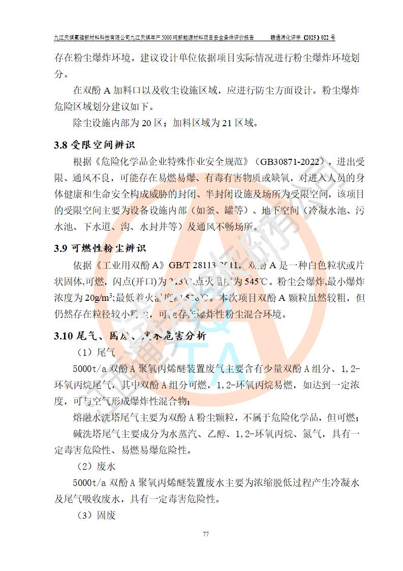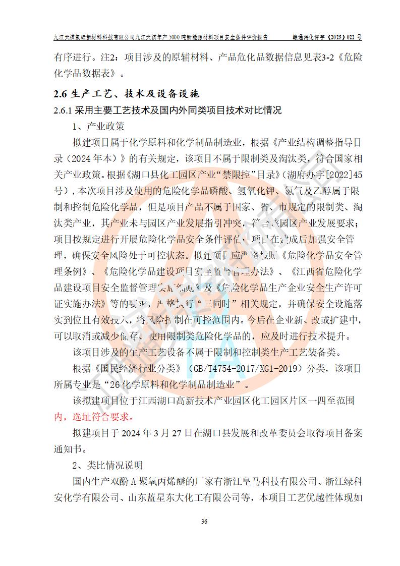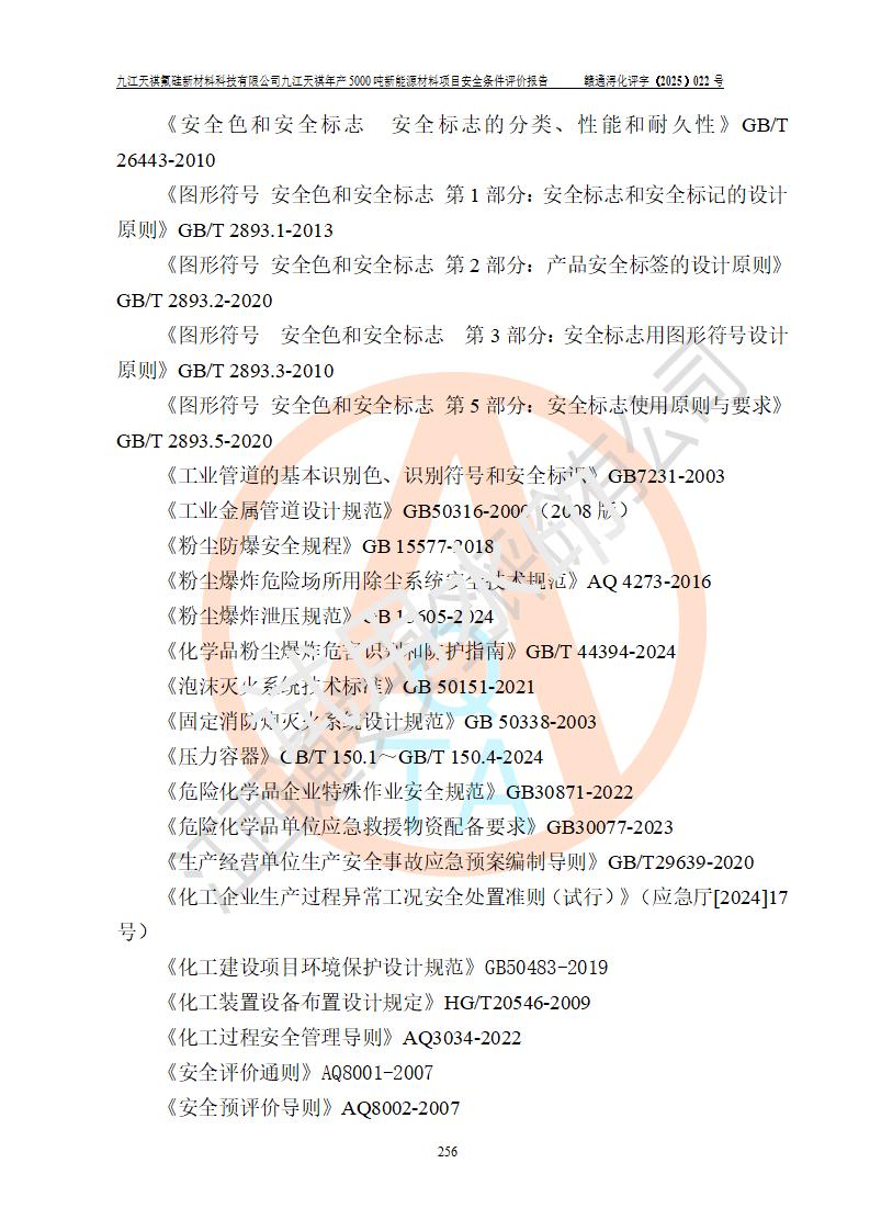 九江天祺氟硅新材料科技有限公司九江天祺年產(chǎn)5000 噸新能源材料項目安全條件評價報告