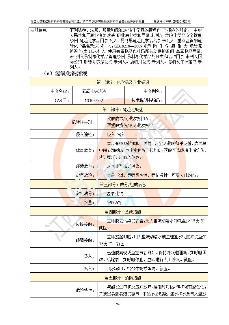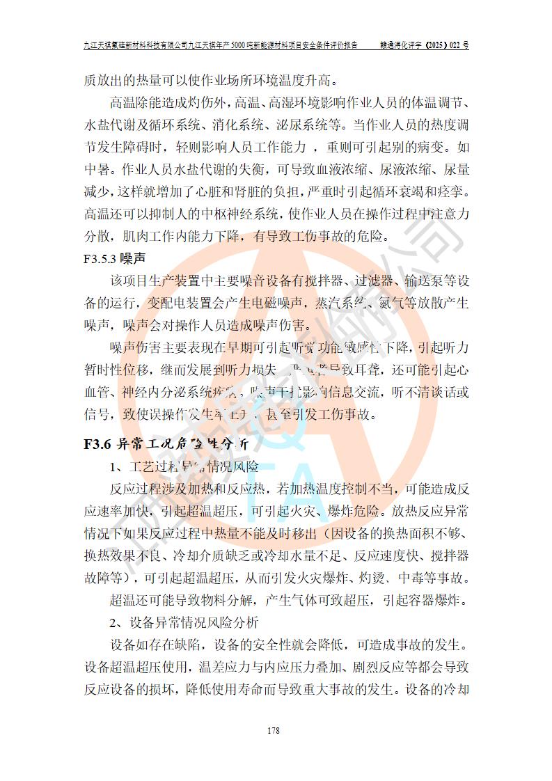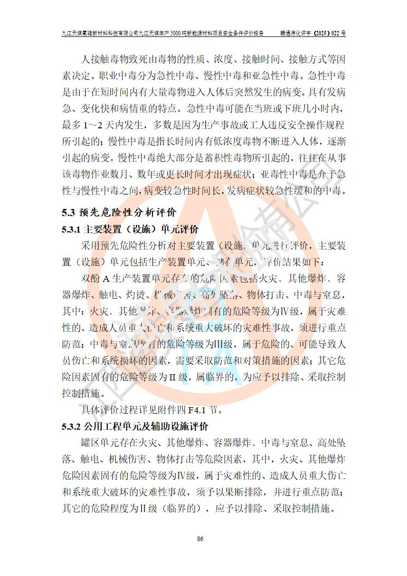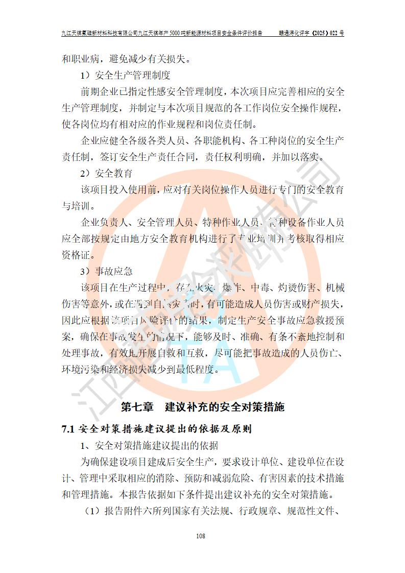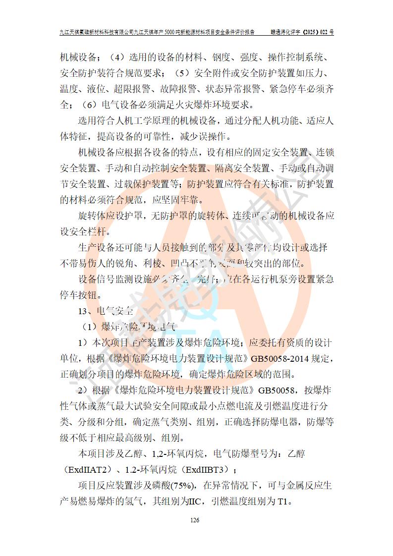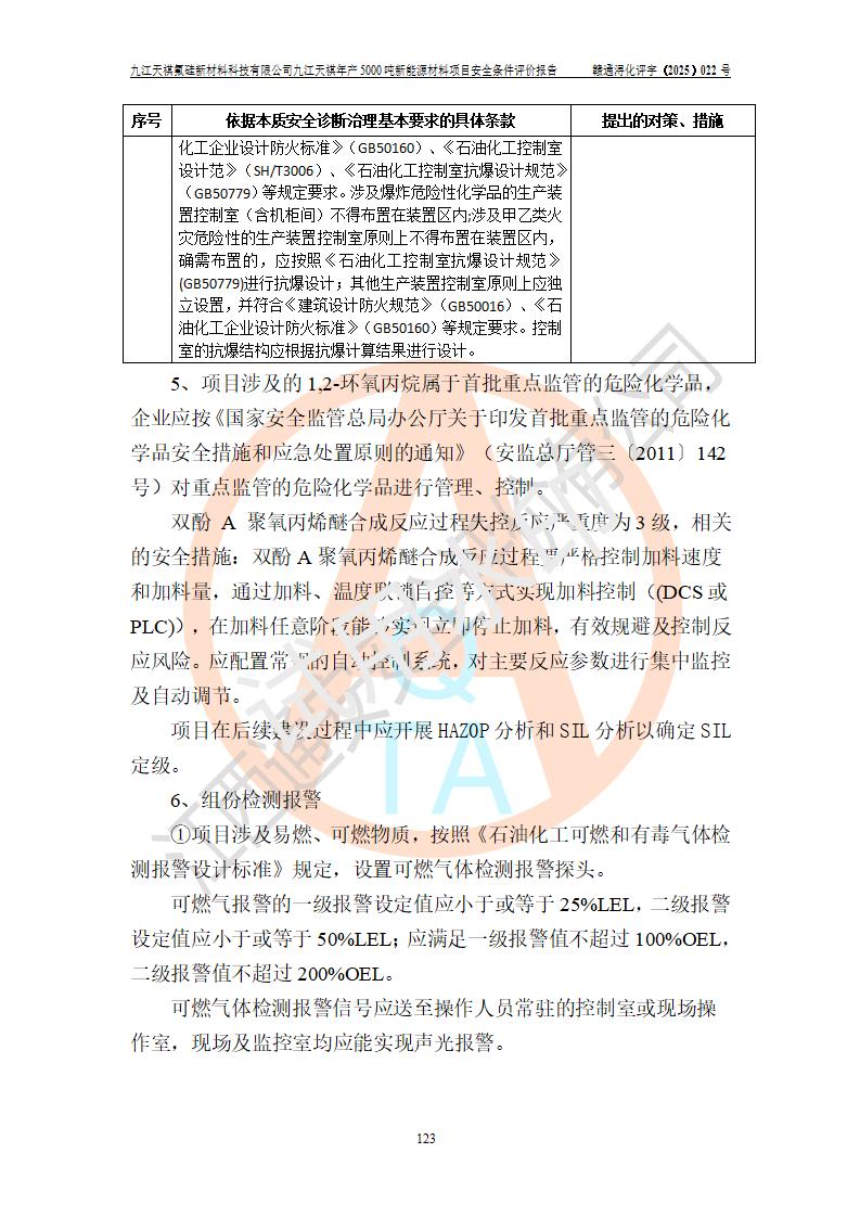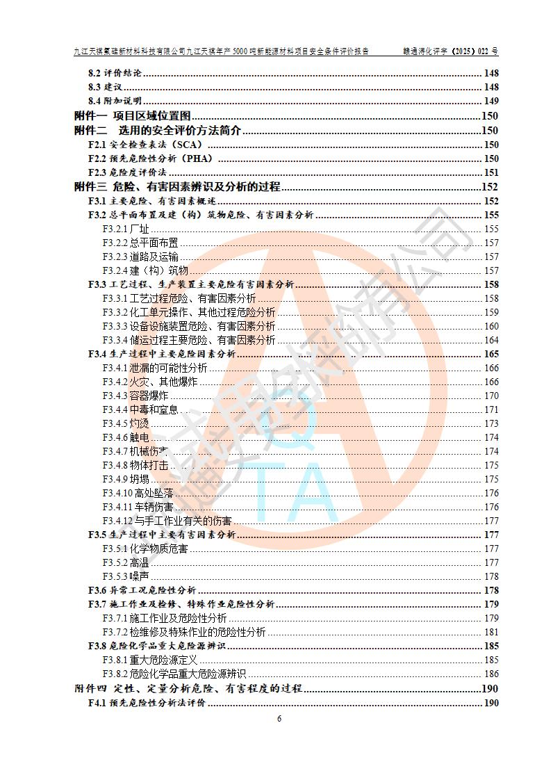 九江天祺氟硅新材料科技有限公司九江天祺年產(chǎn)5000 噸新能源材料項目安全條件評價報告