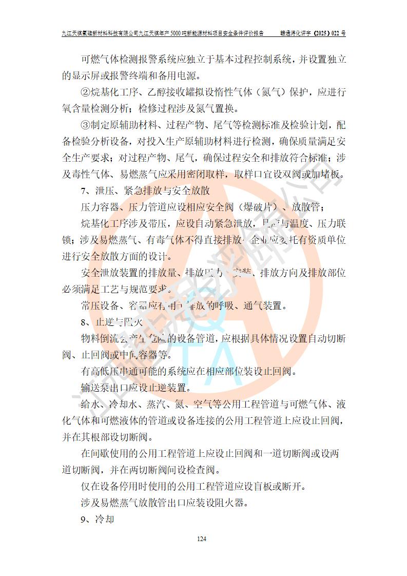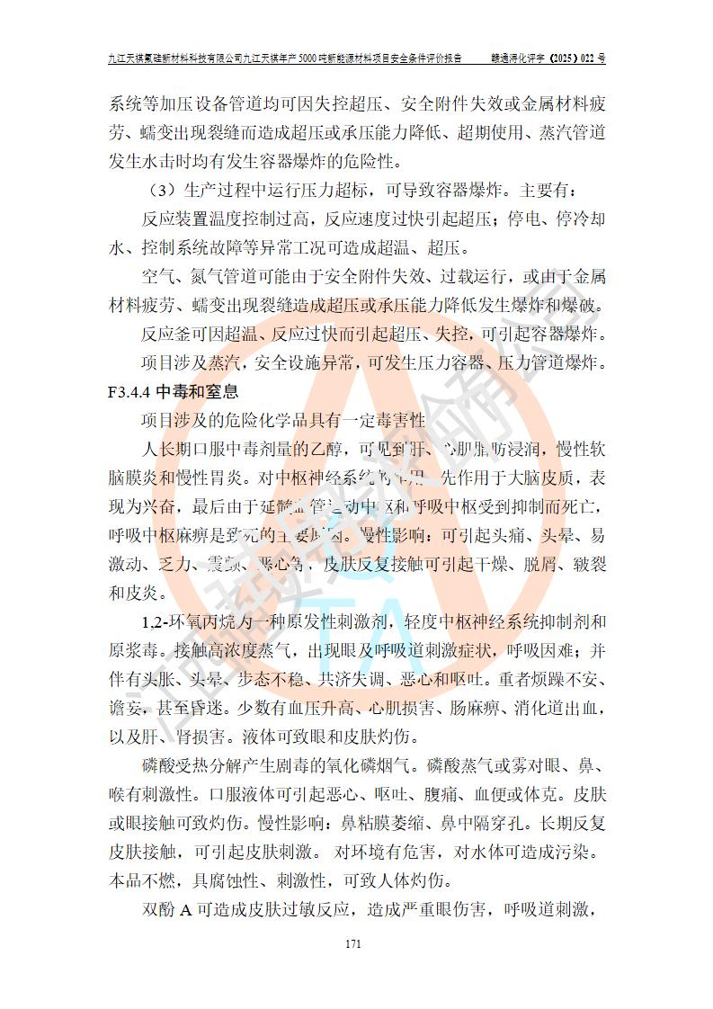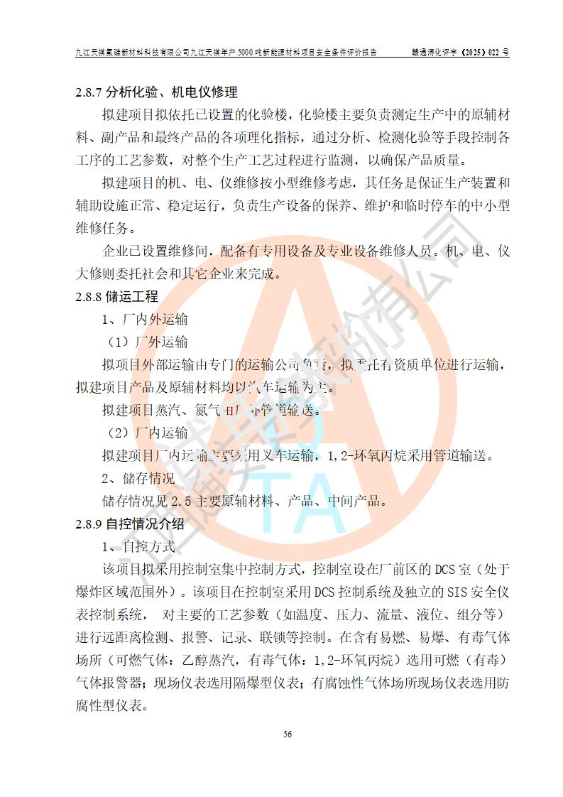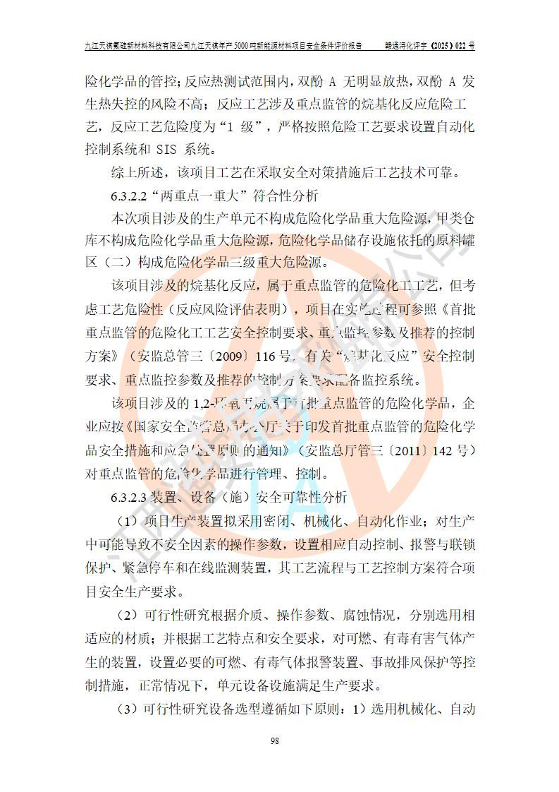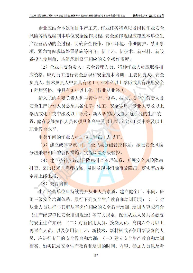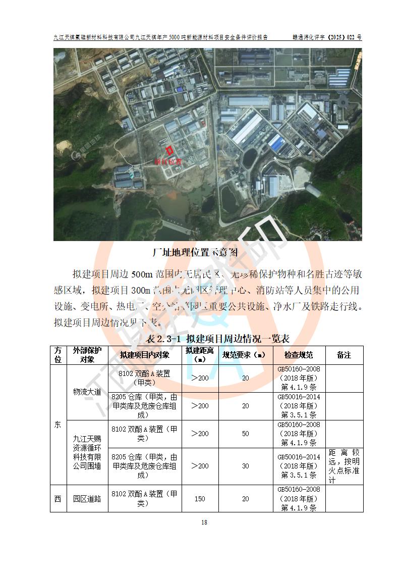 九江天祺氟硅新材料科技有限公司九江天祺年產(chǎn)5000 噸新能源材料項目安全條件評價報告