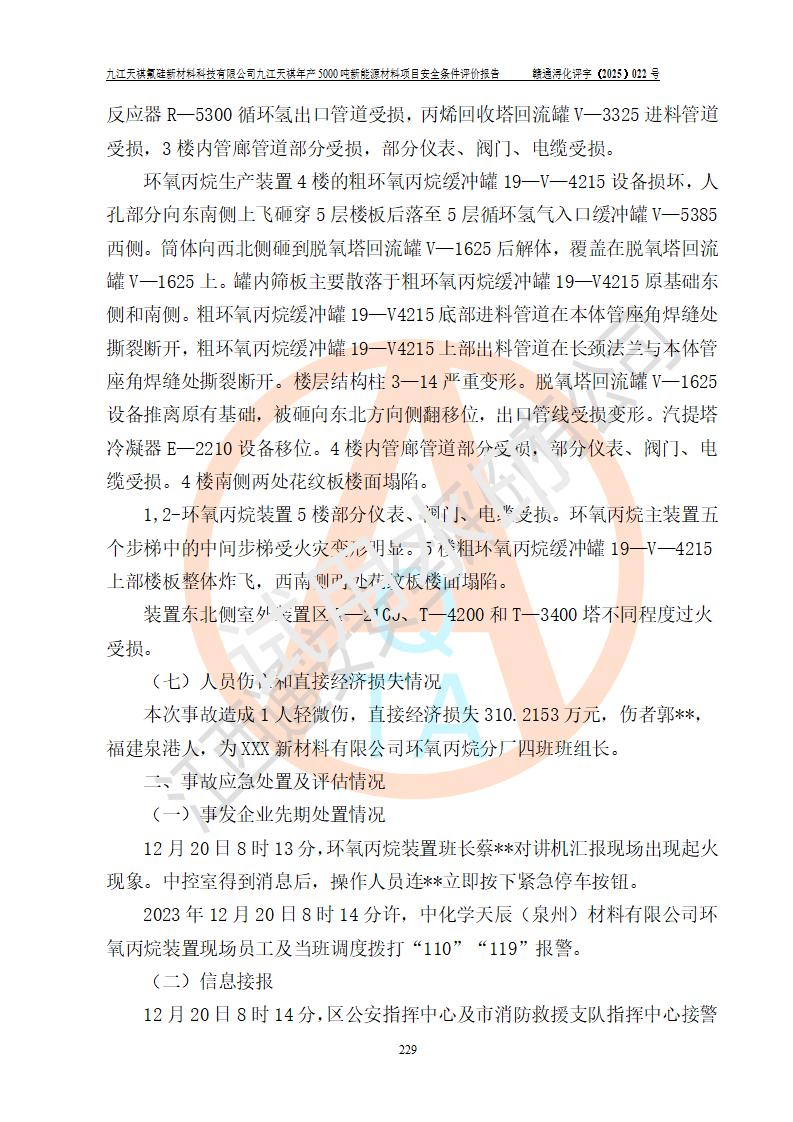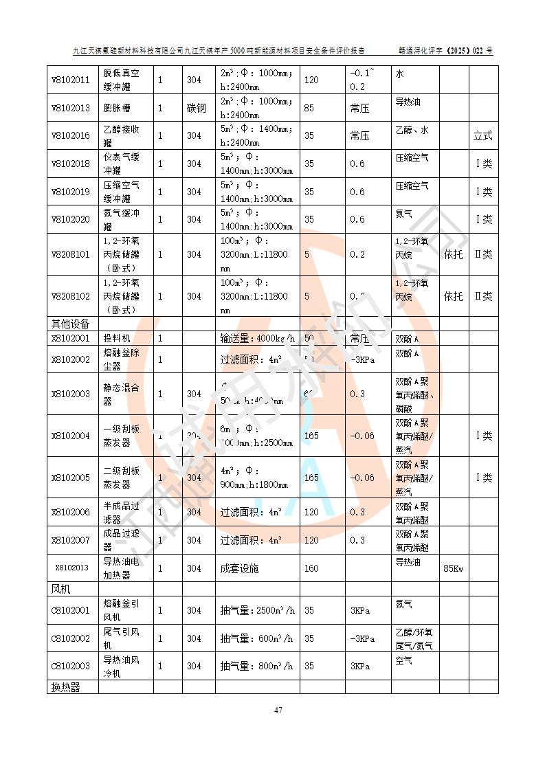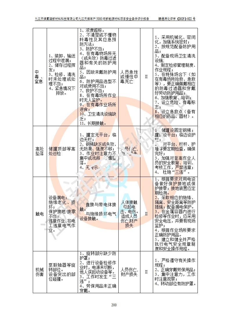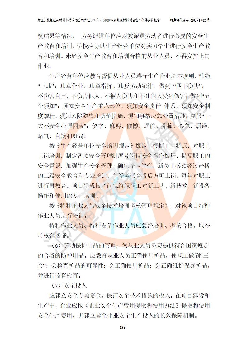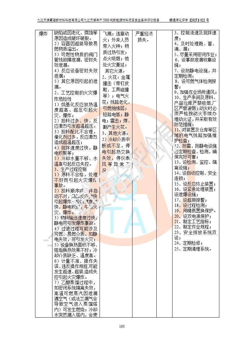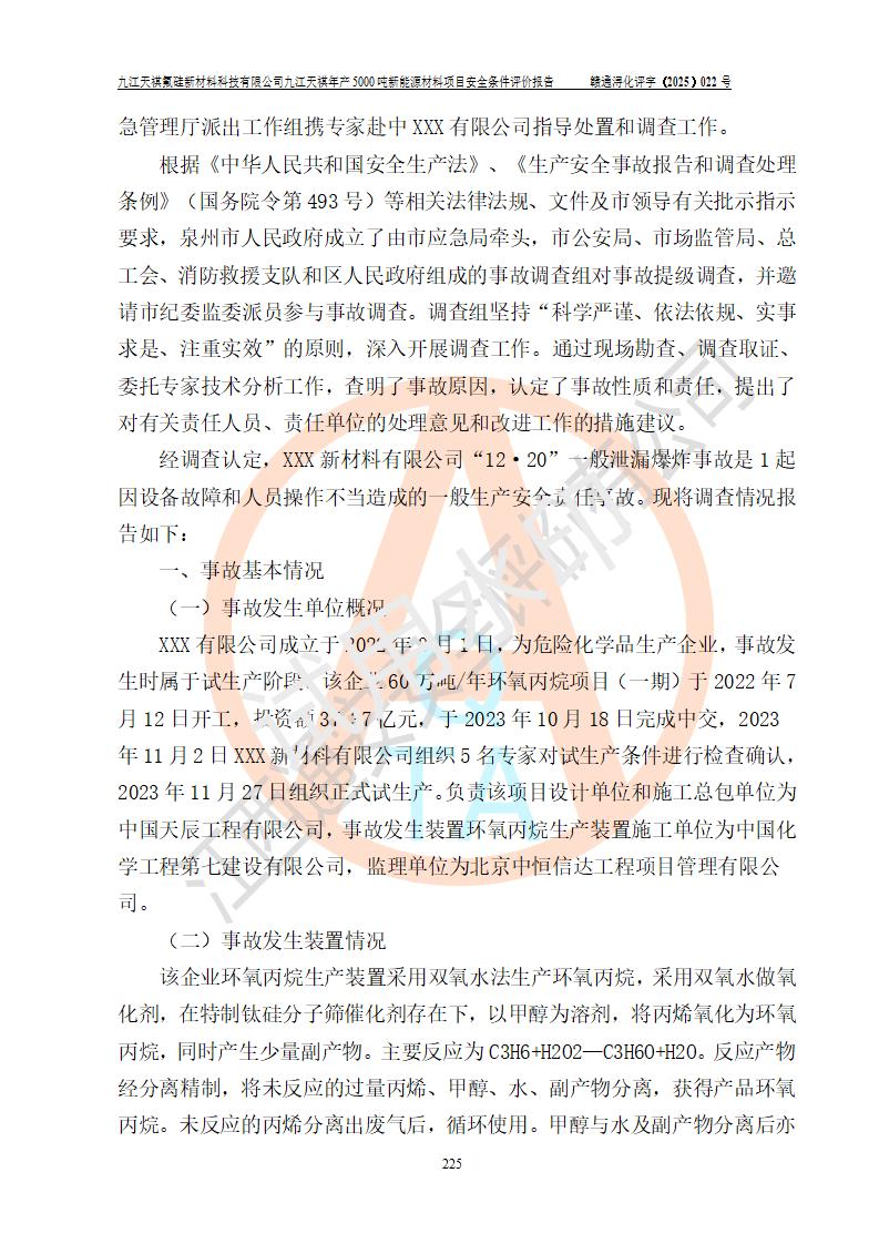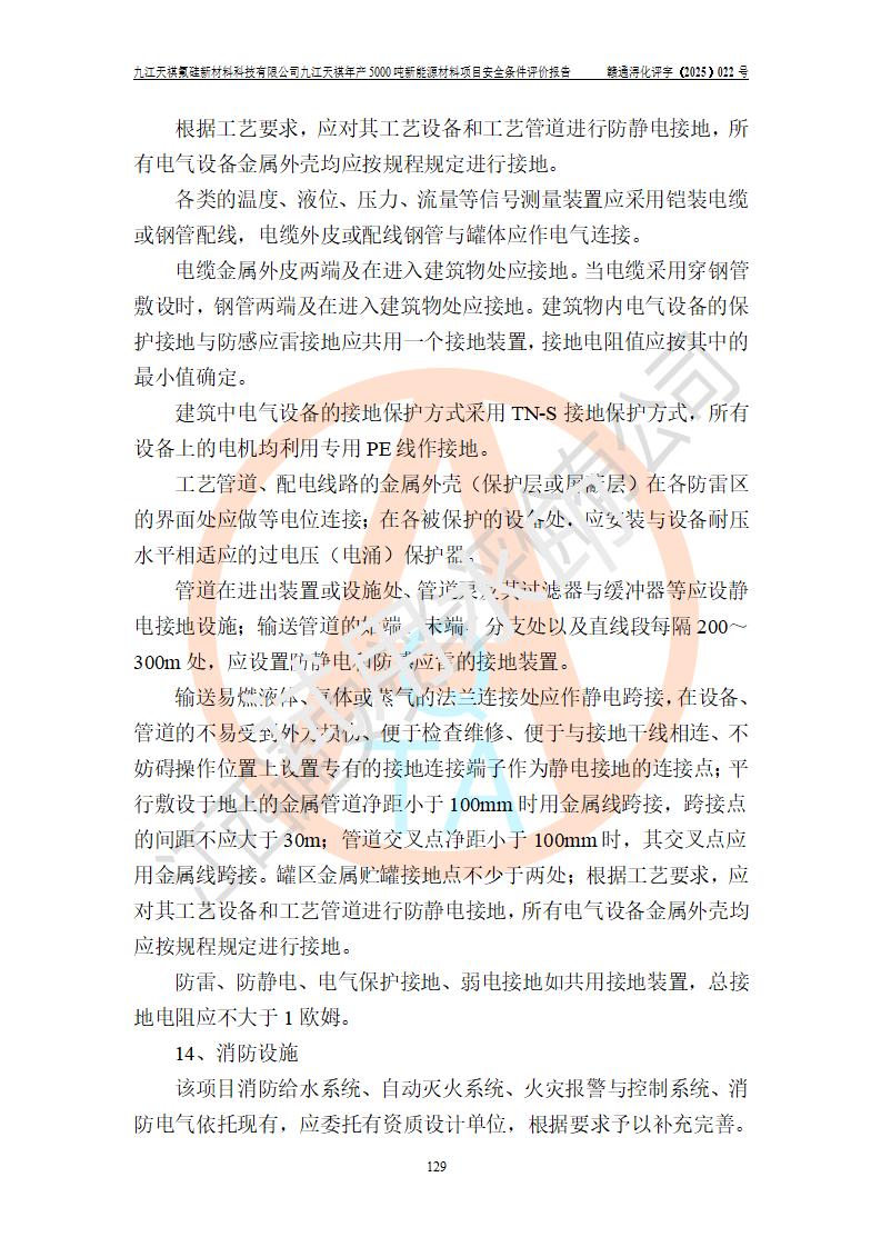 九江天祺氟硅新材料科技有限公司九江天祺年產(chǎn)5000 噸新能源材料項目安全條件評價報告