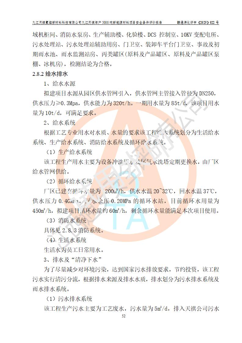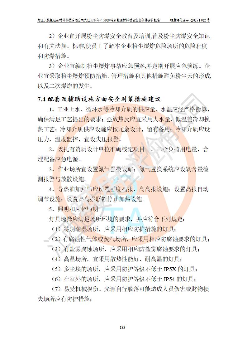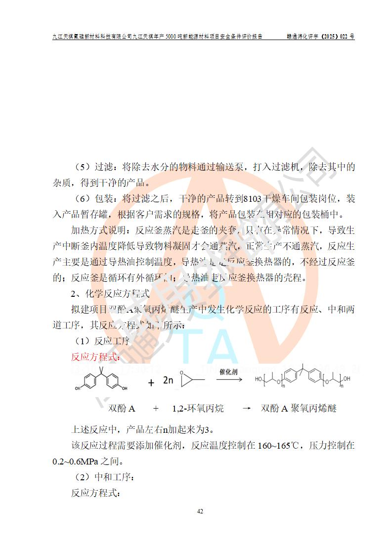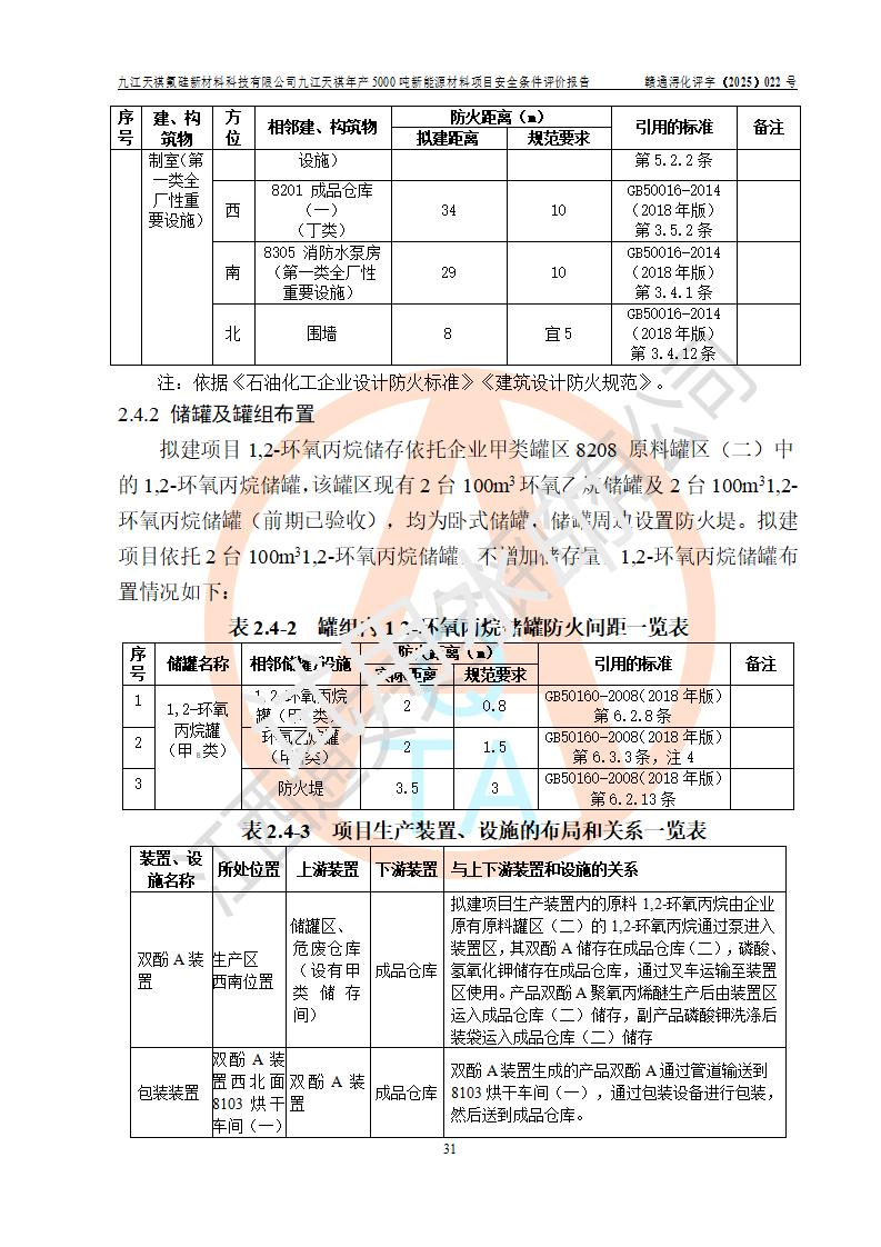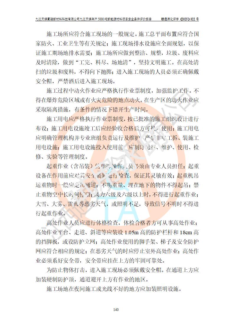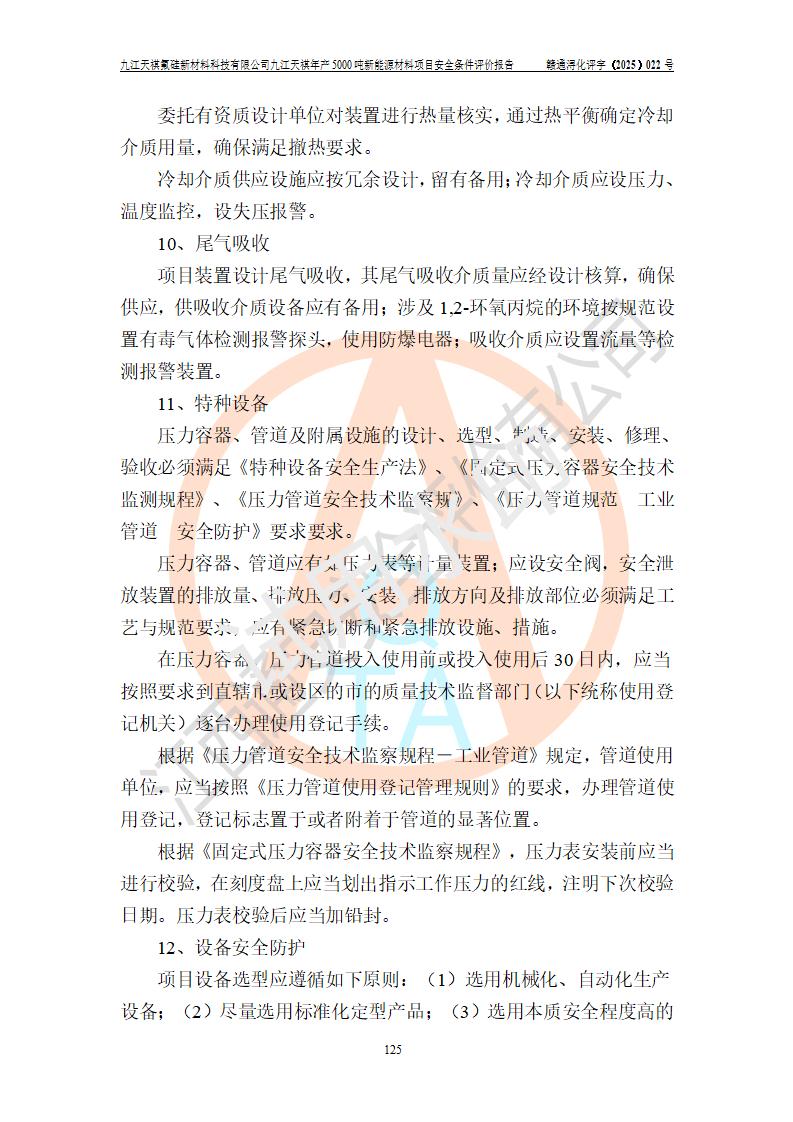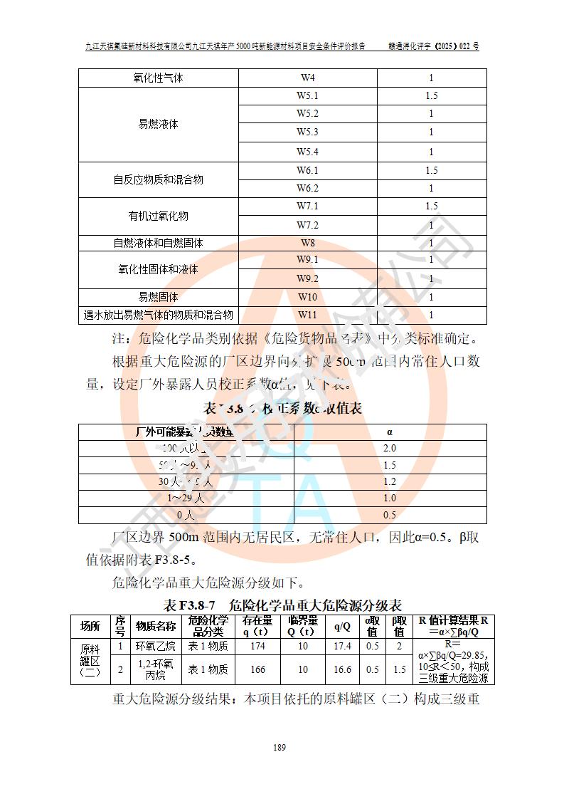 九江天祺氟硅新材料科技有限公司九江天祺年產(chǎn)5000 噸新能源材料項目安全條件評價報告
