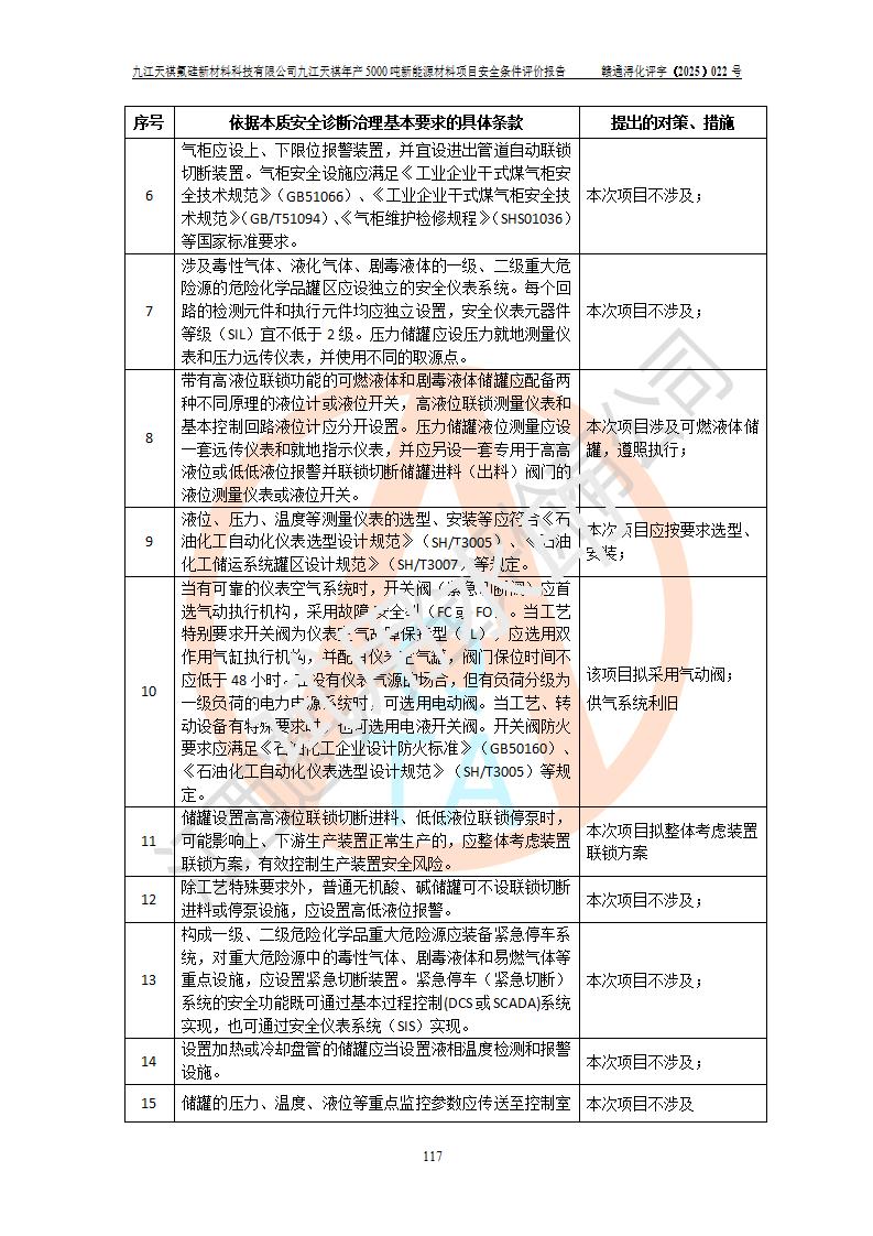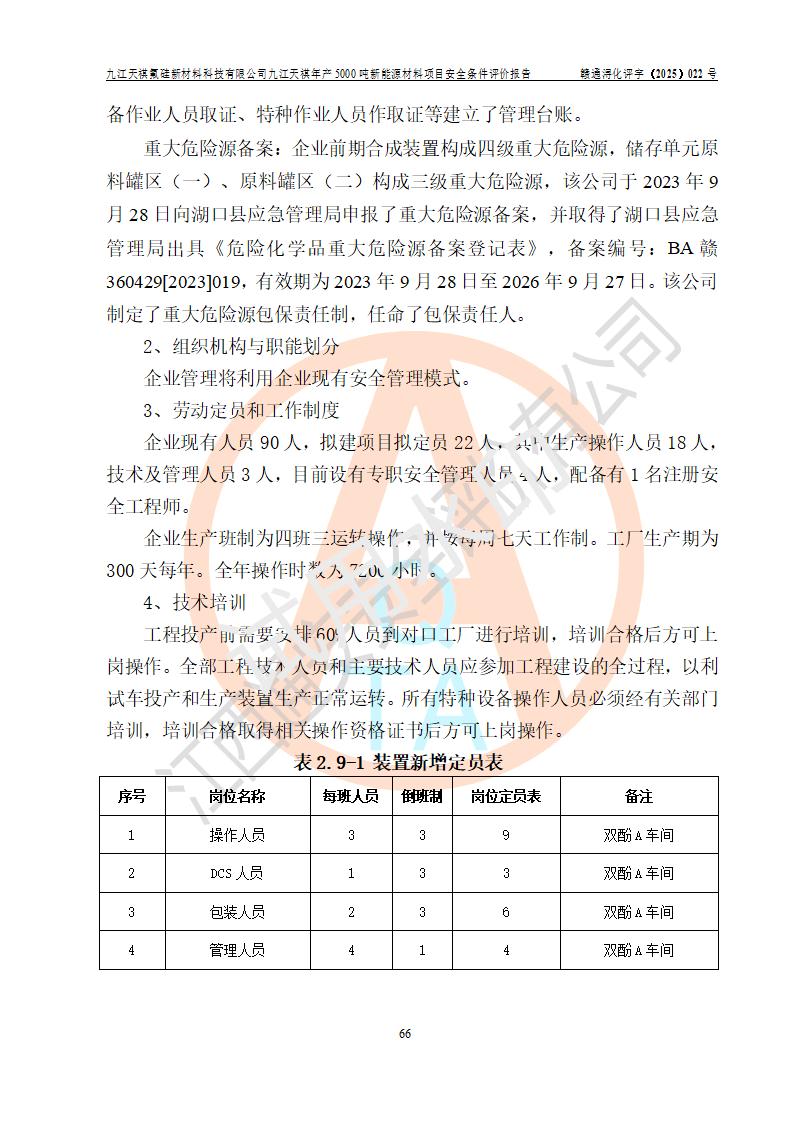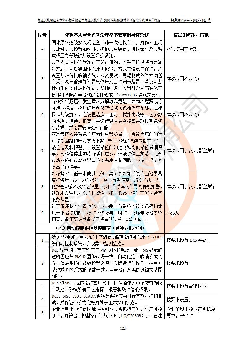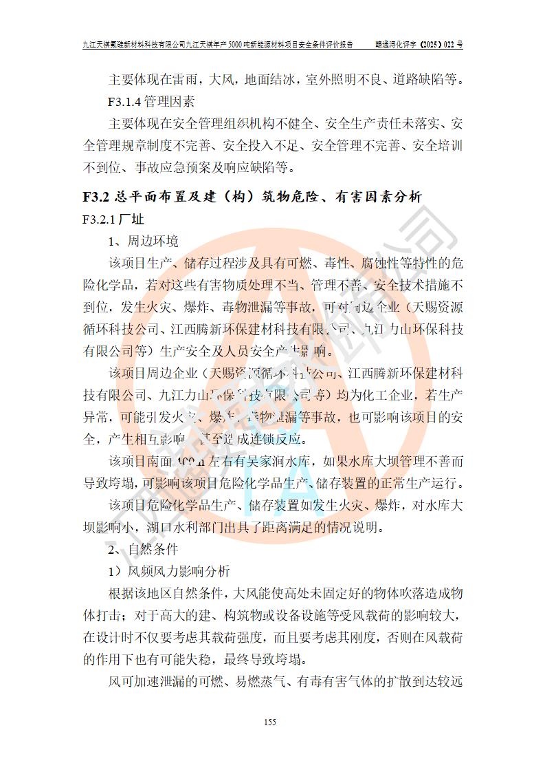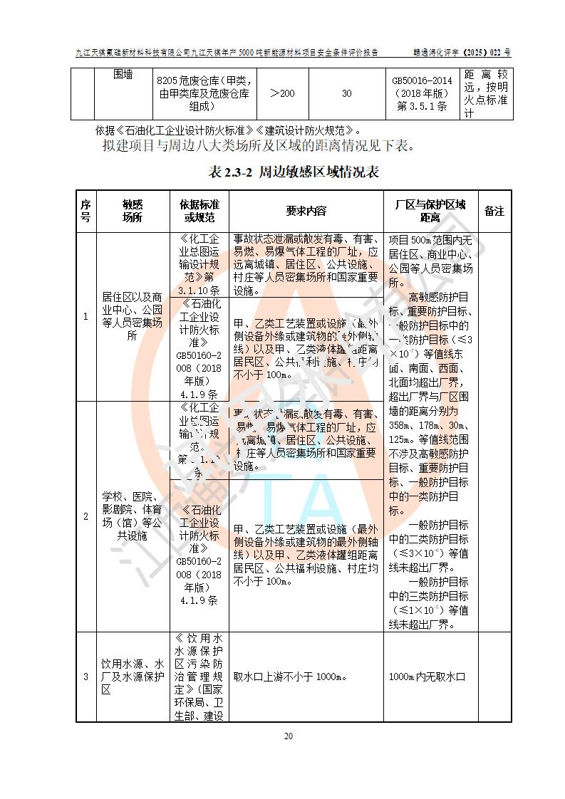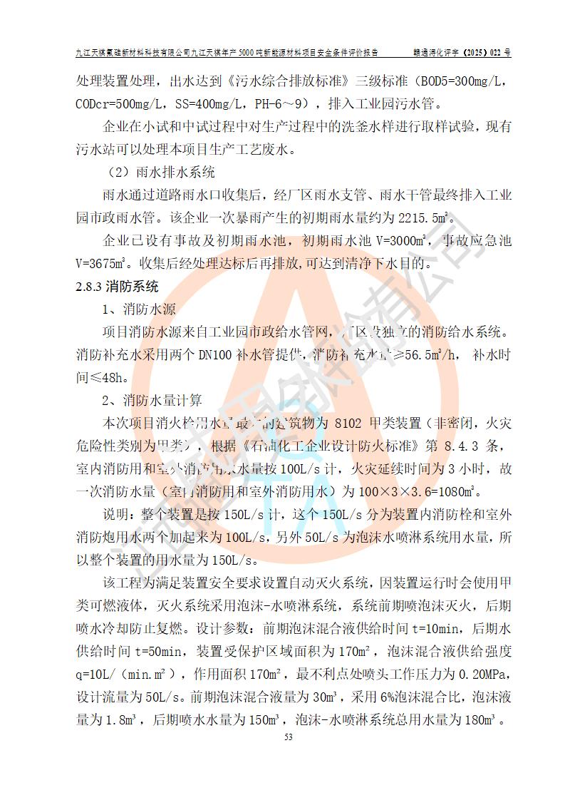 九江天祺氟硅新材料科技有限公司九江天祺年產(chǎn)5000 噸新能源材料項目安全條件評價報告