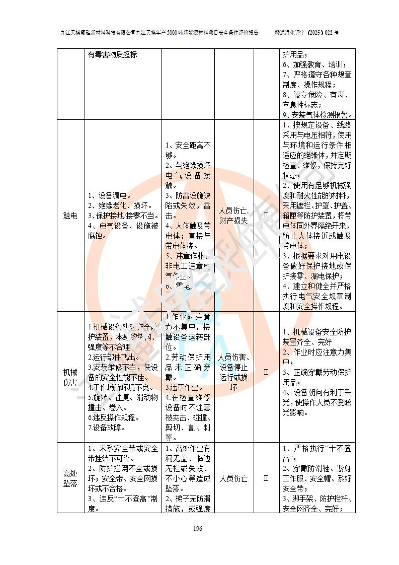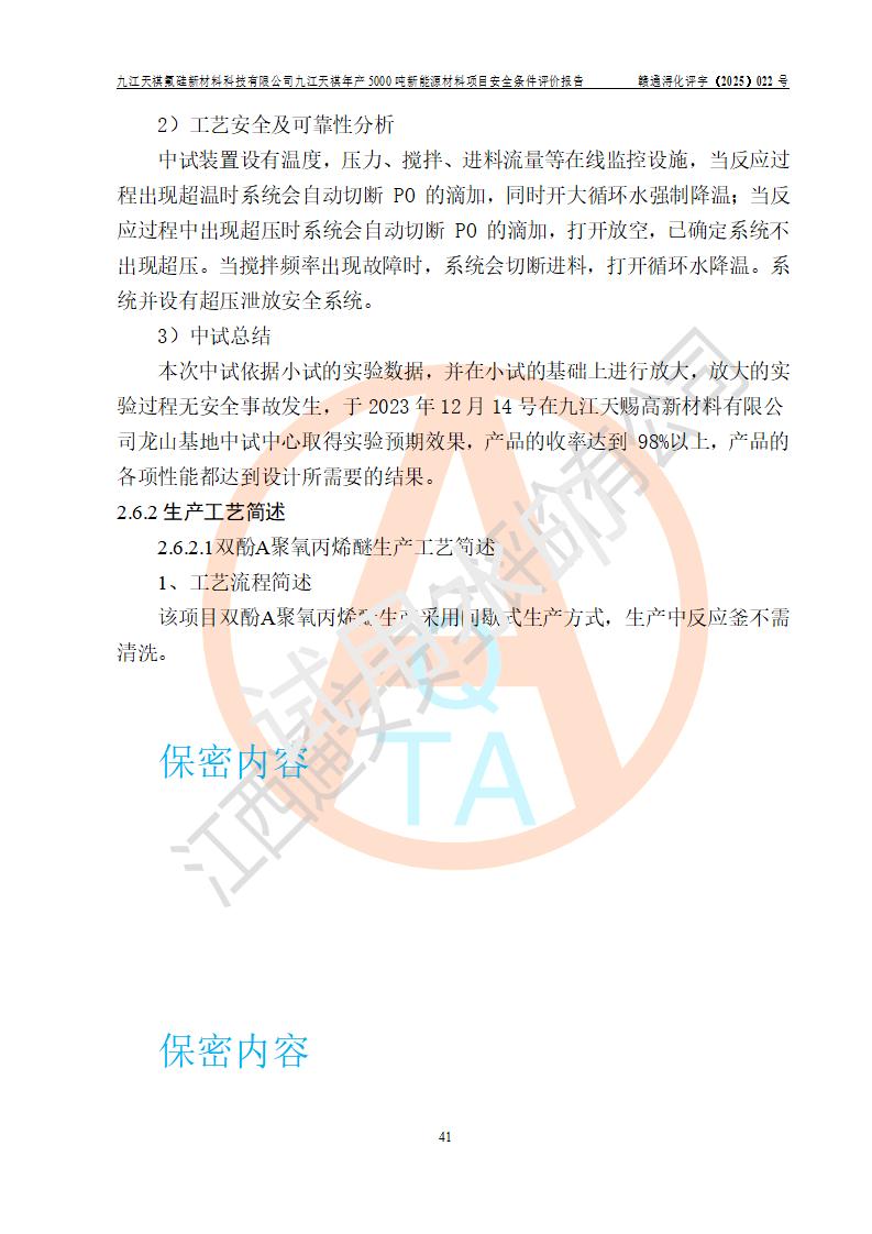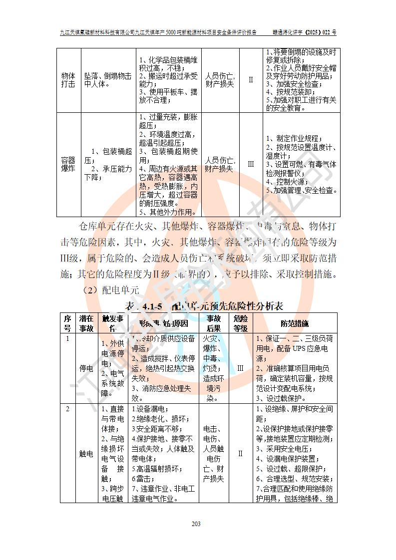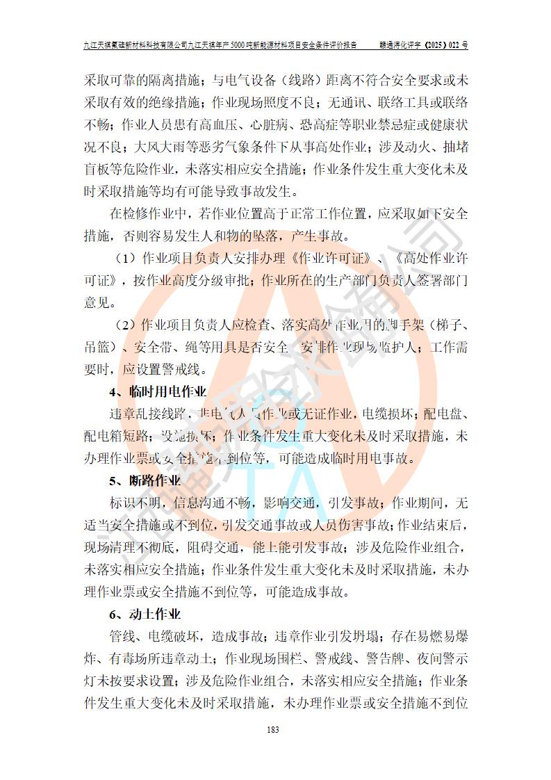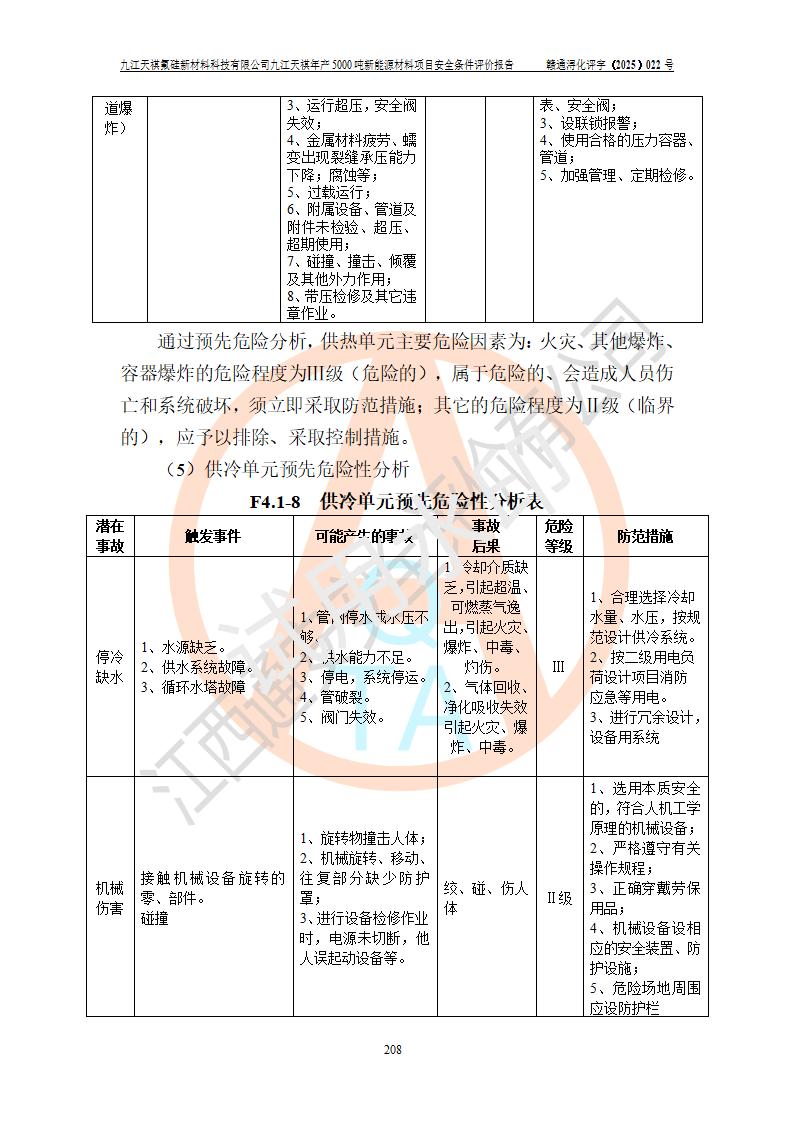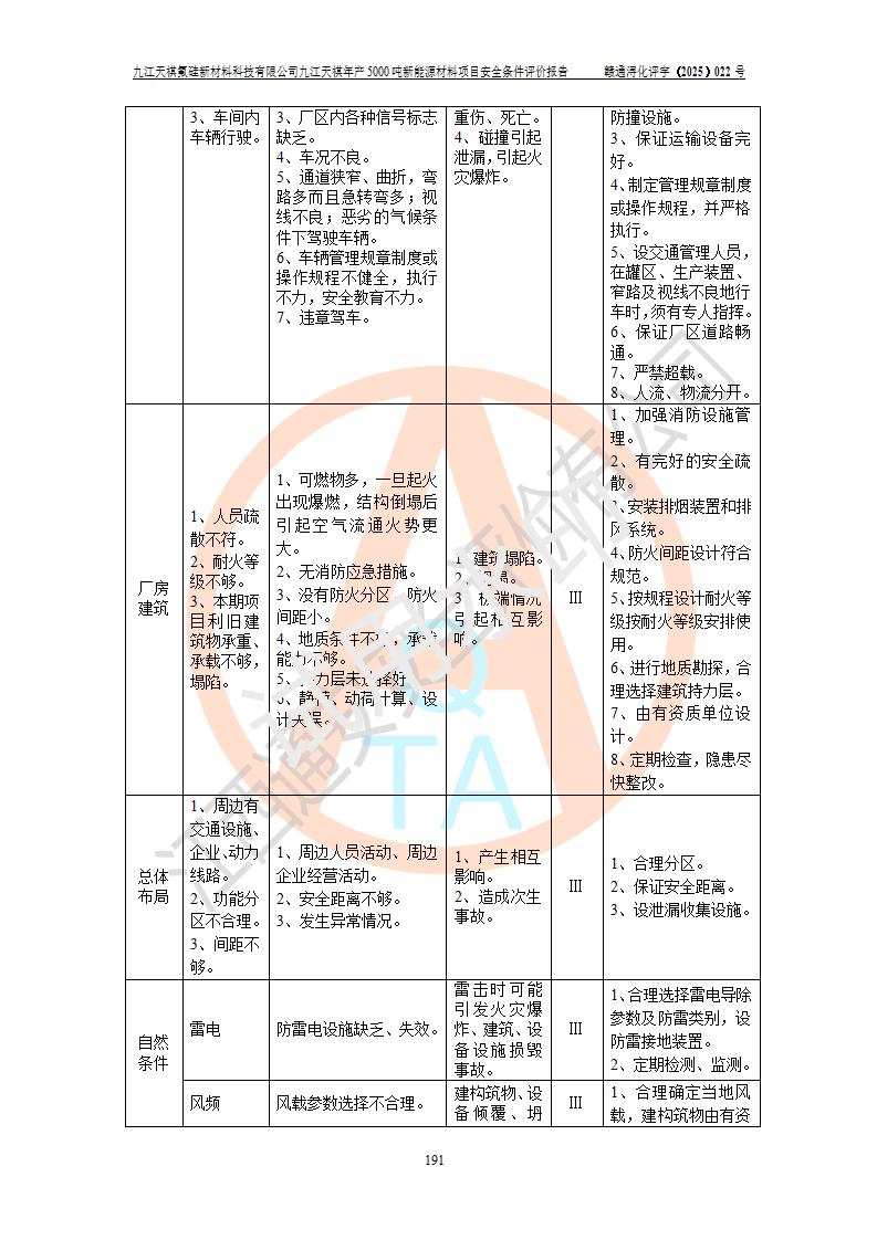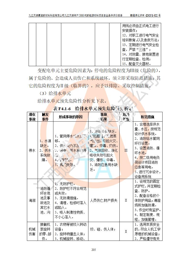 九江天祺氟硅新材料科技有限公司九江天祺年產(chǎn)5000 噸新能源材料項目安全條件評價報告