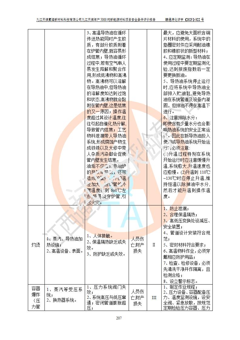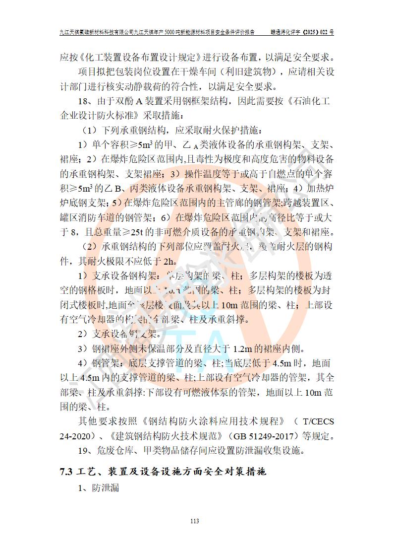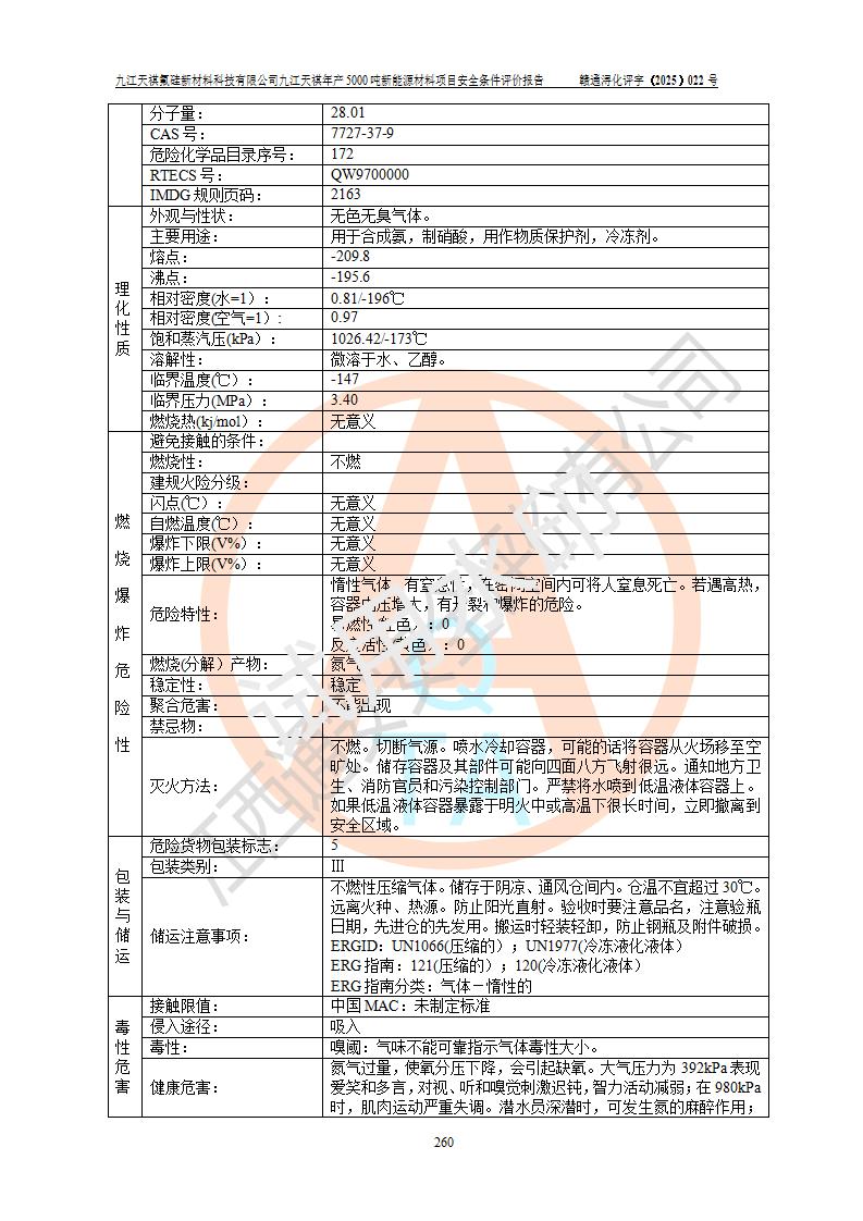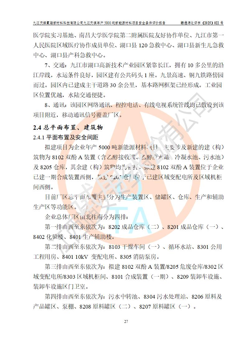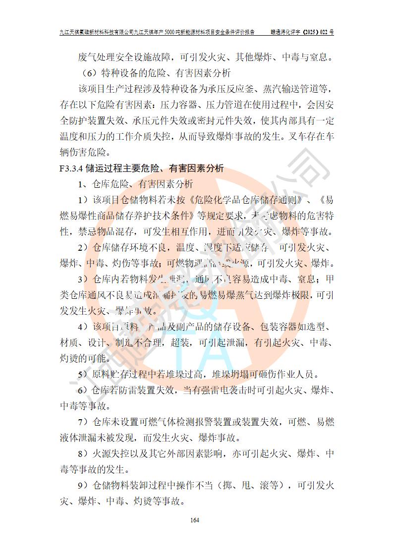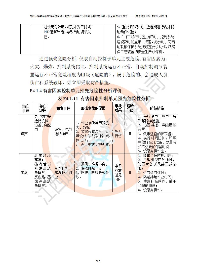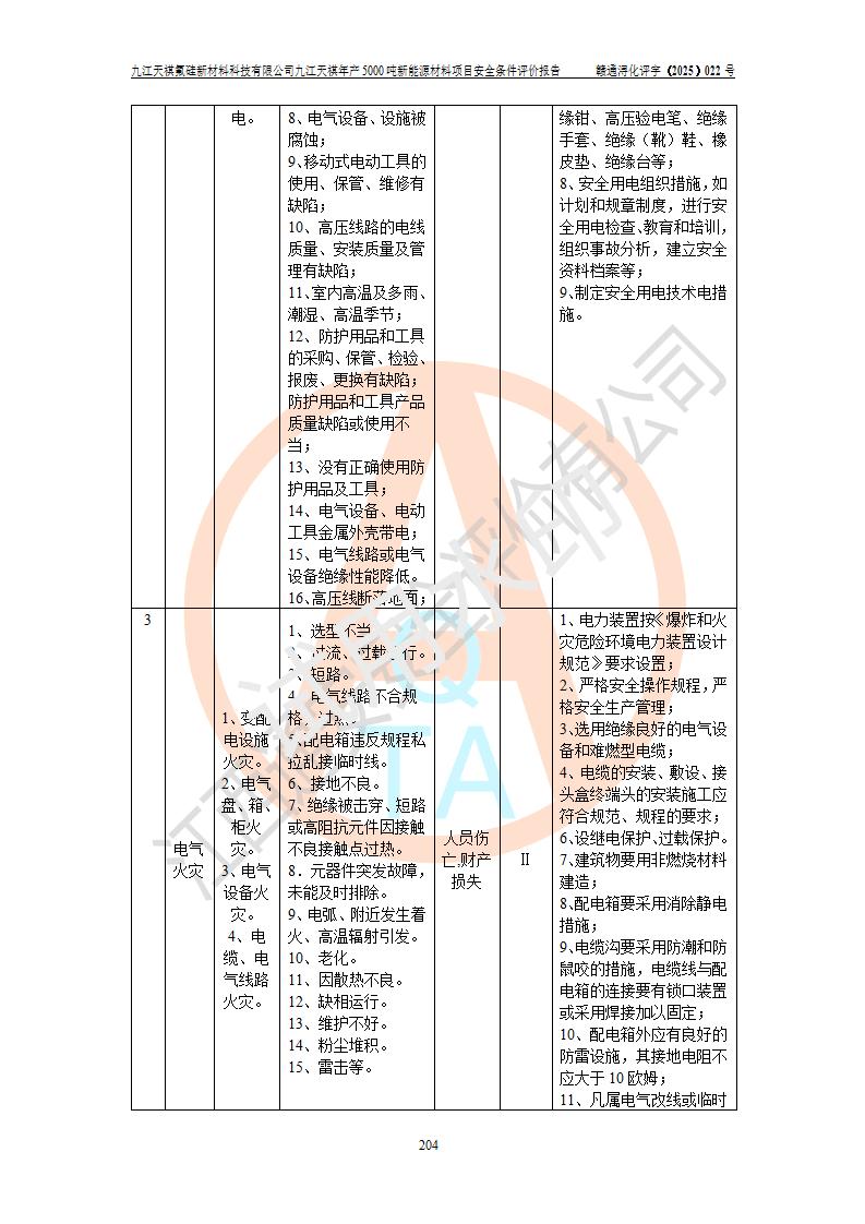 九江天祺氟硅新材料科技有限公司九江天祺年產(chǎn)5000 噸新能源材料項目安全條件評價報告