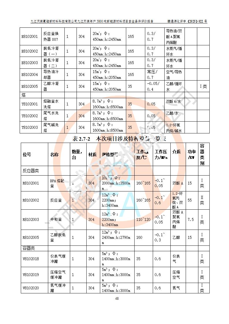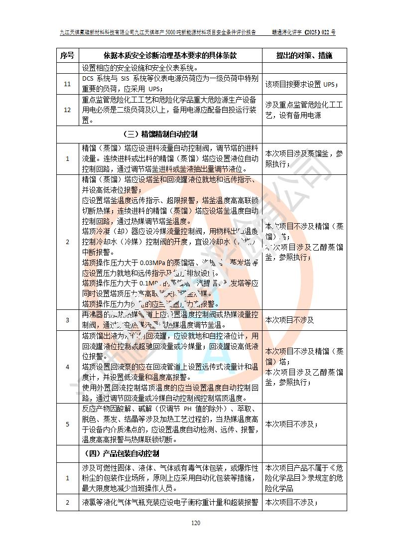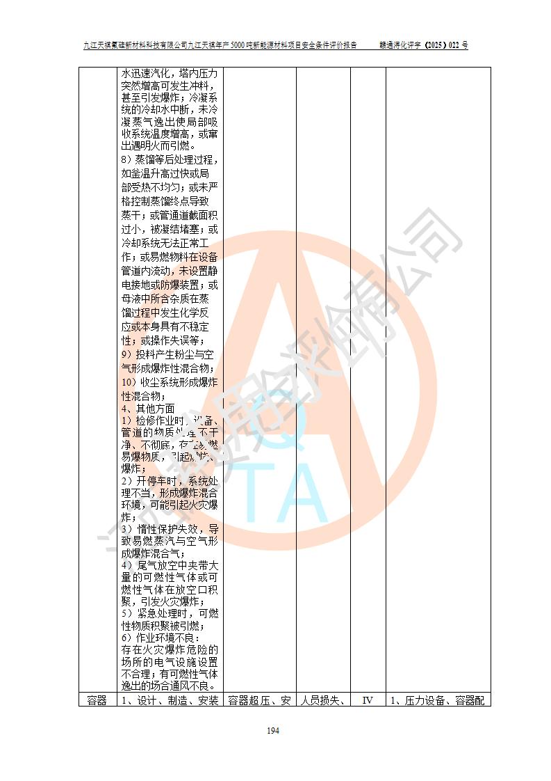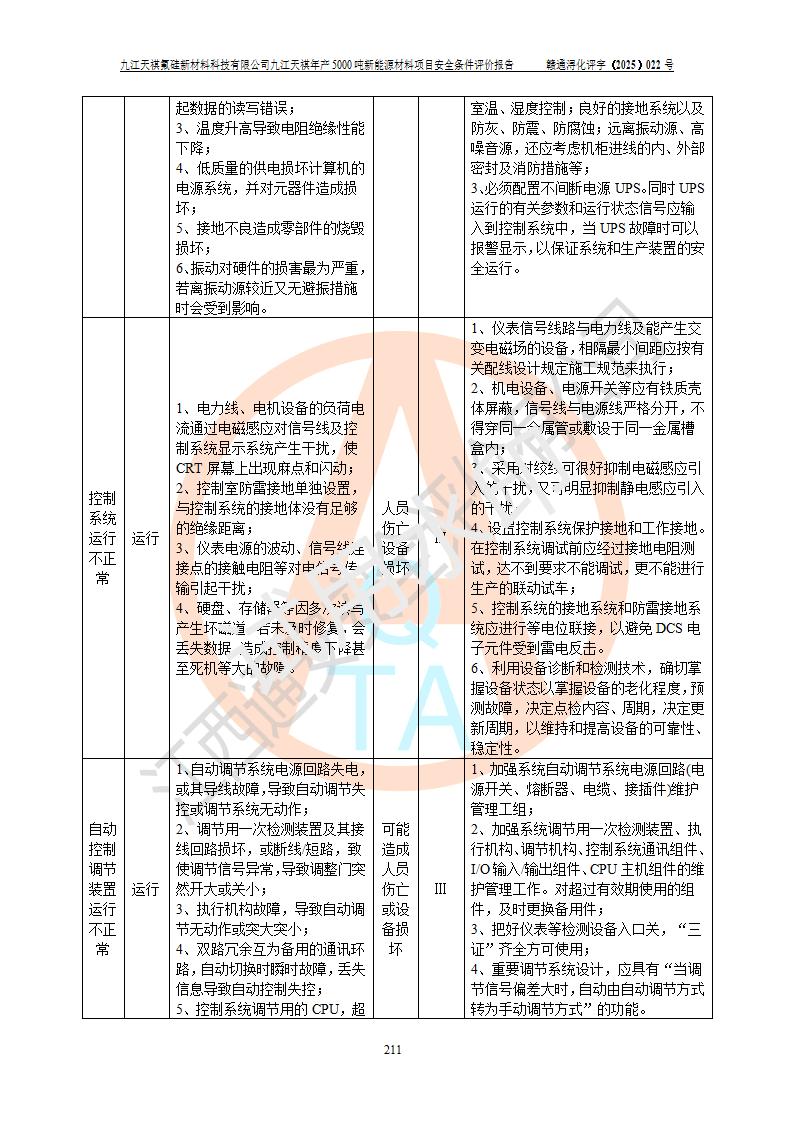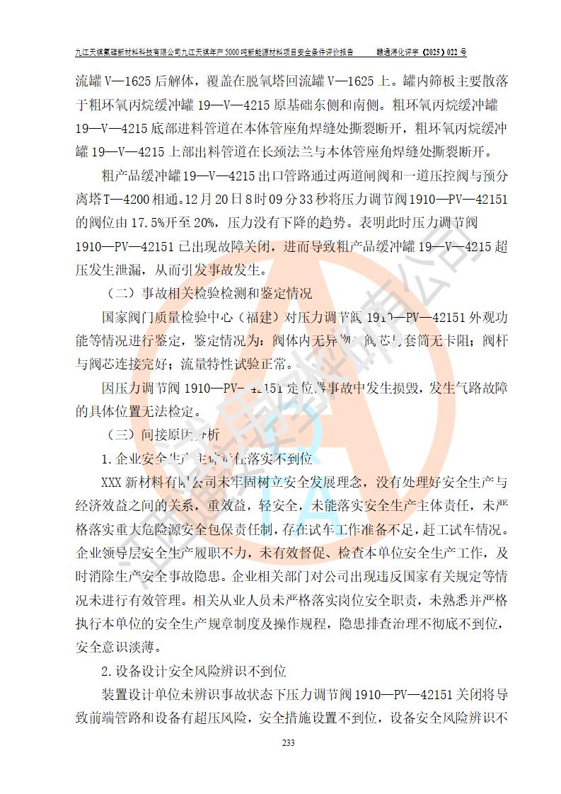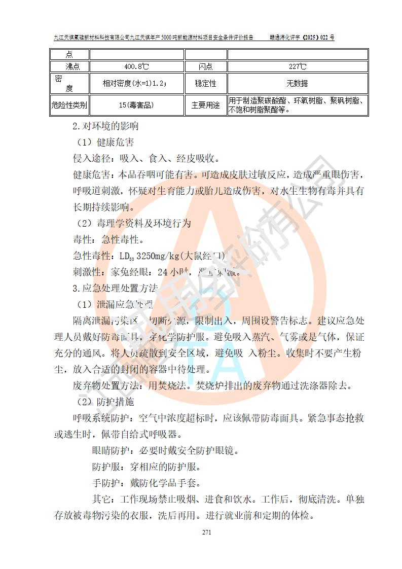 九江天祺氟硅新材料科技有限公司九江天祺年產(chǎn)5000 噸新能源材料項目安全條件評價報告