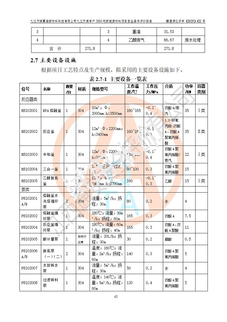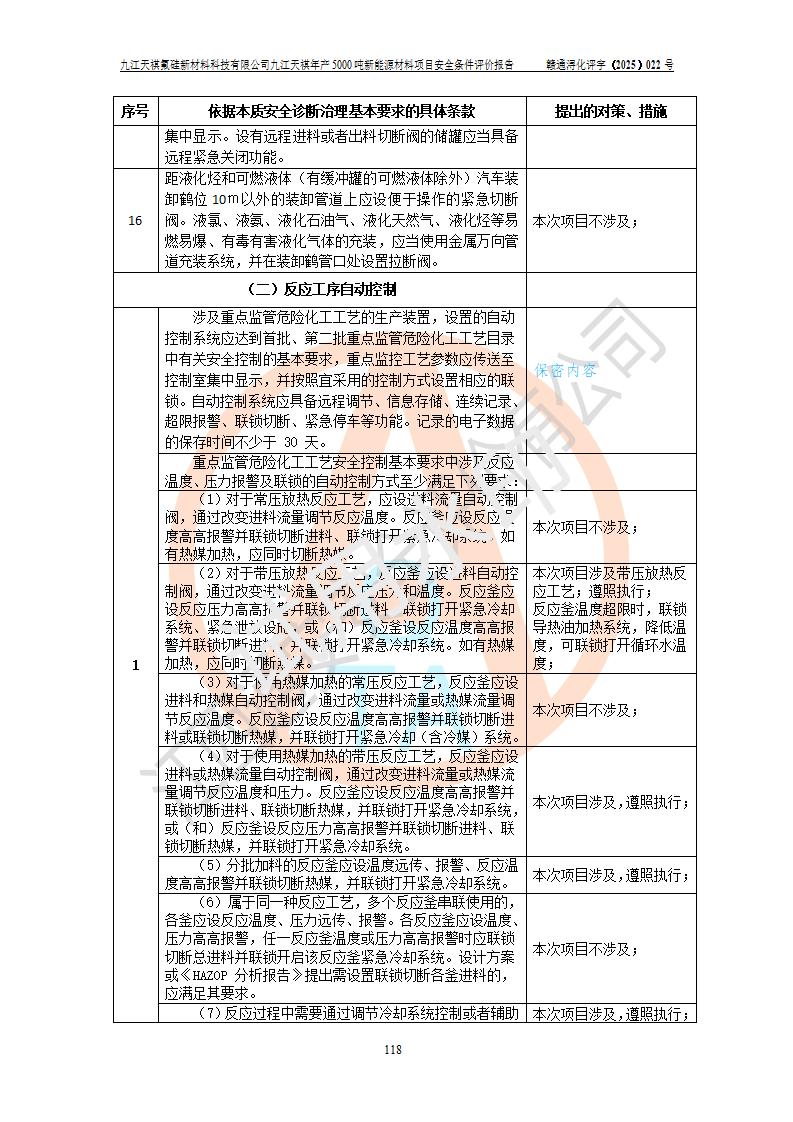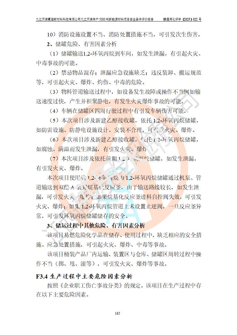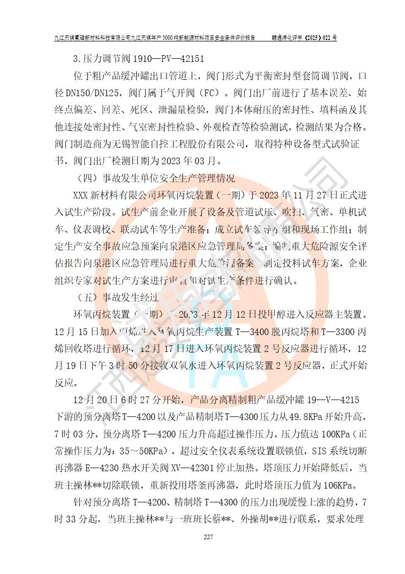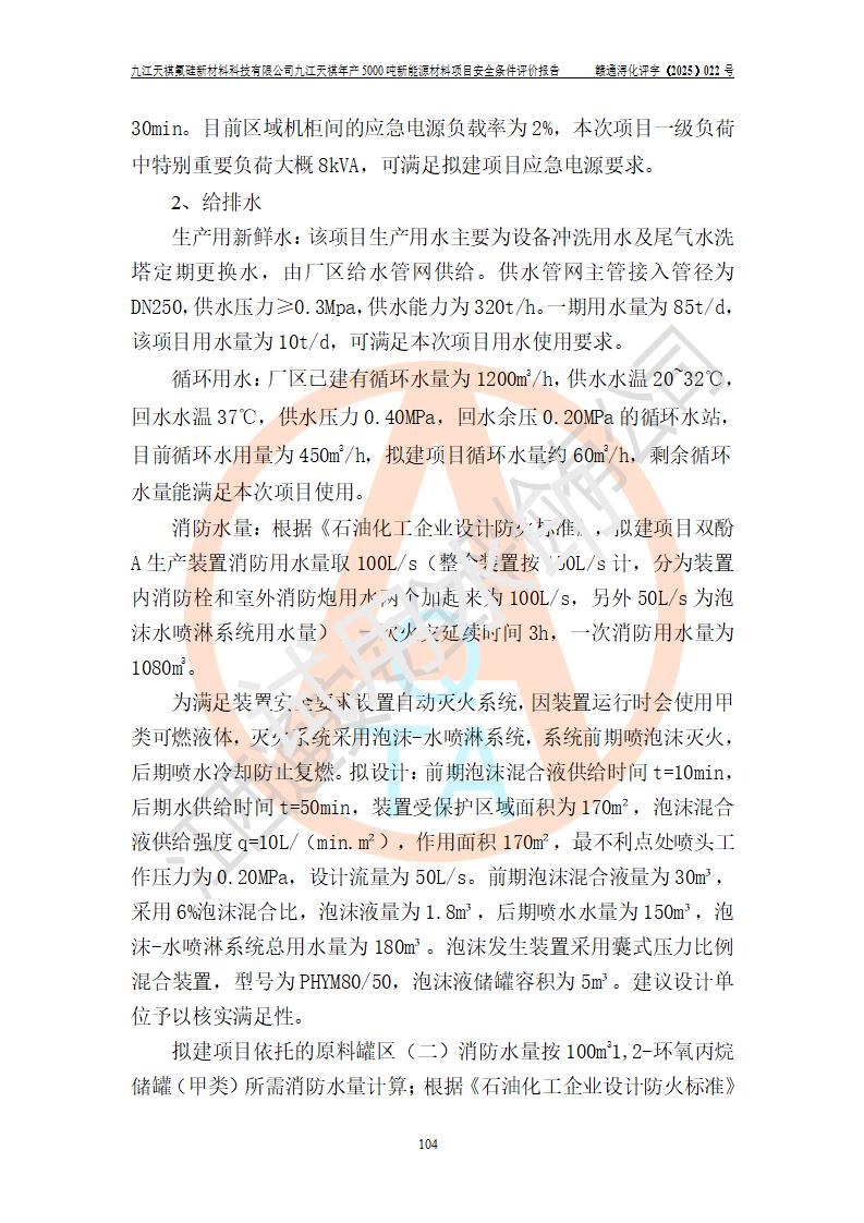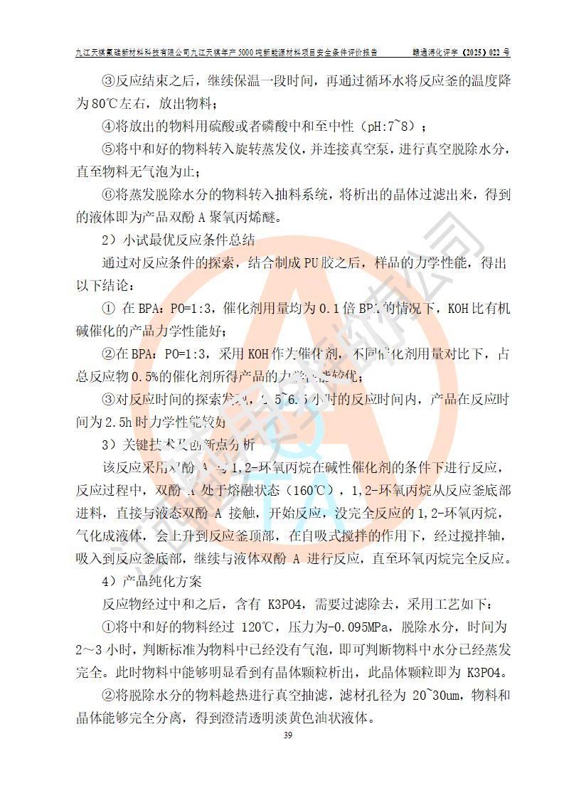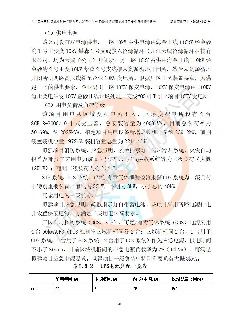 九江天祺氟硅新材料科技有限公司九江天祺年產(chǎn)5000 噸新能源材料項目安全條件評價報告