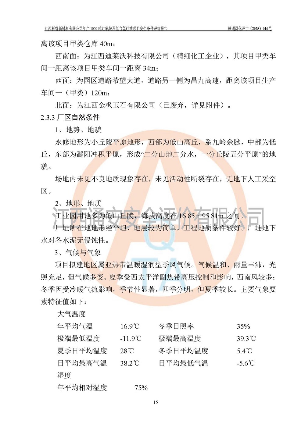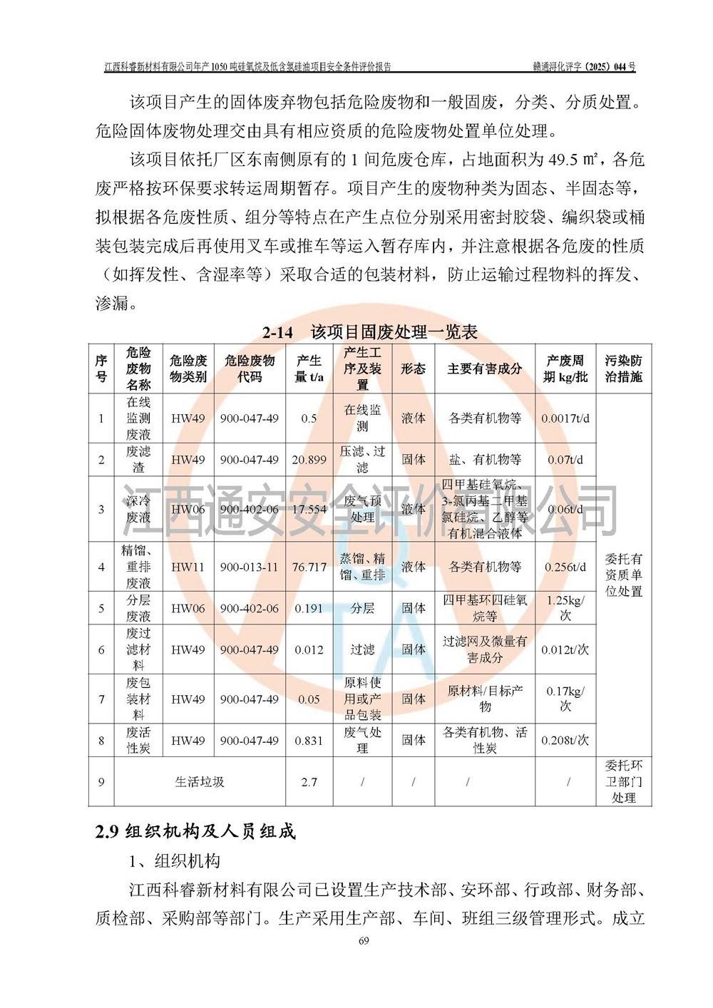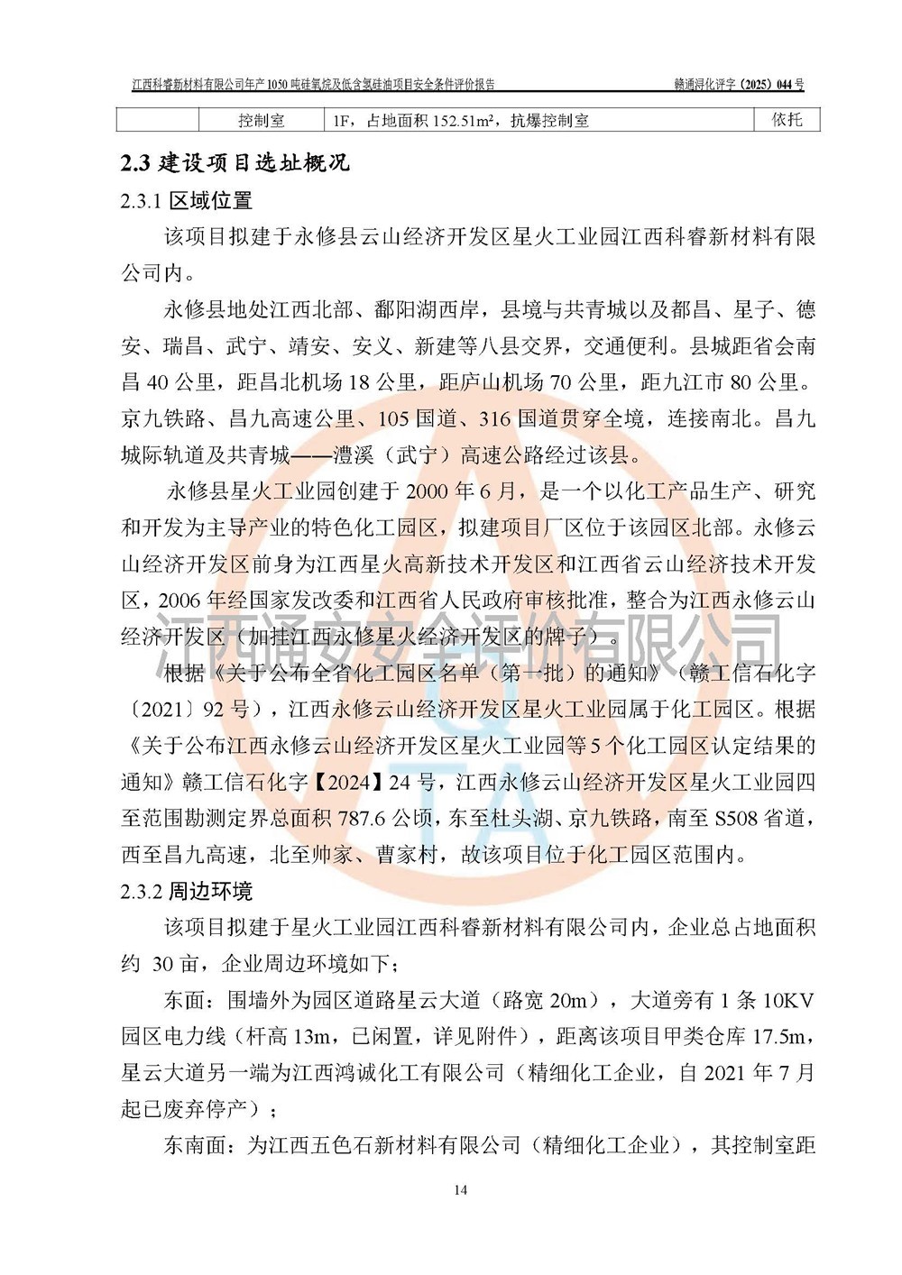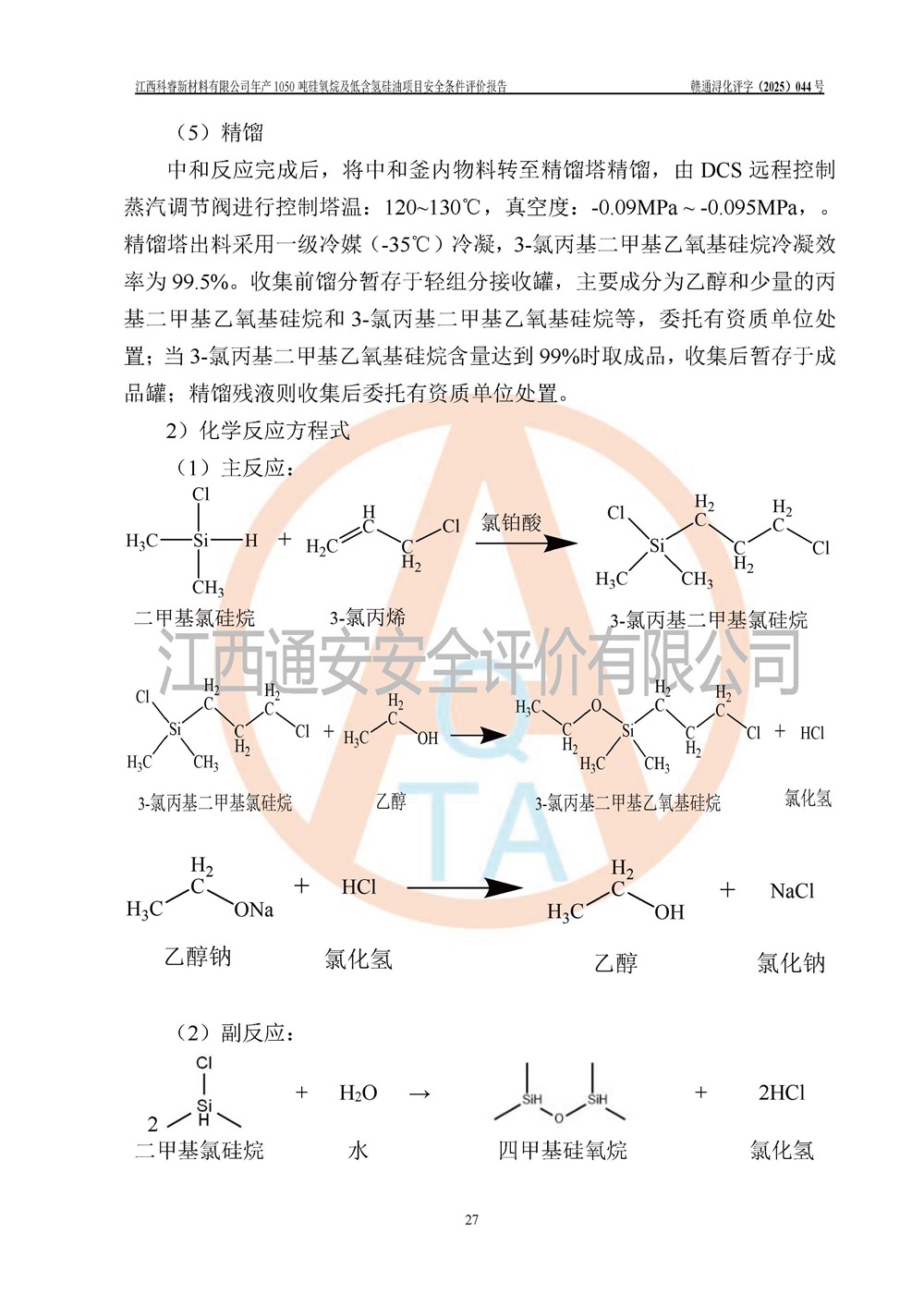 項(xiàng)目簡(jiǎn)介 | 江西科睿新材料有限公司位于江西省永修縣云山經(jīng)濟(jì)開(kāi)發(fā)區(qū)星火工業(yè)園希望大道7號(hào),于2014年02月19日在永修縣市場(chǎng)監(jiān)督管理局注冊(cè)成立,注冊(cè)資本為2000(萬(wàn)元),主要經(jīng)營(yíng)一般項(xiàng)目:有機(jī)硅產(chǎn)品的生產(chǎn)、銷售(危險(xiǎn)化學(xué)品除外);進(jìn)出口業(yè)務(wù)(以上經(jīng)營(yíng)項(xiàng)目**有專項(xiàng)規(guī)定的憑許可證、資質(zhì)證、批文經(jīng)營(yíng))。 為滿足企業(yè)內(nèi)部及市場(chǎng)需求擬再投資1215.94萬(wàn)元在現(xiàn)有廠區(qū)內(nèi)建設(shè)年產(chǎn)1050噸硅氧烷及低含氫硅油項(xiàng)目,具體包括1000t/a 3-氯丙基二甲基乙氧基硅烷(新增)、50t/a 1,3,5,7-四甲基環(huán)四硅氧烷(新增)、800t/a六甲基二硅氧烷(技改)、200t/a七甲基三硅氧烷(技改)、1000t/a低含氫硅油(技改)。 | |||||