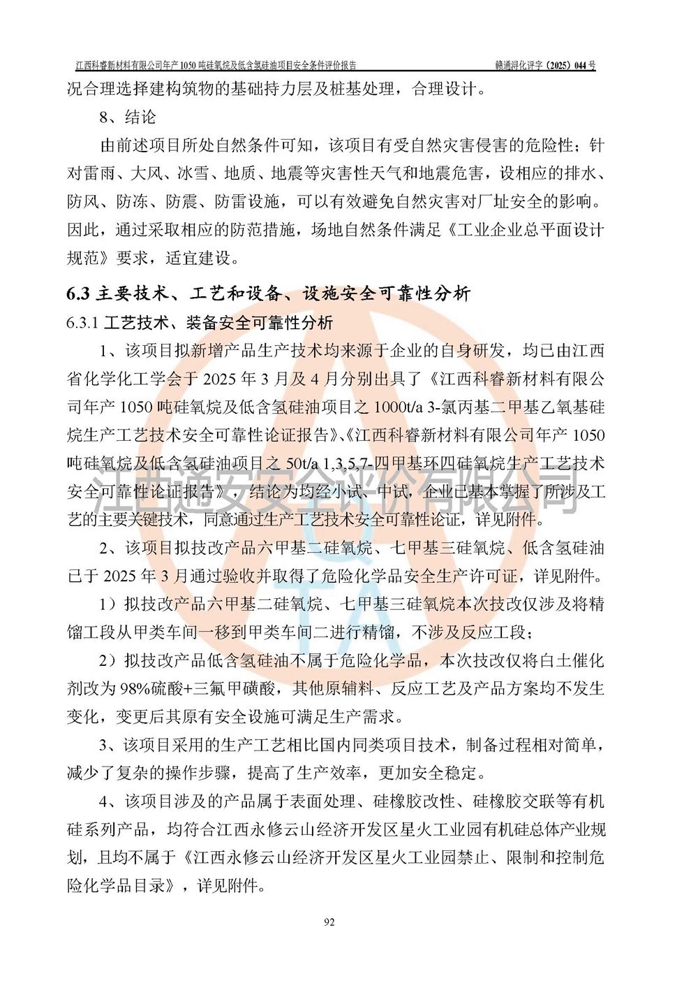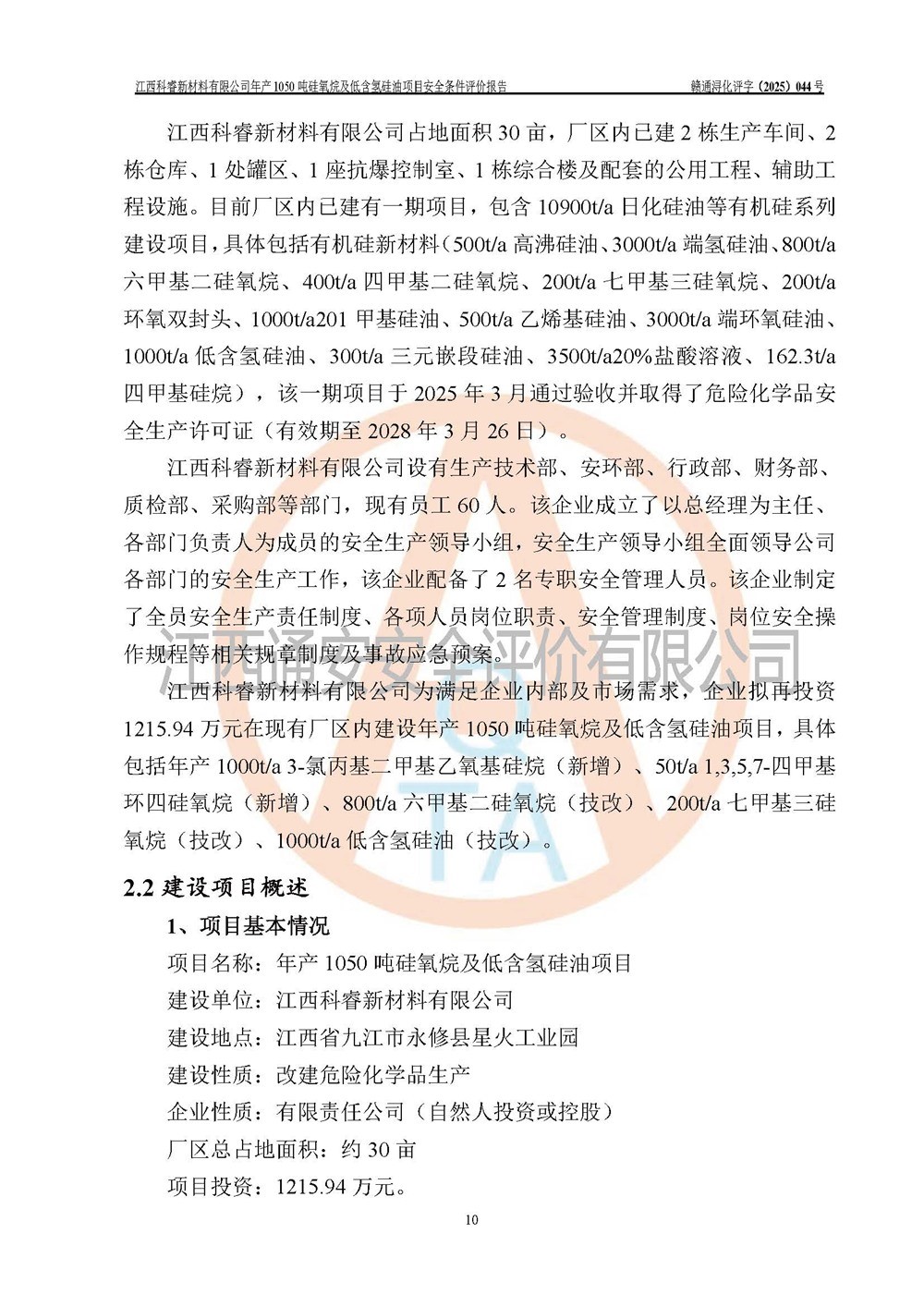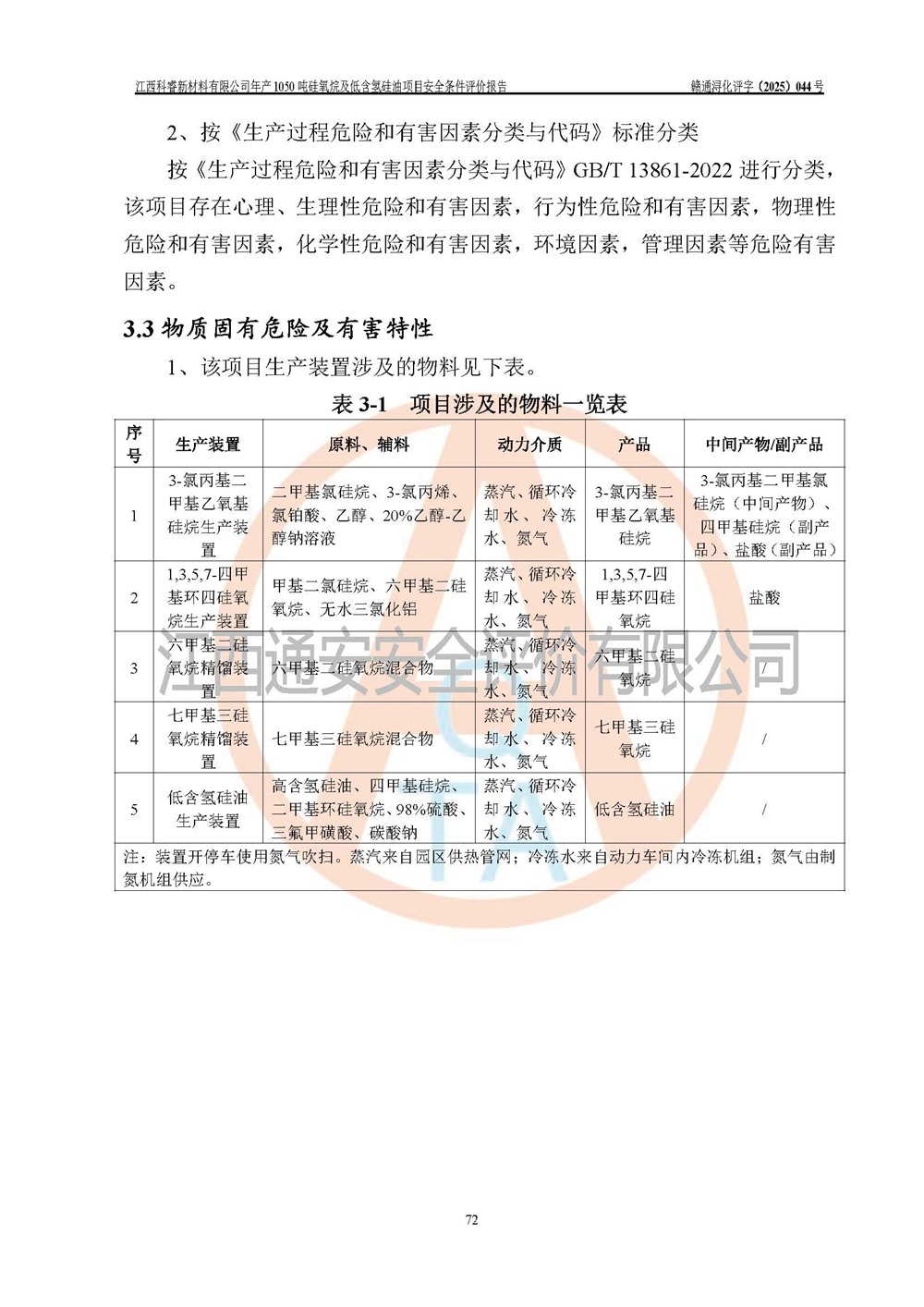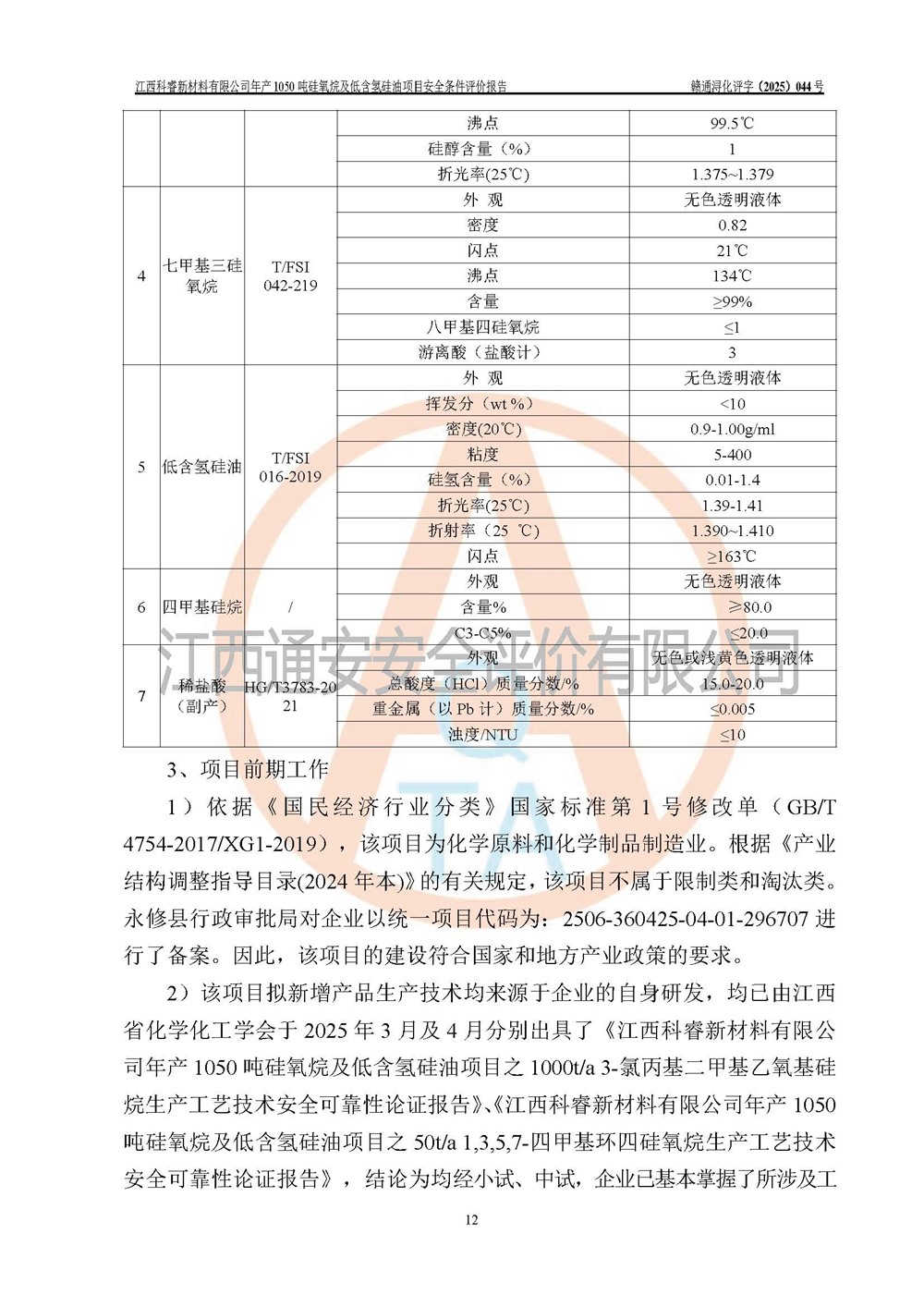 評(píng)價(jià)報(bào)告名稱 | 江西科睿新材料有限公司年產(chǎn)1050噸硅氧烷及低含氫硅油項(xiàng)目安全條件評(píng)價(jià) | |||||