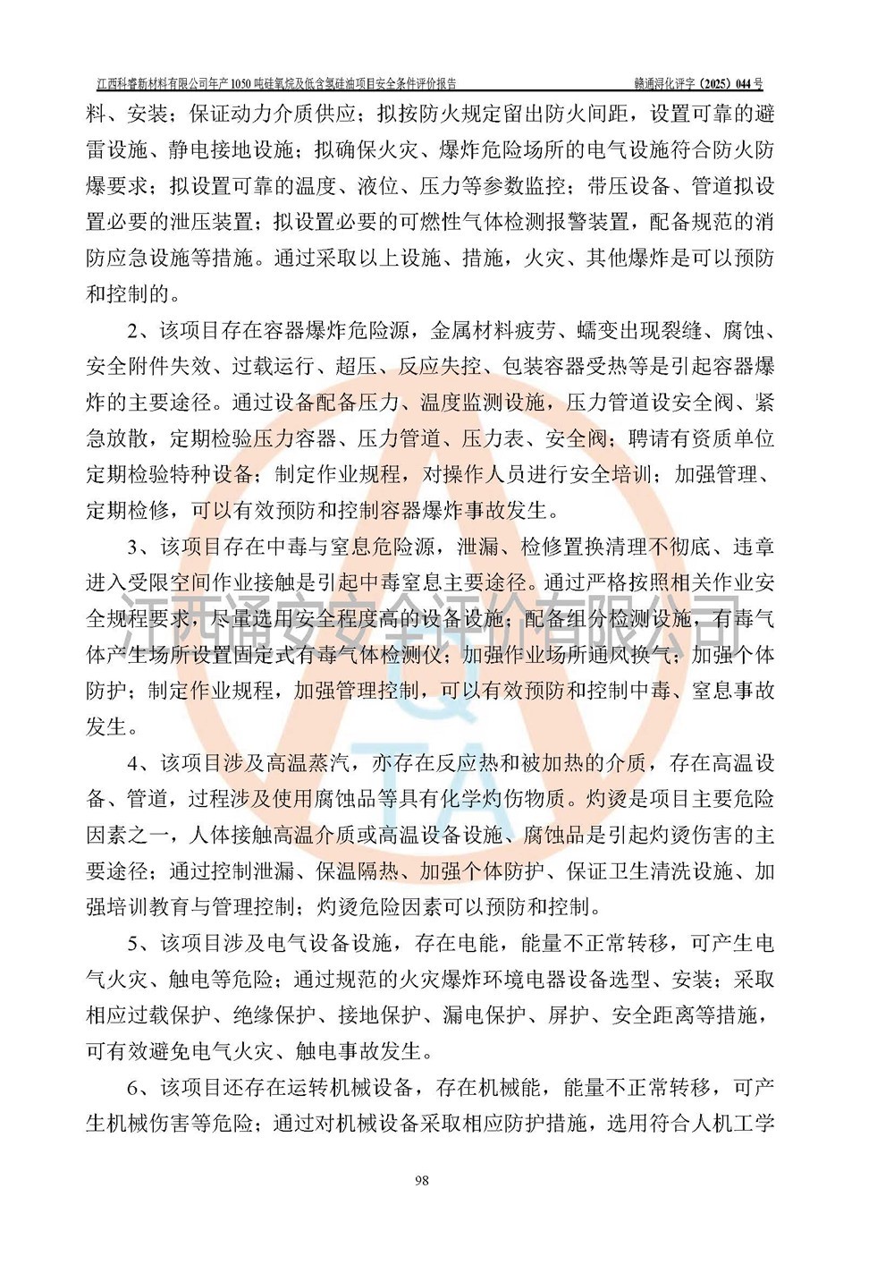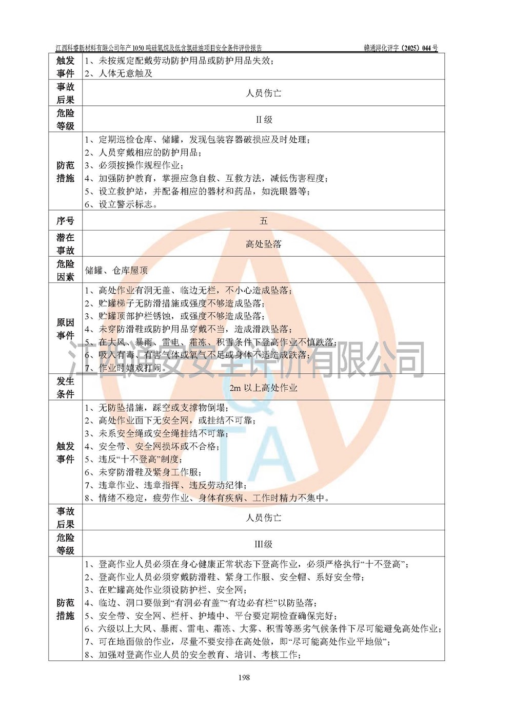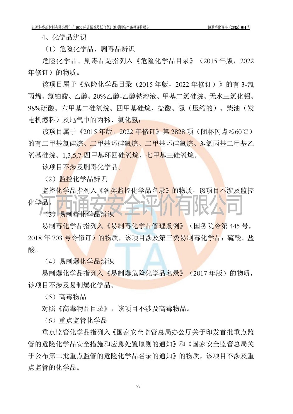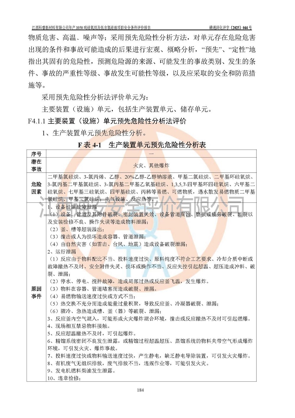 評(píng)價(jià)報(bào)告名稱 | 江西科睿新材料有限公司年產(chǎn)1050噸硅氧烷及低含氫硅油項(xiàng)目安全條件評(píng)價(jià) | |||||