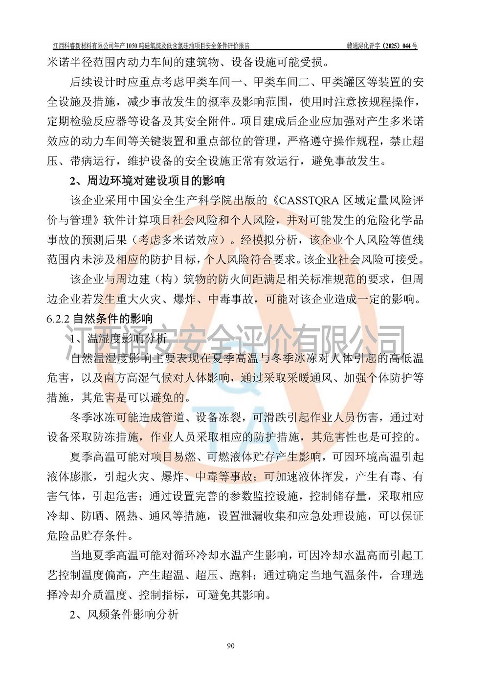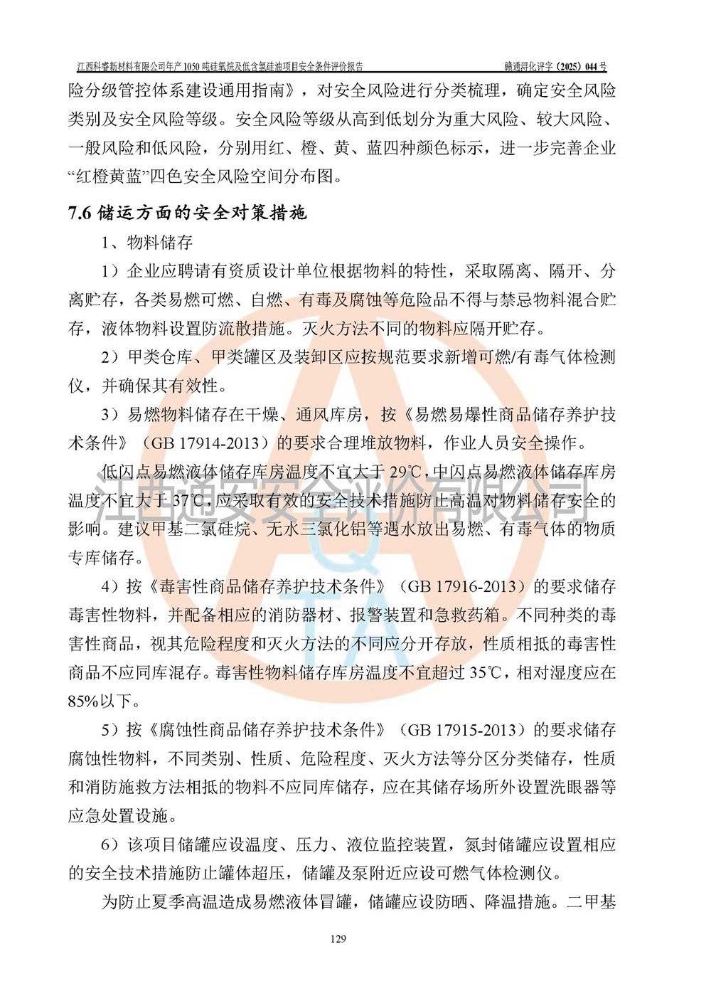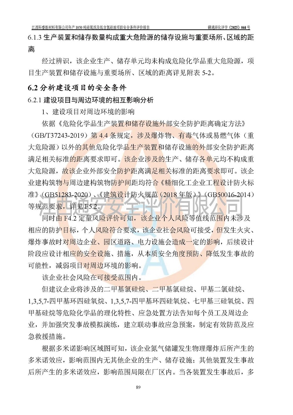 評(píng)價(jià)結(jié)論 | 江西科睿新材料有限公司年產(chǎn)1050噸硅氧烷及低含氫硅油項(xiàng)目的周邊環(huán)境、總體布局、自然環(huán)境能滿足建設(shè)安全條件;項(xiàng)目選擇的工藝過(guò)程及設(shè)備設(shè)施的安全可靠性能達(dá)到**法規(guī)、標(biāo)準(zhǔn)規(guī)定要求;項(xiàng)目存在的危險(xiǎn)有害因素可控,在落實(shí)本評(píng)價(jià)報(bào)告提出的有關(guān)安全對(duì)策措施后,其危險(xiǎn)有害程度能達(dá)到可以接受的程度,項(xiàng)目建設(shè)能夠?qū)崿F(xiàn)安全運(yùn)行的目標(biāo)。 | |||||