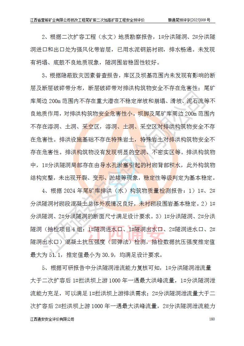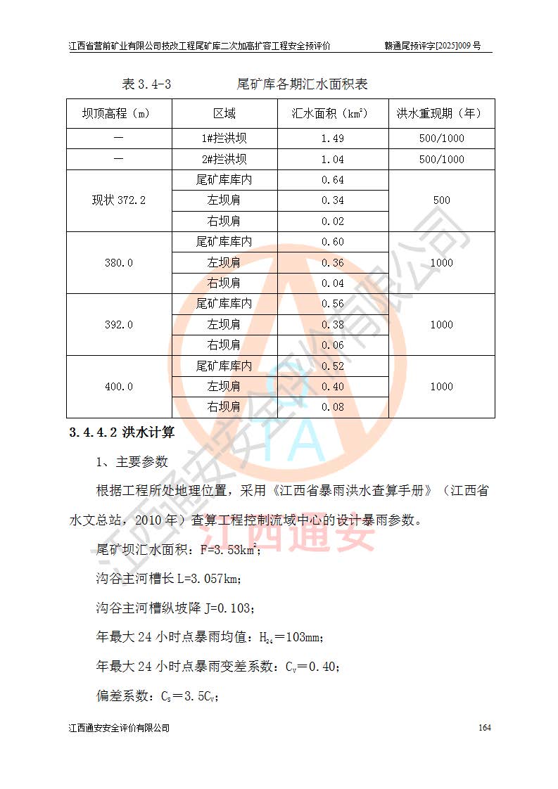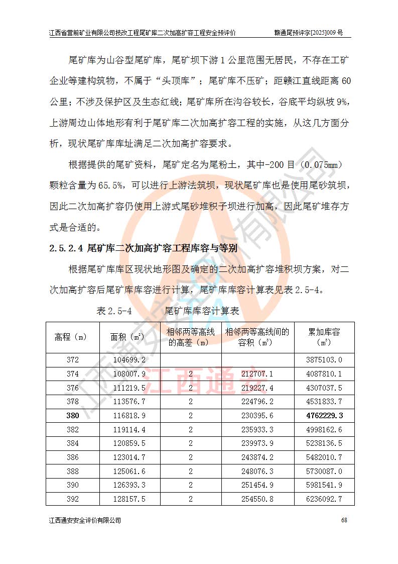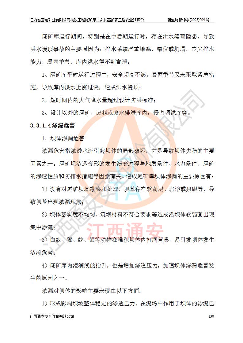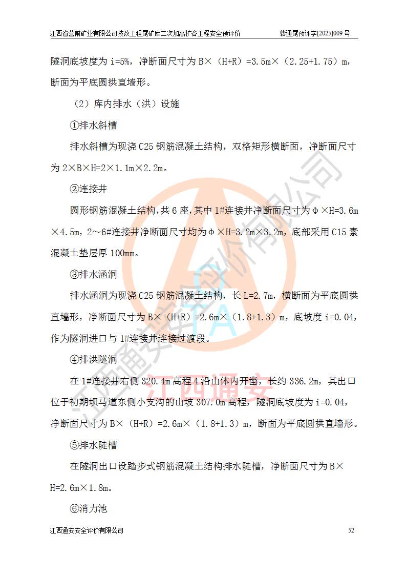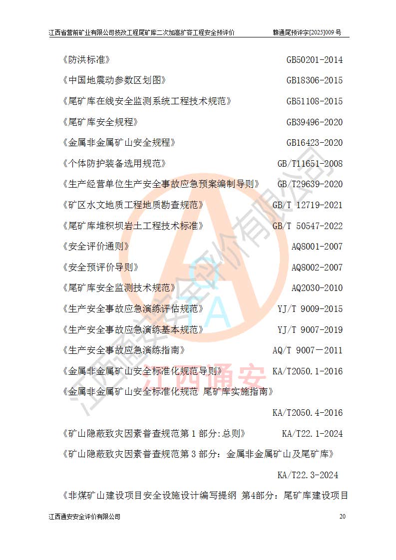 江西省營(yíng)前礦業(yè)有限公司于2003年12月16日成立,位于贛州市上猶縣營(yíng)前鎮(zhèn)焦里村境內(nèi),公司注冊(cè)資本10000萬(wàn)元,法定**人陳雅博,礦區(qū)地理坐標(biāo):東經(jīng)114°18′30″~114°19′00″,北緯25°52′35″~25°53′47″。公司經(jīng)營(yíng)范圍包括:鉛礦、鋅、鎢、銀地下開采、銷售。 江西省營(yíng)前礦業(yè)有限公司技改工程尾礦庫(kù)位于焦里鎢銀鉛鋅礦區(qū),處于上猶縣水巖鄉(xiāng)井子村坑尾自然村境內(nèi),為山谷型尾礦庫(kù)。 江西省營(yíng)前礦業(yè)有限公司技改工程尾礦庫(kù)于2013年由福建省冶金工業(yè)設(shè)計(jì)院設(shè)計(jì),2014年8月開始施工建設(shè),2015年4月竣工開始試運(yùn)行,2015年11月完成竣工驗(yàn)收,2016年1月首次取得安全生產(chǎn)許可證,2019年1月完成延期換證,2020年8月委托金建工程設(shè)計(jì)有限公司進(jìn)行尾礦庫(kù)加高擴(kuò)容工作,2020年10月21日取得了江西省應(yīng)急管理廳下發(fā)的《關(guān)于江西省營(yíng)前礦業(yè)有限公司技改工程尾礦庫(kù)加高擴(kuò)容工程安全設(shè)施設(shè)計(jì)的審查意見》(贛應(yīng)急非煤項(xiàng)目設(shè)審〔2020〕46號(hào)),之后委托駐馬店市黃淮建設(shè)工程有限公司負(fù)責(zé)施工,云南潤(rùn)滇工程技術(shù)有限公司負(fù)責(zé)監(jiān)理,2021年12月完成加高擴(kuò)容竣工驗(yàn)收工作,經(jīng)過(guò)延期,現(xiàn)尾礦庫(kù)安全生產(chǎn)許可證編號(hào)(贛)FM安許證字[2016]M1692號(hào),**期為2025年01月18日至2028年01月17日。 江西省營(yíng)前礦業(yè)有限公司技改工程尾礦庫(kù)為山谷型尾礦庫(kù),初期壩為透水堆石壩,壩頂高程為330.0m,初期壩高25.0m,后期采用上游式尾礦堆積壩,加高擴(kuò)容后*終壩頂高程為380.0m,堆積壩高50.0m,總壩高為75.0m,總庫(kù)容為為503.14×104m3,尾礦庫(kù)為三等庫(kù)。尾礦庫(kù)初期壩以上總匯水面積3.53km2,防洪標(biāo)準(zhǔn)取500年一遇。 目前尾礦庫(kù)由初期壩、堆積壩、庫(kù)內(nèi)排洪系統(tǒng)(雙格排水斜槽+連接井+排水涵洞+排洪隧洞+排水陡槽+消力池)、1#攔洪壩、1#分洪隧洞、2#攔洪壩、2#分洪隧洞和安全監(jiān)測(cè)設(shè)施組成。根據(jù)建設(shè)單位提供的尾礦庫(kù)平面布置圖,截至2024年12月,現(xiàn)狀尾礦庫(kù)堆積壩頂高程為372.2m,現(xiàn)狀總壩高67.2m,灘頂高程為369.8m,現(xiàn)狀全庫(kù)容387.51×104m3,現(xiàn)狀尾礦庫(kù)為三等庫(kù),原加高擴(kuò)容設(shè)計(jì)*終堆積壩頂高程為380.0m,現(xiàn)剩余庫(kù)容115.63×104m3,剩余**庫(kù)容約92.5×104m3,剩余服務(wù)年限約4.5年;礦山現(xiàn)有儲(chǔ)量較大,剩余庫(kù)容及服務(wù)年限不滿足礦山后期生產(chǎn)需要。 技改工程尾礦庫(kù)尾礦壩下游1**范圍無(wú)居民,不存在工礦企業(yè)等建構(gòu)筑物,不屬于“頭頂庫(kù)”;尾礦庫(kù)不壓礦;距贛江直線距離60**;不涉及保護(hù)區(qū)及生態(tài)紅線;尾礦庫(kù)所在溝谷較長(zhǎng),谷底平均縱坡9%,上游周邊山體地形有利于尾礦庫(kù)二次加高擴(kuò)容工程的實(shí)施,因此為了增加尾礦庫(kù)庫(kù)容,延長(zhǎng)服務(wù)年限,充分利用尾礦庫(kù)所在溝谷地形,江西省營(yíng)前礦業(yè)有限公司對(duì)技改尾礦庫(kù)進(jìn)行二次加高擴(kuò)容。 2024年12月,江西省營(yíng)前礦業(yè)有限公司委托地礦贛西地質(zhì)工程勘察院編制了《江西省營(yíng)前礦業(yè)有限公司技改工程尾礦庫(kù)二次擴(kuò)容工程(水文)地質(zhì)勘察報(bào)告》,2025年4月,江西省營(yíng)前礦業(yè)有限公司委托金建工程設(shè)計(jì)有限公司編制了《江西省營(yíng)前礦業(yè)有限公司技改工程尾礦庫(kù)二次加高擴(kuò)容工程可行性研究報(bào)告》。 按照非煤礦山建設(shè)項(xiàng)目安全設(shè)施“三同時(shí)”的規(guī)定要求,技改工程尾礦庫(kù)為二次加高擴(kuò)容工程,**進(jìn)行安全預(yù)評(píng)價(jià);江西省營(yíng)前礦業(yè)有限公司委托我公司承擔(dān)技改工程尾礦庫(kù)二次加高擴(kuò)容工程建設(shè)項(xiàng)目的安全預(yù)評(píng)價(jià)工作。 |