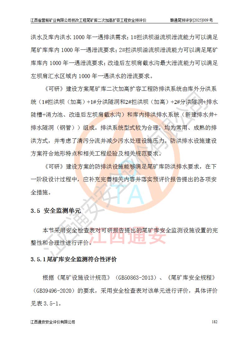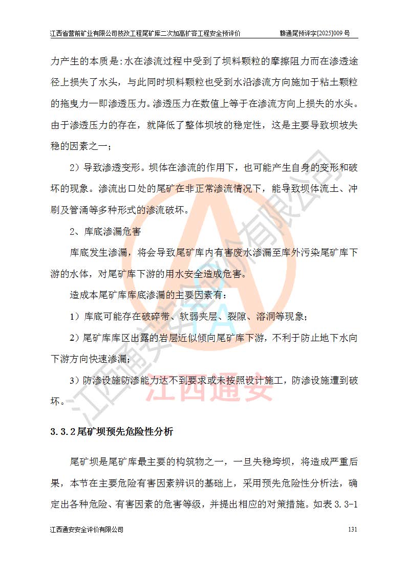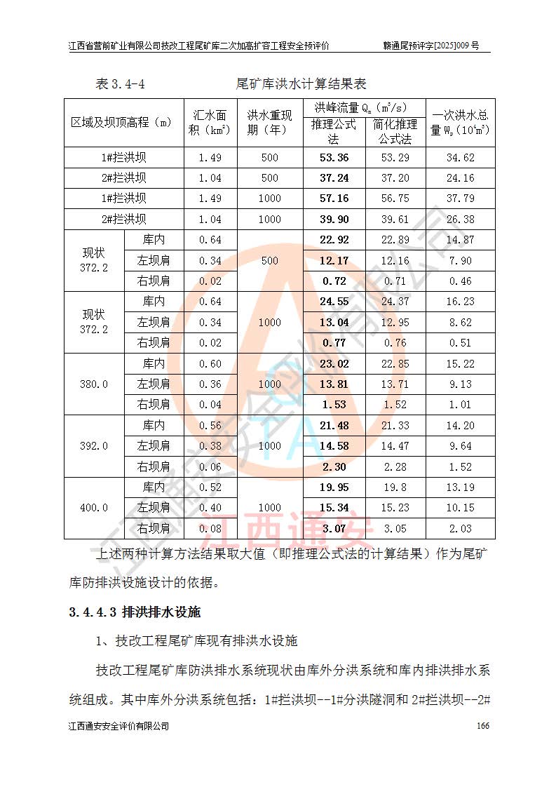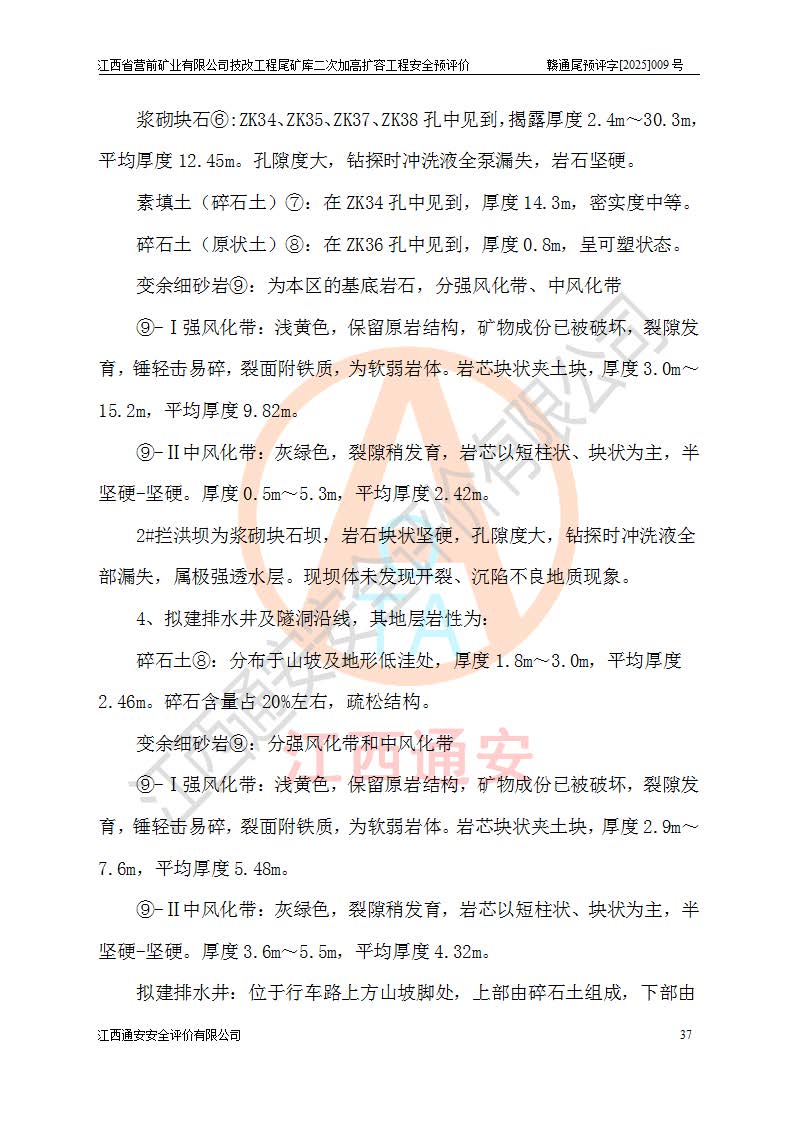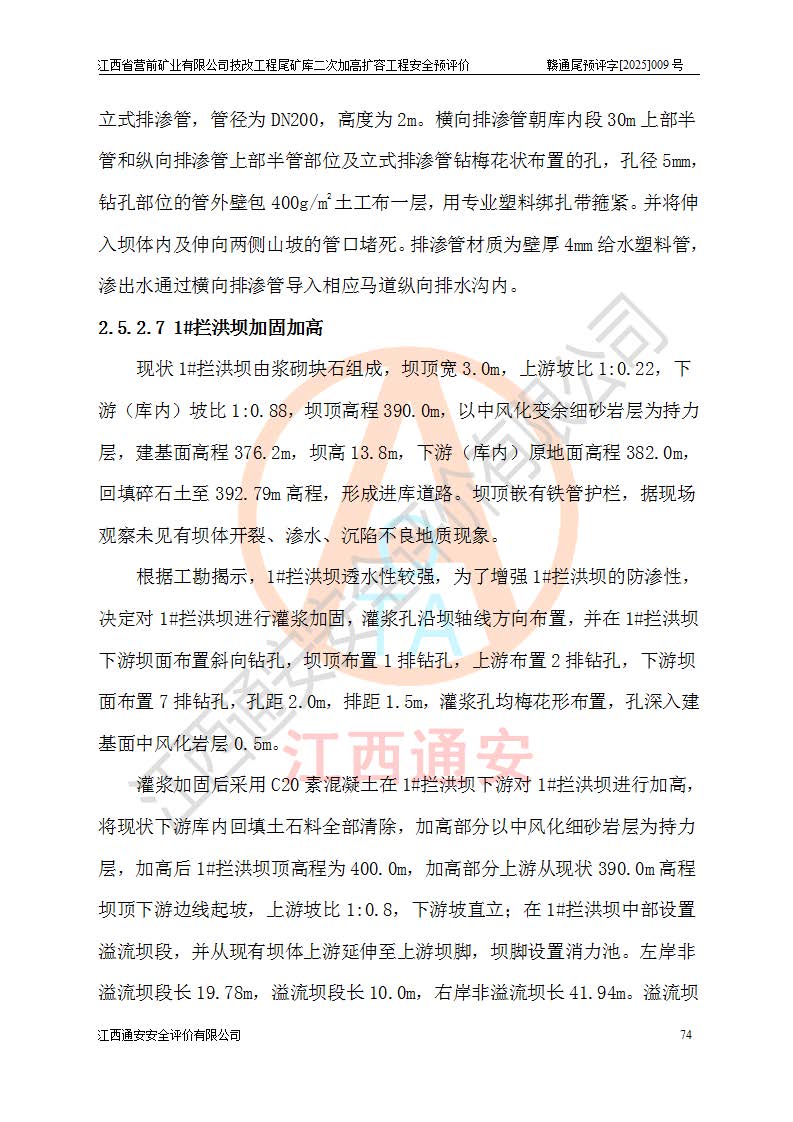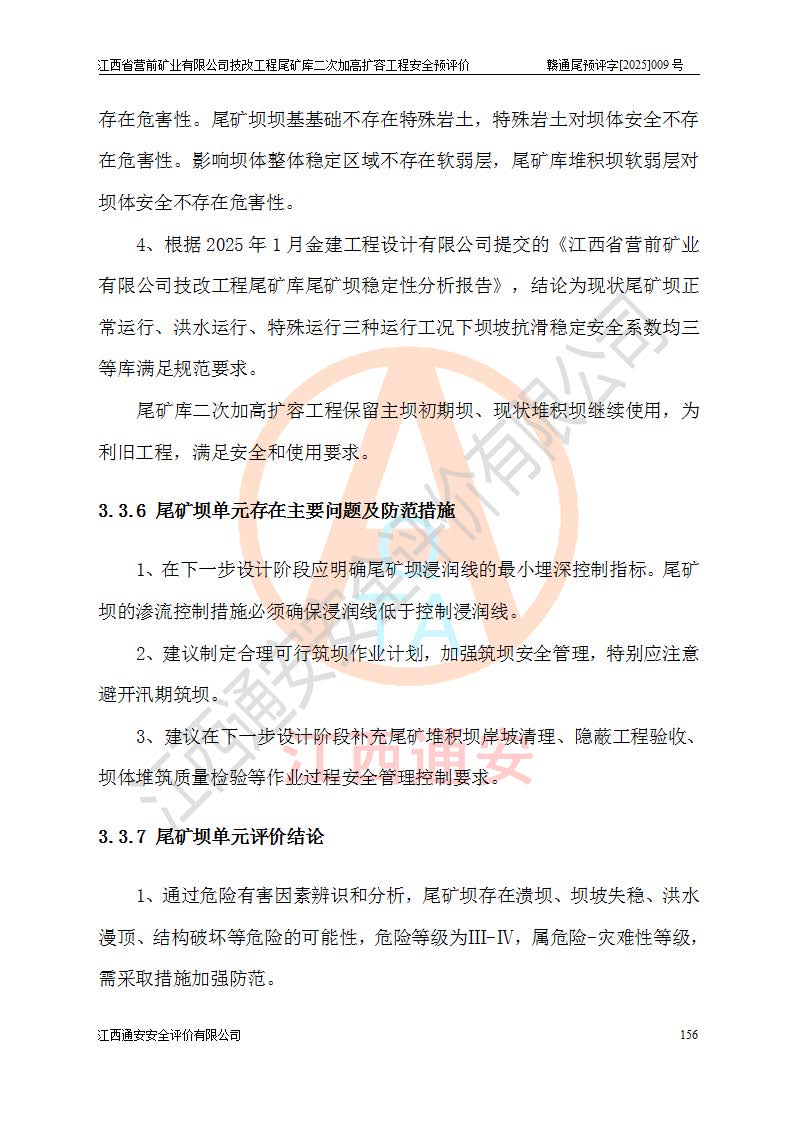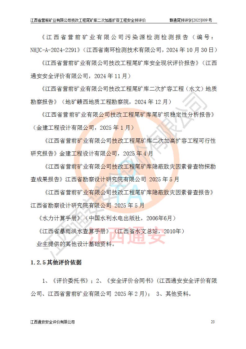 江西省營(yíng)前礦業(yè)有限公司于2003年12月16日成立,位于贛州市上猶縣營(yíng)前鎮(zhèn)焦里村境內(nèi),公司注冊(cè)資本10000萬(wàn)元,法定**人陳雅博,礦區(qū)地理坐標(biāo):東經(jīng)114°18′30″~114°19′00″,北緯25°52′35″~25°53′47″。公司經(jīng)營(yíng)范圍包括:鉛礦、鋅、鎢、銀地下開采、銷售。 江西省營(yíng)前礦業(yè)有限公司技改工程尾礦庫(kù)位于焦里鎢銀鉛鋅礦區(qū),處于上猶縣水巖鄉(xiāng)井子村坑尾自然村境內(nèi),為山谷型尾礦庫(kù)。 江西省營(yíng)前礦業(yè)有限公司技改工程尾礦庫(kù)于2013年由福建省冶金工業(yè)設(shè)計(jì)院設(shè)計(jì),2014年8月開始施工建設(shè),2015年4月竣工開始試運(yùn)行,2015年11月完成竣工驗(yàn)收,2016年1月首次取得安全生產(chǎn)許可證,2019年1月完成延期換證,2020年8月委托金建工程設(shè)計(jì)有限公司進(jìn)行尾礦庫(kù)加高擴(kuò)容工作,2020年10月21日取得了江西省應(yīng)急管理廳下發(fā)的《關(guān)于江西省營(yíng)前礦業(yè)有限公司技改工程尾礦庫(kù)加高擴(kuò)容工程安全設(shè)施設(shè)計(jì)的審查意見》(贛應(yīng)急非煤項(xiàng)目設(shè)審〔2020〕46號(hào)),之后委托駐馬店市黃淮建設(shè)工程有限公司負(fù)責(zé)施工,云南潤(rùn)滇工程技術(shù)有限公司負(fù)責(zé)監(jiān)理,2021年12月完成加高擴(kuò)容竣工驗(yàn)收工作,經(jīng)過(guò)延期,現(xiàn)尾礦庫(kù)安全生產(chǎn)許可證編號(hào)(贛)FM安許證字[2016]M1692號(hào),**期為2025年01月18日至2028年01月17日。 江西省營(yíng)前礦業(yè)有限公司技改工程尾礦庫(kù)為山谷型尾礦庫(kù),初期壩為透水堆石壩,壩頂高程為330.0m,初期壩高25.0m,后期采用上游式尾礦堆積壩,加高擴(kuò)容后*終壩頂高程為380.0m,堆積壩高50.0m,總壩高為75.0m,總庫(kù)容為為503.14×104m3,尾礦庫(kù)為三等庫(kù)。尾礦庫(kù)初期壩以上總匯水面積3.53km2,防洪標(biāo)準(zhǔn)取500年一遇。 目前尾礦庫(kù)由初期壩、堆積壩、庫(kù)內(nèi)排洪系統(tǒng)(雙格排水斜槽+連接井+排水涵洞+排洪隧洞+排水陡槽+消力池)、1#攔洪壩、1#分洪隧洞、2#攔洪壩、2#分洪隧洞和安全監(jiān)測(cè)設(shè)施組成。根據(jù)建設(shè)單位提供的尾礦庫(kù)平面布置圖,截至2024年12月,現(xiàn)狀尾礦庫(kù)堆積壩頂高程為372.2m,現(xiàn)狀總壩高67.2m,灘頂高程為369.8m,現(xiàn)狀全庫(kù)容387.51×104m3,現(xiàn)狀尾礦庫(kù)為三等庫(kù),原加高擴(kuò)容設(shè)計(jì)*終堆積壩頂高程為380.0m,現(xiàn)剩余庫(kù)容115.63×104m3,剩余**庫(kù)容約92.5×104m3,剩余服務(wù)年限約4.5年;礦山現(xiàn)有儲(chǔ)量較大,剩余庫(kù)容及服務(wù)年限不滿足礦山后期生產(chǎn)需要。 技改工程尾礦庫(kù)尾礦壩下游1**范圍無(wú)居民,不存在工礦企業(yè)等建構(gòu)筑物,不屬于“頭頂庫(kù)”;尾礦庫(kù)不壓礦;距贛江直線距離60**;不涉及保護(hù)區(qū)及生態(tài)紅線;尾礦庫(kù)所在溝谷較長(zhǎng),谷底平均縱坡9%,上游周邊山體地形有利于尾礦庫(kù)二次加高擴(kuò)容工程的實(shí)施,因此為了增加尾礦庫(kù)庫(kù)容,延長(zhǎng)服務(wù)年限,充分利用尾礦庫(kù)所在溝谷地形,江西省營(yíng)前礦業(yè)有限公司對(duì)技改尾礦庫(kù)進(jìn)行二次加高擴(kuò)容。 2024年12月,江西省營(yíng)前礦業(yè)有限公司委托地礦贛西地質(zhì)工程勘察院編制了《江西省營(yíng)前礦業(yè)有限公司技改工程尾礦庫(kù)二次擴(kuò)容工程(水文)地質(zhì)勘察報(bào)告》,2025年4月,江西省營(yíng)前礦業(yè)有限公司委托金建工程設(shè)計(jì)有限公司編制了《江西省營(yíng)前礦業(yè)有限公司技改工程尾礦庫(kù)二次加高擴(kuò)容工程可行性研究報(bào)告》。 按照非煤礦山建設(shè)項(xiàng)目安全設(shè)施“三同時(shí)”的規(guī)定要求,技改工程尾礦庫(kù)為二次加高擴(kuò)容工程,**進(jìn)行安全預(yù)評(píng)價(jià);江西省營(yíng)前礦業(yè)有限公司委托我公司承擔(dān)技改工程尾礦庫(kù)二次加高擴(kuò)容工程建設(shè)項(xiàng)目的安全預(yù)評(píng)價(jià)工作。 |