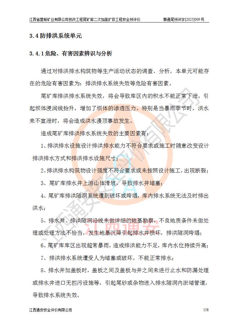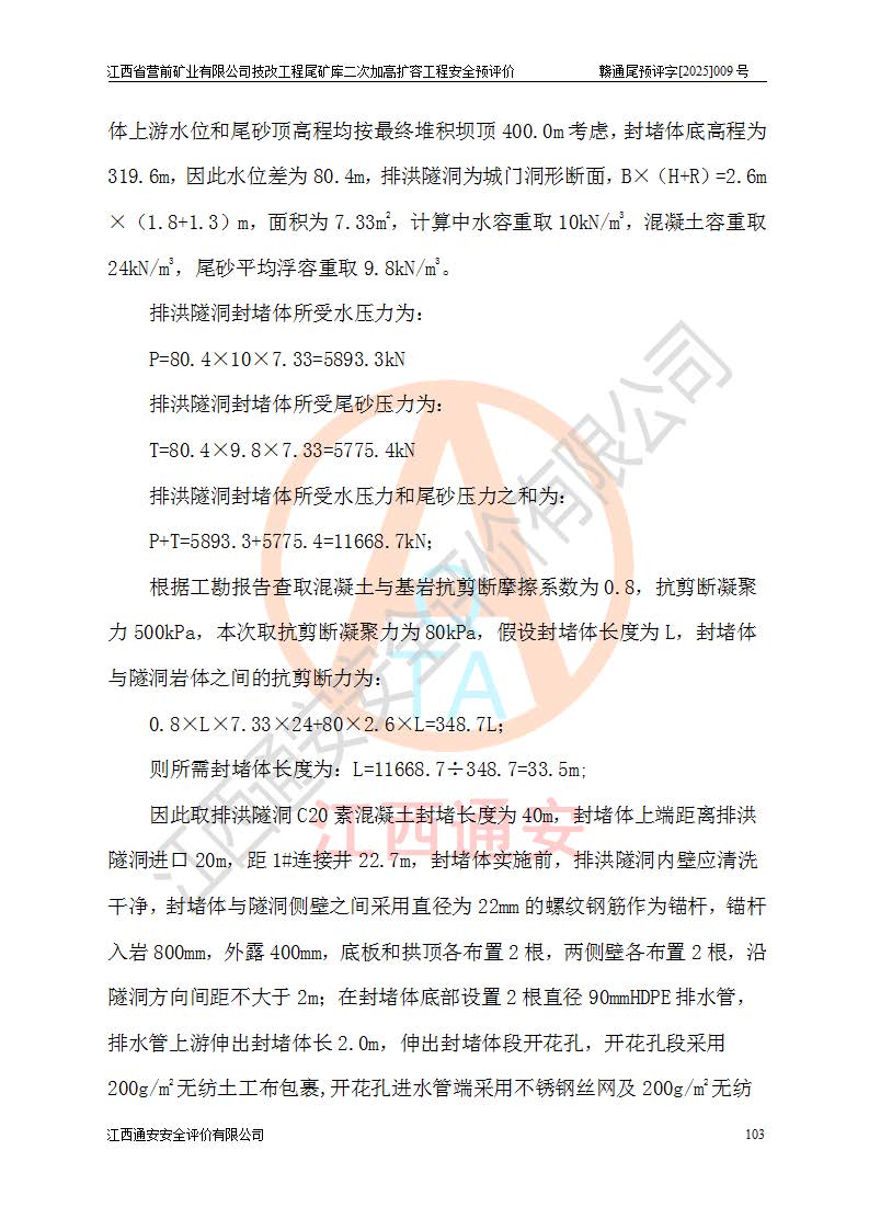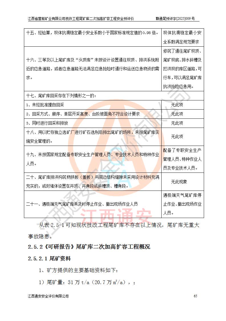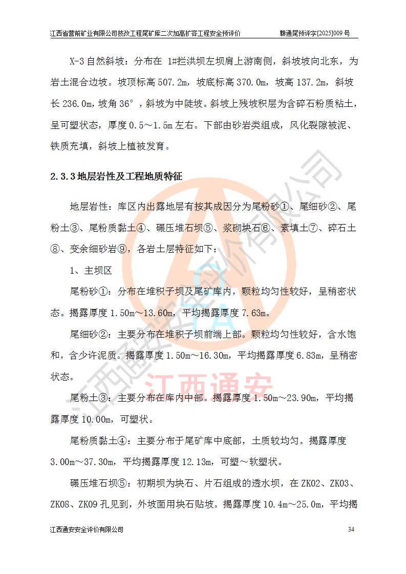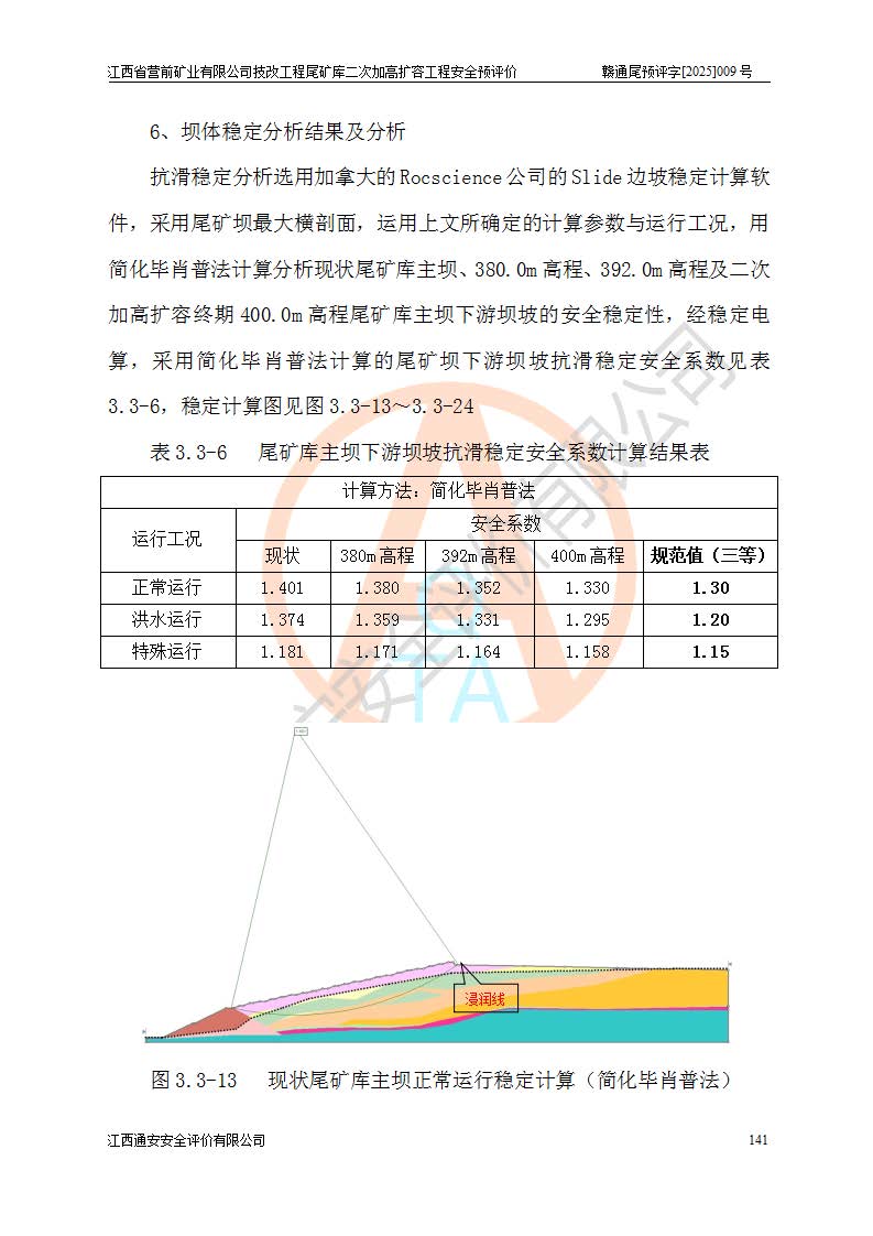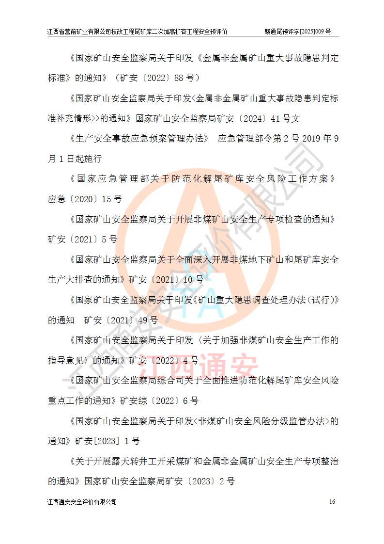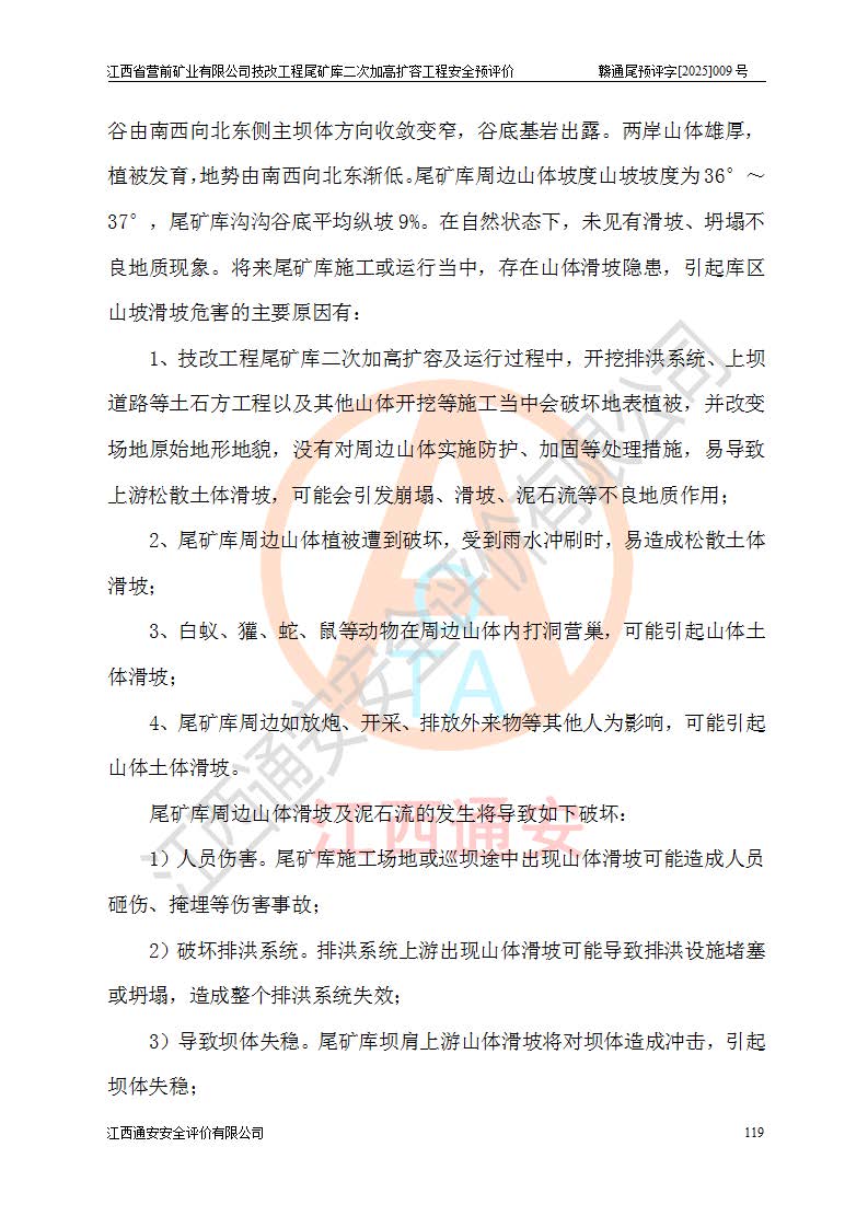 江西省營(yíng)前礦業(yè)有限公司于2003年12月16日成立,位于贛州市上猶縣營(yíng)前鎮(zhèn)焦里村境內(nèi),公司注冊(cè)資本10000萬(wàn)元,法定**人陳雅博,礦區(qū)地理坐標(biāo):東經(jīng)114°18′30″~114°19′00″,北緯25°52′35″~25°53′47″。公司經(jīng)營(yíng)范圍包括:鉛礦、鋅、鎢、銀地下開采、銷售。 江西省營(yíng)前礦業(yè)有限公司技改工程尾礦庫(kù)位于焦里鎢銀鉛鋅礦區(qū),處于上猶縣水巖鄉(xiāng)井子村坑尾自然村境內(nèi),為山谷型尾礦庫(kù)。 江西省營(yíng)前礦業(yè)有限公司技改工程尾礦庫(kù)于2013年由福建省冶金工業(yè)設(shè)計(jì)院設(shè)計(jì),2014年8月開始施工建設(shè),2015年4月竣工開始試運(yùn)行,2015年11月完成竣工驗(yàn)收,2016年1月首次取得安全生產(chǎn)許可證,2019年1月完成延期換證,2020年8月委托金建工程設(shè)計(jì)有限公司進(jìn)行尾礦庫(kù)加高擴(kuò)容工作,2020年10月21日取得了江西省應(yīng)急管理廳下發(fā)的《關(guān)于江西省營(yíng)前礦業(yè)有限公司技改工程尾礦庫(kù)加高擴(kuò)容工程安全設(shè)施設(shè)計(jì)的審查意見》(贛應(yīng)急非煤項(xiàng)目設(shè)審〔2020〕46號(hào)),之后委托駐馬店市黃淮建設(shè)工程有限公司負(fù)責(zé)施工,云南潤(rùn)滇工程技術(shù)有限公司負(fù)責(zé)監(jiān)理,2021年12月完成加高擴(kuò)容竣工驗(yàn)收工作,經(jīng)過(guò)延期,現(xiàn)尾礦庫(kù)安全生產(chǎn)許可證編號(hào)(贛)FM安許證字[2016]M1692號(hào),**期為2025年01月18日至2028年01月17日。 江西省營(yíng)前礦業(yè)有限公司技改工程尾礦庫(kù)為山谷型尾礦庫(kù),初期壩為透水堆石壩,壩頂高程為330.0m,初期壩高25.0m,后期采用上游式尾礦堆積壩,加高擴(kuò)容后*終壩頂高程為380.0m,堆積壩高50.0m,總壩高為75.0m,總庫(kù)容為為503.14×104m3,尾礦庫(kù)為三等庫(kù)。尾礦庫(kù)初期壩以上總匯水面積3.53km2,防洪標(biāo)準(zhǔn)取500年一遇。 目前尾礦庫(kù)由初期壩、堆積壩、庫(kù)內(nèi)排洪系統(tǒng)(雙格排水斜槽+連接井+排水涵洞+排洪隧洞+排水陡槽+消力池)、1#攔洪壩、1#分洪隧洞、2#攔洪壩、2#分洪隧洞和安全監(jiān)測(cè)設(shè)施組成。根據(jù)建設(shè)單位提供的尾礦庫(kù)平面布置圖,截至2024年12月,現(xiàn)狀尾礦庫(kù)堆積壩頂高程為372.2m,現(xiàn)狀總壩高67.2m,灘頂高程為369.8m,現(xiàn)狀全庫(kù)容387.51×104m3,現(xiàn)狀尾礦庫(kù)為三等庫(kù),原加高擴(kuò)容設(shè)計(jì)*終堆積壩頂高程為380.0m,現(xiàn)剩余庫(kù)容115.63×104m3,剩余**庫(kù)容約92.5×104m3,剩余服務(wù)年限約4.5年;礦山現(xiàn)有儲(chǔ)量較大,剩余庫(kù)容及服務(wù)年限不滿足礦山后期生產(chǎn)需要。 技改工程尾礦庫(kù)尾礦壩下游1**范圍無(wú)居民,不存在工礦企業(yè)等建構(gòu)筑物,不屬于“頭頂庫(kù)”;尾礦庫(kù)不壓礦;距贛江直線距離60**;不涉及保護(hù)區(qū)及生態(tài)紅線;尾礦庫(kù)所在溝谷較長(zhǎng),谷底平均縱坡9%,上游周邊山體地形有利于尾礦庫(kù)二次加高擴(kuò)容工程的實(shí)施,因此為了增加尾礦庫(kù)庫(kù)容,延長(zhǎng)服務(wù)年限,充分利用尾礦庫(kù)所在溝谷地形,江西省營(yíng)前礦業(yè)有限公司對(duì)技改尾礦庫(kù)進(jìn)行二次加高擴(kuò)容。 2024年12月,江西省營(yíng)前礦業(yè)有限公司委托地礦贛西地質(zhì)工程勘察院編制了《江西省營(yíng)前礦業(yè)有限公司技改工程尾礦庫(kù)二次擴(kuò)容工程(水文)地質(zhì)勘察報(bào)告》,2025年4月,江西省營(yíng)前礦業(yè)有限公司委托金建工程設(shè)計(jì)有限公司編制了《江西省營(yíng)前礦業(yè)有限公司技改工程尾礦庫(kù)二次加高擴(kuò)容工程可行性研究報(bào)告》。 按照非煤礦山建設(shè)項(xiàng)目安全設(shè)施“三同時(shí)”的規(guī)定要求,技改工程尾礦庫(kù)為二次加高擴(kuò)容工程,**進(jìn)行安全預(yù)評(píng)價(jià);江西省營(yíng)前礦業(yè)有限公司委托我公司承擔(dān)技改工程尾礦庫(kù)二次加高擴(kuò)容工程建設(shè)項(xiàng)目的安全預(yù)評(píng)價(jià)工作。 |