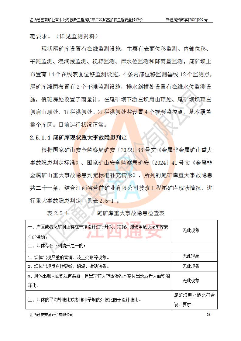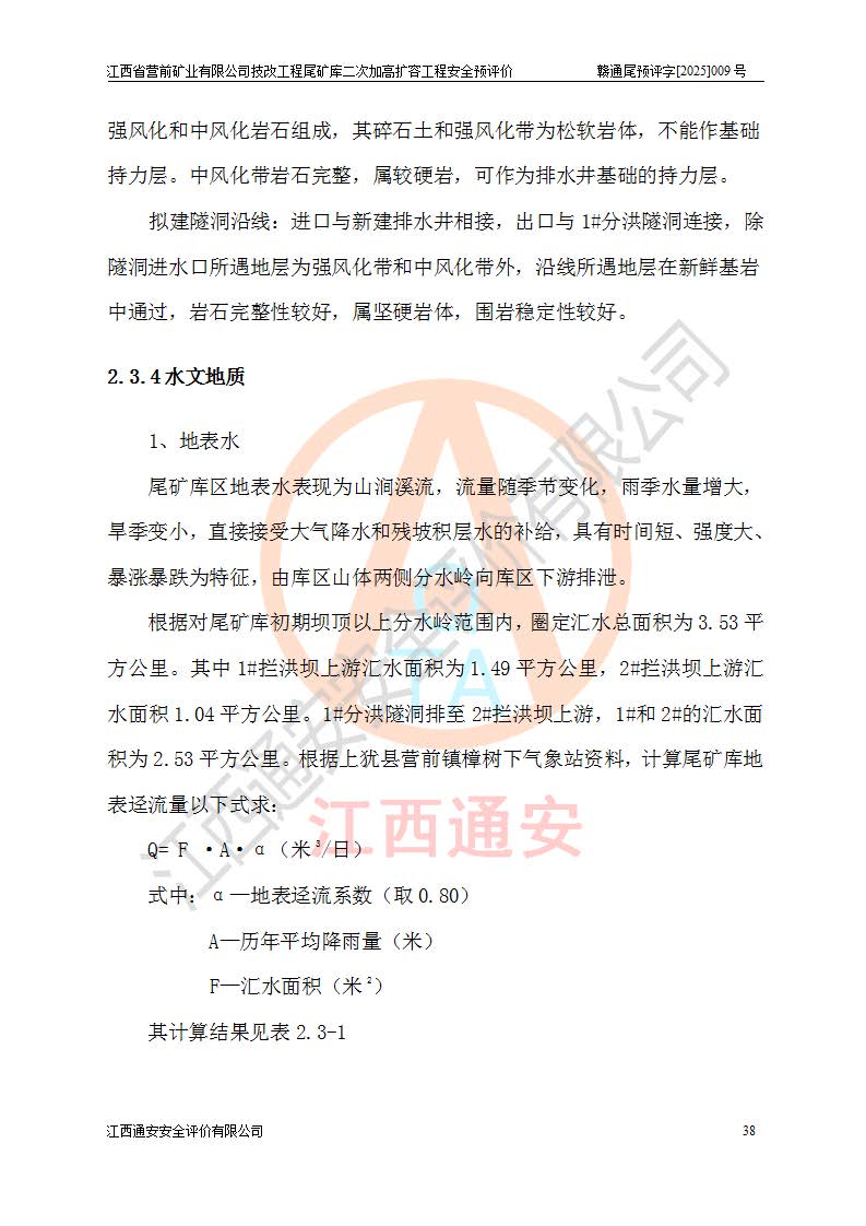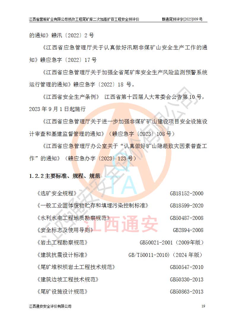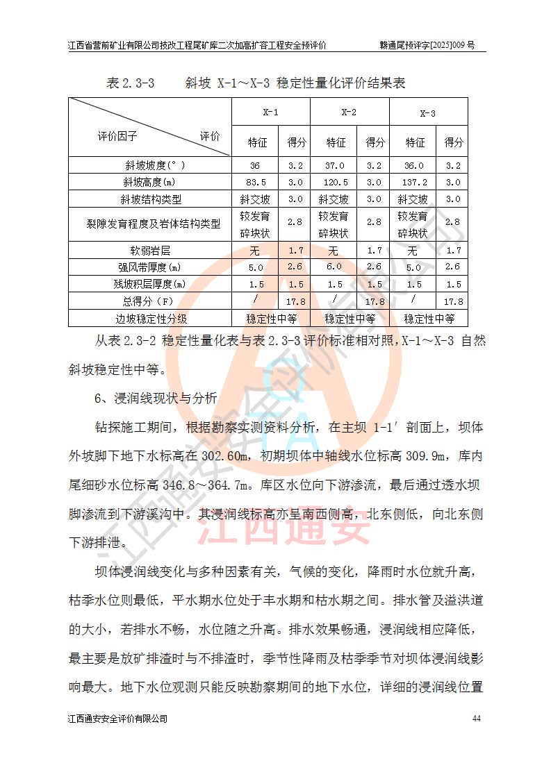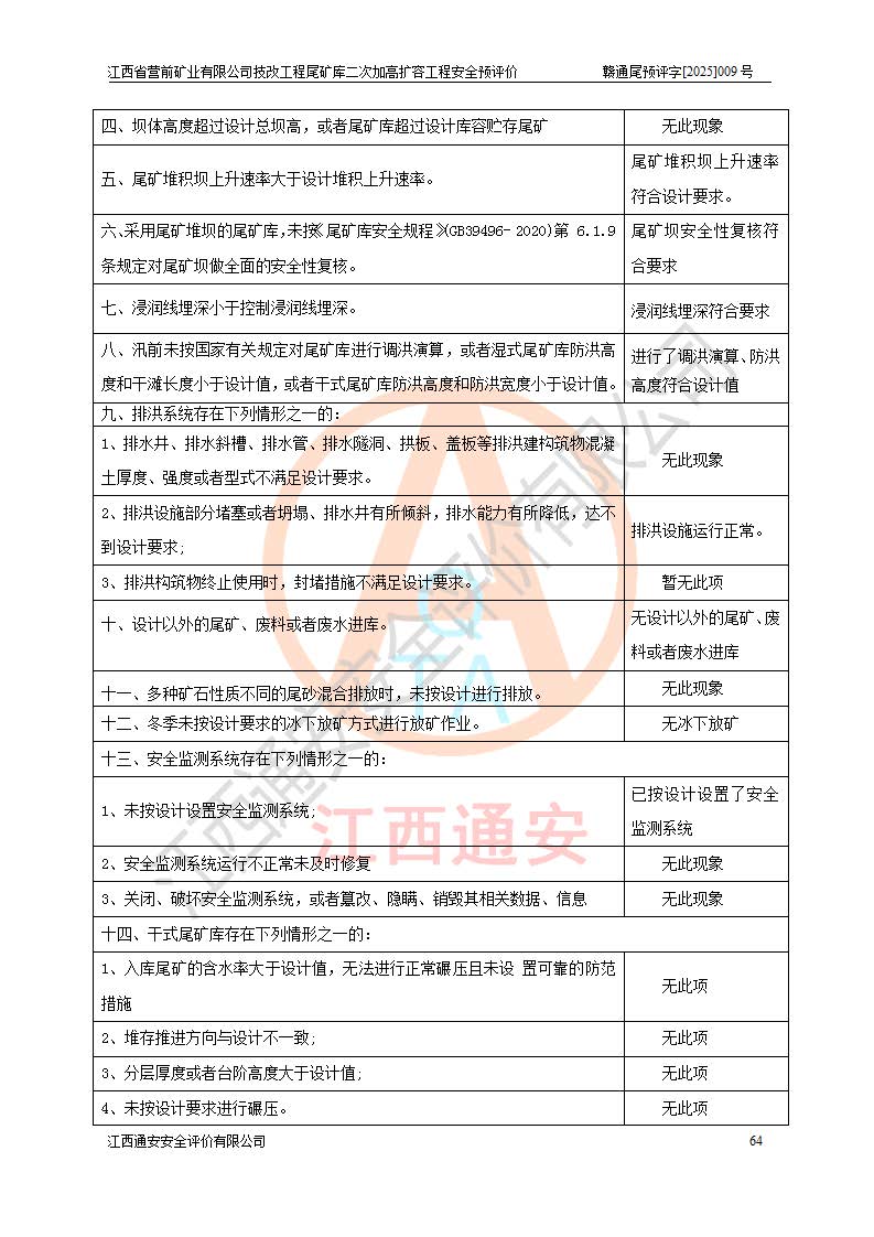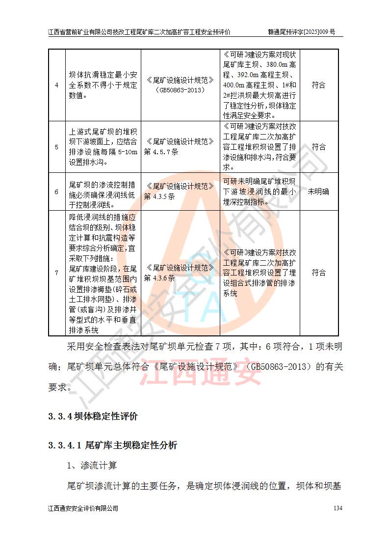 江西省營(yíng)前礦業(yè)有限公司于2003年12月16日成立,位于贛州市上猶縣營(yíng)前鎮(zhèn)焦里村境內(nèi),公司注冊(cè)資本10000萬(wàn)元,法定**人陳雅博,礦區(qū)地理坐標(biāo):東經(jīng)114°18′30″~114°19′00″,北緯25°52′35″~25°53′47″。公司經(jīng)營(yíng)范圍包括:鉛礦、鋅、鎢、銀地下開采、銷售。 江西省營(yíng)前礦業(yè)有限公司技改工程尾礦庫(kù)位于焦里鎢銀鉛鋅礦區(qū),處于上猶縣水巖鄉(xiāng)井子村坑尾自然村境內(nèi),為山谷型尾礦庫(kù)。 江西省營(yíng)前礦業(yè)有限公司技改工程尾礦庫(kù)于2013年由福建省冶金工業(yè)設(shè)計(jì)院設(shè)計(jì),2014年8月開始施工建設(shè),2015年4月竣工開始試運(yùn)行,2015年11月完成竣工驗(yàn)收,2016年1月首次取得安全生產(chǎn)許可證,2019年1月完成延期換證,2020年8月委托金建工程設(shè)計(jì)有限公司進(jìn)行尾礦庫(kù)加高擴(kuò)容工作,2020年10月21日取得了江西省應(yīng)急管理廳下發(fā)的《關(guān)于江西省營(yíng)前礦業(yè)有限公司技改工程尾礦庫(kù)加高擴(kuò)容工程安全設(shè)施設(shè)計(jì)的審查意見》(贛應(yīng)急非煤項(xiàng)目設(shè)審〔2020〕46號(hào)),之后委托駐馬店市黃淮建設(shè)工程有限公司負(fù)責(zé)施工,云南潤(rùn)滇工程技術(shù)有限公司負(fù)責(zé)監(jiān)理,2021年12月完成加高擴(kuò)容竣工驗(yàn)收工作,經(jīng)過(guò)延期,現(xiàn)尾礦庫(kù)安全生產(chǎn)許可證編號(hào)(贛)FM安許證字[2016]M1692號(hào),**期為2025年01月18日至2028年01月17日。 江西省營(yíng)前礦業(yè)有限公司技改工程尾礦庫(kù)為山谷型尾礦庫(kù),初期壩為透水堆石壩,壩頂高程為330.0m,初期壩高25.0m,后期采用上游式尾礦堆積壩,加高擴(kuò)容后*終壩頂高程為380.0m,堆積壩高50.0m,總壩高為75.0m,總庫(kù)容為為503.14×104m3,尾礦庫(kù)為三等庫(kù)。尾礦庫(kù)初期壩以上總匯水面積3.53km2,防洪標(biāo)準(zhǔn)取500年一遇。 目前尾礦庫(kù)由初期壩、堆積壩、庫(kù)內(nèi)排洪系統(tǒng)(雙格排水斜槽+連接井+排水涵洞+排洪隧洞+排水陡槽+消力池)、1#攔洪壩、1#分洪隧洞、2#攔洪壩、2#分洪隧洞和安全監(jiān)測(cè)設(shè)施組成。根據(jù)建設(shè)單位提供的尾礦庫(kù)平面布置圖,截至2024年12月,現(xiàn)狀尾礦庫(kù)堆積壩頂高程為372.2m,現(xiàn)狀總壩高67.2m,灘頂高程為369.8m,現(xiàn)狀全庫(kù)容387.51×104m3,現(xiàn)狀尾礦庫(kù)為三等庫(kù),原加高擴(kuò)容設(shè)計(jì)*終堆積壩頂高程為380.0m,現(xiàn)剩余庫(kù)容115.63×104m3,剩余**庫(kù)容約92.5×104m3,剩余服務(wù)年限約4.5年;礦山現(xiàn)有儲(chǔ)量較大,剩余庫(kù)容及服務(wù)年限不滿足礦山后期生產(chǎn)需要。 技改工程尾礦庫(kù)尾礦壩下游1**范圍無(wú)居民,不存在工礦企業(yè)等建構(gòu)筑物,不屬于“頭頂庫(kù)”;尾礦庫(kù)不壓礦;距贛江直線距離60**;不涉及保護(hù)區(qū)及生態(tài)紅線;尾礦庫(kù)所在溝谷較長(zhǎng),谷底平均縱坡9%,上游周邊山體地形有利于尾礦庫(kù)二次加高擴(kuò)容工程的實(shí)施,因此為了增加尾礦庫(kù)庫(kù)容,延長(zhǎng)服務(wù)年限,充分利用尾礦庫(kù)所在溝谷地形,江西省營(yíng)前礦業(yè)有限公司對(duì)技改尾礦庫(kù)進(jìn)行二次加高擴(kuò)容。 2024年12月,江西省營(yíng)前礦業(yè)有限公司委托地礦贛西地質(zhì)工程勘察院編制了《江西省營(yíng)前礦業(yè)有限公司技改工程尾礦庫(kù)二次擴(kuò)容工程(水文)地質(zhì)勘察報(bào)告》,2025年4月,江西省營(yíng)前礦業(yè)有限公司委托金建工程設(shè)計(jì)有限公司編制了《江西省營(yíng)前礦業(yè)有限公司技改工程尾礦庫(kù)二次加高擴(kuò)容工程可行性研究報(bào)告》。 按照非煤礦山建設(shè)項(xiàng)目安全設(shè)施“三同時(shí)”的規(guī)定要求,技改工程尾礦庫(kù)為二次加高擴(kuò)容工程,**進(jìn)行安全預(yù)評(píng)價(jià);江西省營(yíng)前礦業(yè)有限公司委托我公司承擔(dān)技改工程尾礦庫(kù)二次加高擴(kuò)容工程建設(shè)項(xiàng)目的安全預(yù)評(píng)價(jià)工作。 |