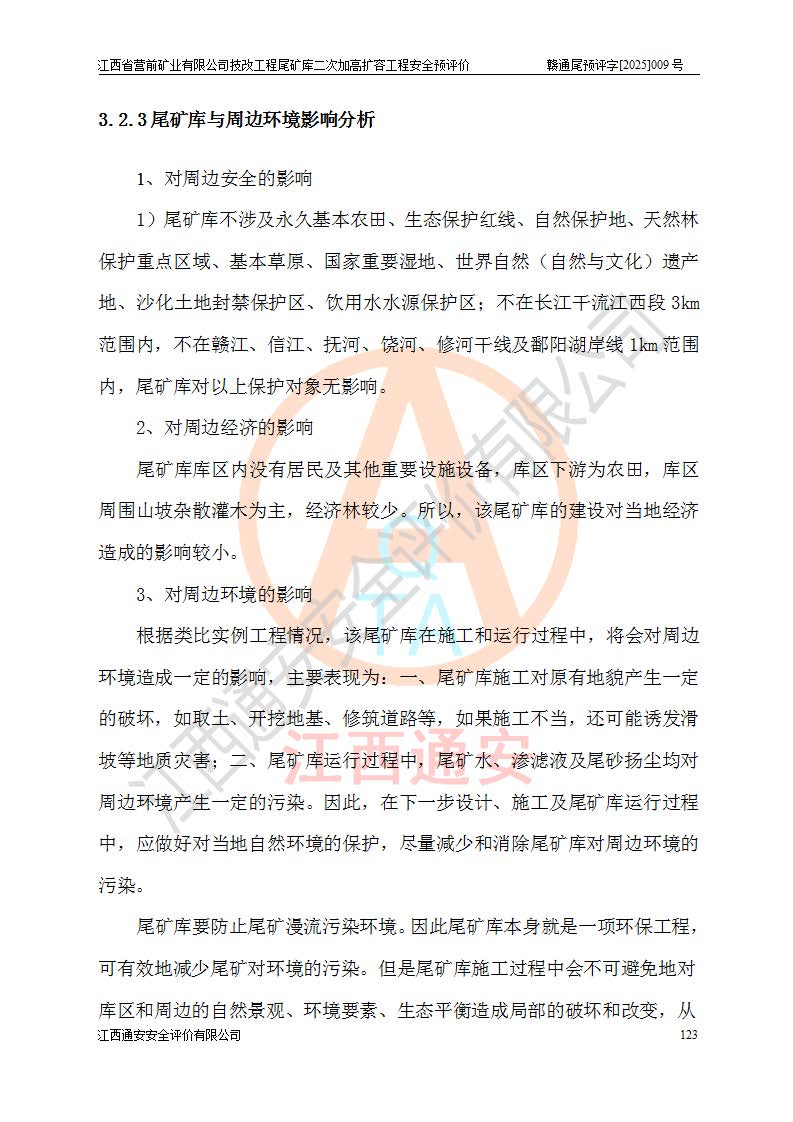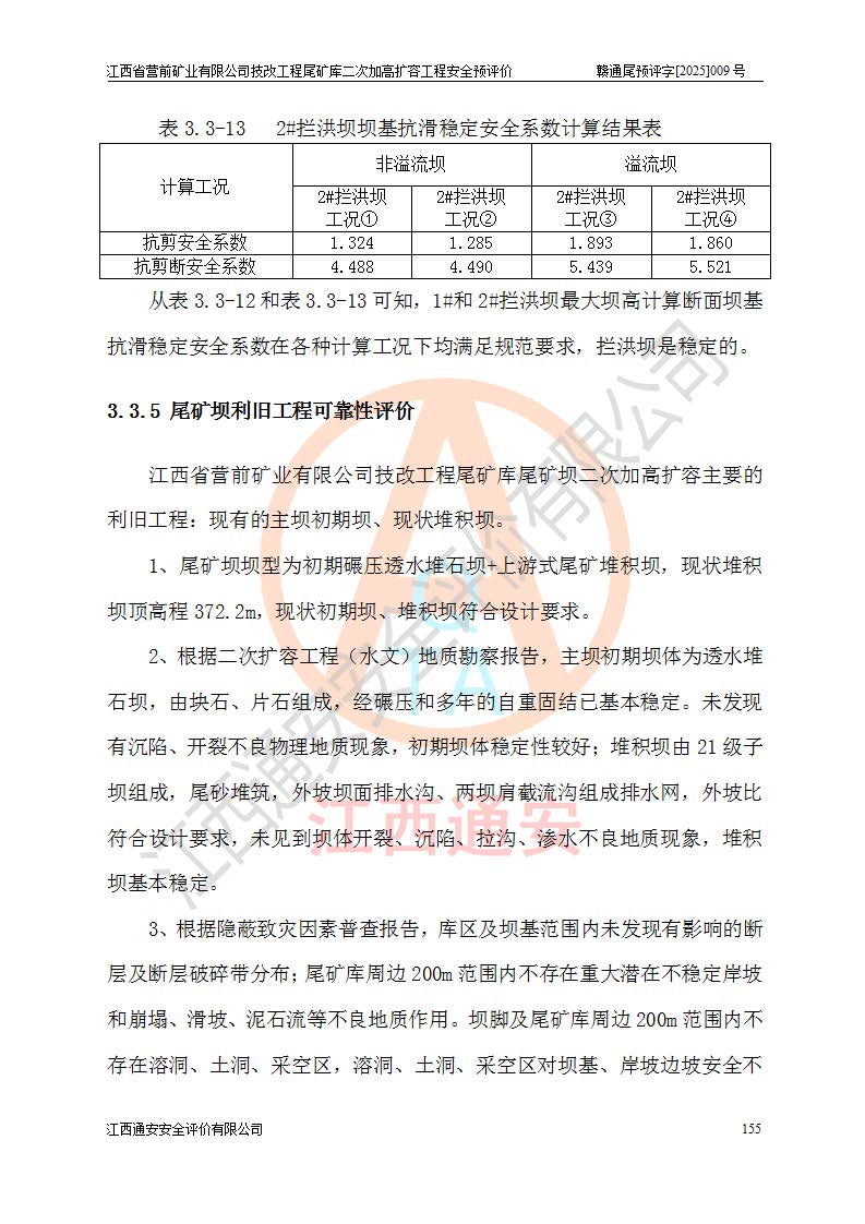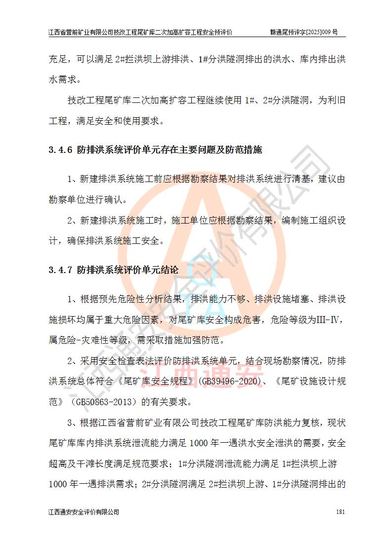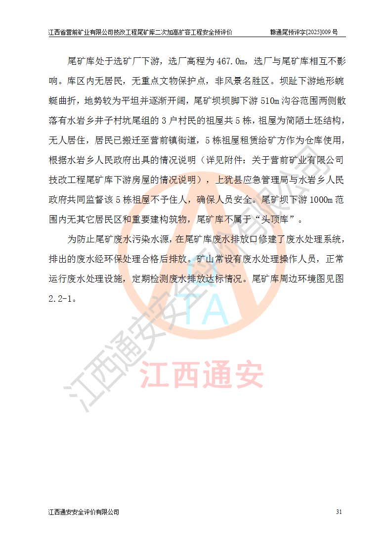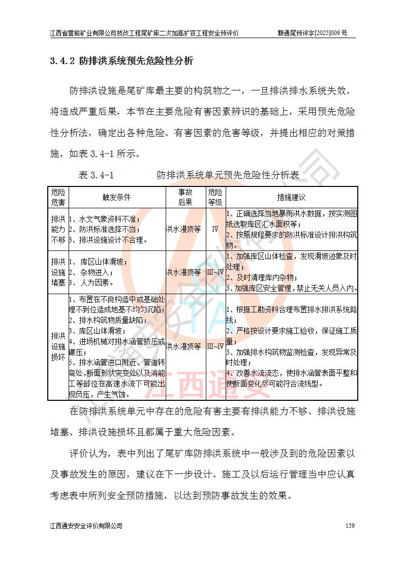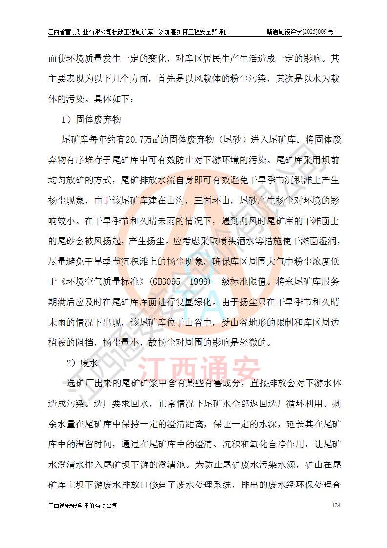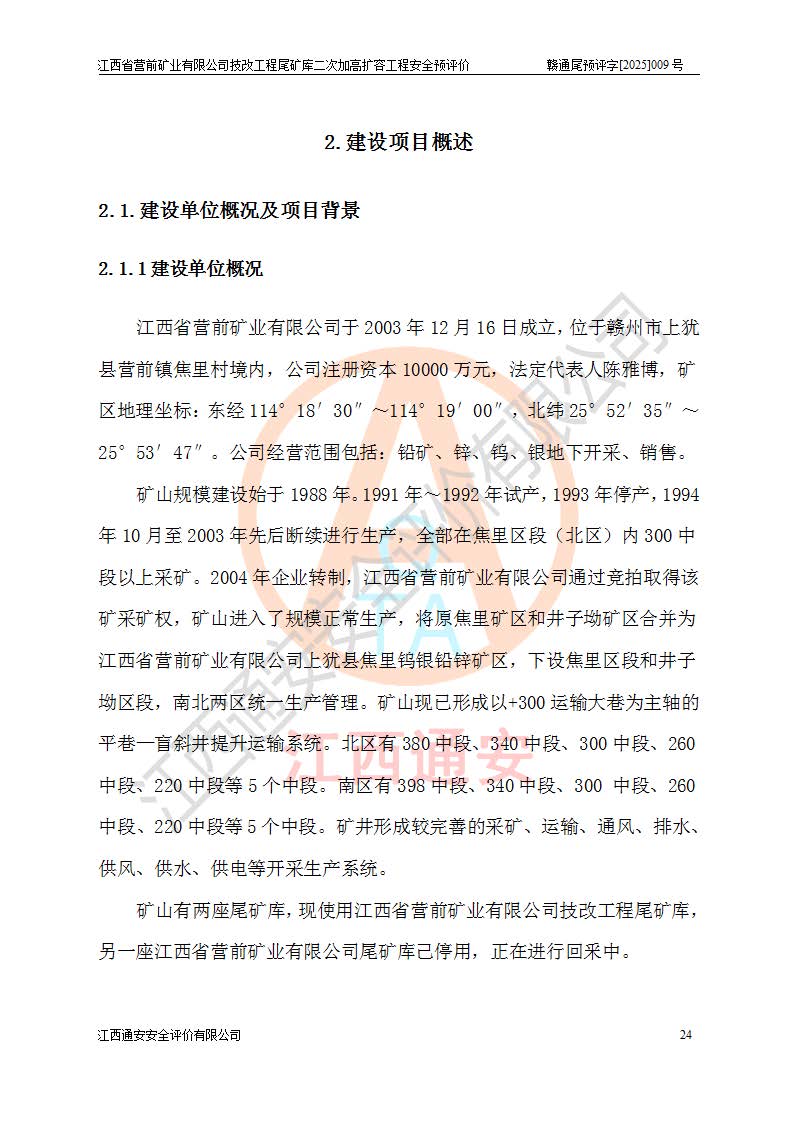 江西省營(yíng)前礦業(yè)有限公司于2003年12月16日成立,位于贛州市上猶縣營(yíng)前鎮(zhèn)焦里村境內(nèi),公司注冊(cè)資本10000萬(wàn)元,法定**人陳雅博,礦區(qū)地理坐標(biāo):東經(jīng)114°18′30″~114°19′00″,北緯25°52′35″~25°53′47″。公司經(jīng)營(yíng)范圍包括:鉛礦、鋅、鎢、銀地下開采、銷售。 江西省營(yíng)前礦業(yè)有限公司技改工程尾礦庫(kù)位于焦里鎢銀鉛鋅礦區(qū),處于上猶縣水巖鄉(xiāng)井子村坑尾自然村境內(nèi),為山谷型尾礦庫(kù)。 江西省營(yíng)前礦業(yè)有限公司技改工程尾礦庫(kù)于2013年由福建省冶金工業(yè)設(shè)計(jì)院設(shè)計(jì),2014年8月開始施工建設(shè),2015年4月竣工開始試運(yùn)行,2015年11月完成竣工驗(yàn)收,2016年1月首次取得安全生產(chǎn)許可證,2019年1月完成延期換證,2020年8月委托金建工程設(shè)計(jì)有限公司進(jìn)行尾礦庫(kù)加高擴(kuò)容工作,2020年10月21日取得了江西省應(yīng)急管理廳下發(fā)的《關(guān)于江西省營(yíng)前礦業(yè)有限公司技改工程尾礦庫(kù)加高擴(kuò)容工程安全設(shè)施設(shè)計(jì)的審查意見》(贛應(yīng)急非煤項(xiàng)目設(shè)審〔2020〕46號(hào)),之后委托駐馬店市黃淮建設(shè)工程有限公司負(fù)責(zé)施工,云南潤(rùn)滇工程技術(shù)有限公司負(fù)責(zé)監(jiān)理,2021年12月完成加高擴(kuò)容竣工驗(yàn)收工作,經(jīng)過(guò)延期,現(xiàn)尾礦庫(kù)安全生產(chǎn)許可證編號(hào)(贛)FM安許證字[2016]M1692號(hào),**期為2025年01月18日至2028年01月17日。 江西省營(yíng)前礦業(yè)有限公司技改工程尾礦庫(kù)為山谷型尾礦庫(kù),初期壩為透水堆石壩,壩頂高程為330.0m,初期壩高25.0m,后期采用上游式尾礦堆積壩,加高擴(kuò)容后*終壩頂高程為380.0m,堆積壩高50.0m,總壩高為75.0m,總庫(kù)容為為503.14×104m3,尾礦庫(kù)為三等庫(kù)。尾礦庫(kù)初期壩以上總匯水面積3.53km2,防洪標(biāo)準(zhǔn)取500年一遇。 目前尾礦庫(kù)由初期壩、堆積壩、庫(kù)內(nèi)排洪系統(tǒng)(雙格排水斜槽+連接井+排水涵洞+排洪隧洞+排水陡槽+消力池)、1#攔洪壩、1#分洪隧洞、2#攔洪壩、2#分洪隧洞和安全監(jiān)測(cè)設(shè)施組成。根據(jù)建設(shè)單位提供的尾礦庫(kù)平面布置圖,截至2024年12月,現(xiàn)狀尾礦庫(kù)堆積壩頂高程為372.2m,現(xiàn)狀總壩高67.2m,灘頂高程為369.8m,現(xiàn)狀全庫(kù)容387.51×104m3,現(xiàn)狀尾礦庫(kù)為三等庫(kù),原加高擴(kuò)容設(shè)計(jì)*終堆積壩頂高程為380.0m,現(xiàn)剩余庫(kù)容115.63×104m3,剩余**庫(kù)容約92.5×104m3,剩余服務(wù)年限約4.5年;礦山現(xiàn)有儲(chǔ)量較大,剩余庫(kù)容及服務(wù)年限不滿足礦山后期生產(chǎn)需要。 技改工程尾礦庫(kù)尾礦壩下游1**范圍無(wú)居民,不存在工礦企業(yè)等建構(gòu)筑物,不屬于“頭頂庫(kù)”;尾礦庫(kù)不壓礦;距贛江直線距離60**;不涉及保護(hù)區(qū)及生態(tài)紅線;尾礦庫(kù)所在溝谷較長(zhǎng),谷底平均縱坡9%,上游周邊山體地形有利于尾礦庫(kù)二次加高擴(kuò)容工程的實(shí)施,因此為了增加尾礦庫(kù)庫(kù)容,延長(zhǎng)服務(wù)年限,充分利用尾礦庫(kù)所在溝谷地形,江西省營(yíng)前礦業(yè)有限公司對(duì)技改尾礦庫(kù)進(jìn)行二次加高擴(kuò)容。 2024年12月,江西省營(yíng)前礦業(yè)有限公司委托地礦贛西地質(zhì)工程勘察院編制了《江西省營(yíng)前礦業(yè)有限公司技改工程尾礦庫(kù)二次擴(kuò)容工程(水文)地質(zhì)勘察報(bào)告》,2025年4月,江西省營(yíng)前礦業(yè)有限公司委托金建工程設(shè)計(jì)有限公司編制了《江西省營(yíng)前礦業(yè)有限公司技改工程尾礦庫(kù)二次加高擴(kuò)容工程可行性研究報(bào)告》。 按照非煤礦山建設(shè)項(xiàng)目安全設(shè)施“三同時(shí)”的規(guī)定要求,技改工程尾礦庫(kù)為二次加高擴(kuò)容工程,**進(jìn)行安全預(yù)評(píng)價(jià);江西省營(yíng)前礦業(yè)有限公司委托我公司承擔(dān)技改工程尾礦庫(kù)二次加高擴(kuò)容工程建設(shè)項(xiàng)目的安全預(yù)評(píng)價(jià)工作。 |