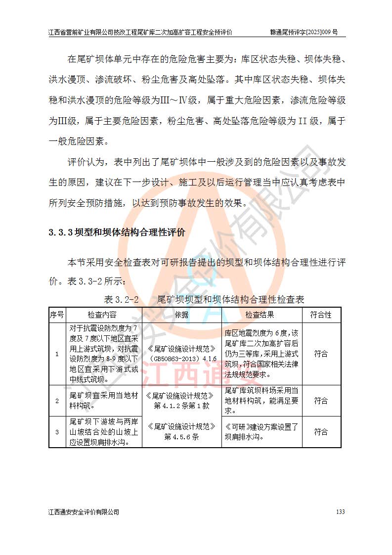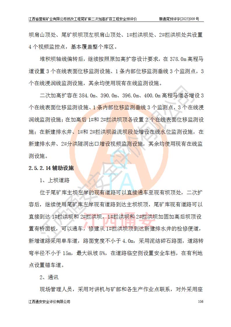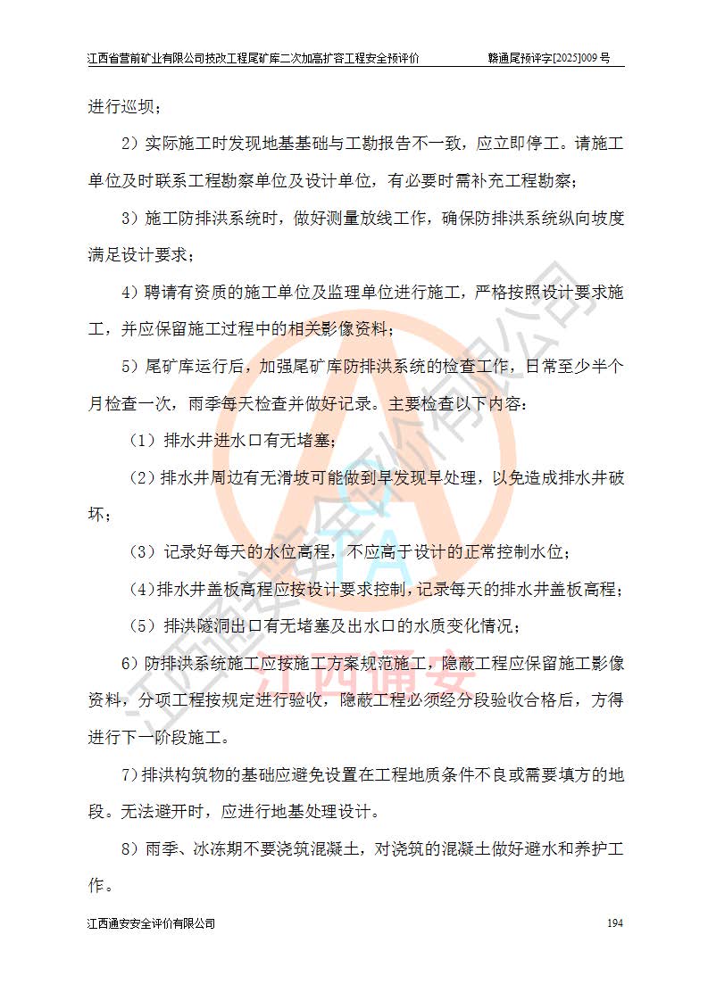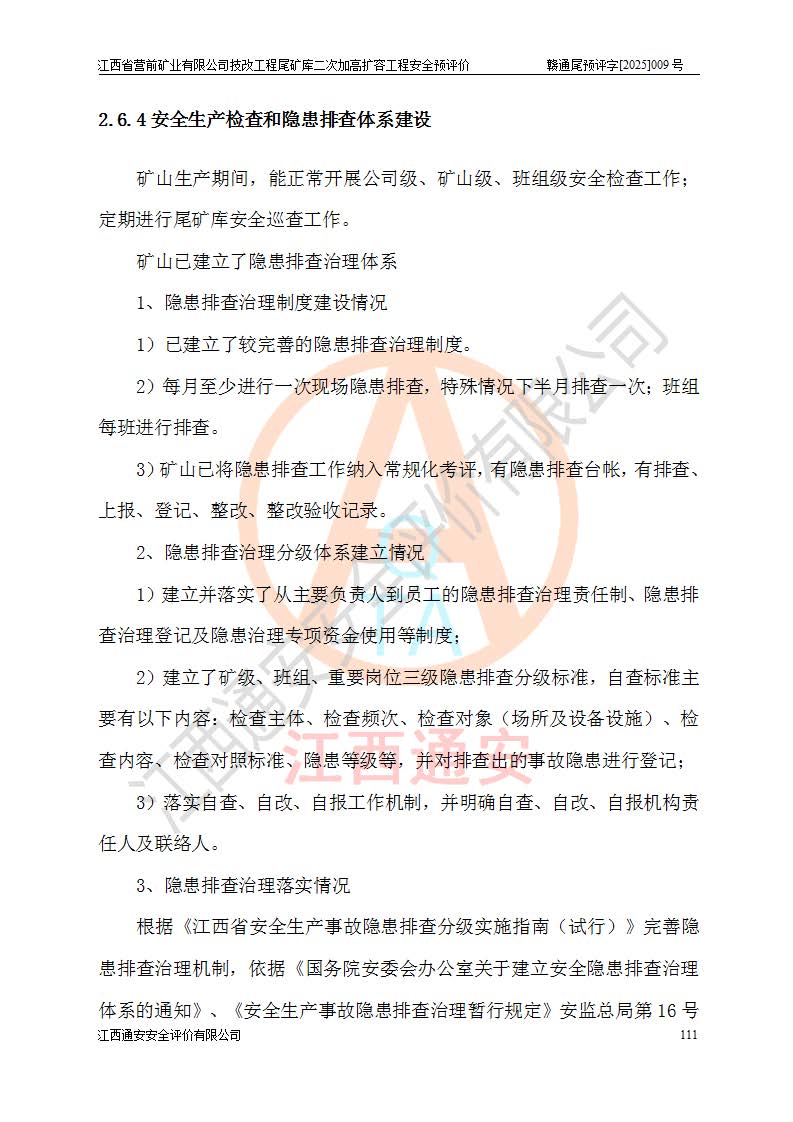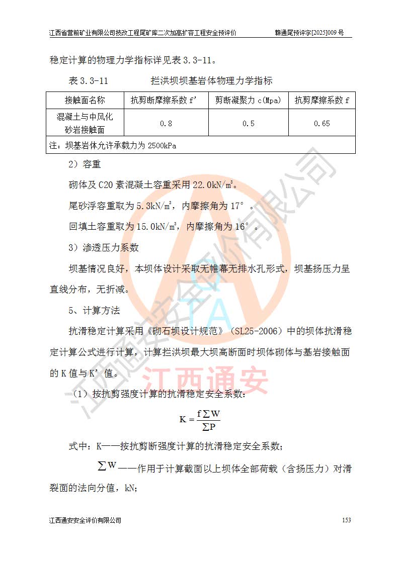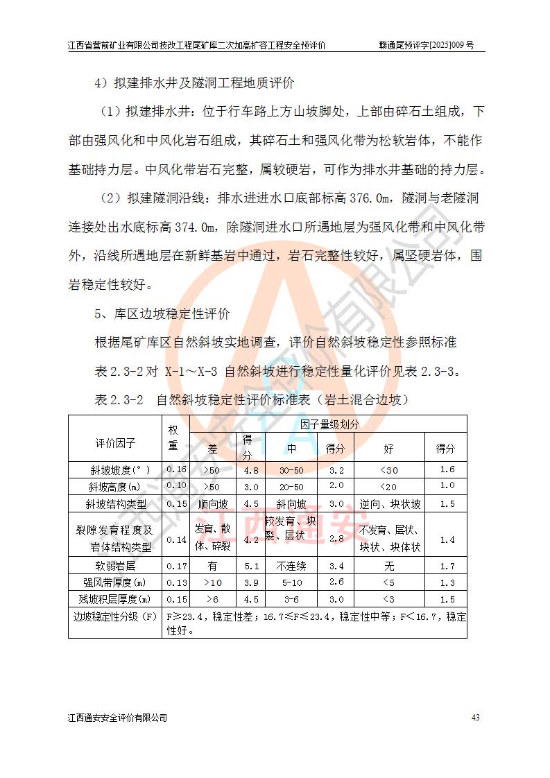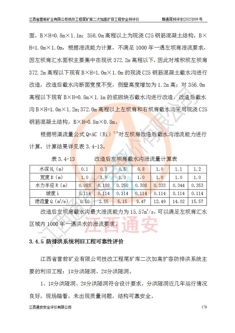 江西省營(yíng)前礦業(yè)有限公司于2003年12月16日成立,位于贛州市上猶縣營(yíng)前鎮(zhèn)焦里村境內(nèi),公司注冊(cè)資本10000萬(wàn)元,法定**人陳雅博,礦區(qū)地理坐標(biāo):東經(jīng)114°18′30″~114°19′00″,北緯25°52′35″~25°53′47″。公司經(jīng)營(yíng)范圍包括:鉛礦、鋅、鎢、銀地下開采、銷售。 江西省營(yíng)前礦業(yè)有限公司技改工程尾礦庫(kù)位于焦里鎢銀鉛鋅礦區(qū),處于上猶縣水巖鄉(xiāng)井子村坑尾自然村境內(nèi),為山谷型尾礦庫(kù)。 江西省營(yíng)前礦業(yè)有限公司技改工程尾礦庫(kù)于2013年由福建省冶金工業(yè)設(shè)計(jì)院設(shè)計(jì),2014年8月開始施工建設(shè),2015年4月竣工開始試運(yùn)行,2015年11月完成竣工驗(yàn)收,2016年1月首次取得安全生產(chǎn)許可證,2019年1月完成延期換證,2020年8月委托金建工程設(shè)計(jì)有限公司進(jìn)行尾礦庫(kù)加高擴(kuò)容工作,2020年10月21日取得了江西省應(yīng)急管理廳下發(fā)的《關(guān)于江西省營(yíng)前礦業(yè)有限公司技改工程尾礦庫(kù)加高擴(kuò)容工程安全設(shè)施設(shè)計(jì)的審查意見》(贛應(yīng)急非煤項(xiàng)目設(shè)審〔2020〕46號(hào)),之后委托駐馬店市黃淮建設(shè)工程有限公司負(fù)責(zé)施工,云南潤(rùn)滇工程技術(shù)有限公司負(fù)責(zé)監(jiān)理,2021年12月完成加高擴(kuò)容竣工驗(yàn)收工作,經(jīng)過(guò)延期,現(xiàn)尾礦庫(kù)安全生產(chǎn)許可證編號(hào)(贛)FM安許證字[2016]M1692號(hào),**期為2025年01月18日至2028年01月17日。 江西省營(yíng)前礦業(yè)有限公司技改工程尾礦庫(kù)為山谷型尾礦庫(kù),初期壩為透水堆石壩,壩頂高程為330.0m,初期壩高25.0m,后期采用上游式尾礦堆積壩,加高擴(kuò)容后*終壩頂高程為380.0m,堆積壩高50.0m,總壩高為75.0m,總庫(kù)容為為503.14×104m3,尾礦庫(kù)為三等庫(kù)。尾礦庫(kù)初期壩以上總匯水面積3.53km2,防洪標(biāo)準(zhǔn)取500年一遇。 目前尾礦庫(kù)由初期壩、堆積壩、庫(kù)內(nèi)排洪系統(tǒng)(雙格排水斜槽+連接井+排水涵洞+排洪隧洞+排水陡槽+消力池)、1#攔洪壩、1#分洪隧洞、2#攔洪壩、2#分洪隧洞和安全監(jiān)測(cè)設(shè)施組成。根據(jù)建設(shè)單位提供的尾礦庫(kù)平面布置圖,截至2024年12月,現(xiàn)狀尾礦庫(kù)堆積壩頂高程為372.2m,現(xiàn)狀總壩高67.2m,灘頂高程為369.8m,現(xiàn)狀全庫(kù)容387.51×104m3,現(xiàn)狀尾礦庫(kù)為三等庫(kù),原加高擴(kuò)容設(shè)計(jì)*終堆積壩頂高程為380.0m,現(xiàn)剩余庫(kù)容115.63×104m3,剩余**庫(kù)容約92.5×104m3,剩余服務(wù)年限約4.5年;礦山現(xiàn)有儲(chǔ)量較大,剩余庫(kù)容及服務(wù)年限不滿足礦山后期生產(chǎn)需要。 技改工程尾礦庫(kù)尾礦壩下游1**范圍無(wú)居民,不存在工礦企業(yè)等建構(gòu)筑物,不屬于“頭頂庫(kù)”;尾礦庫(kù)不壓礦;距贛江直線距離60**;不涉及保護(hù)區(qū)及生態(tài)紅線;尾礦庫(kù)所在溝谷較長(zhǎng),谷底平均縱坡9%,上游周邊山體地形有利于尾礦庫(kù)二次加高擴(kuò)容工程的實(shí)施,因此為了增加尾礦庫(kù)庫(kù)容,延長(zhǎng)服務(wù)年限,充分利用尾礦庫(kù)所在溝谷地形,江西省營(yíng)前礦業(yè)有限公司對(duì)技改尾礦庫(kù)進(jìn)行二次加高擴(kuò)容。 2024年12月,江西省營(yíng)前礦業(yè)有限公司委托地礦贛西地質(zhì)工程勘察院編制了《江西省營(yíng)前礦業(yè)有限公司技改工程尾礦庫(kù)二次擴(kuò)容工程(水文)地質(zhì)勘察報(bào)告》,2025年4月,江西省營(yíng)前礦業(yè)有限公司委托金建工程設(shè)計(jì)有限公司編制了《江西省營(yíng)前礦業(yè)有限公司技改工程尾礦庫(kù)二次加高擴(kuò)容工程可行性研究報(bào)告》。 按照非煤礦山建設(shè)項(xiàng)目安全設(shè)施“三同時(shí)”的規(guī)定要求,技改工程尾礦庫(kù)為二次加高擴(kuò)容工程,**進(jìn)行安全預(yù)評(píng)價(jià);江西省營(yíng)前礦業(yè)有限公司委托我公司承擔(dān)技改工程尾礦庫(kù)二次加高擴(kuò)容工程建設(shè)項(xiàng)目的安全預(yù)評(píng)價(jià)工作。 |