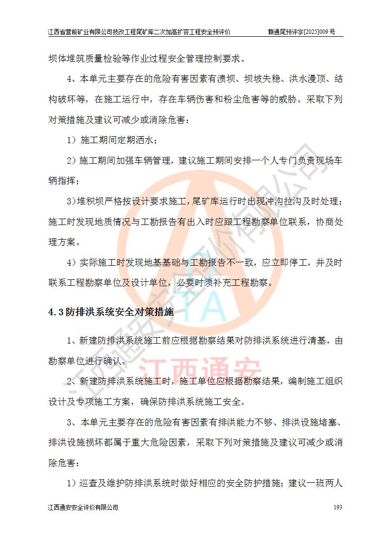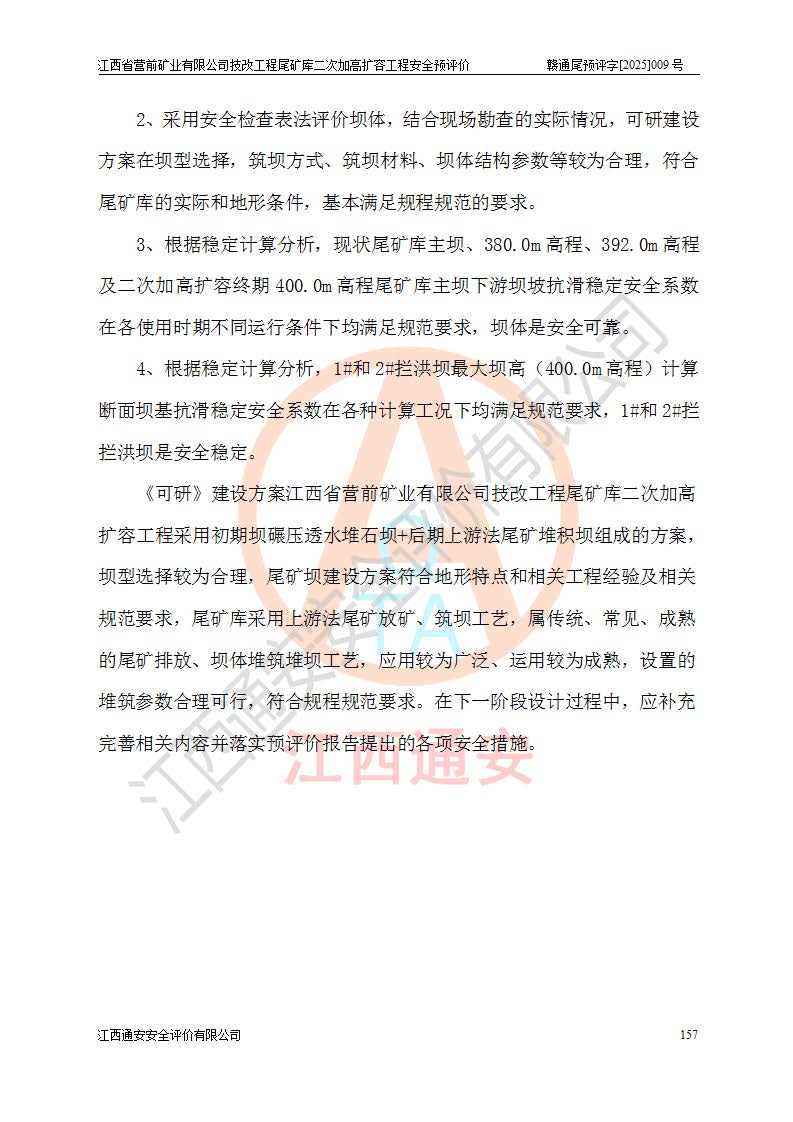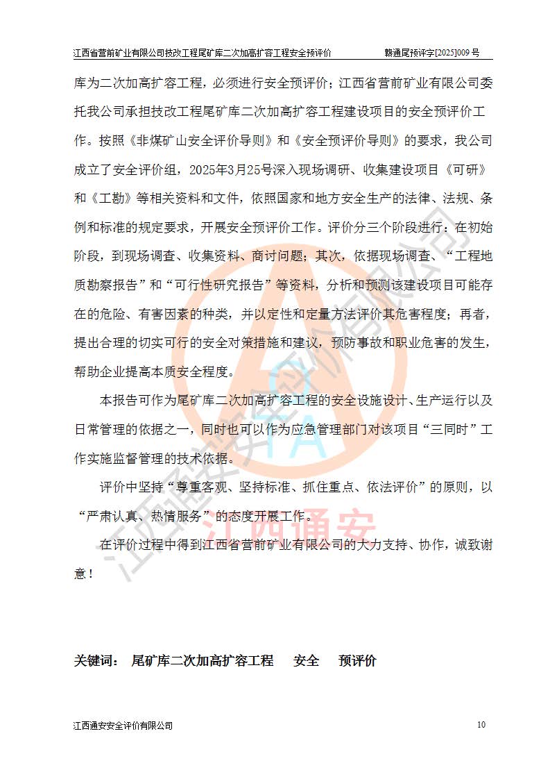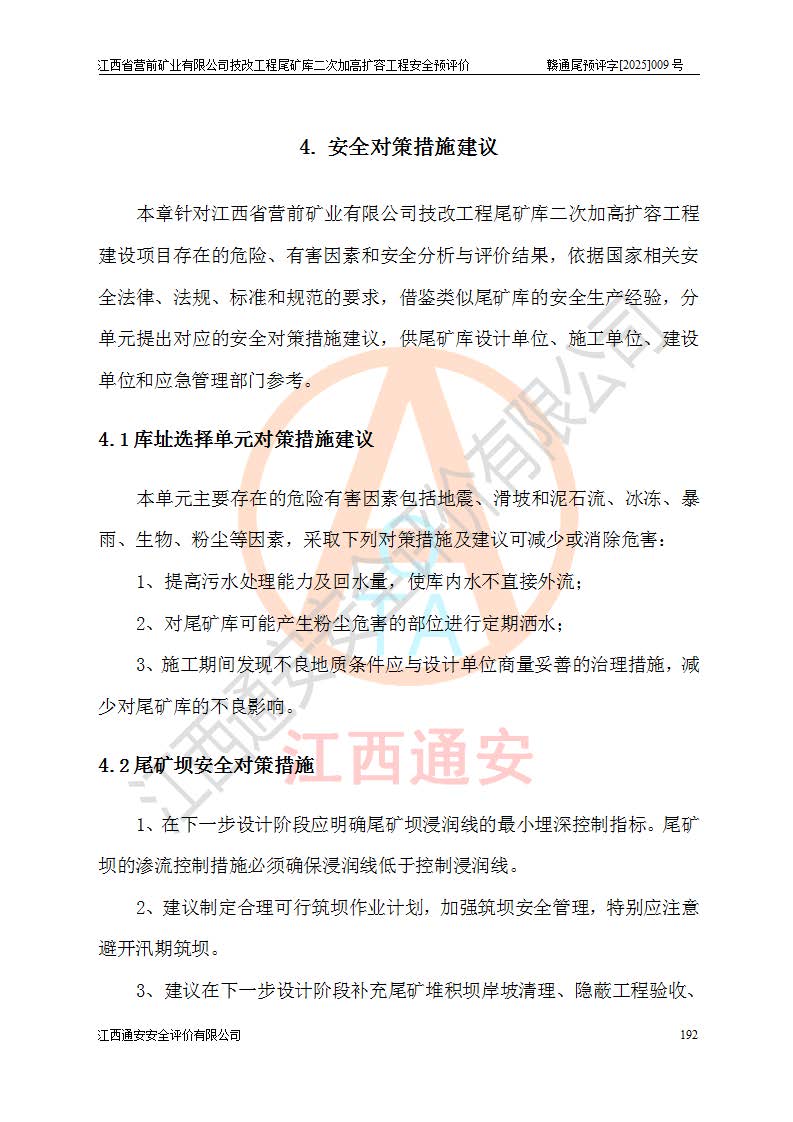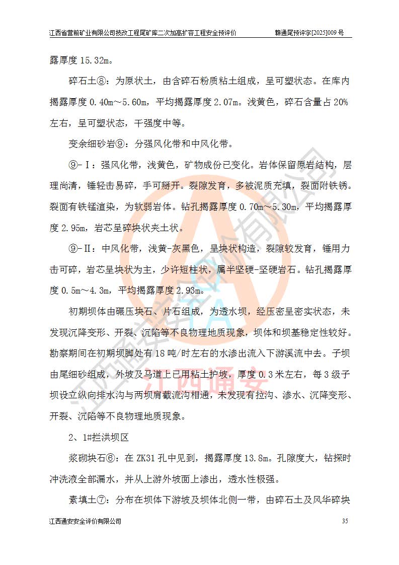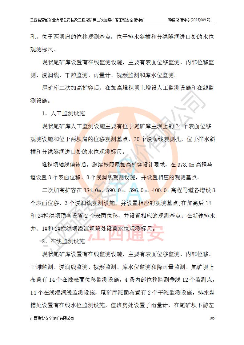 江西省營(yíng)前礦業(yè)有限公司于2003年12月16日成立,位于贛州市上猶縣營(yíng)前鎮(zhèn)焦里村境內(nèi),公司注冊(cè)資本10000萬(wàn)元,法定**人陳雅博,礦區(qū)地理坐標(biāo):東經(jīng)114°18′30″~114°19′00″,北緯25°52′35″~25°53′47″。公司經(jīng)營(yíng)范圍包括:鉛礦、鋅、鎢、銀地下開采、銷售。 江西省營(yíng)前礦業(yè)有限公司技改工程尾礦庫(kù)位于焦里鎢銀鉛鋅礦區(qū),處于上猶縣水巖鄉(xiāng)井子村坑尾自然村境內(nèi),為山谷型尾礦庫(kù)。 江西省營(yíng)前礦業(yè)有限公司技改工程尾礦庫(kù)于2013年由福建省冶金工業(yè)設(shè)計(jì)院設(shè)計(jì),2014年8月開始施工建設(shè),2015年4月竣工開始試運(yùn)行,2015年11月完成竣工驗(yàn)收,2016年1月首次取得安全生產(chǎn)許可證,2019年1月完成延期換證,2020年8月委托金建工程設(shè)計(jì)有限公司進(jìn)行尾礦庫(kù)加高擴(kuò)容工作,2020年10月21日取得了江西省應(yīng)急管理廳下發(fā)的《關(guān)于江西省營(yíng)前礦業(yè)有限公司技改工程尾礦庫(kù)加高擴(kuò)容工程安全設(shè)施設(shè)計(jì)的審查意見》(贛應(yīng)急非煤項(xiàng)目設(shè)審〔2020〕46號(hào)),之后委托駐馬店市黃淮建設(shè)工程有限公司負(fù)責(zé)施工,云南潤(rùn)滇工程技術(shù)有限公司負(fù)責(zé)監(jiān)理,2021年12月完成加高擴(kuò)容竣工驗(yàn)收工作,經(jīng)過(guò)延期,現(xiàn)尾礦庫(kù)安全生產(chǎn)許可證編號(hào)(贛)FM安許證字[2016]M1692號(hào),**期為2025年01月18日至2028年01月17日。 江西省營(yíng)前礦業(yè)有限公司技改工程尾礦庫(kù)為山谷型尾礦庫(kù),初期壩為透水堆石壩,壩頂高程為330.0m,初期壩高25.0m,后期采用上游式尾礦堆積壩,加高擴(kuò)容后*終壩頂高程為380.0m,堆積壩高50.0m,總壩高為75.0m,總庫(kù)容為為503.14×104m3,尾礦庫(kù)為三等庫(kù)。尾礦庫(kù)初期壩以上總匯水面積3.53km2,防洪標(biāo)準(zhǔn)取500年一遇。 目前尾礦庫(kù)由初期壩、堆積壩、庫(kù)內(nèi)排洪系統(tǒng)(雙格排水斜槽+連接井+排水涵洞+排洪隧洞+排水陡槽+消力池)、1#攔洪壩、1#分洪隧洞、2#攔洪壩、2#分洪隧洞和安全監(jiān)測(cè)設(shè)施組成。根據(jù)建設(shè)單位提供的尾礦庫(kù)平面布置圖,截至2024年12月,現(xiàn)狀尾礦庫(kù)堆積壩頂高程為372.2m,現(xiàn)狀總壩高67.2m,灘頂高程為369.8m,現(xiàn)狀全庫(kù)容387.51×104m3,現(xiàn)狀尾礦庫(kù)為三等庫(kù),原加高擴(kuò)容設(shè)計(jì)*終堆積壩頂高程為380.0m,現(xiàn)剩余庫(kù)容115.63×104m3,剩余**庫(kù)容約92.5×104m3,剩余服務(wù)年限約4.5年;礦山現(xiàn)有儲(chǔ)量較大,剩余庫(kù)容及服務(wù)年限不滿足礦山后期生產(chǎn)需要。 技改工程尾礦庫(kù)尾礦壩下游1**范圍無(wú)居民,不存在工礦企業(yè)等建構(gòu)筑物,不屬于“頭頂庫(kù)”;尾礦庫(kù)不壓礦;距贛江直線距離60**;不涉及保護(hù)區(qū)及生態(tài)紅線;尾礦庫(kù)所在溝谷較長(zhǎng),谷底平均縱坡9%,上游周邊山體地形有利于尾礦庫(kù)二次加高擴(kuò)容工程的實(shí)施,因此為了增加尾礦庫(kù)庫(kù)容,延長(zhǎng)服務(wù)年限,充分利用尾礦庫(kù)所在溝谷地形,江西省營(yíng)前礦業(yè)有限公司對(duì)技改尾礦庫(kù)進(jìn)行二次加高擴(kuò)容。 2024年12月,江西省營(yíng)前礦業(yè)有限公司委托地礦贛西地質(zhì)工程勘察院編制了《江西省營(yíng)前礦業(yè)有限公司技改工程尾礦庫(kù)二次擴(kuò)容工程(水文)地質(zhì)勘察報(bào)告》,2025年4月,江西省營(yíng)前礦業(yè)有限公司委托金建工程設(shè)計(jì)有限公司編制了《江西省營(yíng)前礦業(yè)有限公司技改工程尾礦庫(kù)二次加高擴(kuò)容工程可行性研究報(bào)告》。 按照非煤礦山建設(shè)項(xiàng)目安全設(shè)施“三同時(shí)”的規(guī)定要求,技改工程尾礦庫(kù)為二次加高擴(kuò)容工程,**進(jìn)行安全預(yù)評(píng)價(jià);江西省營(yíng)前礦業(yè)有限公司委托我公司承擔(dān)技改工程尾礦庫(kù)二次加高擴(kuò)容工程建設(shè)項(xiàng)目的安全預(yù)評(píng)價(jià)工作。 |