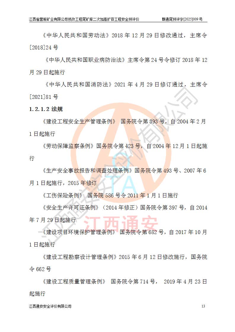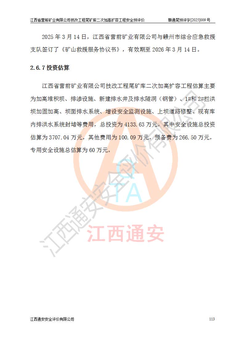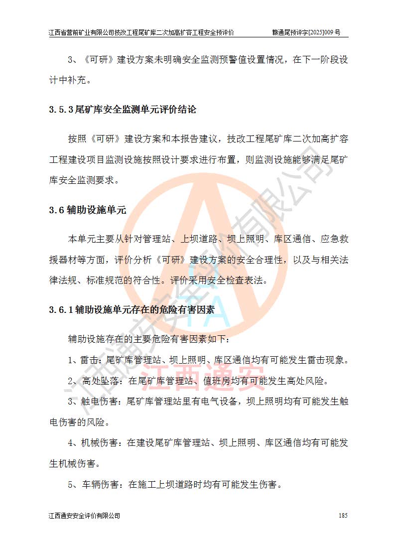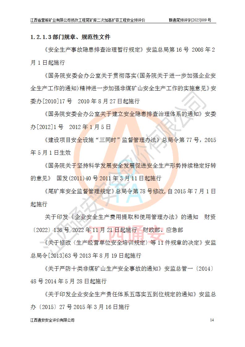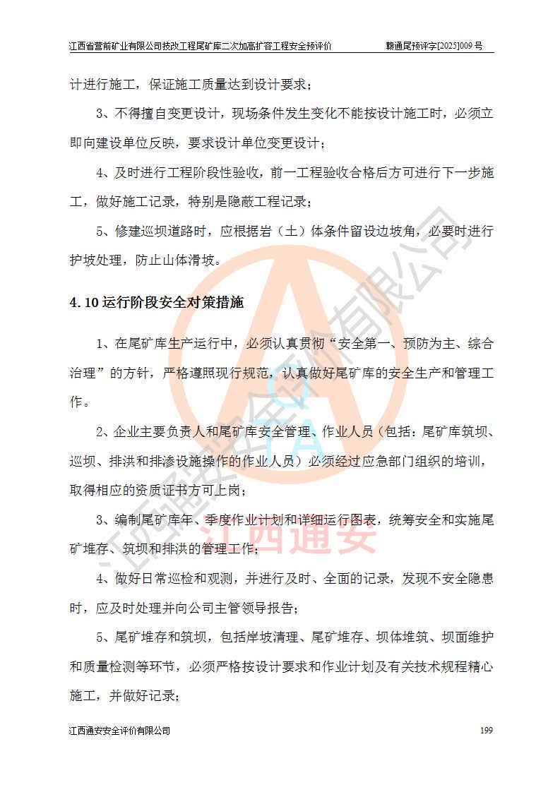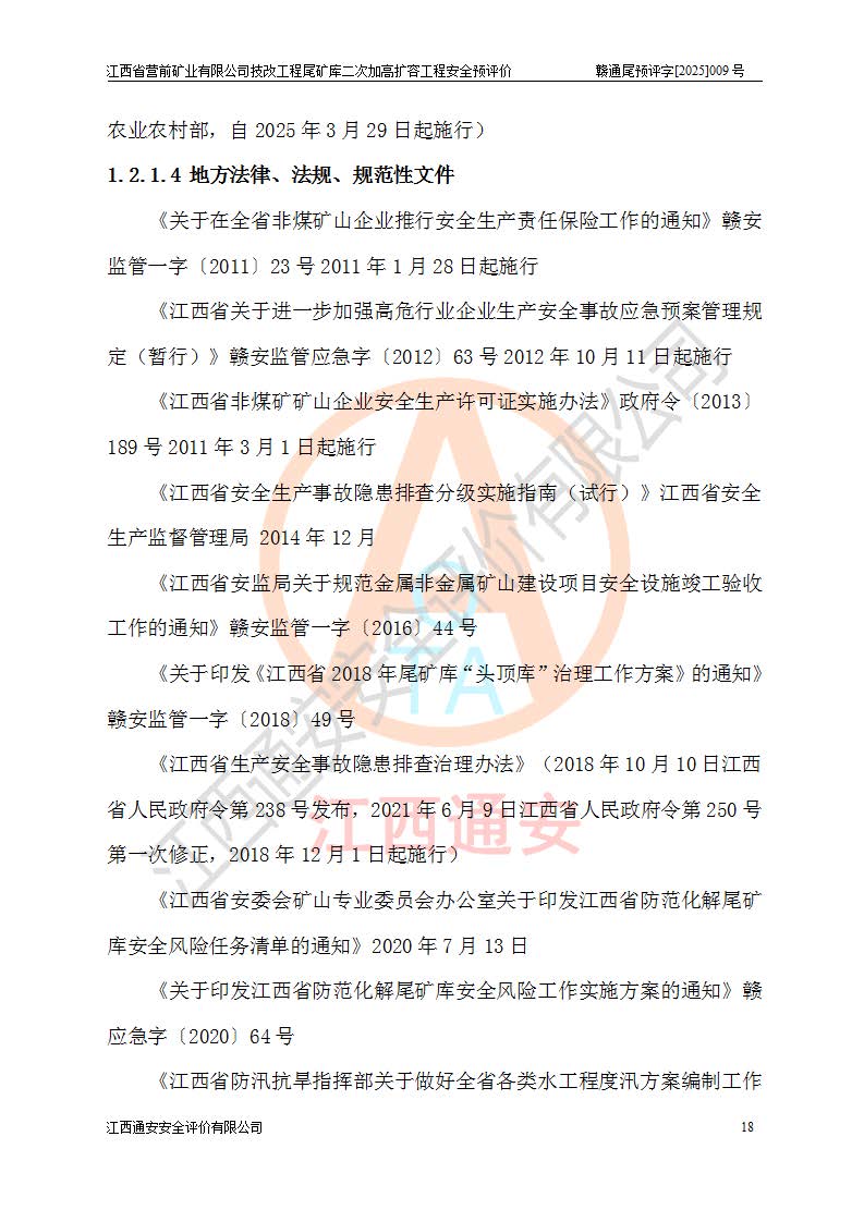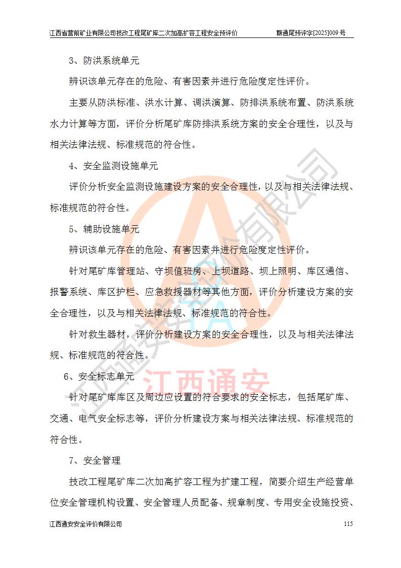 江西省營(yíng)前礦業(yè)有限公司于2003年12月16日成立,位于贛州市上猶縣營(yíng)前鎮(zhèn)焦里村境內(nèi),公司注冊(cè)資本10000萬(wàn)元,法定**人陳雅博,礦區(qū)地理坐標(biāo):東經(jīng)114°18′30″~114°19′00″,北緯25°52′35″~25°53′47″。公司經(jīng)營(yíng)范圍包括:鉛礦、鋅、鎢、銀地下開采、銷售。 江西省營(yíng)前礦業(yè)有限公司技改工程尾礦庫(kù)位于焦里鎢銀鉛鋅礦區(qū),處于上猶縣水巖鄉(xiāng)井子村坑尾自然村境內(nèi),為山谷型尾礦庫(kù)。 江西省營(yíng)前礦業(yè)有限公司技改工程尾礦庫(kù)于2013年由福建省冶金工業(yè)設(shè)計(jì)院設(shè)計(jì),2014年8月開始施工建設(shè),2015年4月竣工開始試運(yùn)行,2015年11月完成竣工驗(yàn)收,2016年1月首次取得安全生產(chǎn)許可證,2019年1月完成延期換證,2020年8月委托金建工程設(shè)計(jì)有限公司進(jìn)行尾礦庫(kù)加高擴(kuò)容工作,2020年10月21日取得了江西省應(yīng)急管理廳下發(fā)的《關(guān)于江西省營(yíng)前礦業(yè)有限公司技改工程尾礦庫(kù)加高擴(kuò)容工程安全設(shè)施設(shè)計(jì)的審查意見》(贛應(yīng)急非煤項(xiàng)目設(shè)審〔2020〕46號(hào)),之后委托駐馬店市黃淮建設(shè)工程有限公司負(fù)責(zé)施工,云南潤(rùn)滇工程技術(shù)有限公司負(fù)責(zé)監(jiān)理,2021年12月完成加高擴(kuò)容竣工驗(yàn)收工作,經(jīng)過(guò)延期,現(xiàn)尾礦庫(kù)安全生產(chǎn)許可證編號(hào)(贛)FM安許證字[2016]M1692號(hào),**期為2025年01月18日至2028年01月17日。 江西省營(yíng)前礦業(yè)有限公司技改工程尾礦庫(kù)為山谷型尾礦庫(kù),初期壩為透水堆石壩,壩頂高程為330.0m,初期壩高25.0m,后期采用上游式尾礦堆積壩,加高擴(kuò)容后*終壩頂高程為380.0m,堆積壩高50.0m,總壩高為75.0m,總庫(kù)容為為503.14×104m3,尾礦庫(kù)為三等庫(kù)。尾礦庫(kù)初期壩以上總匯水面積3.53km2,防洪標(biāo)準(zhǔn)取500年一遇。 目前尾礦庫(kù)由初期壩、堆積壩、庫(kù)內(nèi)排洪系統(tǒng)(雙格排水斜槽+連接井+排水涵洞+排洪隧洞+排水陡槽+消力池)、1#攔洪壩、1#分洪隧洞、2#攔洪壩、2#分洪隧洞和安全監(jiān)測(cè)設(shè)施組成。根據(jù)建設(shè)單位提供的尾礦庫(kù)平面布置圖,截至2024年12月,現(xiàn)狀尾礦庫(kù)堆積壩頂高程為372.2m,現(xiàn)狀總壩高67.2m,灘頂高程為369.8m,現(xiàn)狀全庫(kù)容387.51×104m3,現(xiàn)狀尾礦庫(kù)為三等庫(kù),原加高擴(kuò)容設(shè)計(jì)*終堆積壩頂高程為380.0m,現(xiàn)剩余庫(kù)容115.63×104m3,剩余**庫(kù)容約92.5×104m3,剩余服務(wù)年限約4.5年;礦山現(xiàn)有儲(chǔ)量較大,剩余庫(kù)容及服務(wù)年限不滿足礦山后期生產(chǎn)需要。 技改工程尾礦庫(kù)尾礦壩下游1**范圍無(wú)居民,不存在工礦企業(yè)等建構(gòu)筑物,不屬于“頭頂庫(kù)”;尾礦庫(kù)不壓礦;距贛江直線距離60**;不涉及保護(hù)區(qū)及生態(tài)紅線;尾礦庫(kù)所在溝谷較長(zhǎng),谷底平均縱坡9%,上游周邊山體地形有利于尾礦庫(kù)二次加高擴(kuò)容工程的實(shí)施,因此為了增加尾礦庫(kù)庫(kù)容,延長(zhǎng)服務(wù)年限,充分利用尾礦庫(kù)所在溝谷地形,江西省營(yíng)前礦業(yè)有限公司對(duì)技改尾礦庫(kù)進(jìn)行二次加高擴(kuò)容。 2024年12月,江西省營(yíng)前礦業(yè)有限公司委托地礦贛西地質(zhì)工程勘察院編制了《江西省營(yíng)前礦業(yè)有限公司技改工程尾礦庫(kù)二次擴(kuò)容工程(水文)地質(zhì)勘察報(bào)告》,2025年4月,江西省營(yíng)前礦業(yè)有限公司委托金建工程設(shè)計(jì)有限公司編制了《江西省營(yíng)前礦業(yè)有限公司技改工程尾礦庫(kù)二次加高擴(kuò)容工程可行性研究報(bào)告》。 按照非煤礦山建設(shè)項(xiàng)目安全設(shè)施“三同時(shí)”的規(guī)定要求,技改工程尾礦庫(kù)為二次加高擴(kuò)容工程,**進(jìn)行安全預(yù)評(píng)價(jià);江西省營(yíng)前礦業(yè)有限公司委托我公司承擔(dān)技改工程尾礦庫(kù)二次加高擴(kuò)容工程建設(shè)項(xiàng)目的安全預(yù)評(píng)價(jià)工作。 |