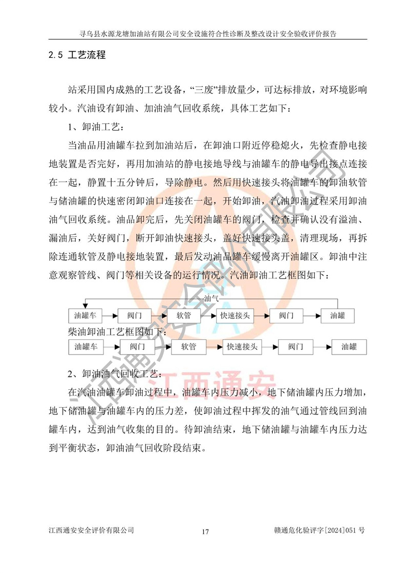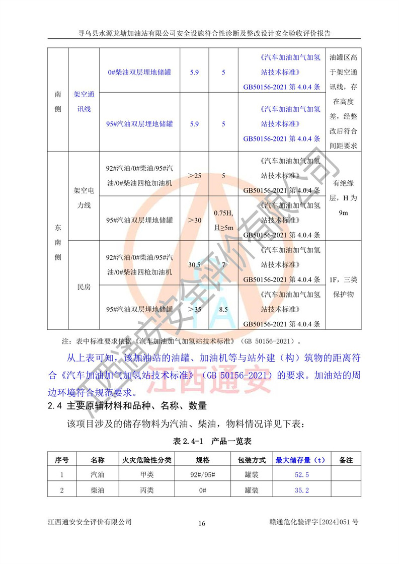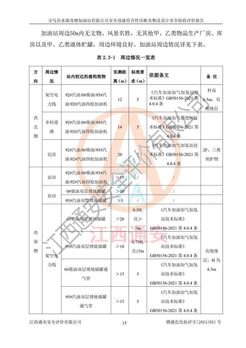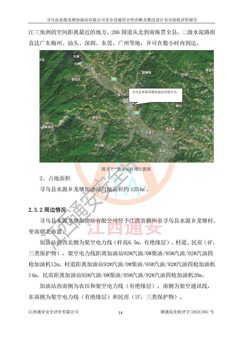 項目簡介 | 尋烏縣水源龍?zhí)良佑驼居邢薰臼且患覐氖?/span>汽油、柴油零售經(jīng)營的企業(yè)。該企業(yè)于2023年09月13日經(jīng)尋烏縣行政審批局核準注冊成立,營業(yè)場所位于江西省贛州市尋烏縣水源鄉(xiāng)龍?zhí)链?。屬于有限責任公?/span>(自然人投資或控股),法定**人陳文騰,營業(yè)執(zhí)照統(tǒng)一社會信用代碼為:91360734MACXJ3BU63。營業(yè)執(zhí)照核準經(jīng)營范圍:煙草制品零售(依法須經(jīng)批準的項目,經(jīng)相關(guān)部門批準后在許可**期內(nèi)方可開展經(jīng)營活動,具體經(jīng)營項目和許可期限以相關(guān)部門批準文件或許可證件為準) 一般項目:充電樁銷售,潤滑油銷售,化工產(chǎn)品銷售(不含許可類化工產(chǎn)品),機械設(shè)備銷售,日用百貨銷售,日用雜品銷售,洗車服務(wù),食品銷售(僅銷售預包裝食品),保健食品(預包裝)銷售,技術(shù)服務(wù)、技術(shù)開發(fā)、技術(shù)咨詢、技術(shù)交流、技術(shù)**、技術(shù)推廣(除依法須經(jīng)批準的項目外,憑營業(yè)執(zhí)照依法自主開展經(jīng)營活動)。 加油站現(xiàn)儲存規(guī)模:貯罐3臺:0#柴油儲罐1臺,儲罐容積為40m3、92#汽油儲罐1臺,儲罐容積為40m3、95#汽油儲罐1臺,儲罐為30m3,總?cè)萘繛?/span>110m3,折合汽油為90m3,屬二級加油站,汽油卸油、加油設(shè)置了油氣回收系統(tǒng)。該加油站原為尋烏縣水源鄉(xiāng)加油站,由于土地性質(zhì)問題及其他歷史遺留問題,尋烏縣**于2019年將尋烏縣水源鄉(xiāng)加油站收回并暫停經(jīng)營,根據(jù)尋府辦字[2021]61 號文件《關(guān)于印發(fā)尋烏縣民營加油站資產(chǎn)處置工作方案的通知》,尋烏縣水源龍?zhí)良佑驼居邢薰痉ㄈ?*陳文騰于2023年9月1日通過**公開拍賣的方式收購了尋烏縣水源鄉(xiāng)加油站。該站于2018年1月2日經(jīng)原贛州市安全生產(chǎn)監(jiān)督管理局核準,換發(fā)了《危險化學品經(jīng)營許可證》,證書編號:贛虔安經(jīng)(甲)字[2017]00516,許可經(jīng)營范圍:汽油、柴油,經(jīng)營方式:零售。**期2017年12月26日至2020年12月25日。。