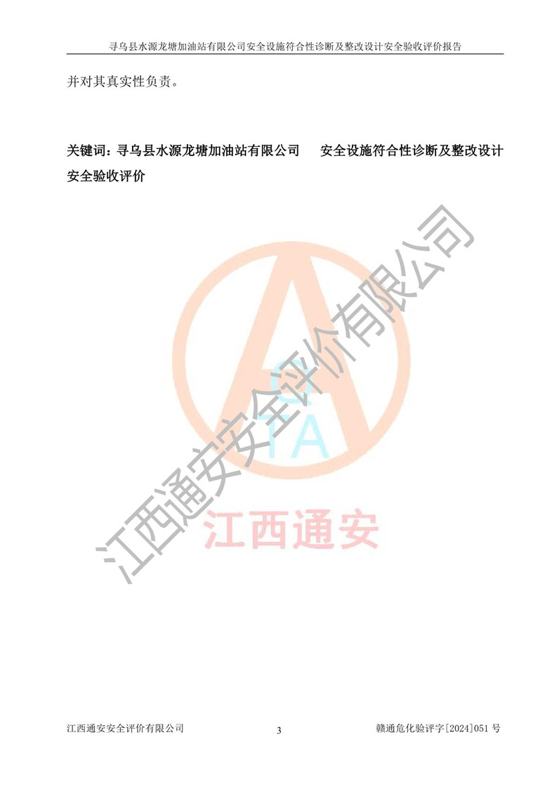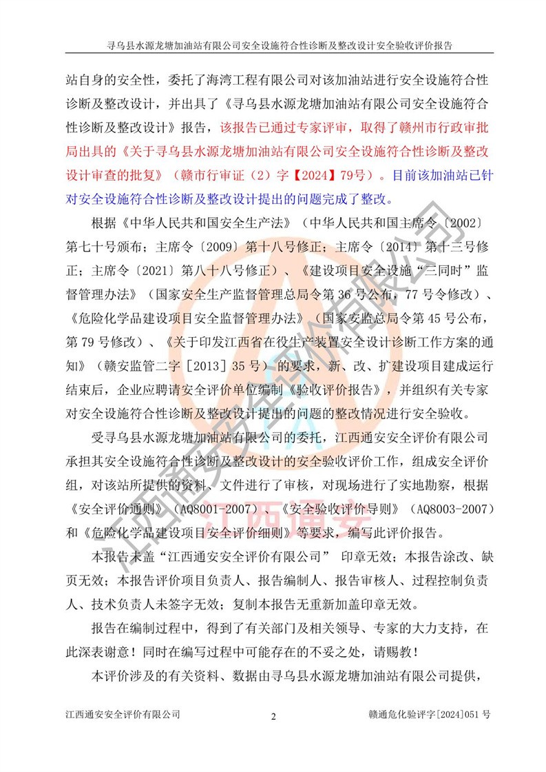 項目名稱 | 尋烏縣水源龍?zhí)良佑驼居邢薰驹谝垩b置安全設(shè)施診斷設(shè)計安全驗收評價報告 | ||||