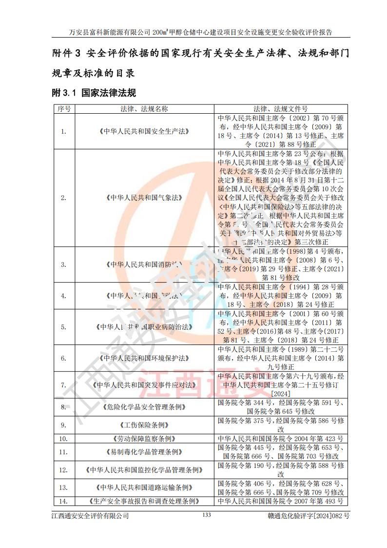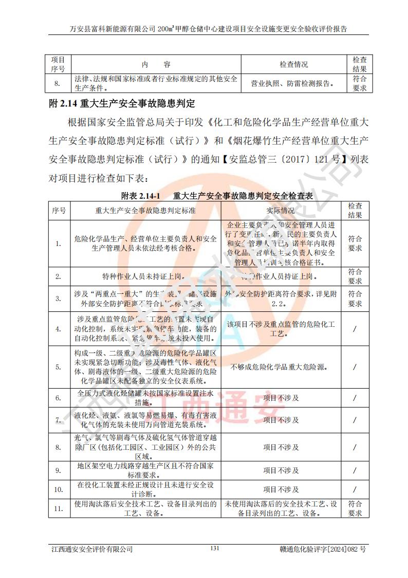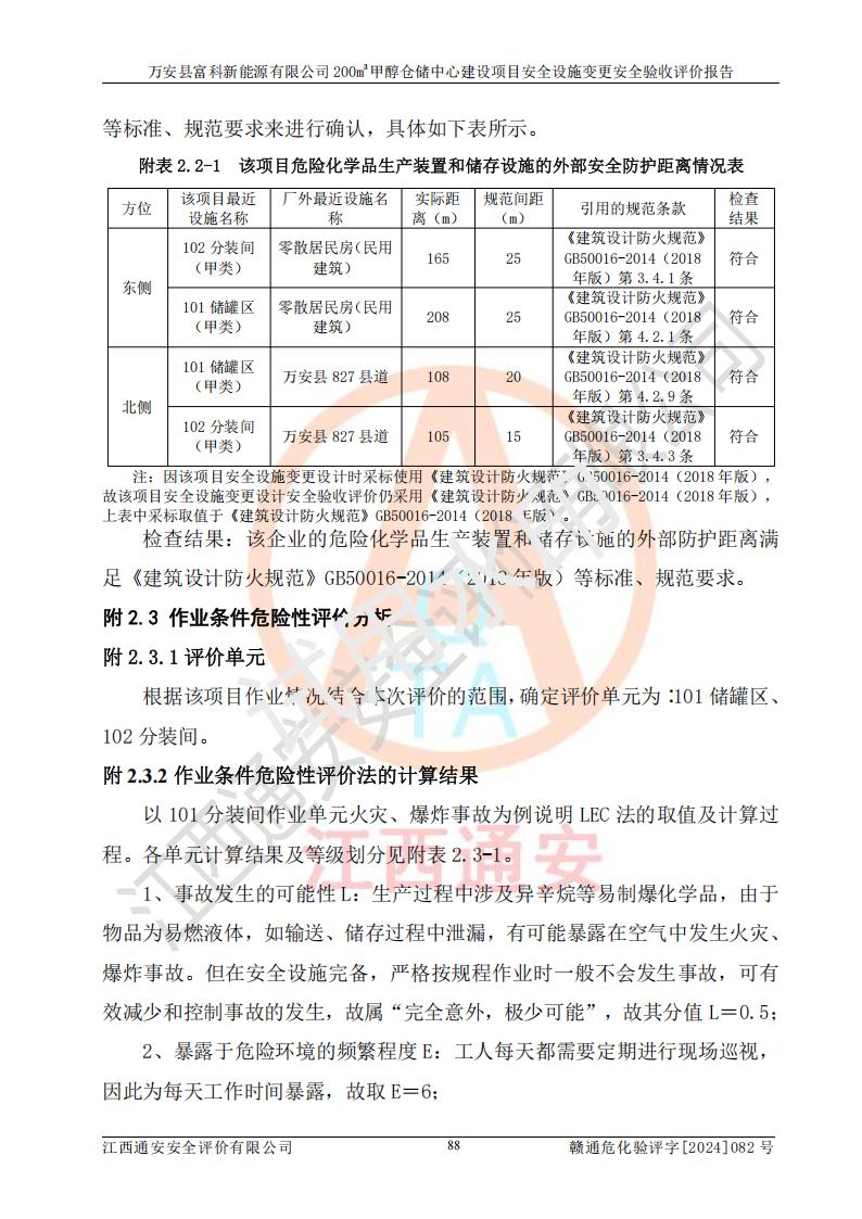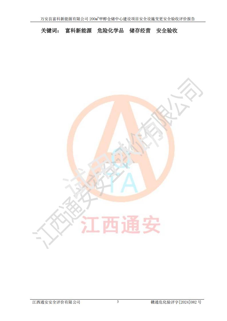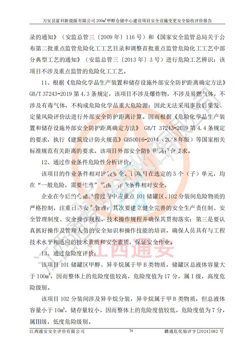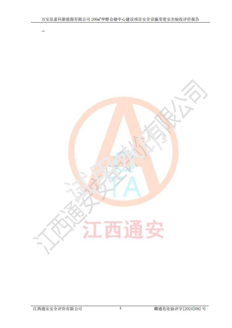評(píng)價(jià)報(bào)告名稱 | 萬(wàn)安縣富科新能源有限公司200m3甲醇倉(cāng)儲(chǔ)中心建設(shè)項(xiàng)目安全設(shè)施變更安全驗(yàn)收評(píng)價(jià)報(bào)告 | |||