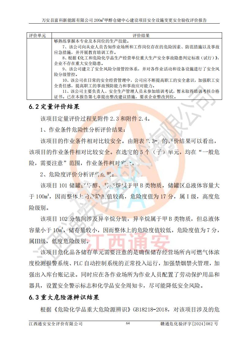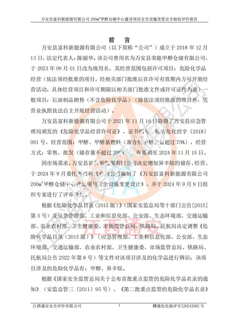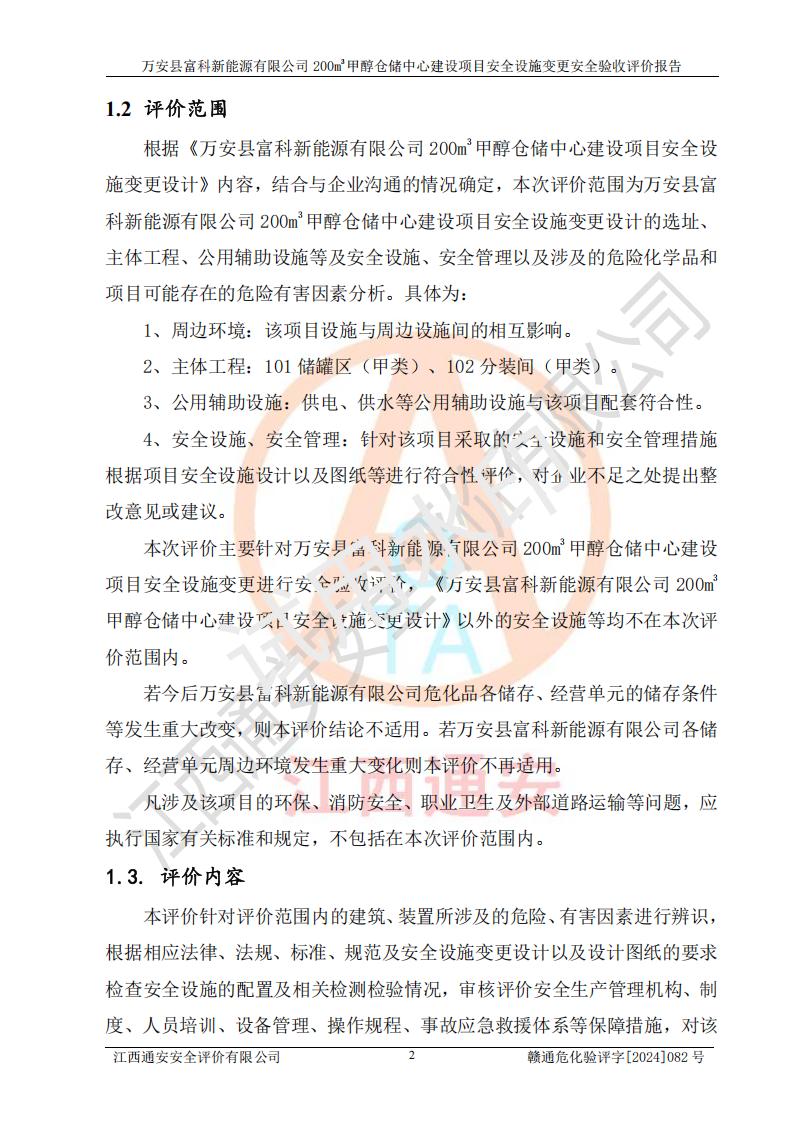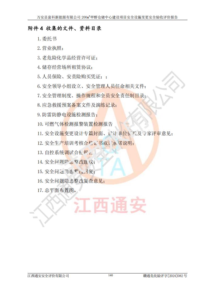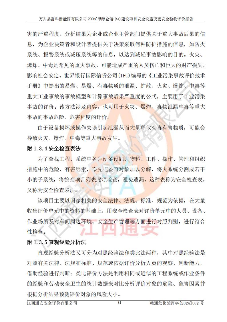 評(píng)價(jià)報(bào)告名稱 | 萬(wàn)安縣富科新能源有限公司200m3甲醇倉(cāng)儲(chǔ)中心建設(shè)項(xiàng)目安全設(shè)施變更安全驗(yàn)收評(píng)價(jià)報(bào)告 | |||