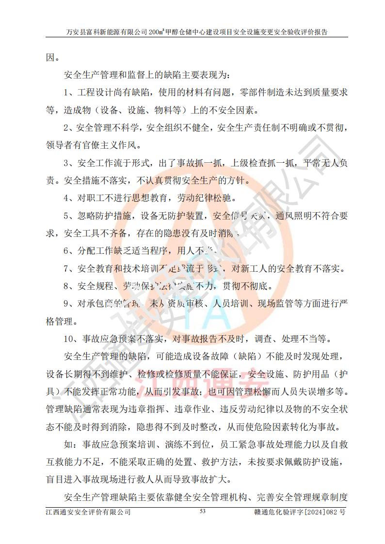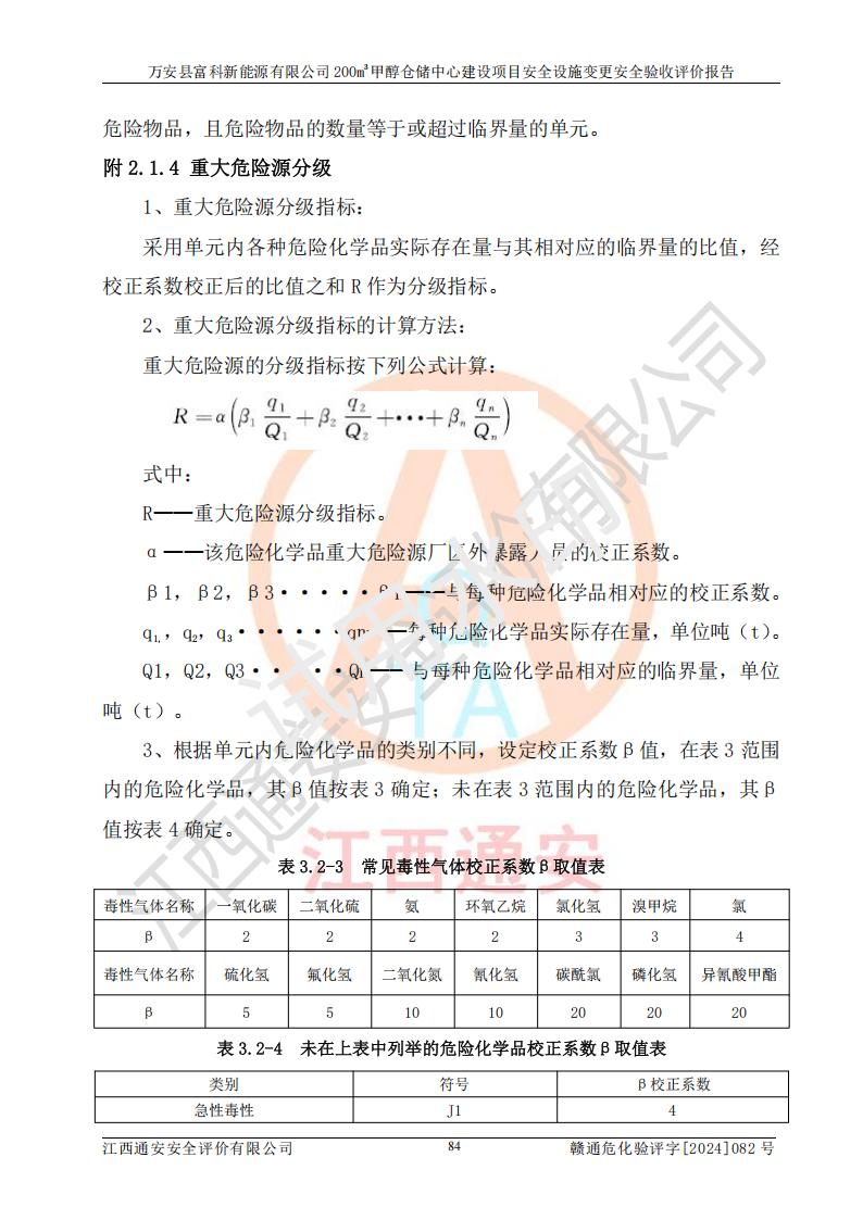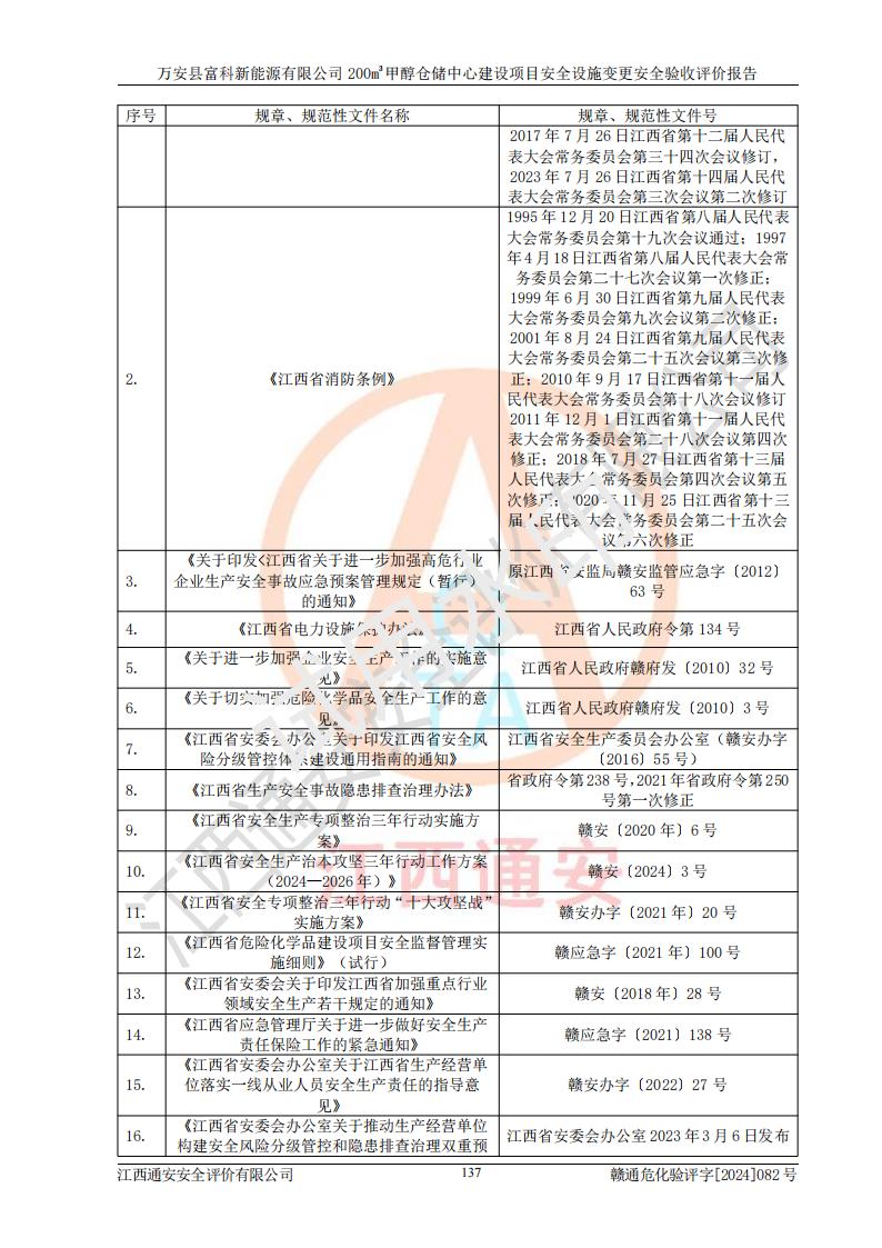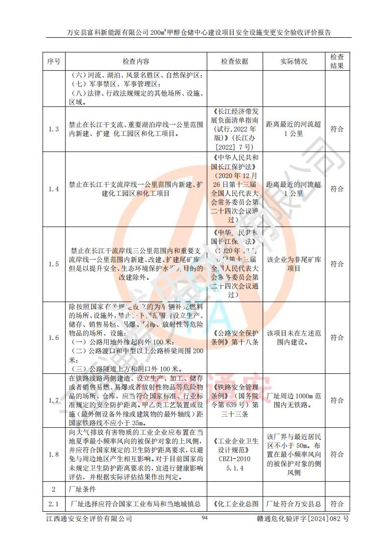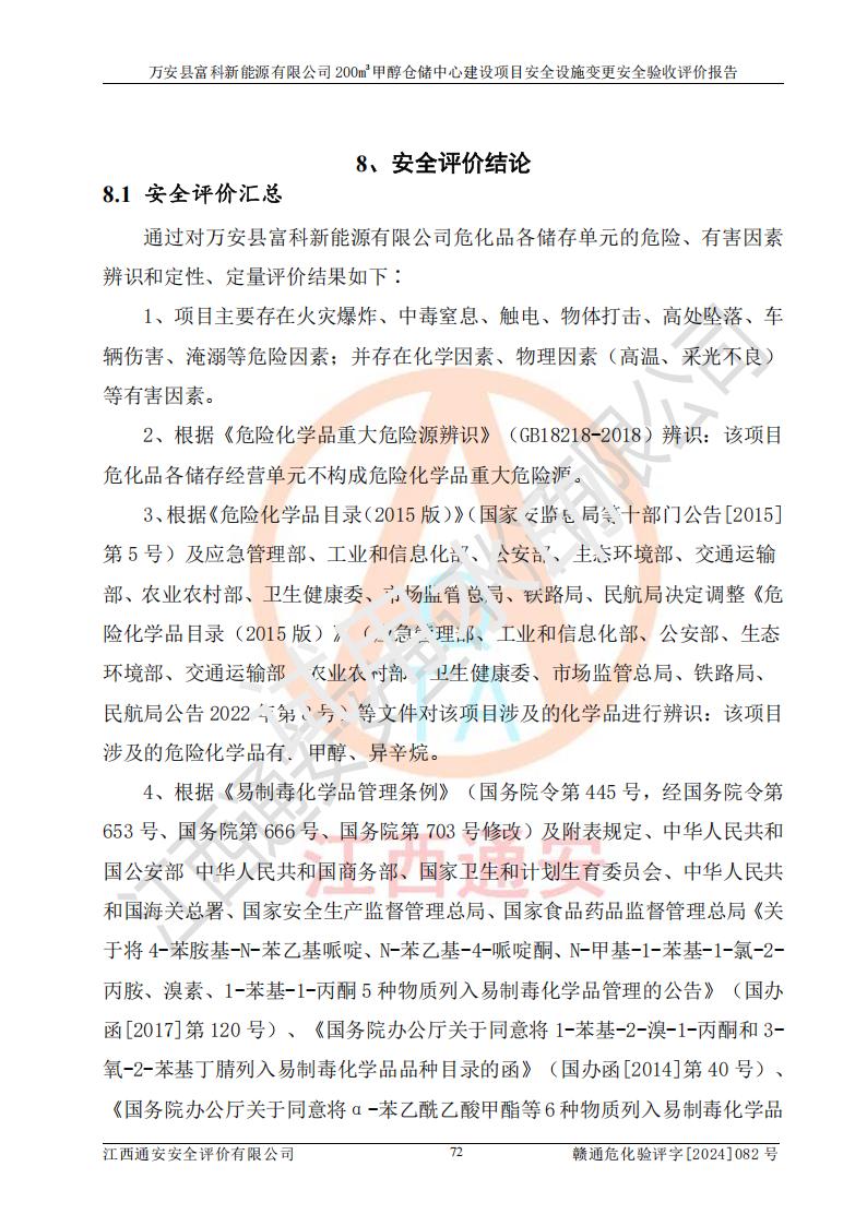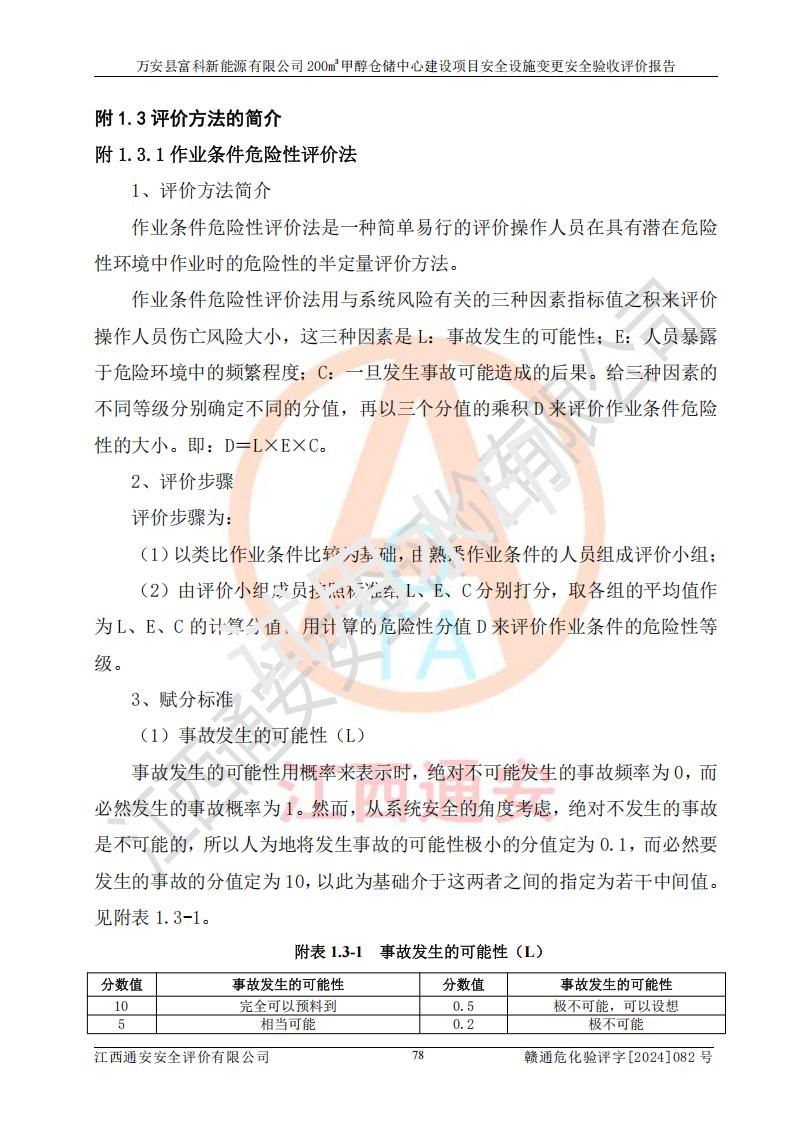 評(píng)價(jià)報(bào)告名稱 | 萬(wàn)安縣富科新能源有限公司200m3甲醇倉(cāng)儲(chǔ)中心建設(shè)項(xiàng)目安全設(shè)施變更安全驗(yàn)收評(píng)價(jià)報(bào)告 | |||