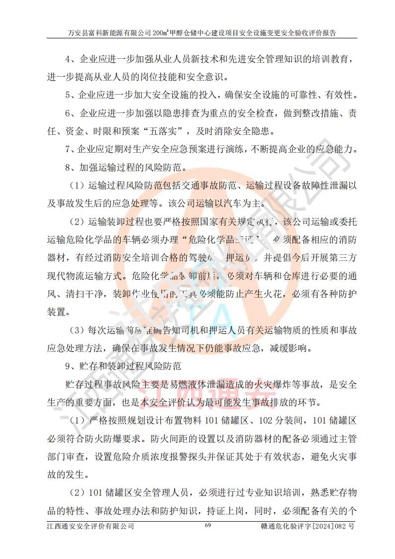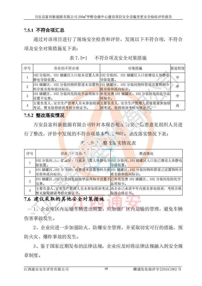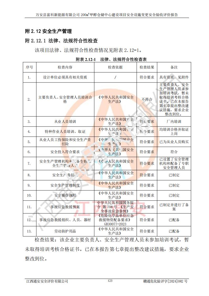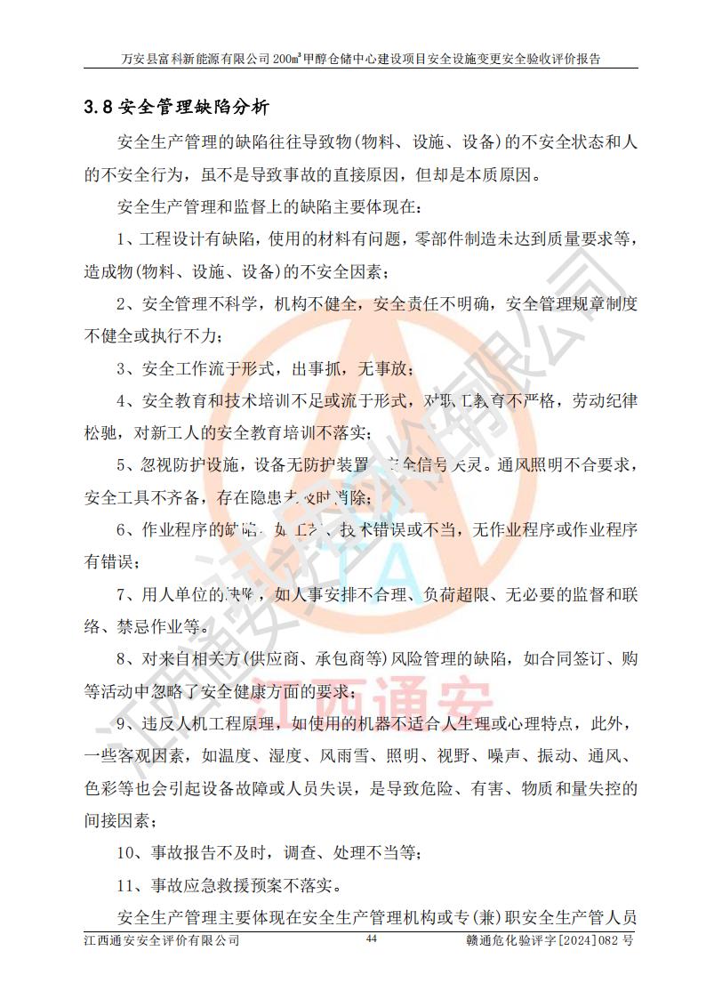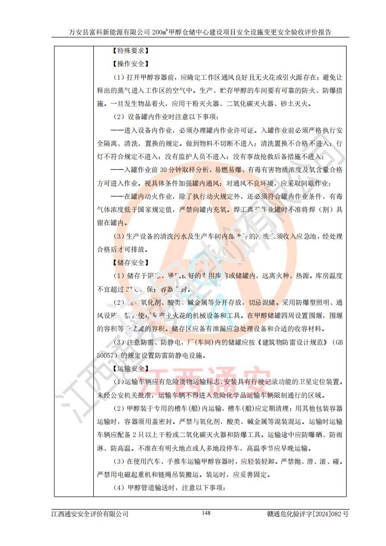 評(píng)價(jià)報(bào)告名稱 | 萬(wàn)安縣富科新能源有限公司200m3甲醇倉(cāng)儲(chǔ)中心建設(shè)項(xiàng)目安全設(shè)施變更安全驗(yàn)收評(píng)價(jià)報(bào)告 | |||