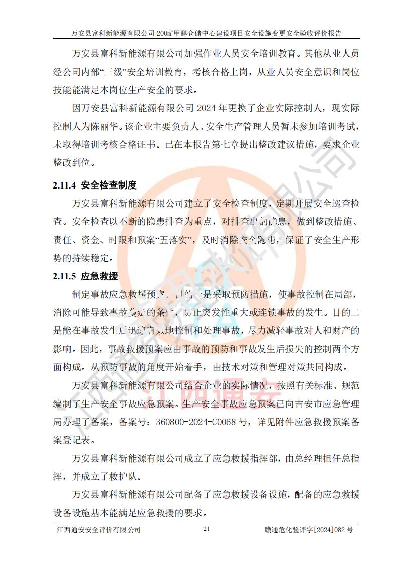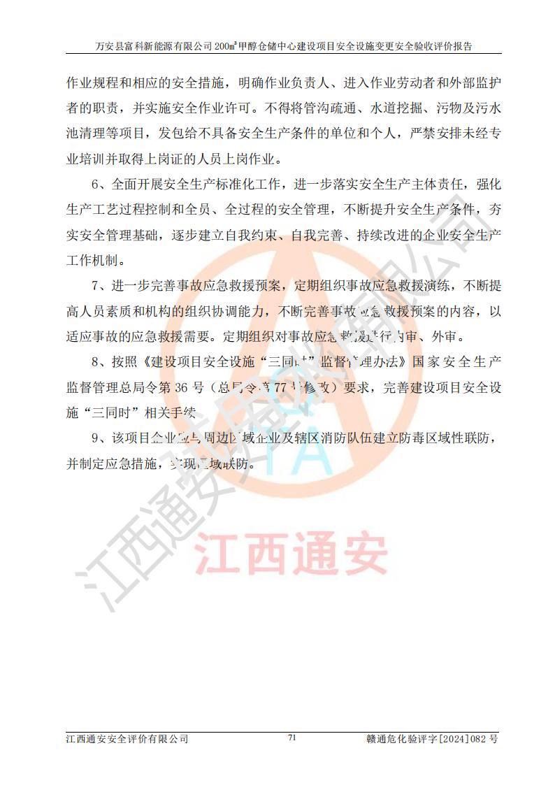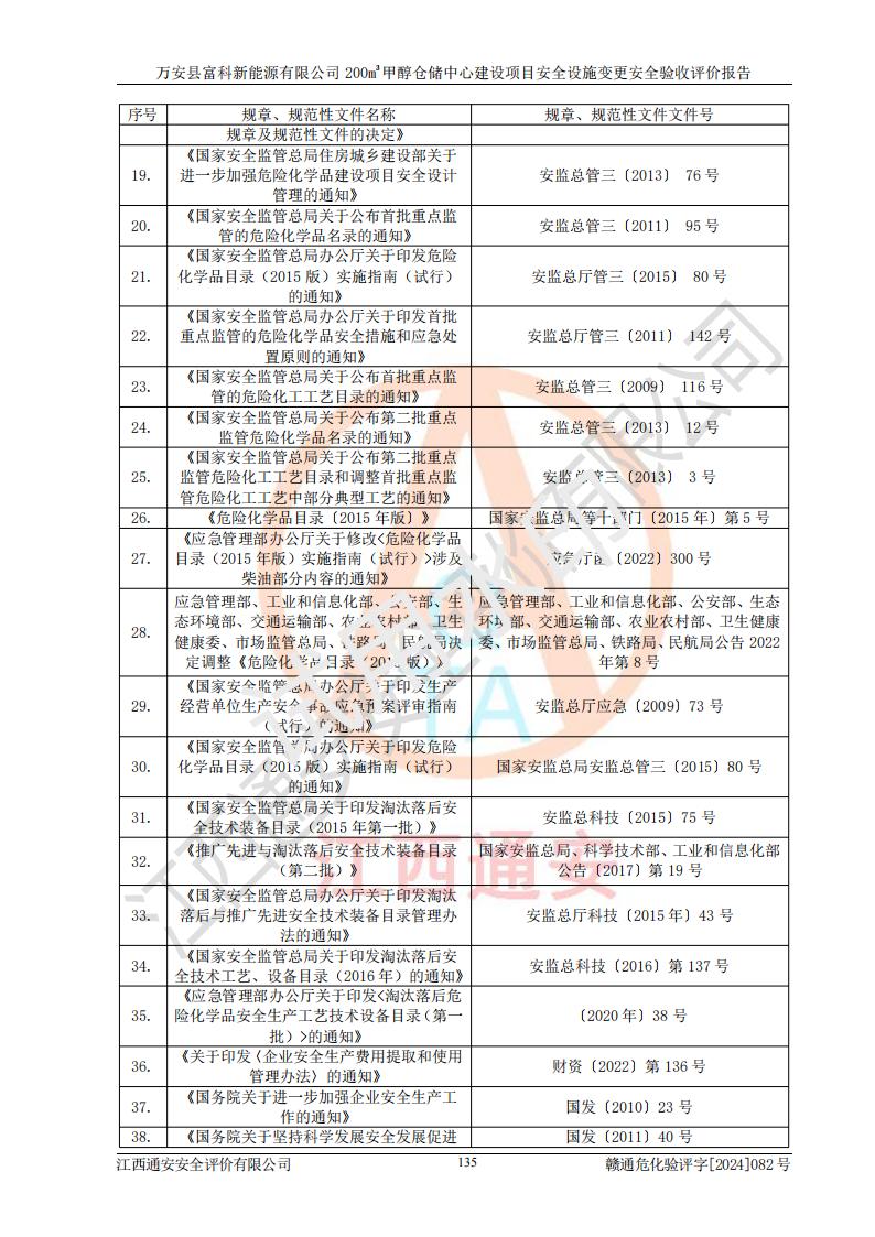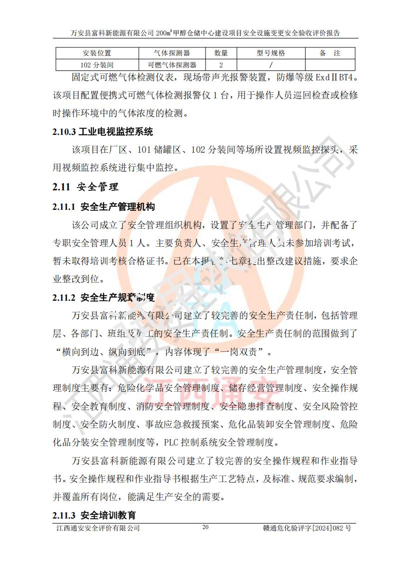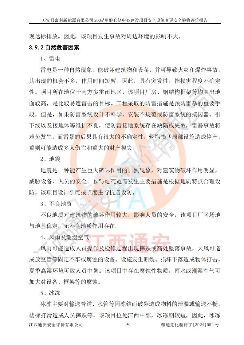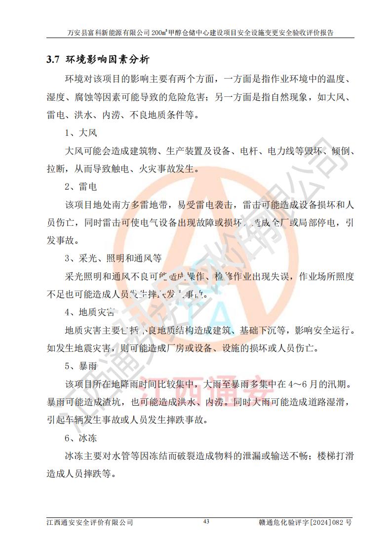 評(píng)價(jià)報(bào)告名稱 | 萬(wàn)安縣富科新能源有限公司200m3甲醇倉(cāng)儲(chǔ)中心建設(shè)項(xiàng)目安全設(shè)施變更安全驗(yàn)收評(píng)價(jià)報(bào)告 | |||