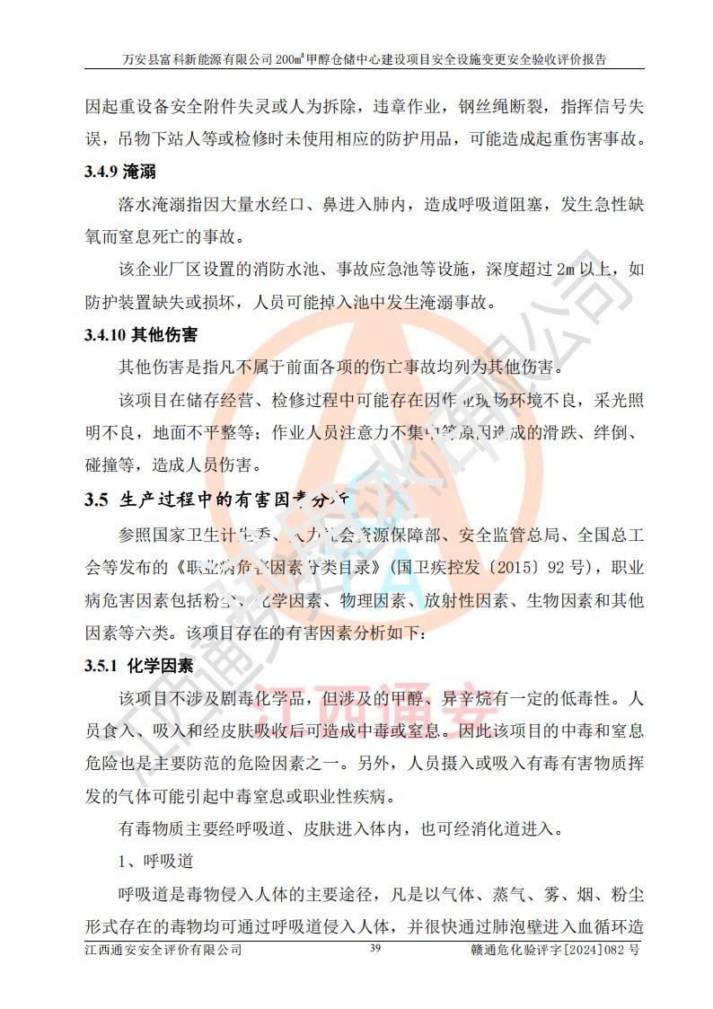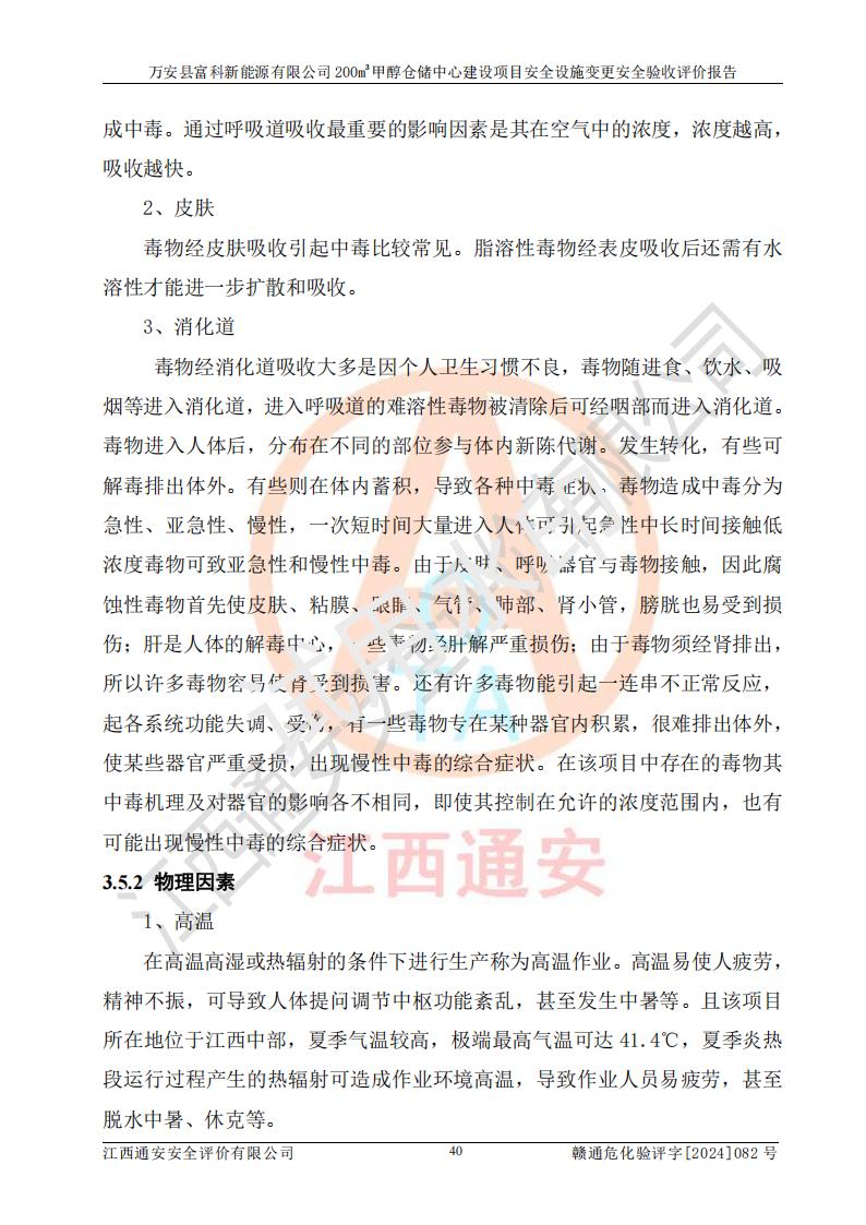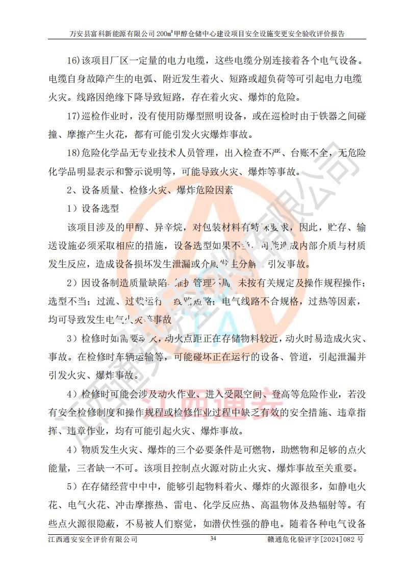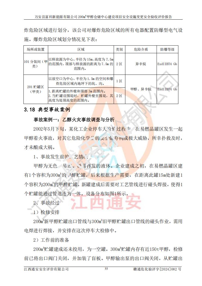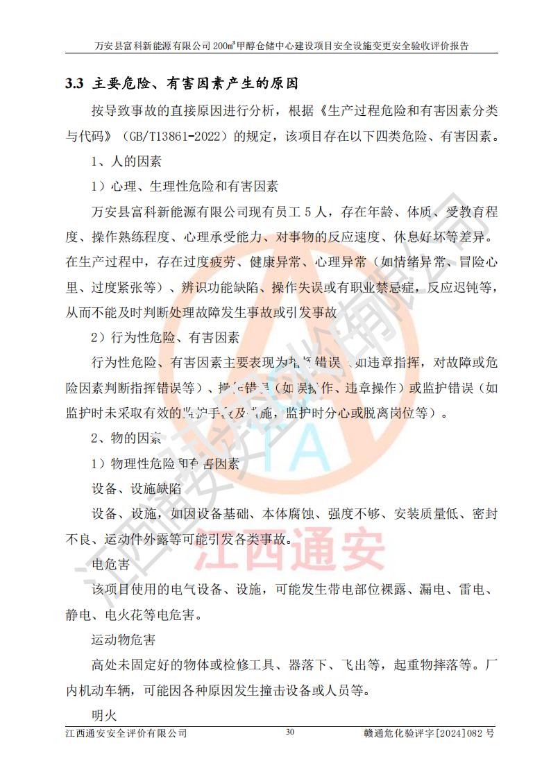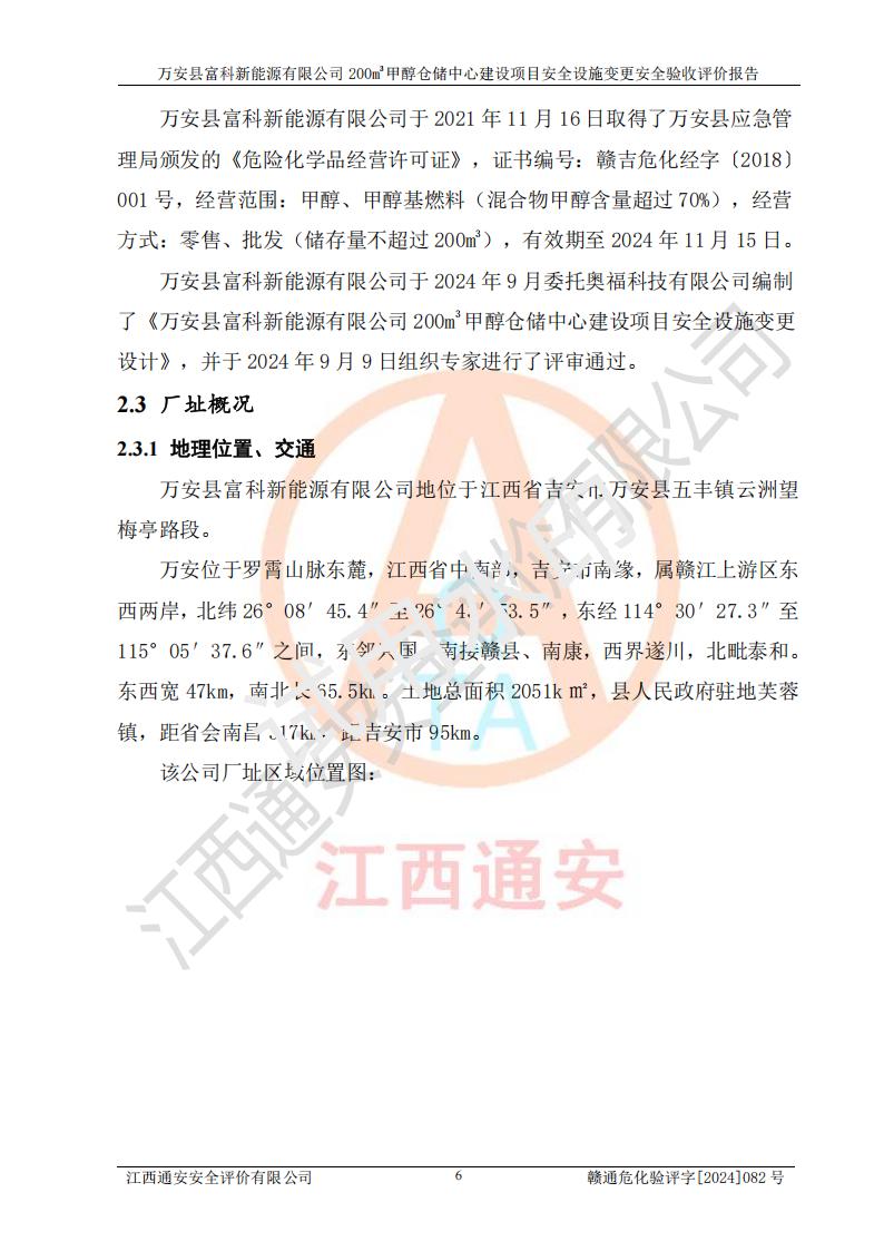 項(xiàng)目簡(jiǎn)介 | 萬(wàn)安縣富科新能源有限公司(以下簡(jiǎn)稱“公司”)成立于2018年12月13日,法定**人:陳麗華。該公司曾用名為萬(wàn)安縣榮能甲醇倉(cāng)儲(chǔ)有限公司,于2023年09月01日改為現(xiàn)用名,其經(jīng)營(yíng)范圍包括許可項(xiàng)目:危險(xiǎn)化學(xué)品經(jīng)營(yíng)(依法須經(jīng)批準(zhǔn)的項(xiàng)目,經(jīng)相關(guān)部門批準(zhǔn)后在許可**期內(nèi)方可開(kāi)展經(jīng)營(yíng)活動(dòng),具體經(jīng)營(yíng)項(xiàng)目和許可期限以相關(guān)部門批準(zhǔn)文件或許可證件為準(zhǔn))一般項(xiàng)目:石油制品銷售(不含危險(xiǎn)化學(xué)品)(除依法須經(jīng)批準(zhǔn)的項(xiàng)目外,憑營(yíng)業(yè)執(zhí)照依法自主開(kāi)展經(jīng)營(yíng)活動(dòng))。 萬(wàn)安縣富科新能源有限公司于2021年11月16日取得了萬(wàn)安縣應(yīng)急管理局頒發(fā)的《危險(xiǎn)化學(xué)品經(jīng)營(yíng)許可證》,證書編號(hào):贛吉危化經(jīng)字〔2018〕001號(hào),經(jīng)營(yíng)范圍:甲醇、甲醇基燃料(混合物甲醇含量*過(guò)70%),經(jīng)營(yíng)方式:零售、批發(fā)(儲(chǔ)存量不*過(guò)200m3)。 根據(jù)《危險(xiǎn)化學(xué)品目錄(2015版)》(**安監(jiān)總局等十部門公告[2015]第5號(hào))及應(yīng)急管理部、工業(yè)和信息化部、公安部、生態(tài)環(huán)境部、交通運(yùn)輸部、農(nóng)業(yè)農(nóng)村部、衛(wèi)生健康委、市場(chǎng)監(jiān)管總局、鐵路局、民航局決定調(diào)整《危險(xiǎn)化學(xué)品目錄(2015版)》(應(yīng)急管理部、工業(yè)和信息化部、公安部、生態(tài)環(huán)境部、交通運(yùn)輸部、農(nóng)業(yè)農(nóng)村部、衛(wèi)生健康委、市場(chǎng)監(jiān)管總局、鐵路局、民航局公告2022年第8號(hào))等文件對(duì)該項(xiàng)目涉及的化學(xué)品進(jìn)行辨識(shí):該項(xiàng)目涉及的危險(xiǎn)化學(xué)品有:甲醇、異辛烷。 | |||