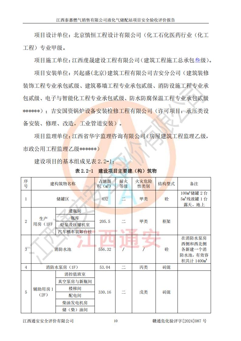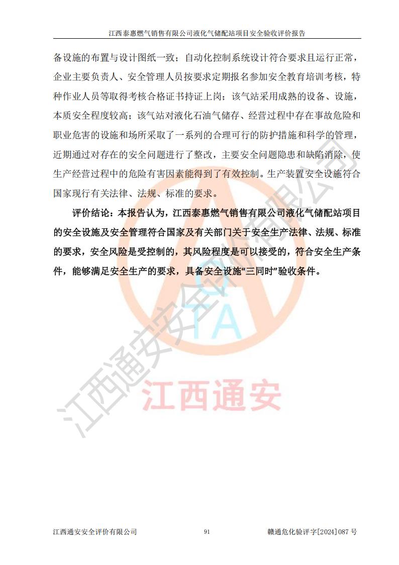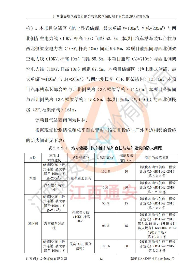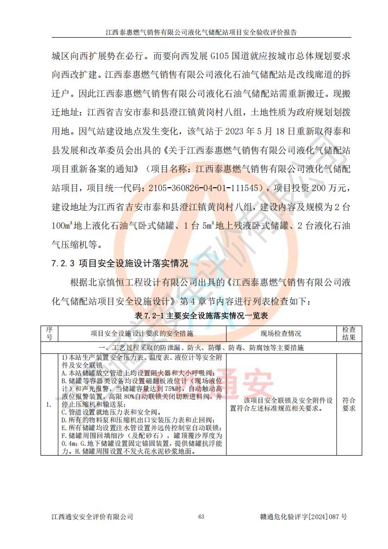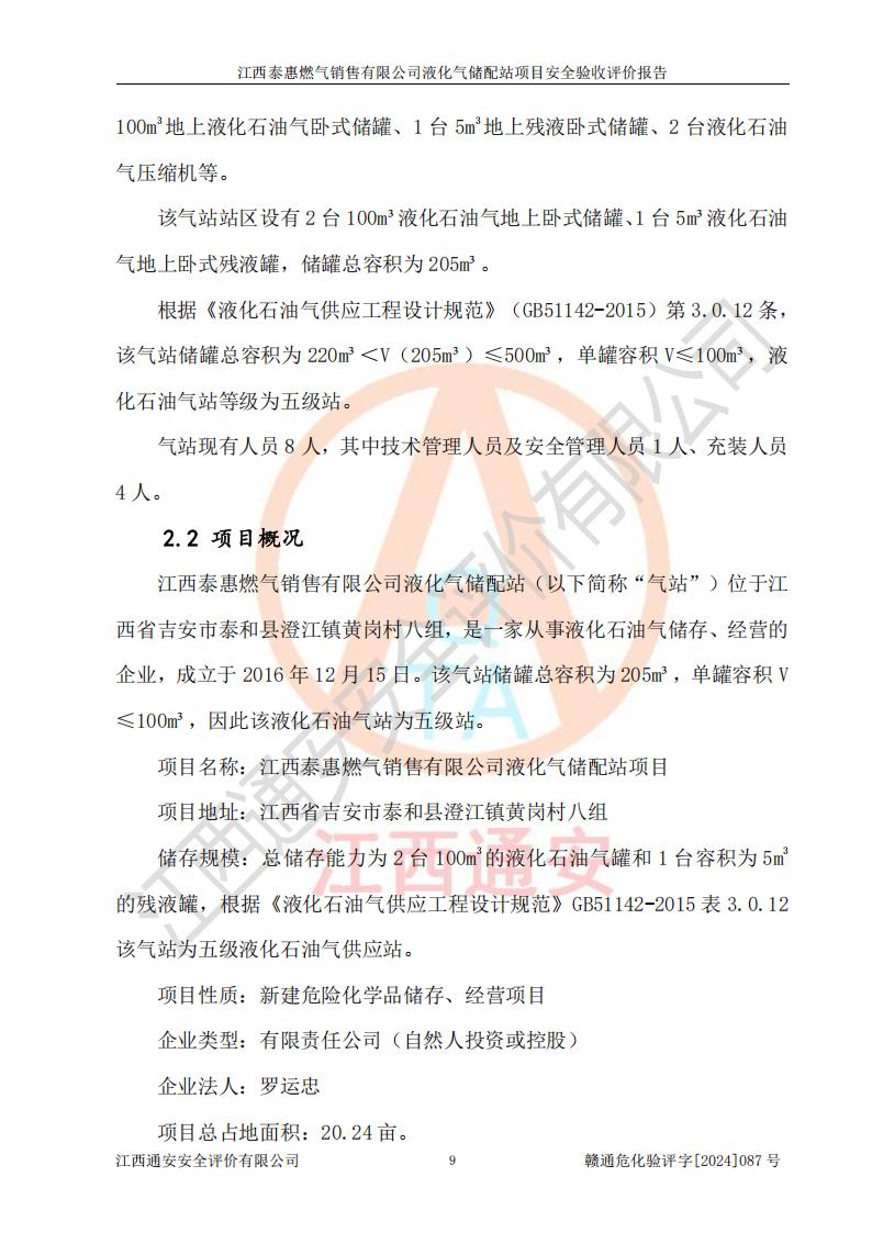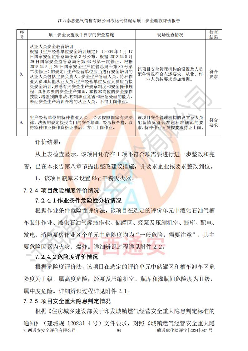 項目名稱 | 江西泰惠燃氣銷售有限公司液化氣儲配站項目安全驗收評價報告 | ||||