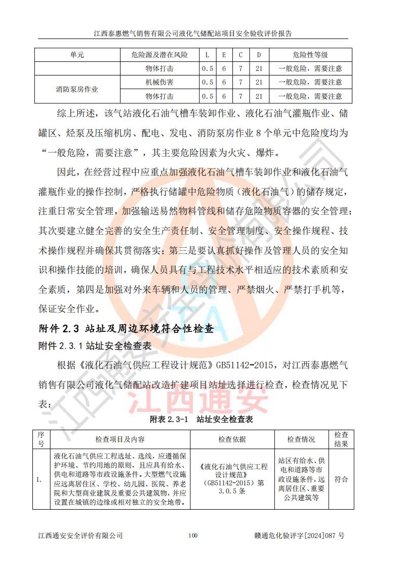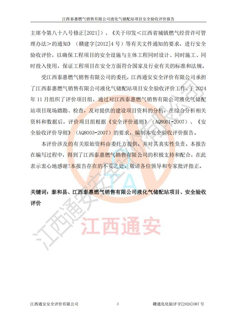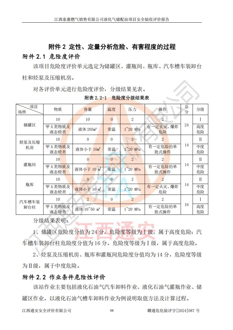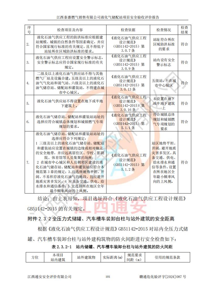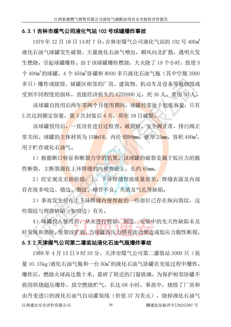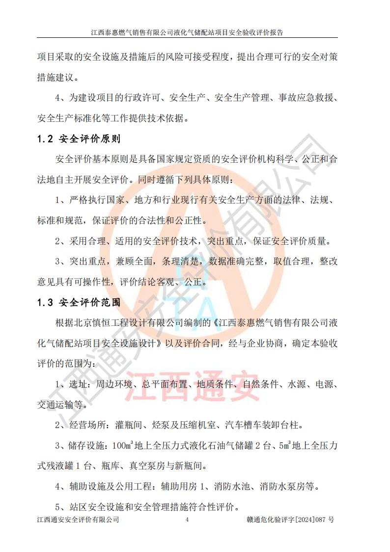 項目名稱 | 江西泰惠燃氣銷售有限公司液化氣儲配站項目安全驗收評價報告 | ||||