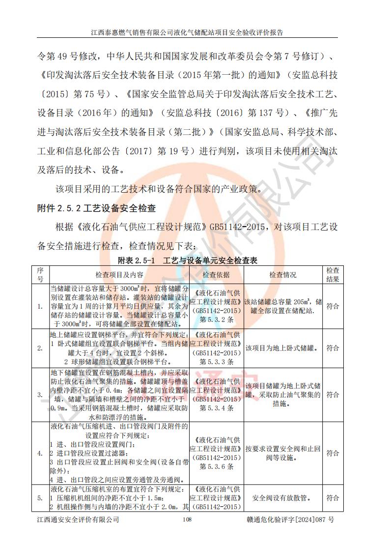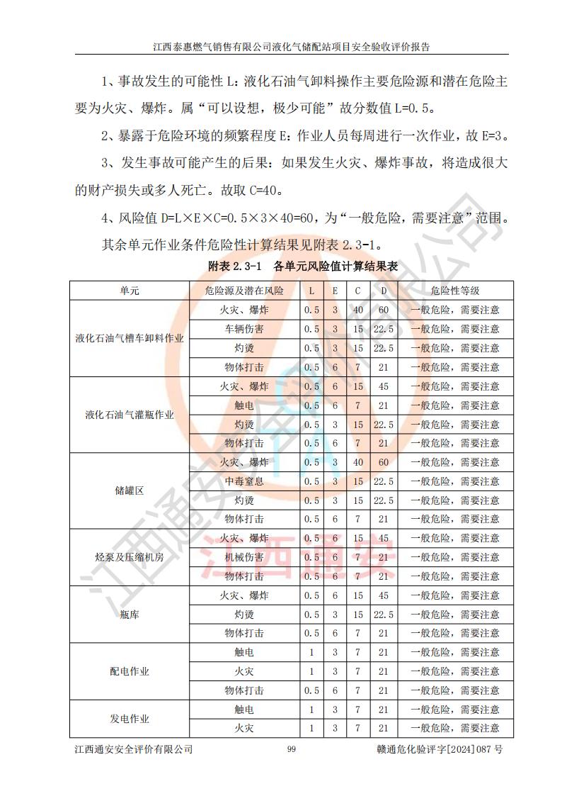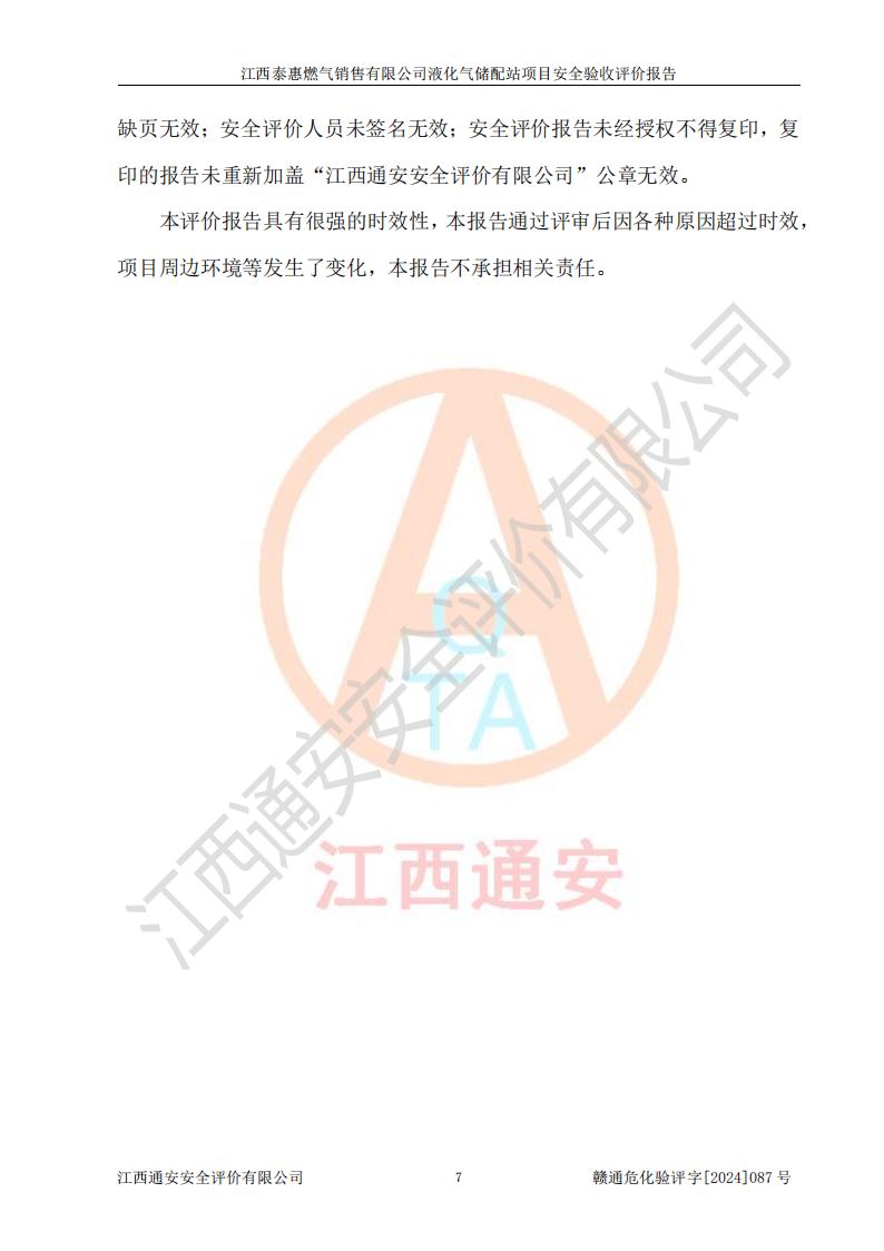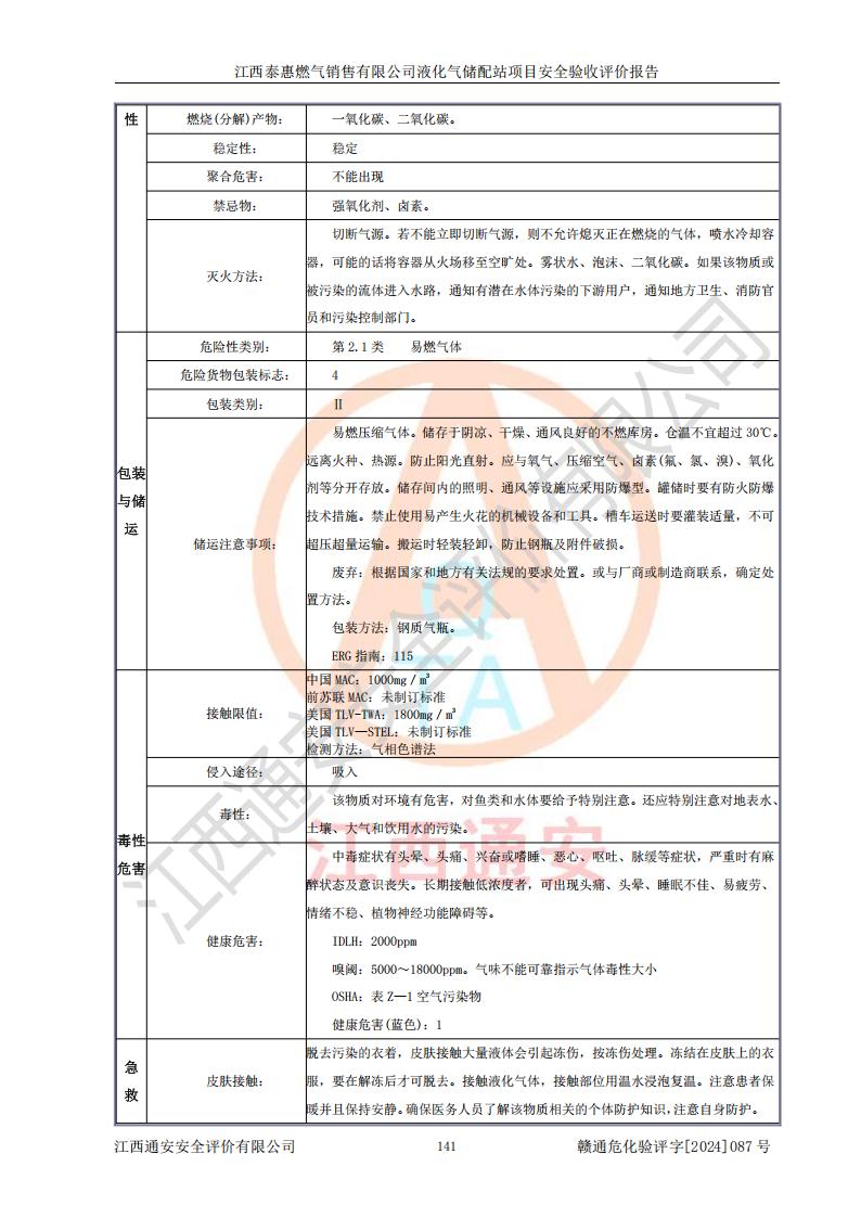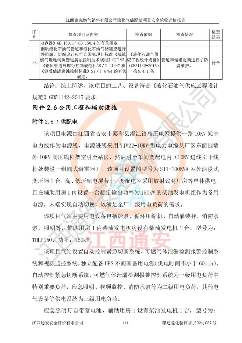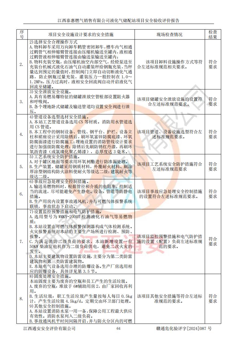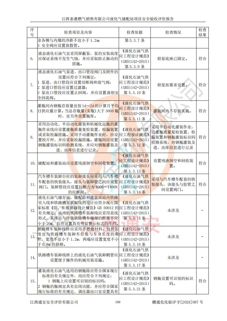 項目名稱 | 江西泰惠燃氣銷售有限公司液化氣儲配站項目安全驗收評價報告 | ||||