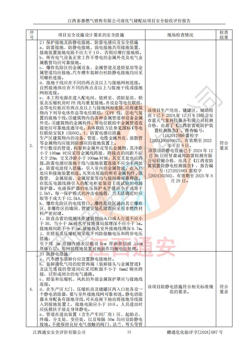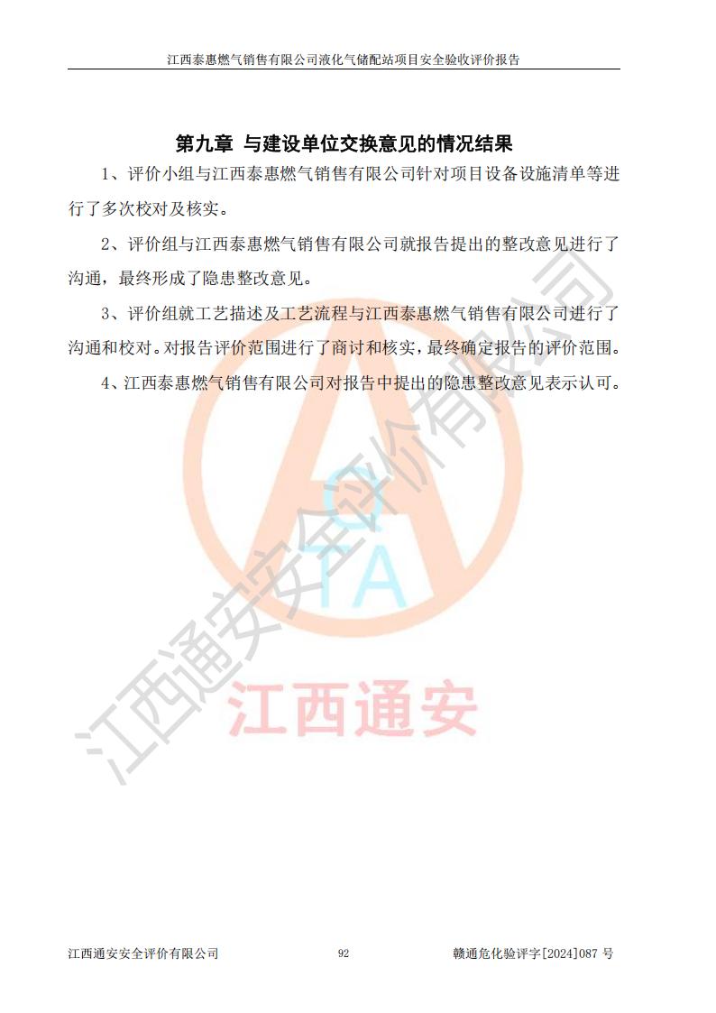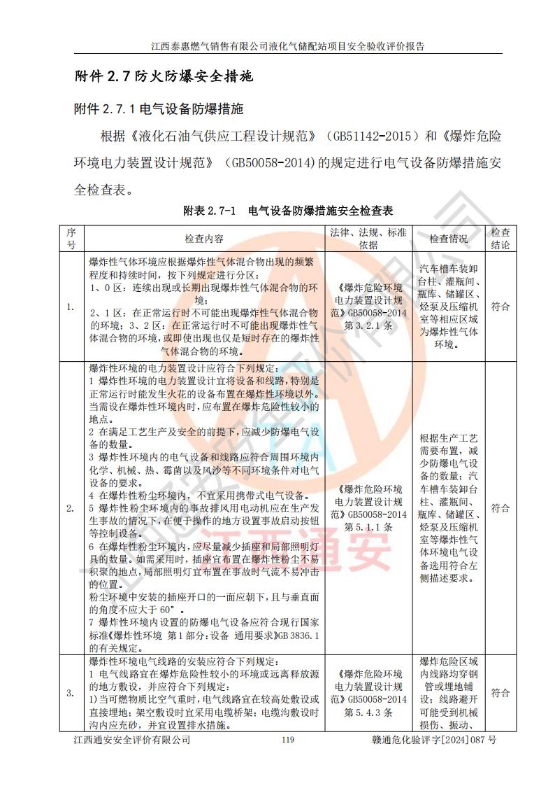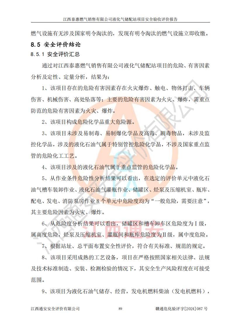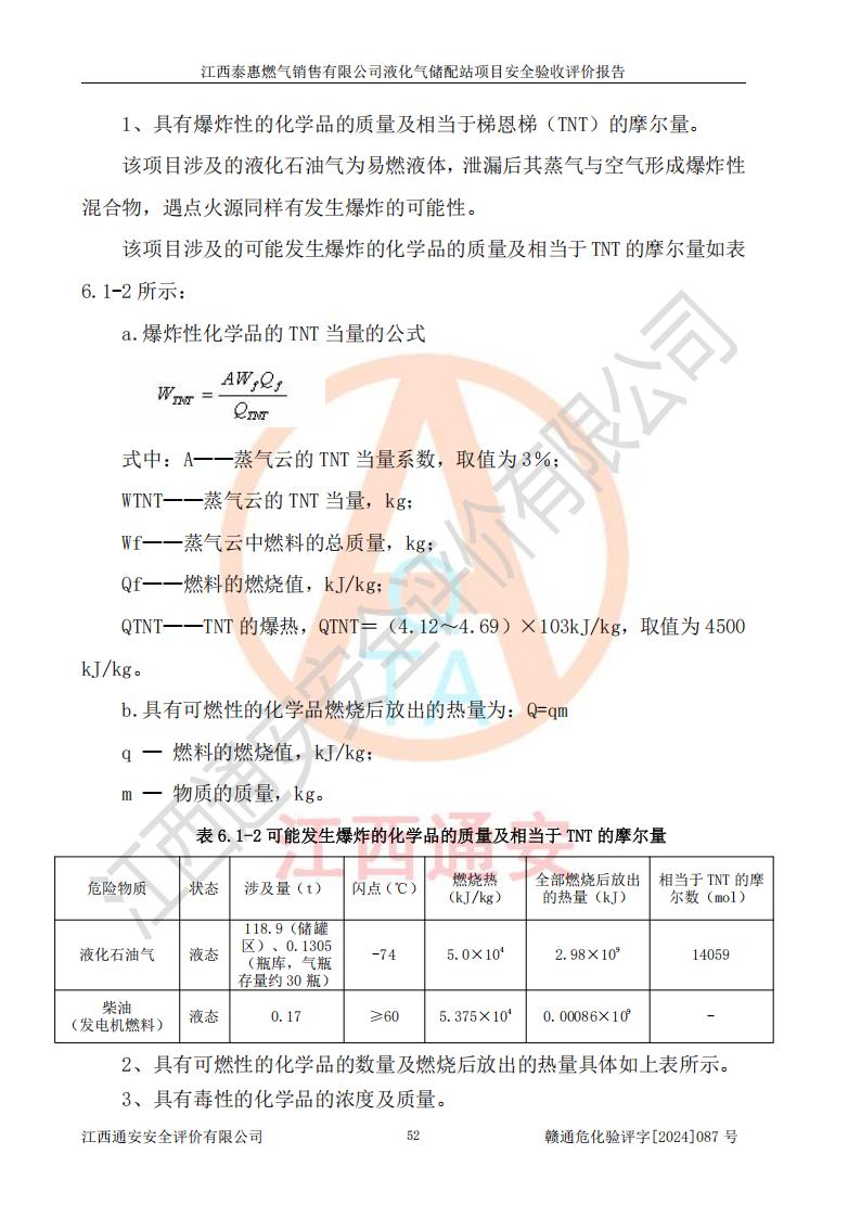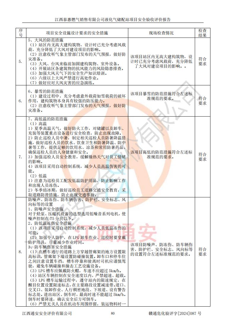 項目名稱 | 江西泰惠燃氣銷售有限公司液化氣儲配站項目安全驗收評價報告 | ||||