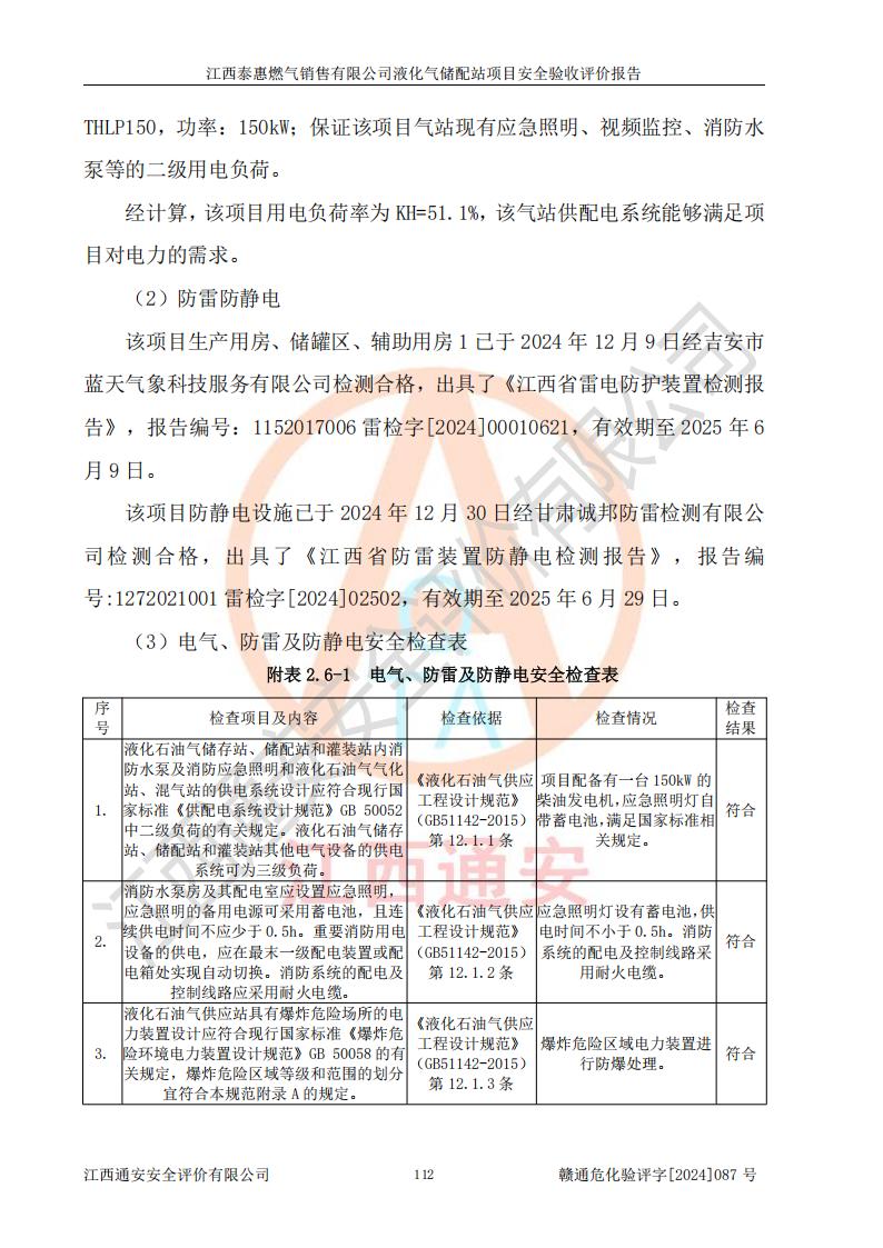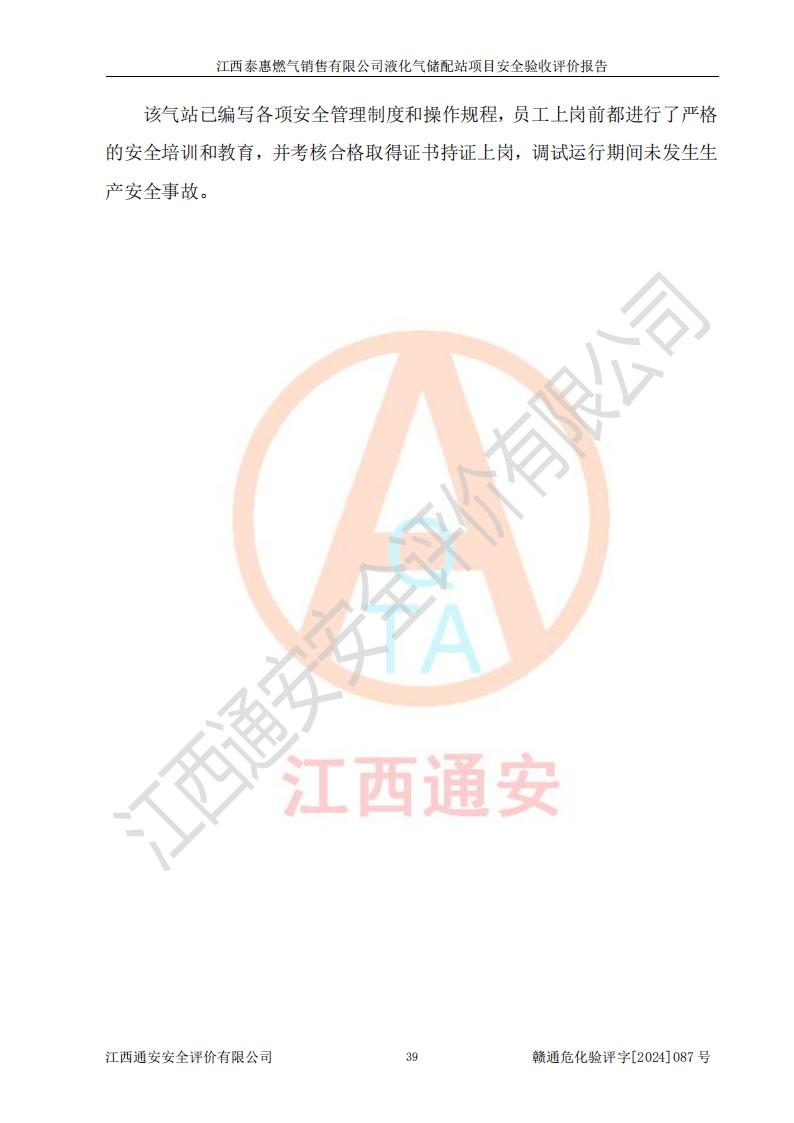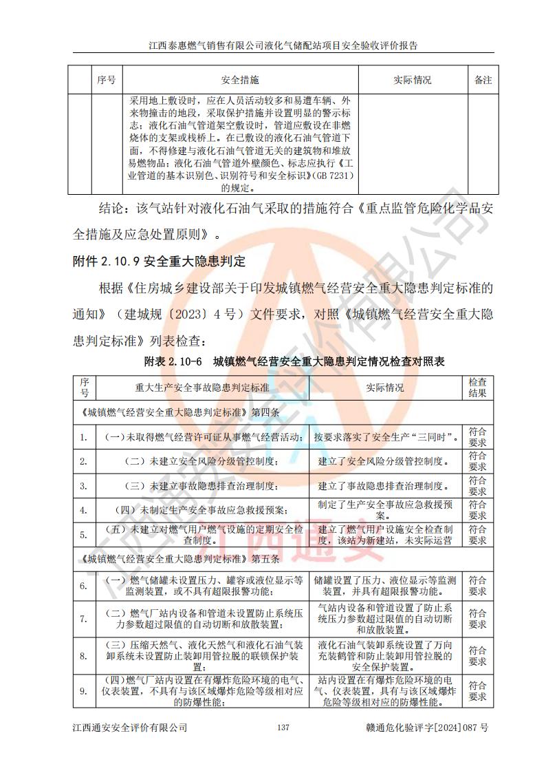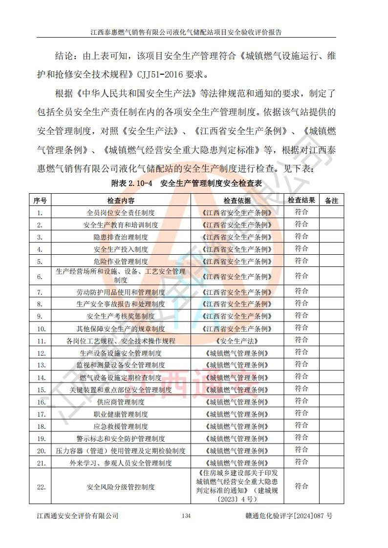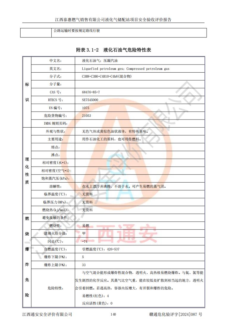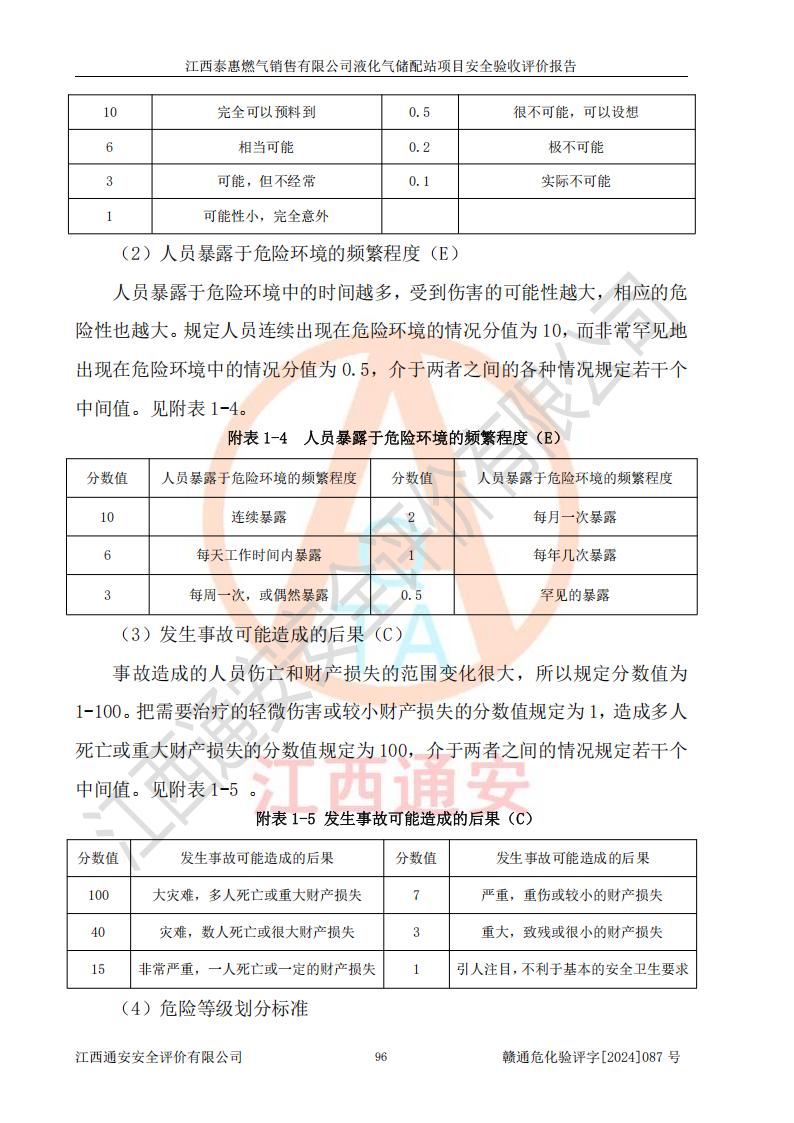 項目名稱 | 江西泰惠燃氣銷售有限公司液化氣儲配站項目安全驗收評價報告 | ||||