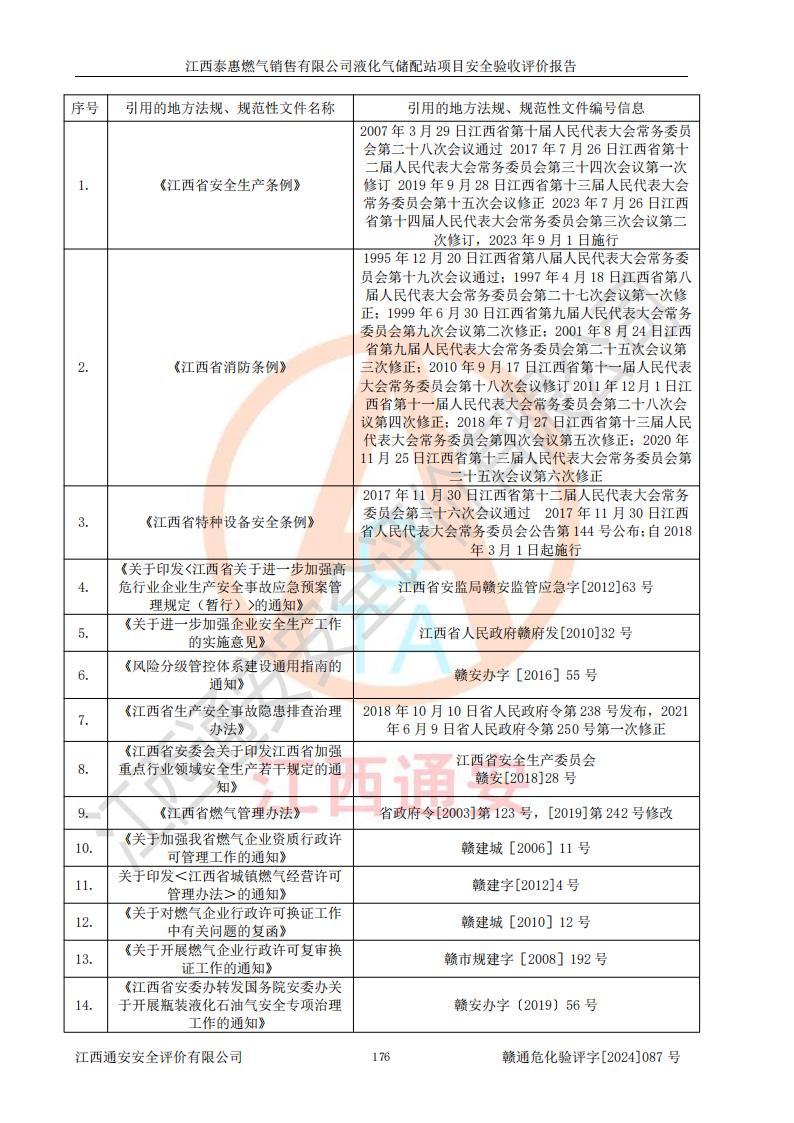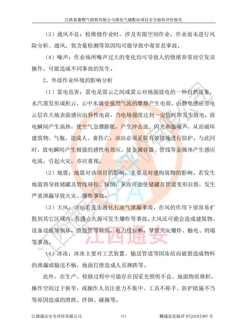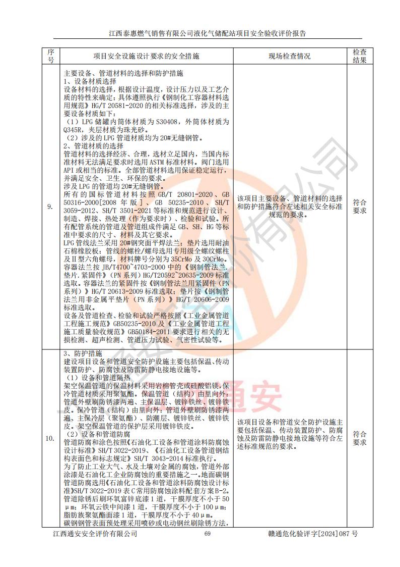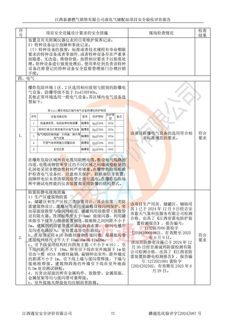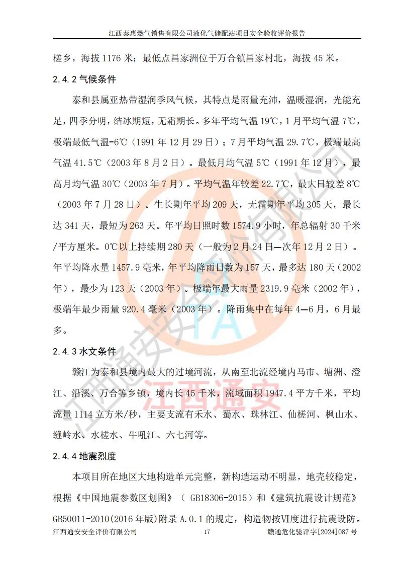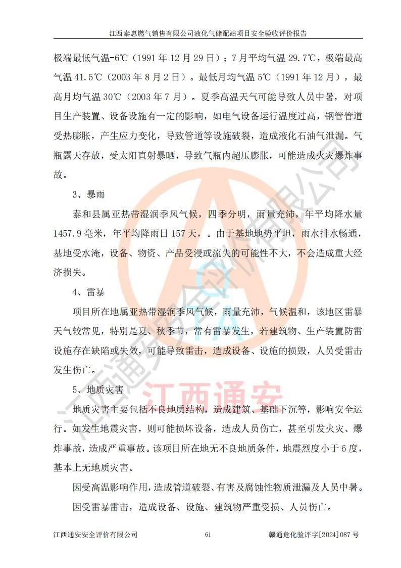 項目名稱 | 江西泰惠燃氣銷售有限公司液化氣儲配站項目安全驗收評價報告 | ||||