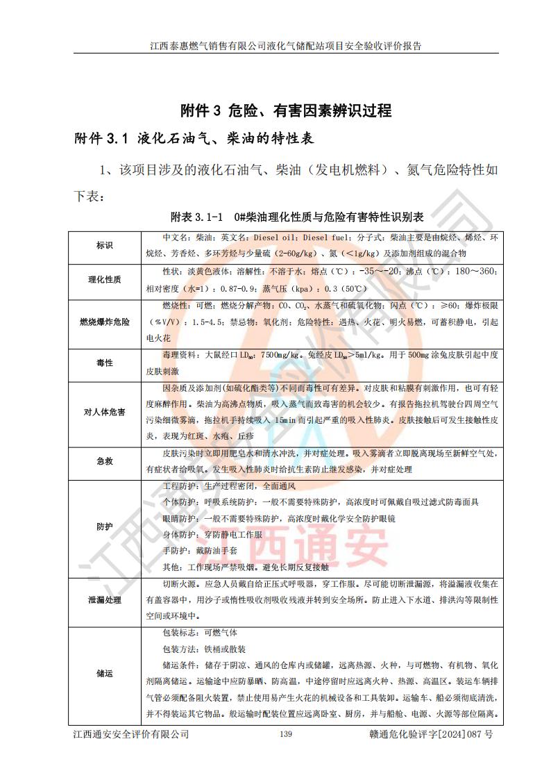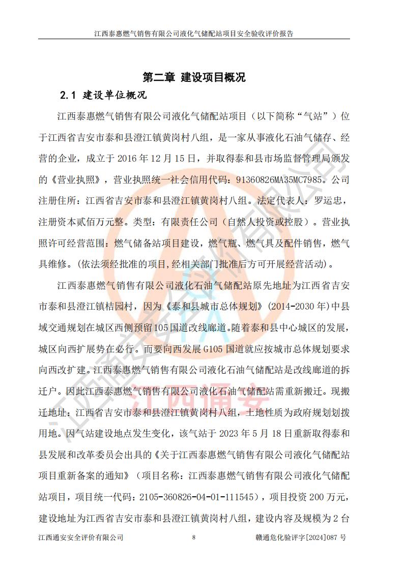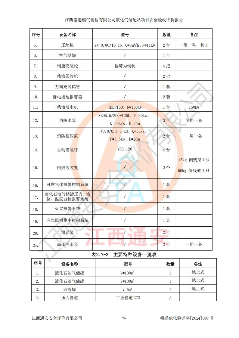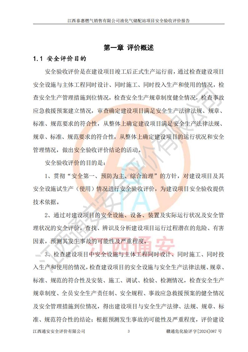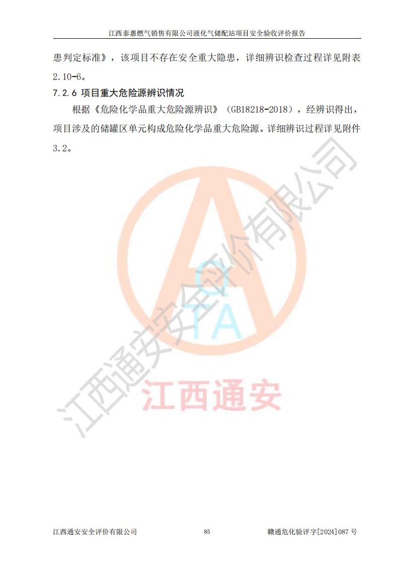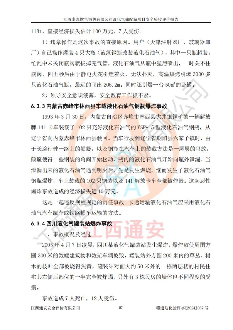 項目名稱 | 江西泰惠燃氣銷售有限公司液化氣儲配站項目安全驗收評價報告 | ||||