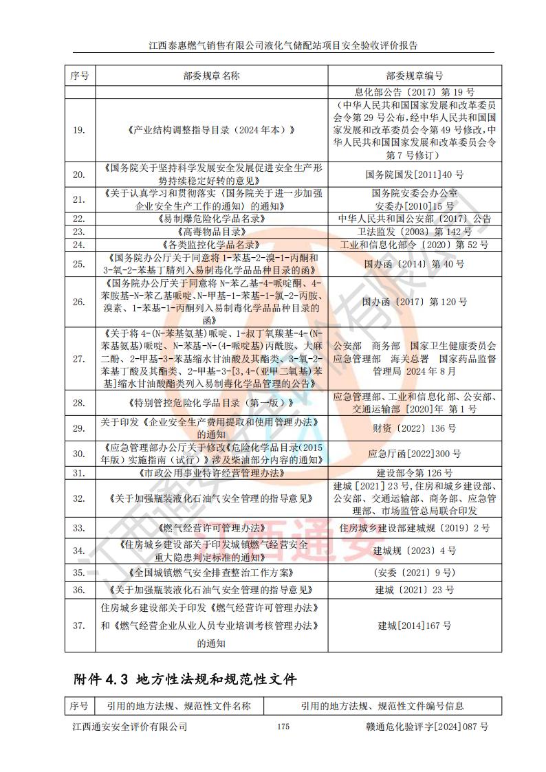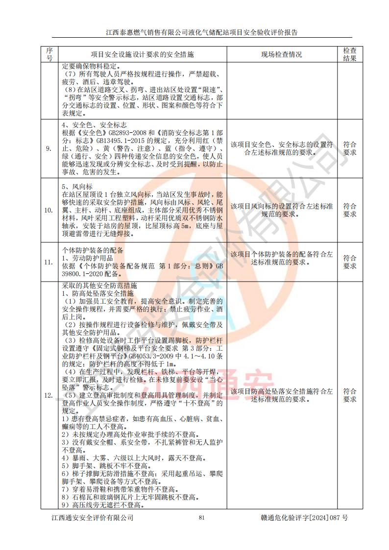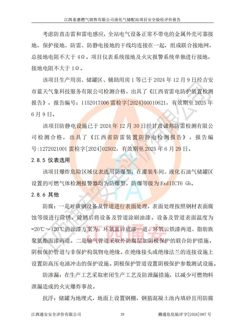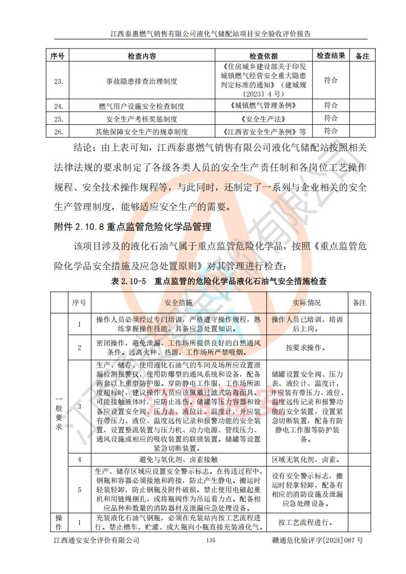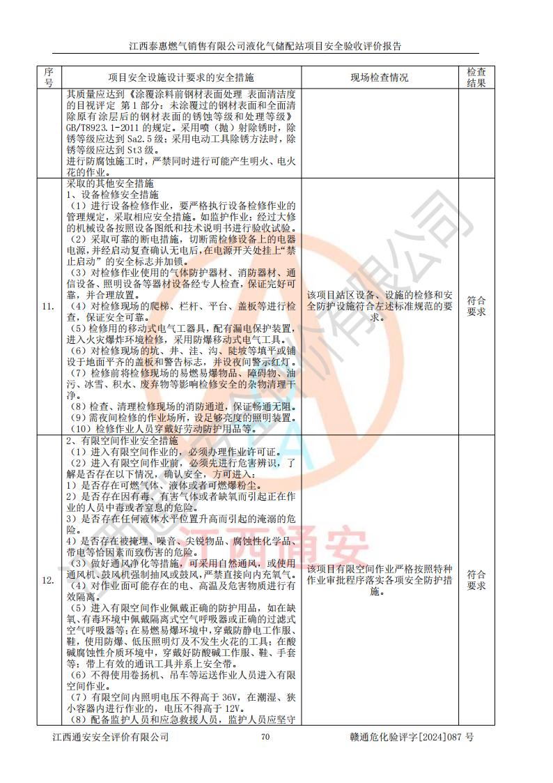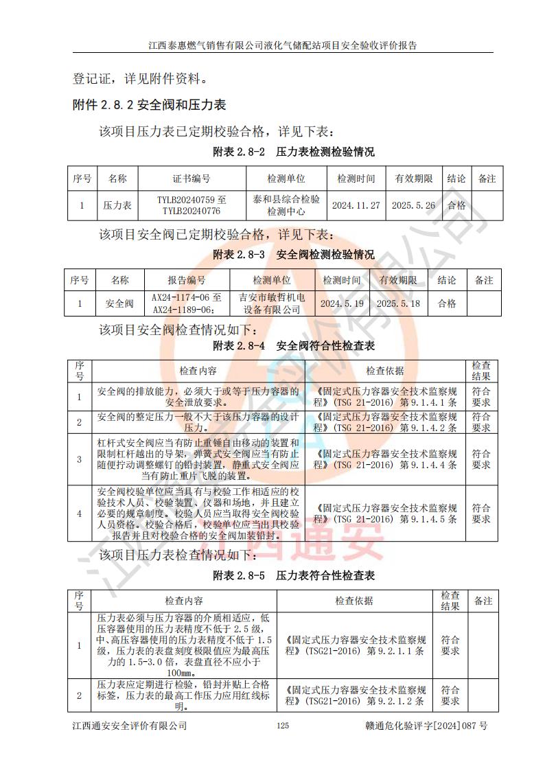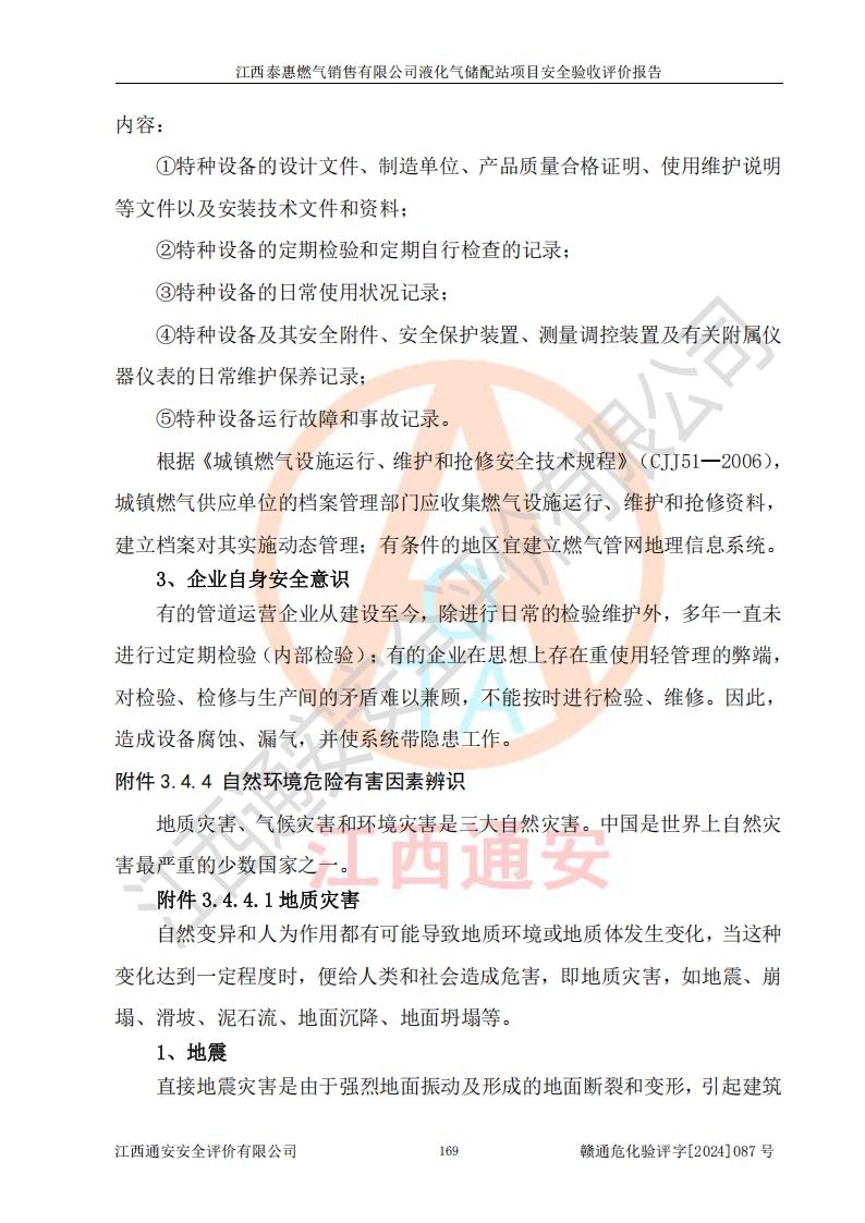 項目名稱 | 江西泰惠燃氣銷售有限公司液化氣儲配站項目安全驗收評價報告 | ||||